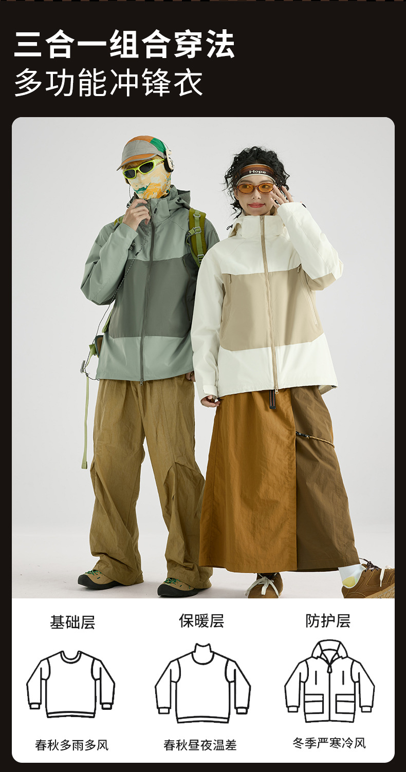 야상 3 피스 바람막이남녀커플 아우터 방풍방수 퍼스널 등산복 등산객