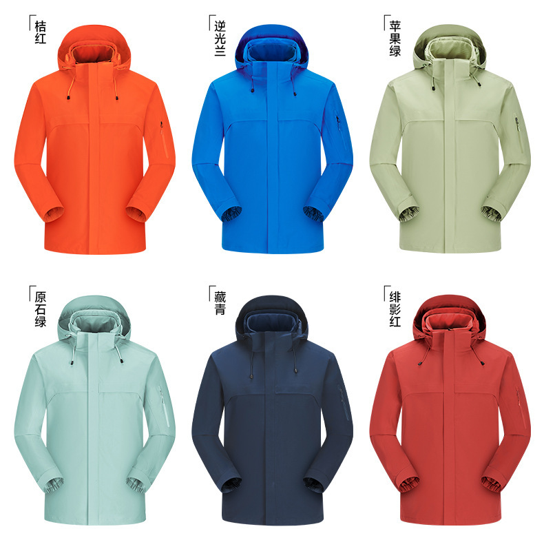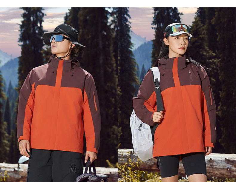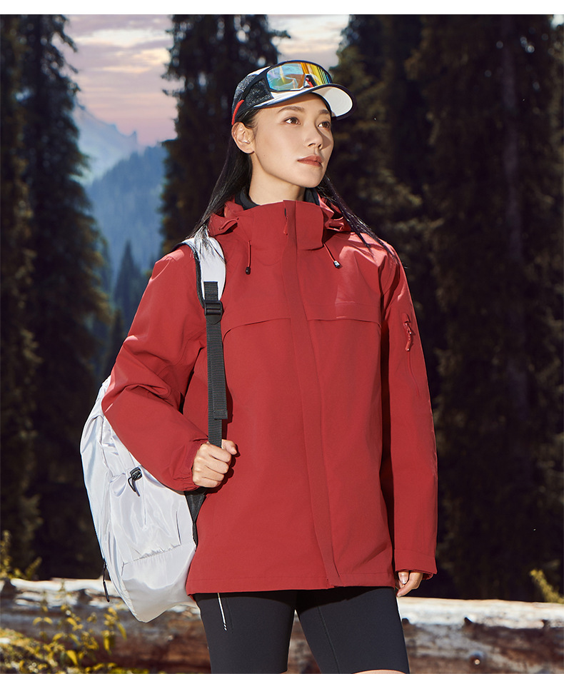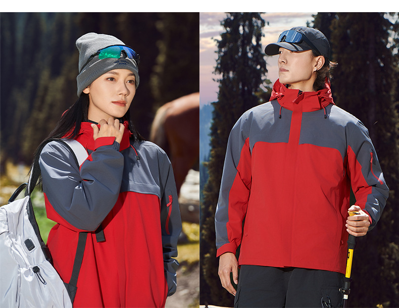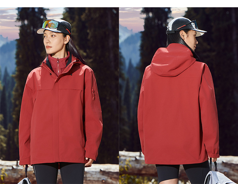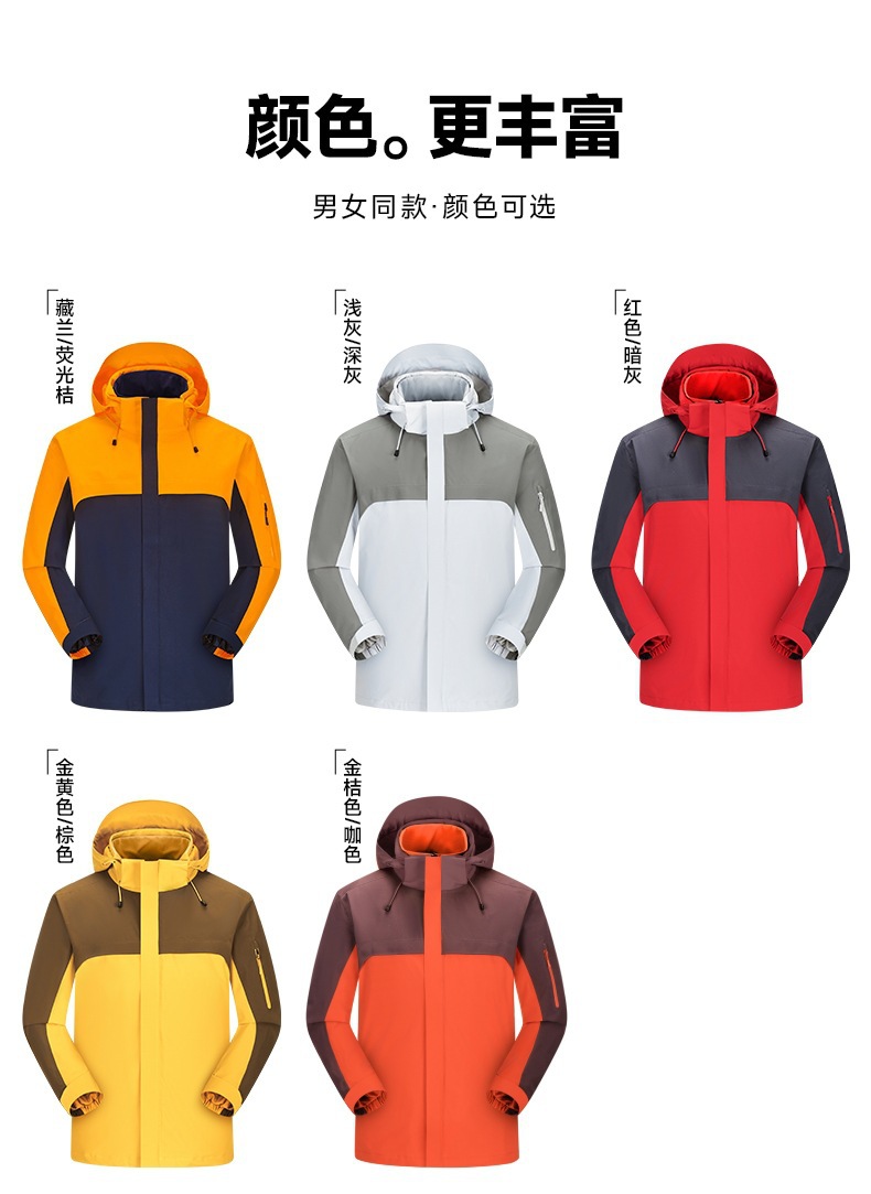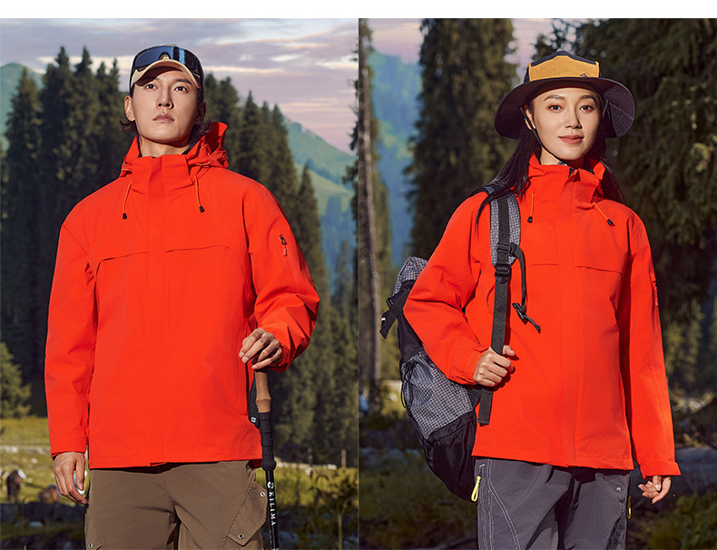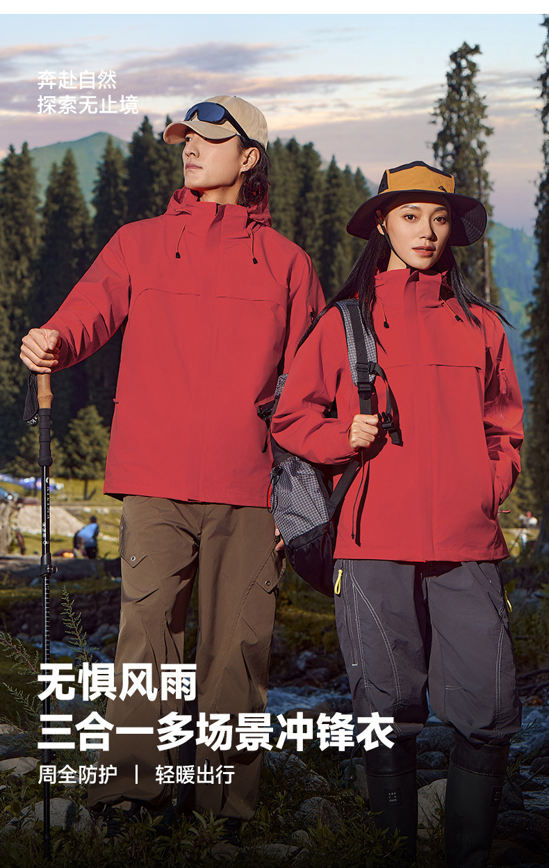 주작색 바람막이 재킷 여성 실외 국가 표준 방수 남성 3인 1 방풍 등산복 주문 제작하였다