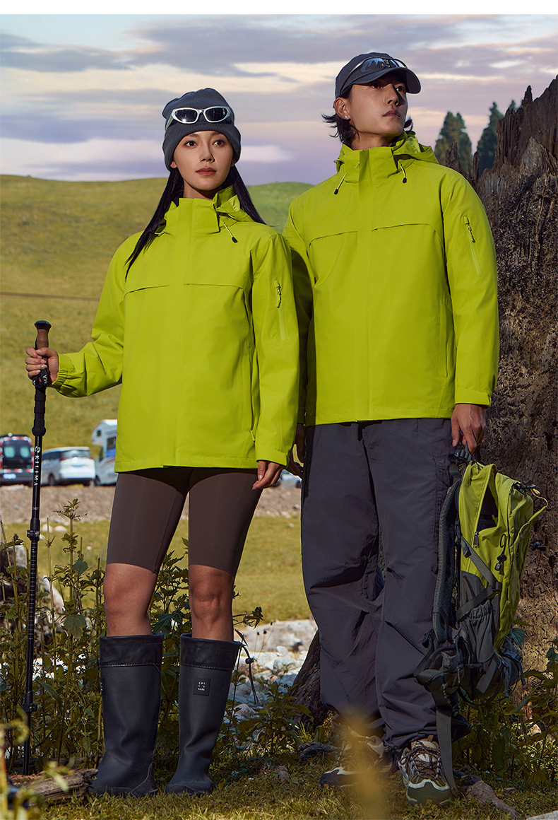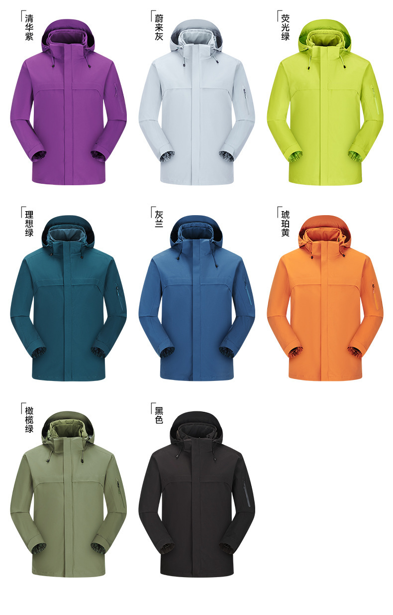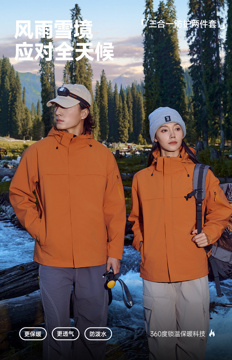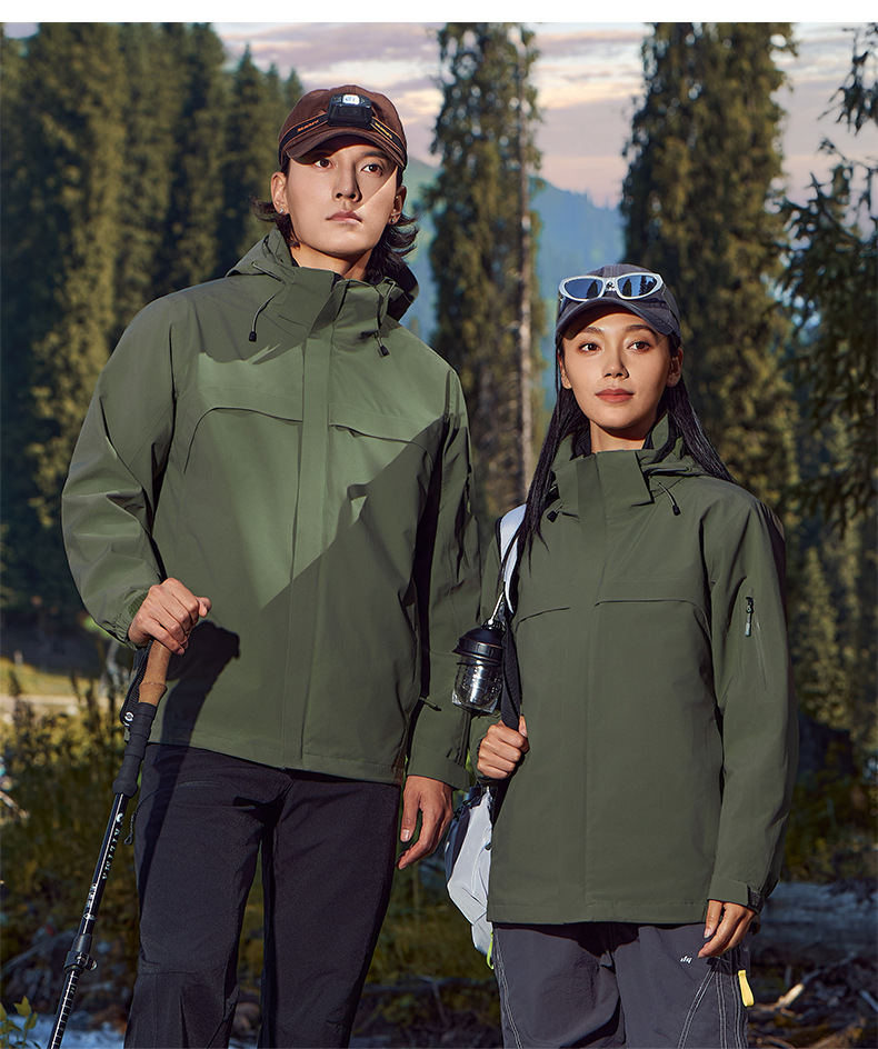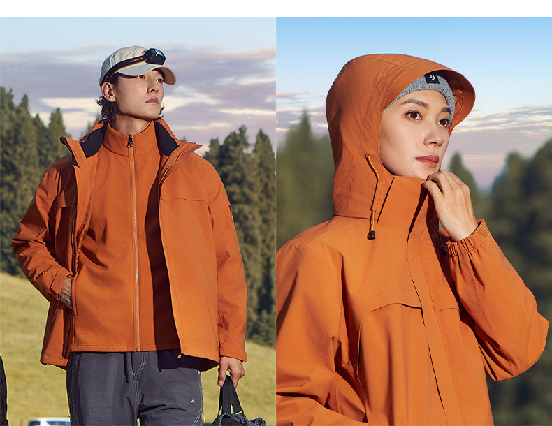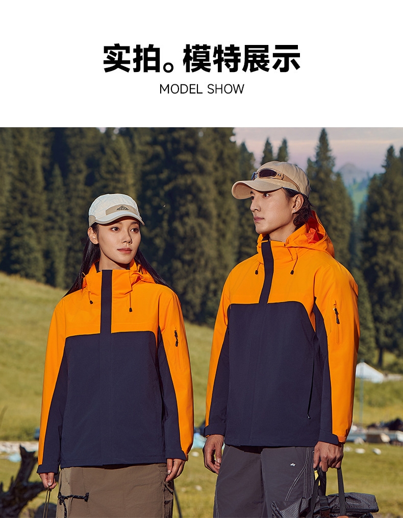 주작색 바람막이 재킷 여성 실외 국가 표준 방수 남성 3인 1 방풍 등산복 주문 제작하였다