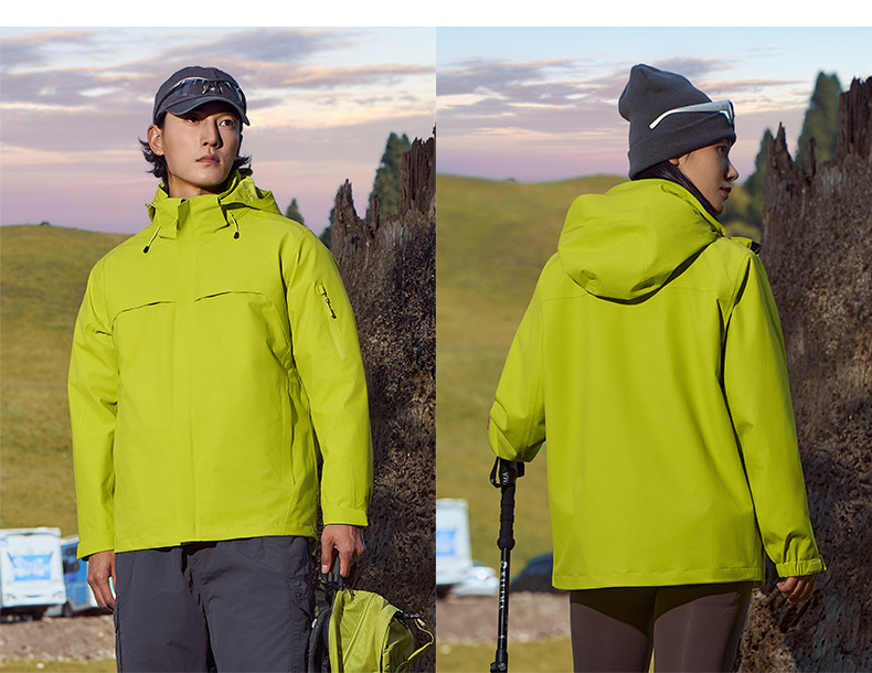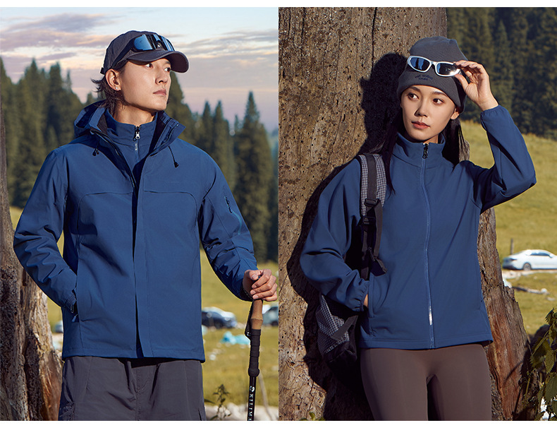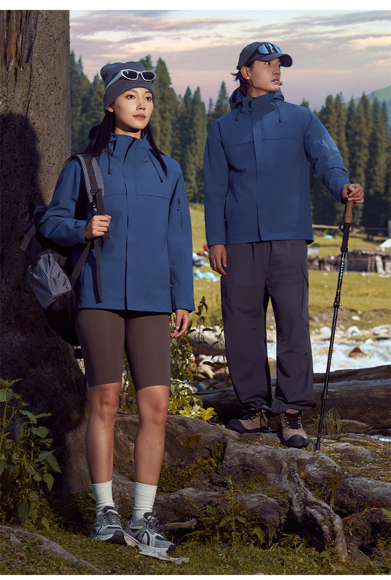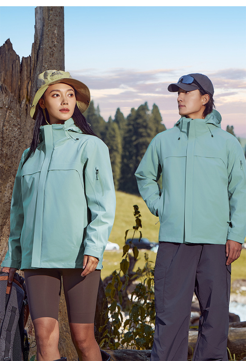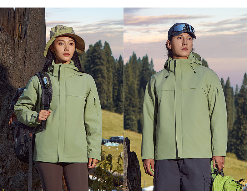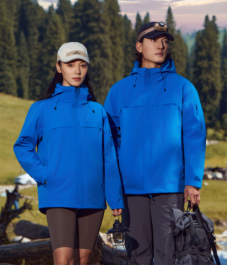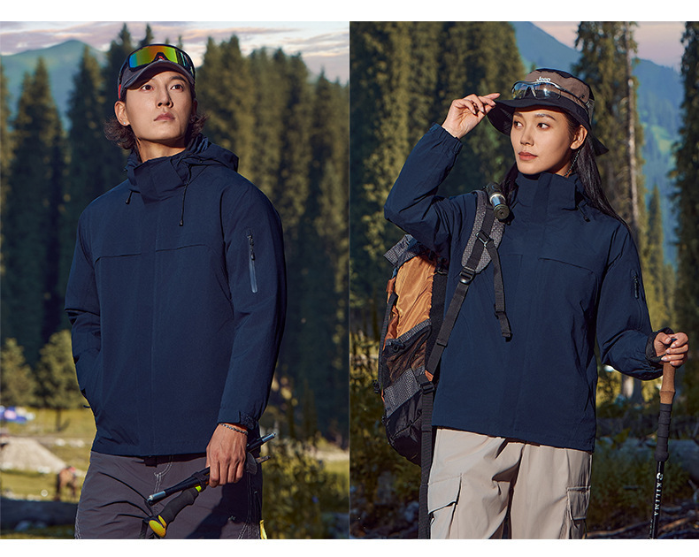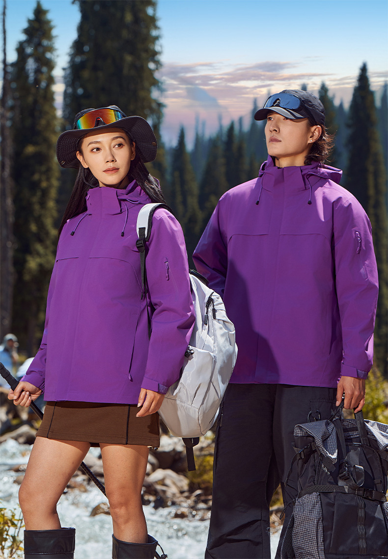 주작색 바람막이 재킷 여성 실외 국가 표준 방수 남성 3인 1 방풍 등산복 주문 제작하였다