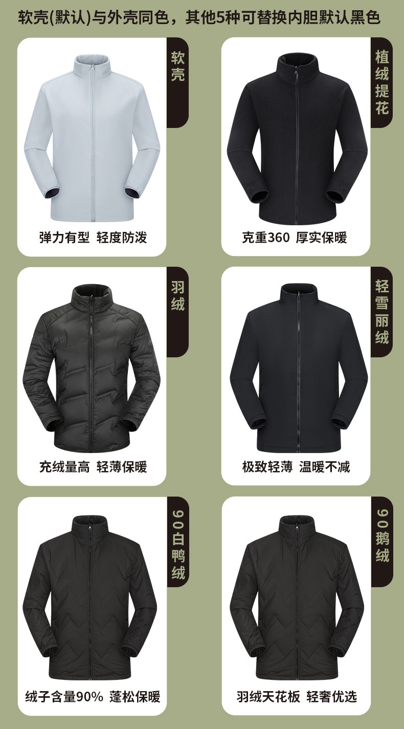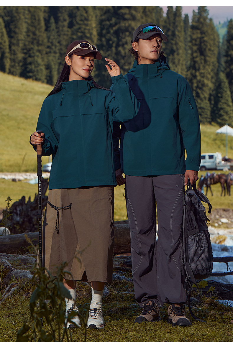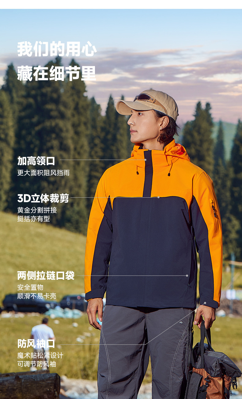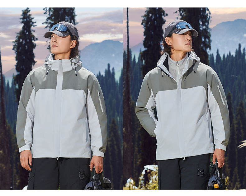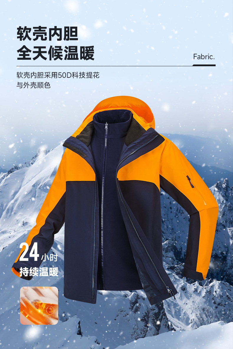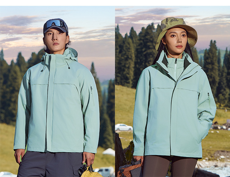 주작색 바람막이 재킷 여성 실외 국가 표준 방수 남성 3인 1 방풍 등산복 주문 제작하였다