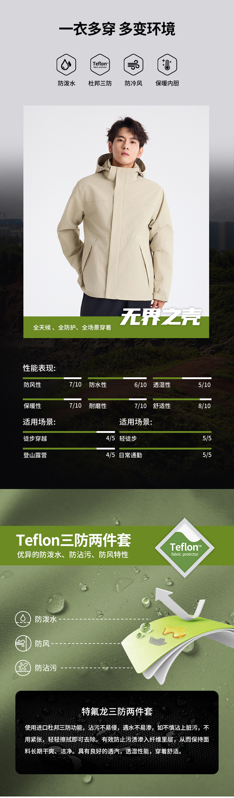 듀폰 세 가지 바람막이 남성용 아웃도어용 방풍, 방수, 오일, 보온 여성용 세 가지 통합 바람막이입니다