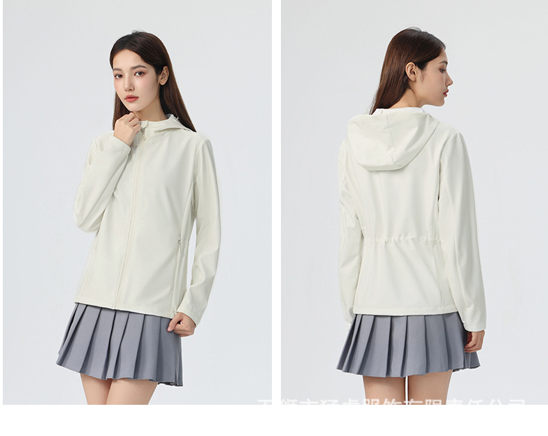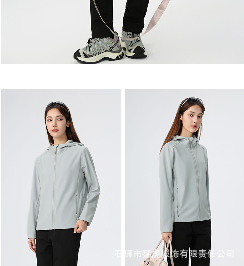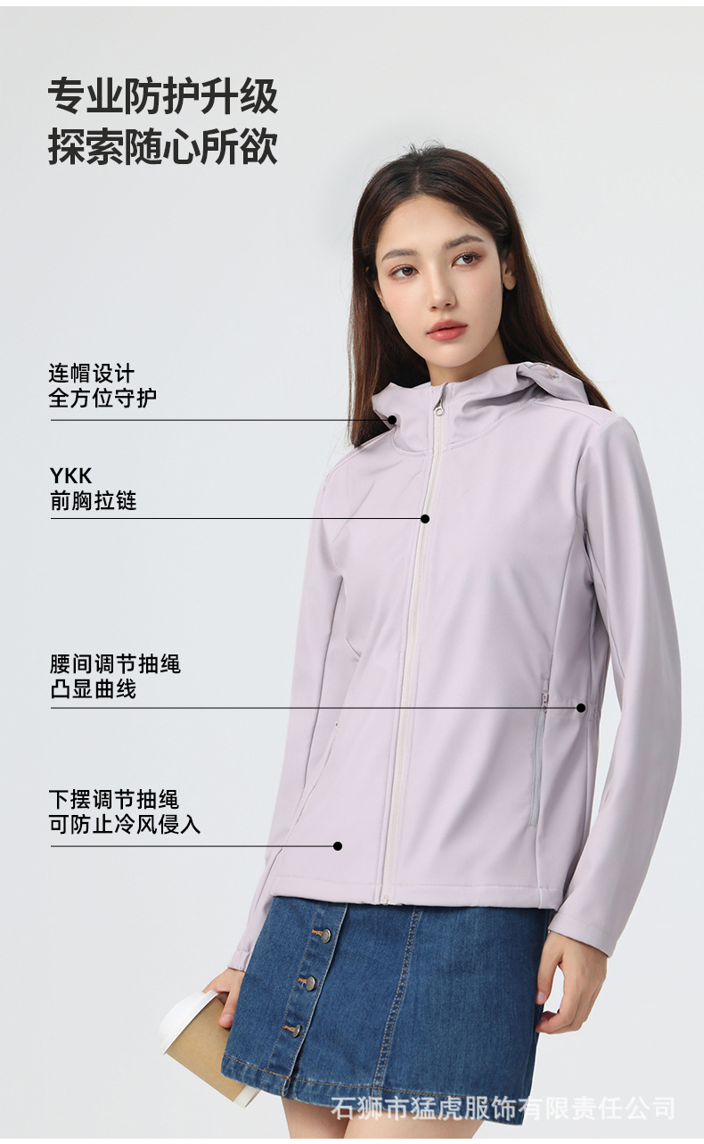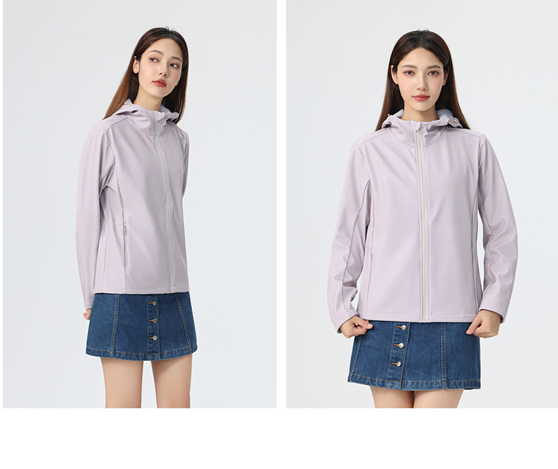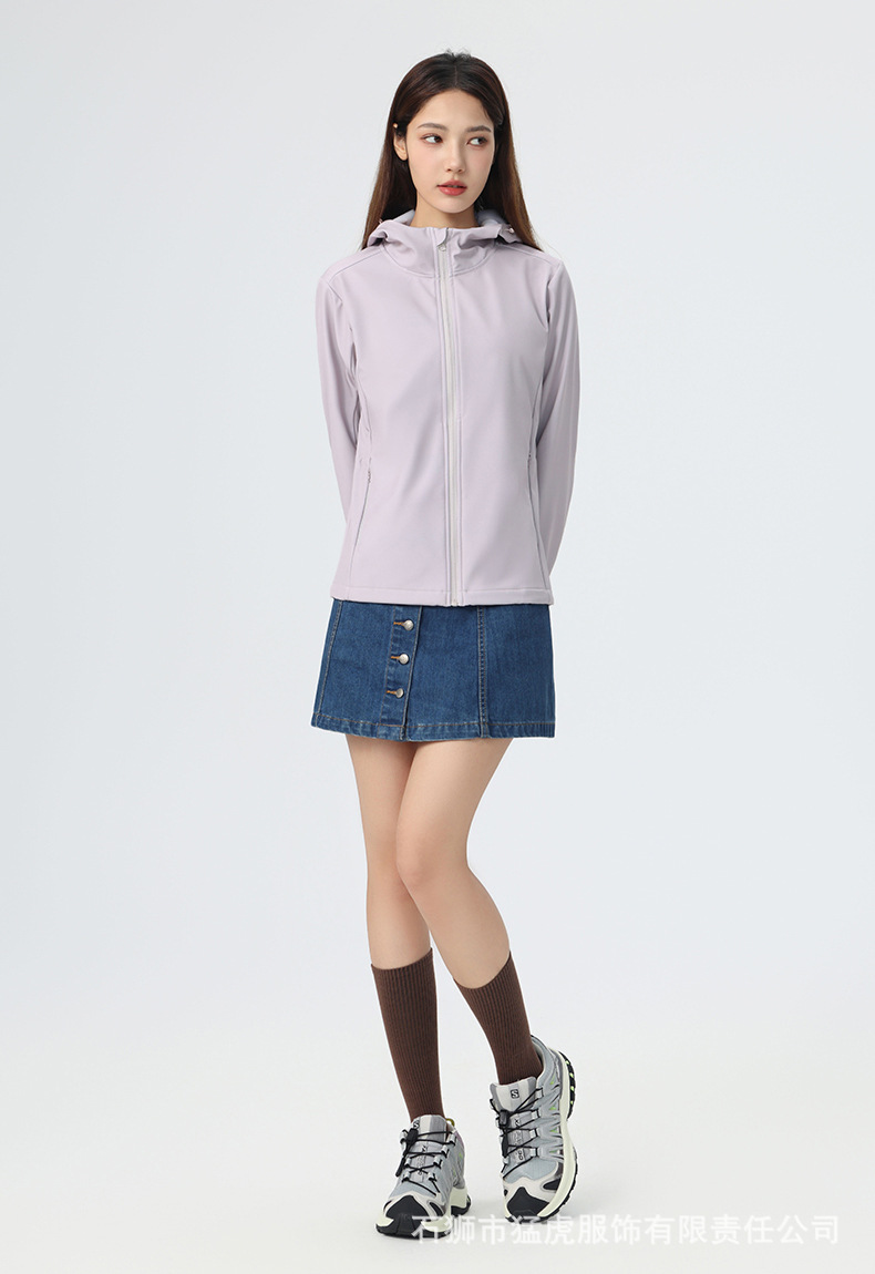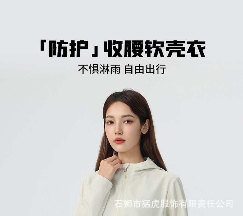 쇼트 기장의 소프트쉘 여성 신상으로 허리 잘려져 날씬해 보이는 가을 아웃도어 트레킹 보온성 살수 차단 코트입니다