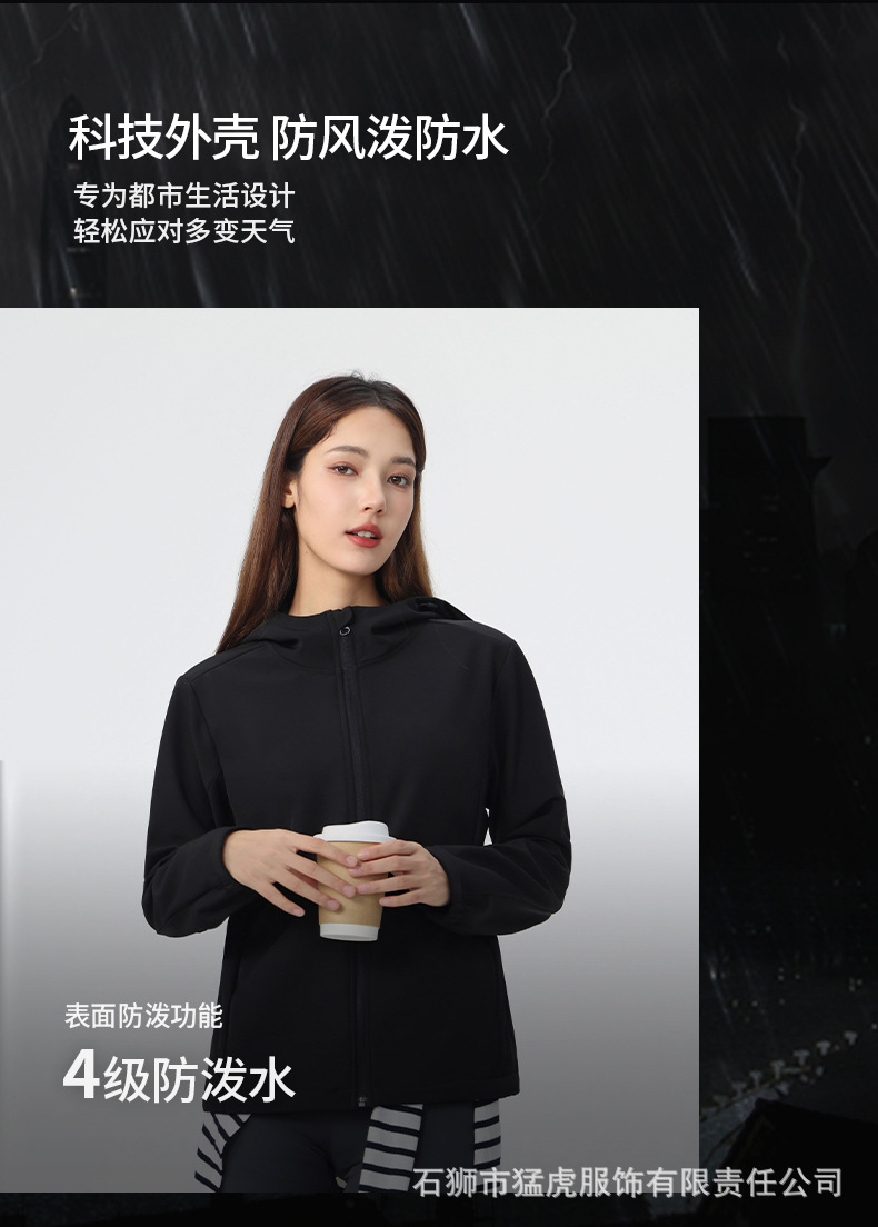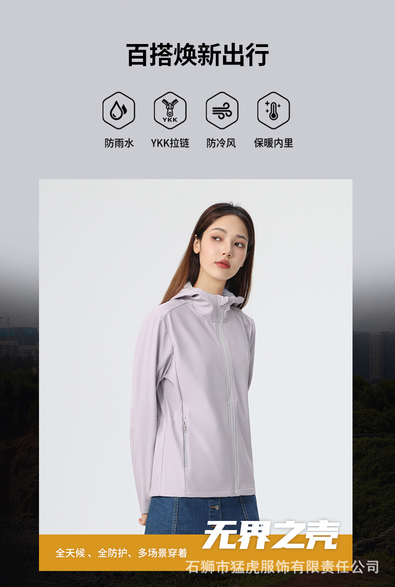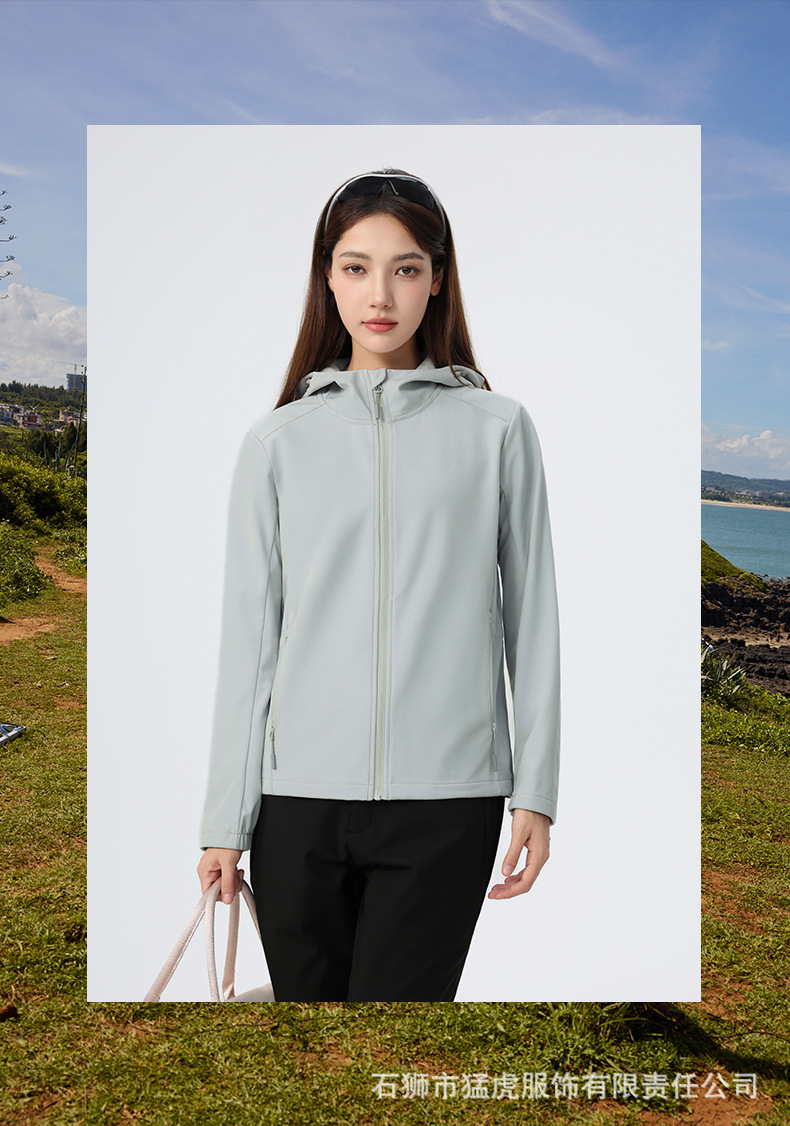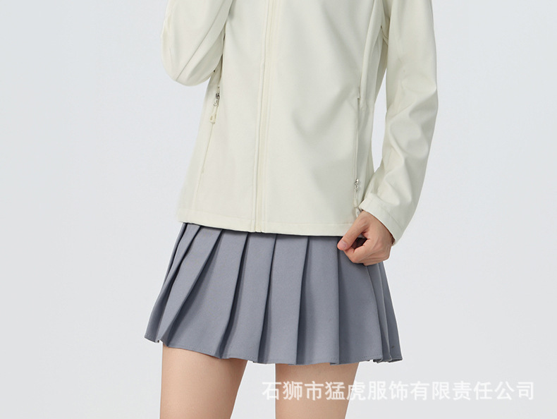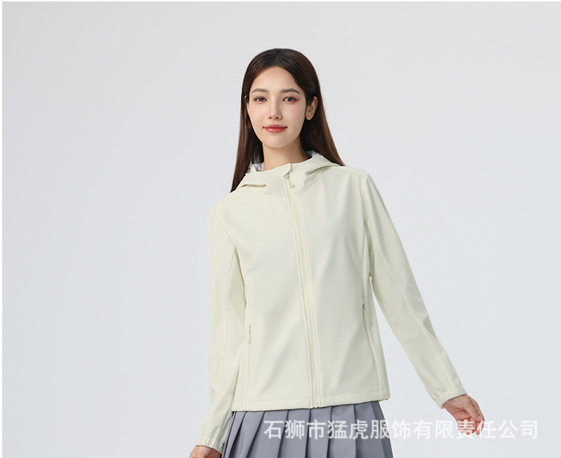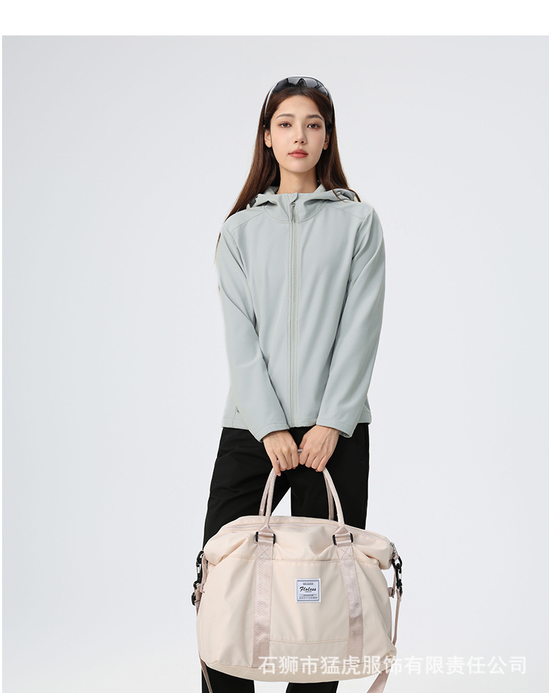 쇼트 기장의 소프트쉘 여성 신상으로 허리 잘려져 날씬해 보이는 가을 아웃도어 트레킹 보온성 살수 차단 코트입니다