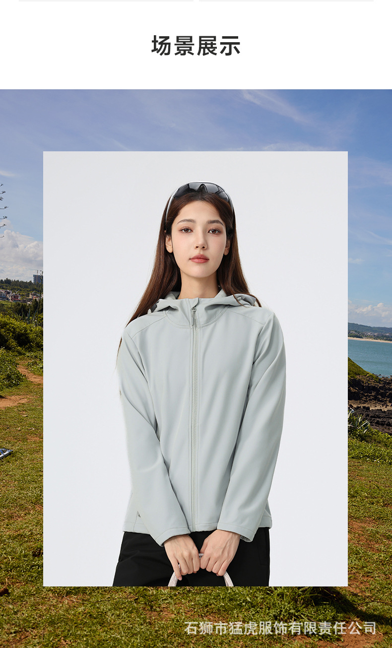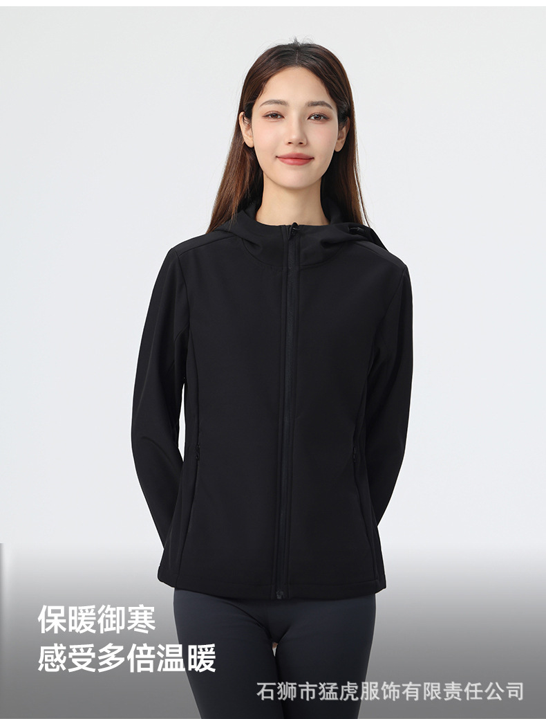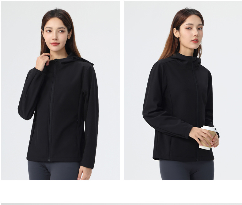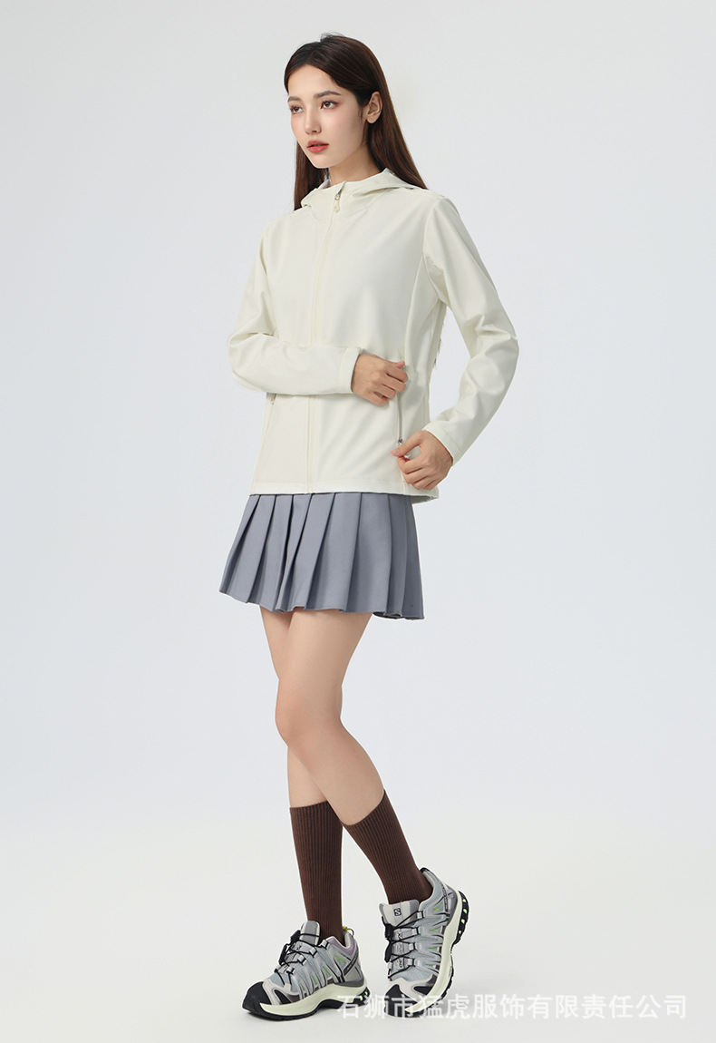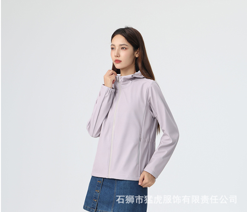 쇼트 기장의 소프트쉘 여성 신상으로 허리 잘려져 날씬해 보이는 가을 아웃도어 트레킹 보온성 살수 차단 코트입니다