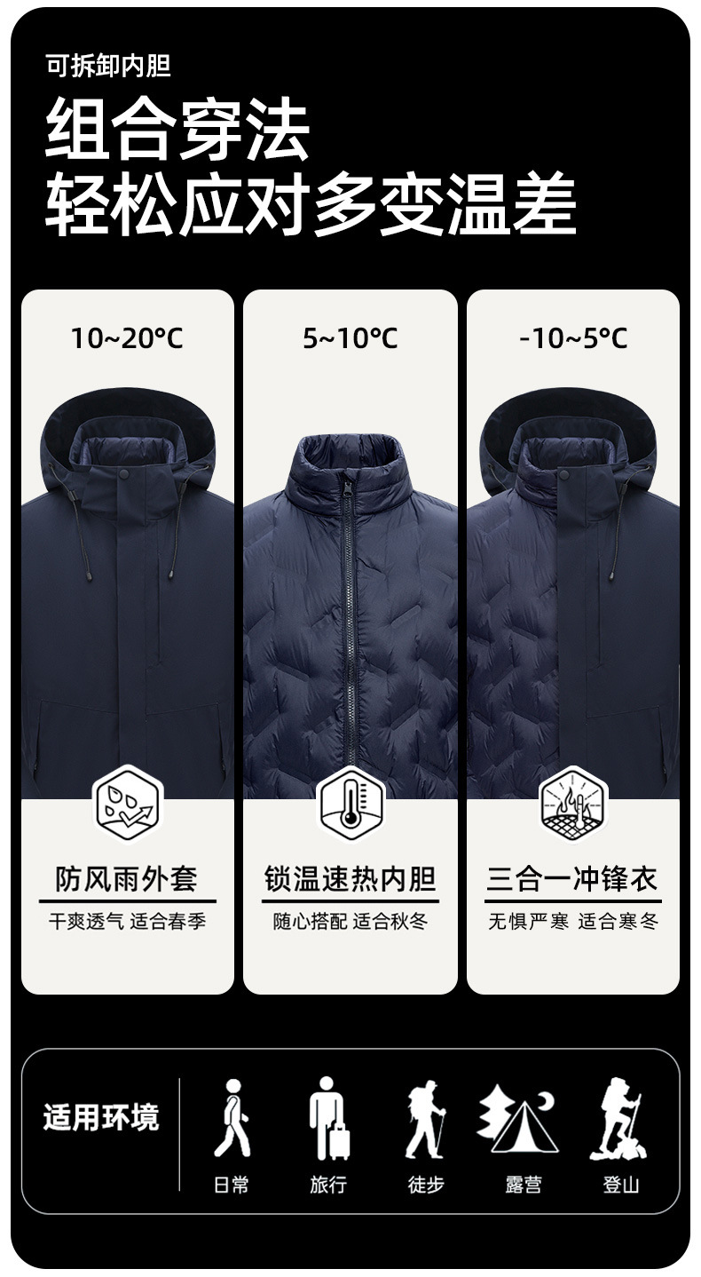 아웃도어용 바람막이 남성용 패딩 투피스 방수 통기 보온 작업복 아우터 여성용 로고