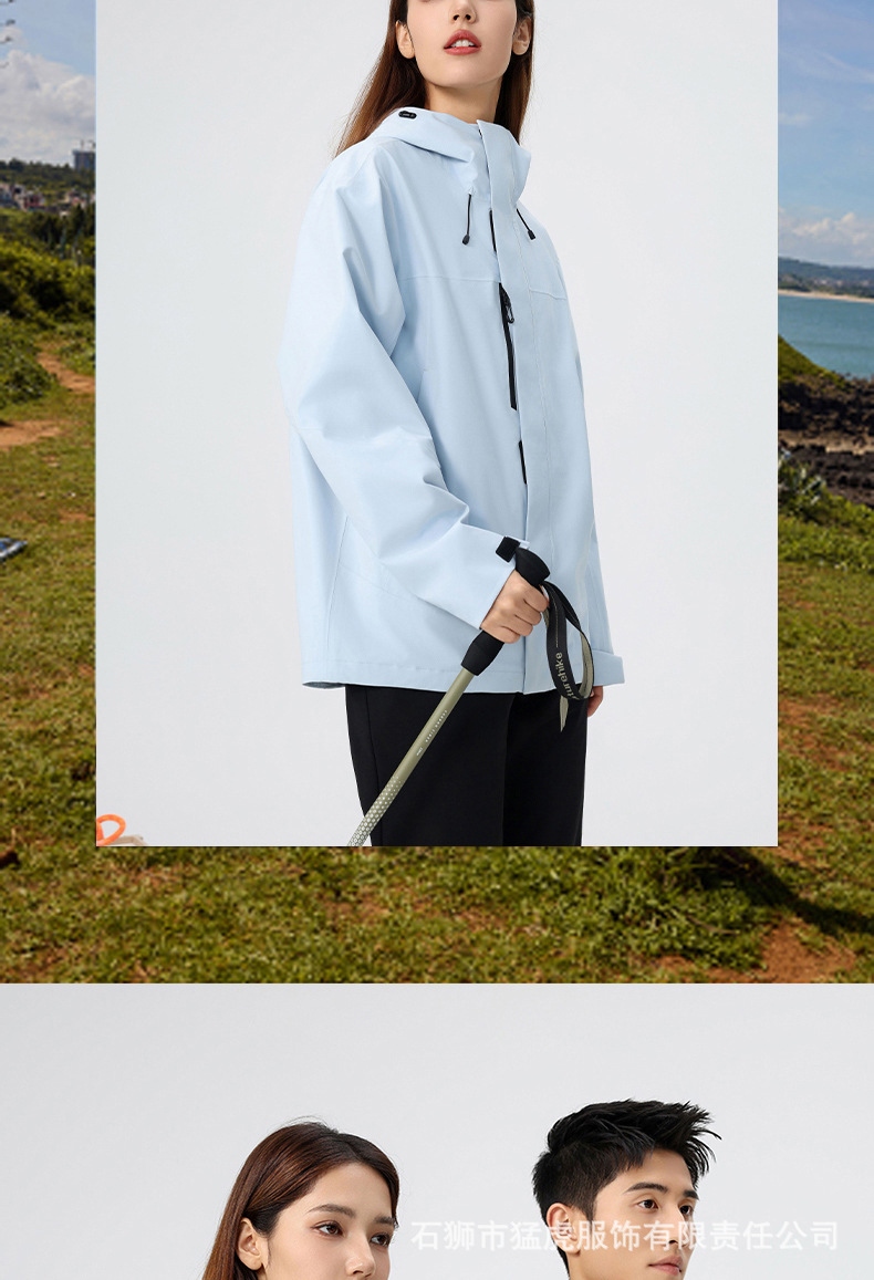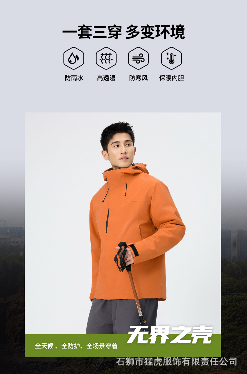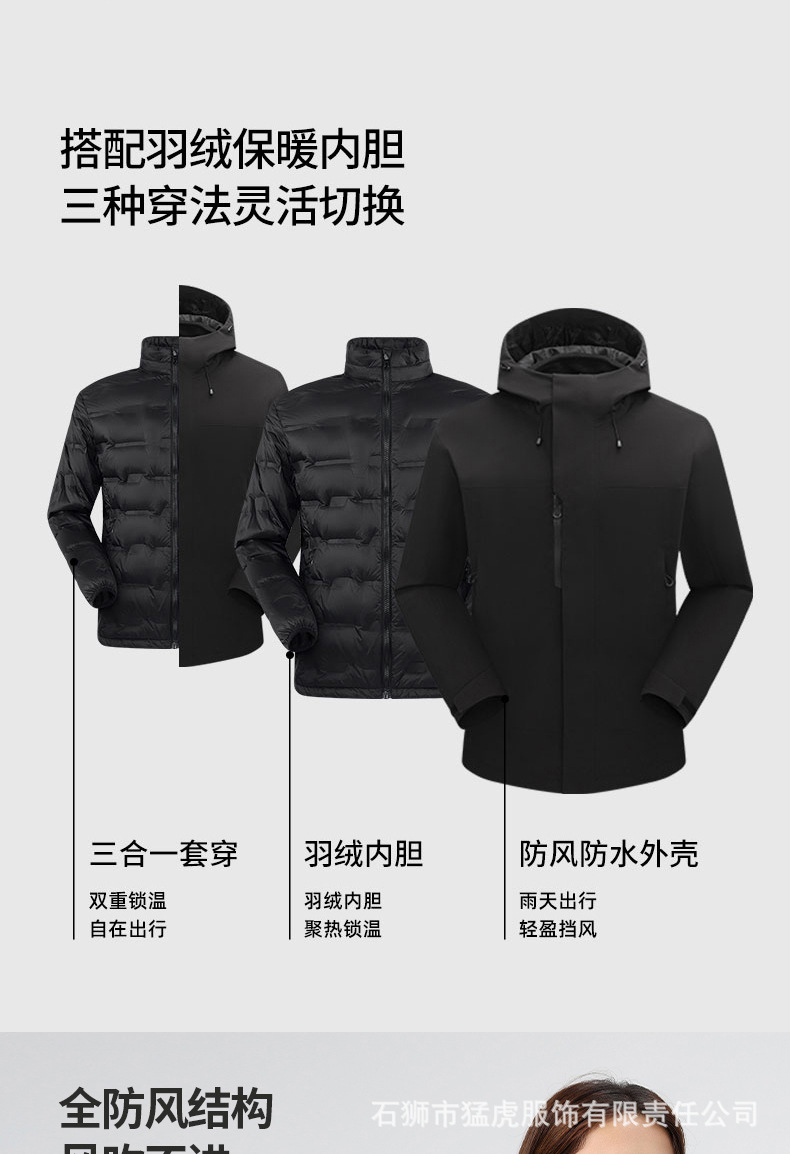 국가표준 다운 바람막이 커플 3 피스 1 아웃도어 내피 탈부착 방풍 보온 등산복
