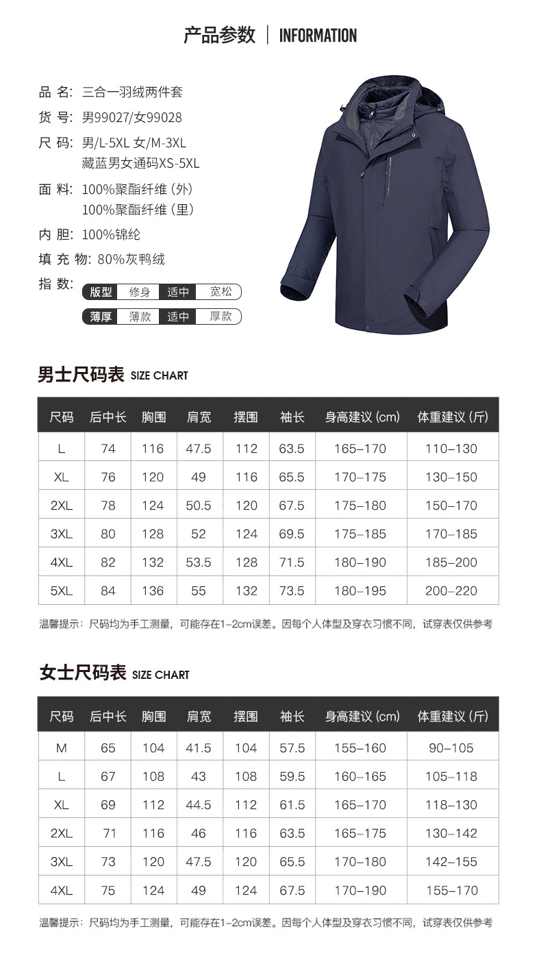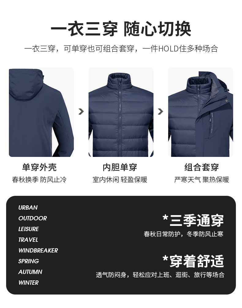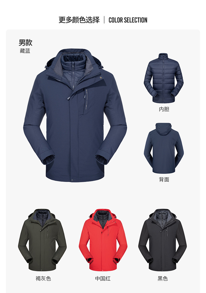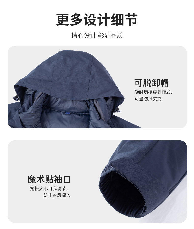 품질 3 피스 다운 바람막이 남성용 방수 방풍 투피스 아우터 여성용 방한 아우터 커스텀 로고