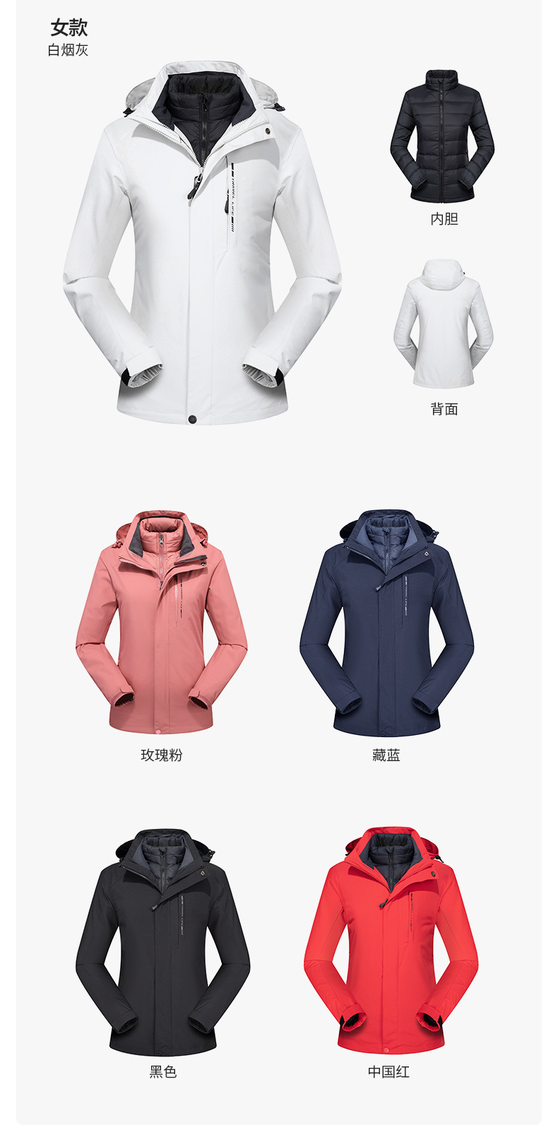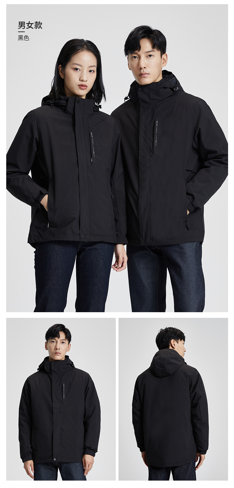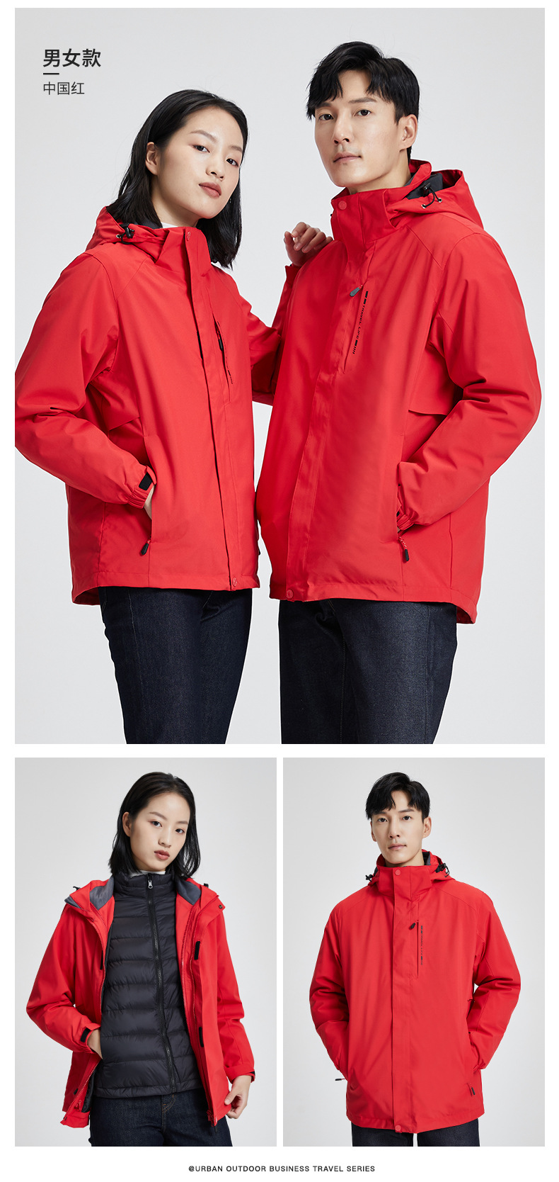 품질 3 피스 다운 바람막이 남성용 방수 방풍 투피스 아우터 여성용 방한 아우터 커스텀 로고