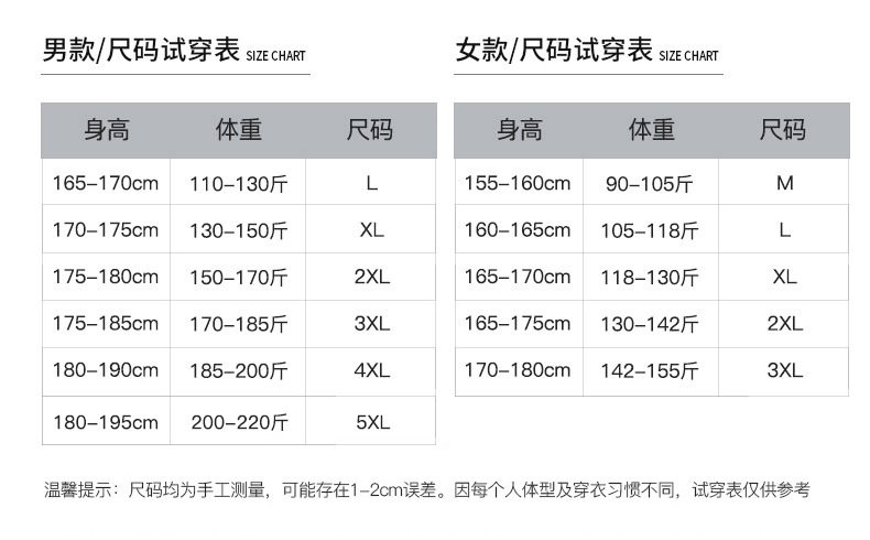 参考尺寸表信息或咨询客服