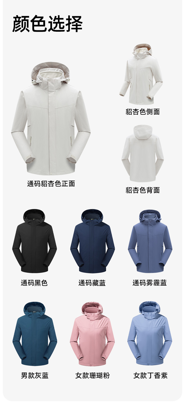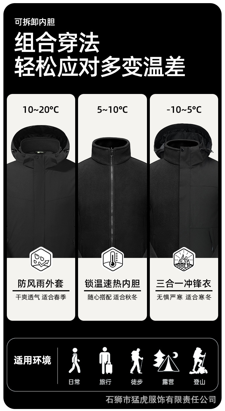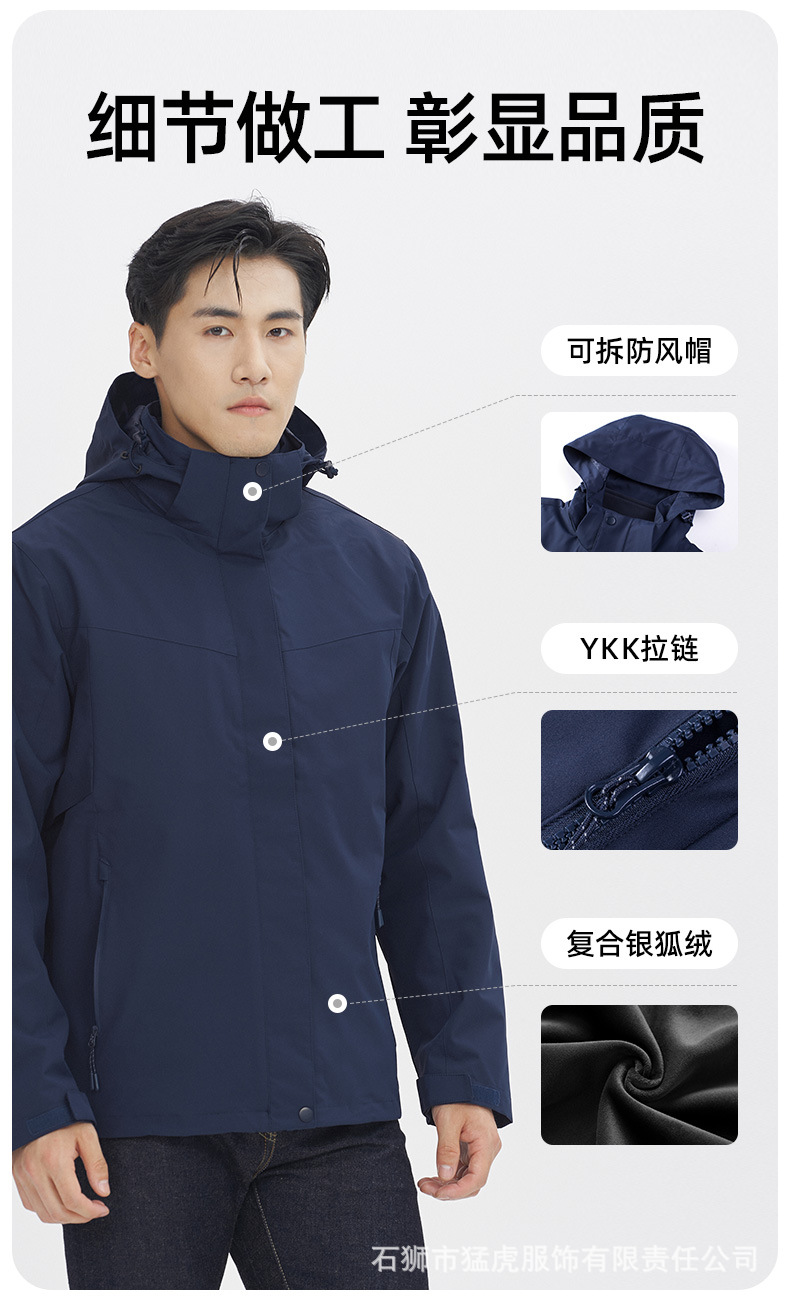 남성용 삼합일 바람막이옷 보온성 오일오염 방지 실버폭스 벨벳 재킷 여성 야외복 맞춤 로고