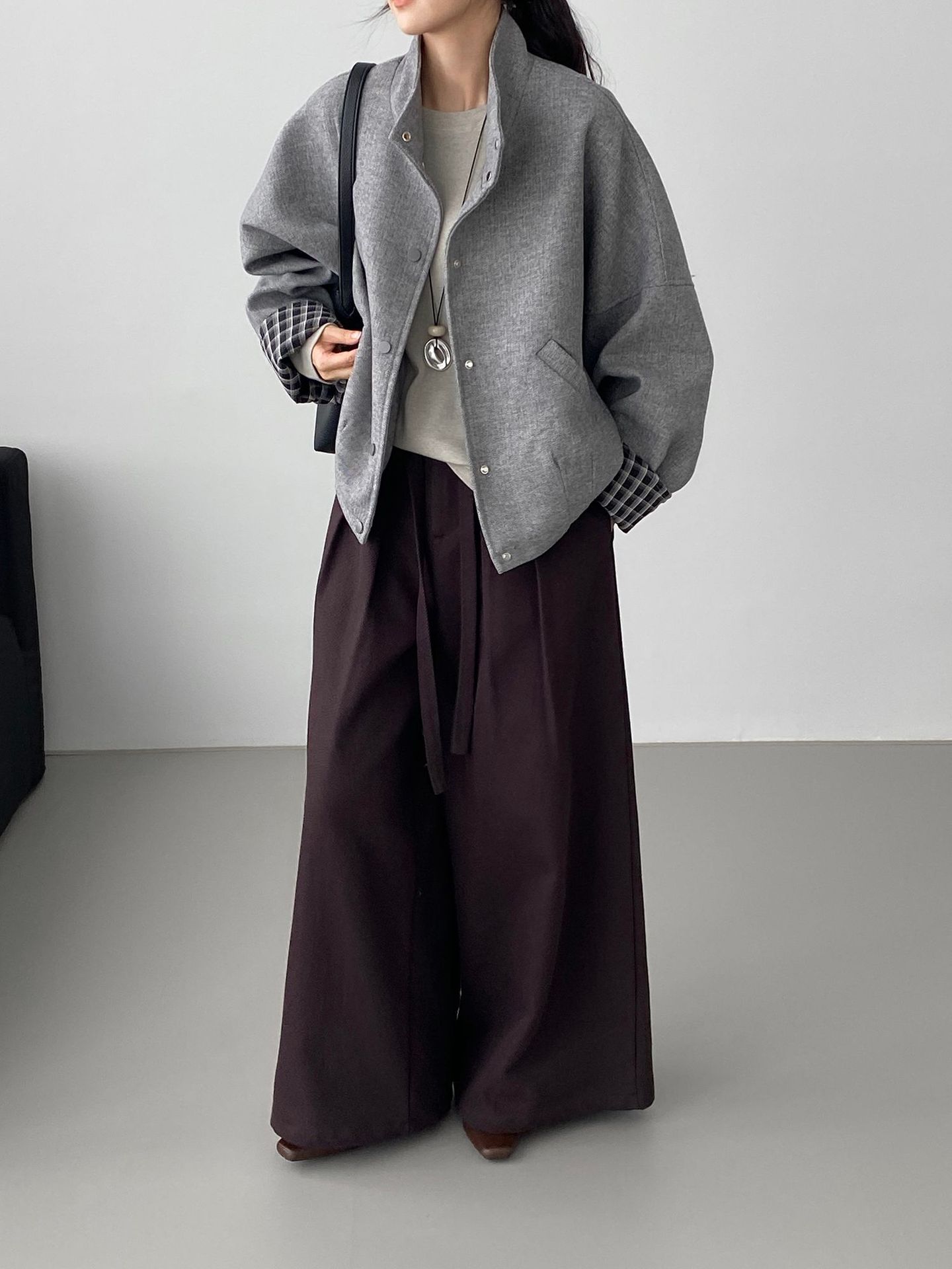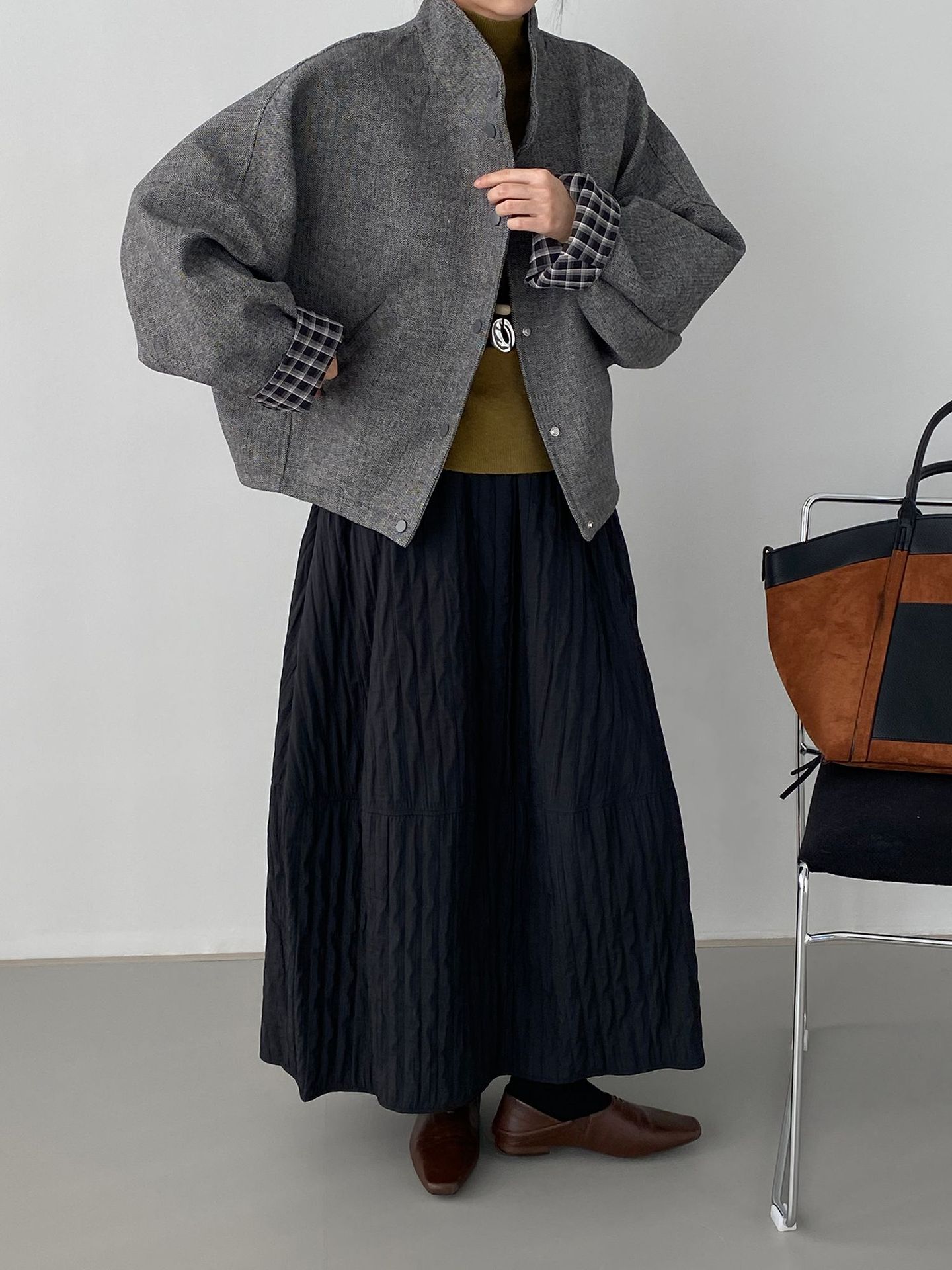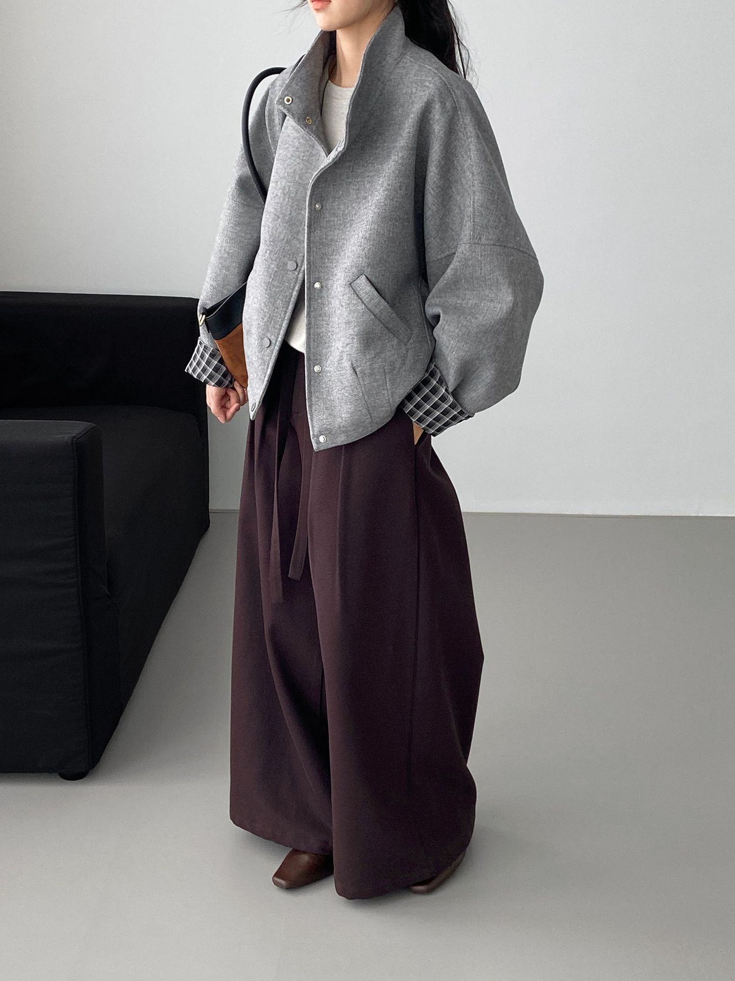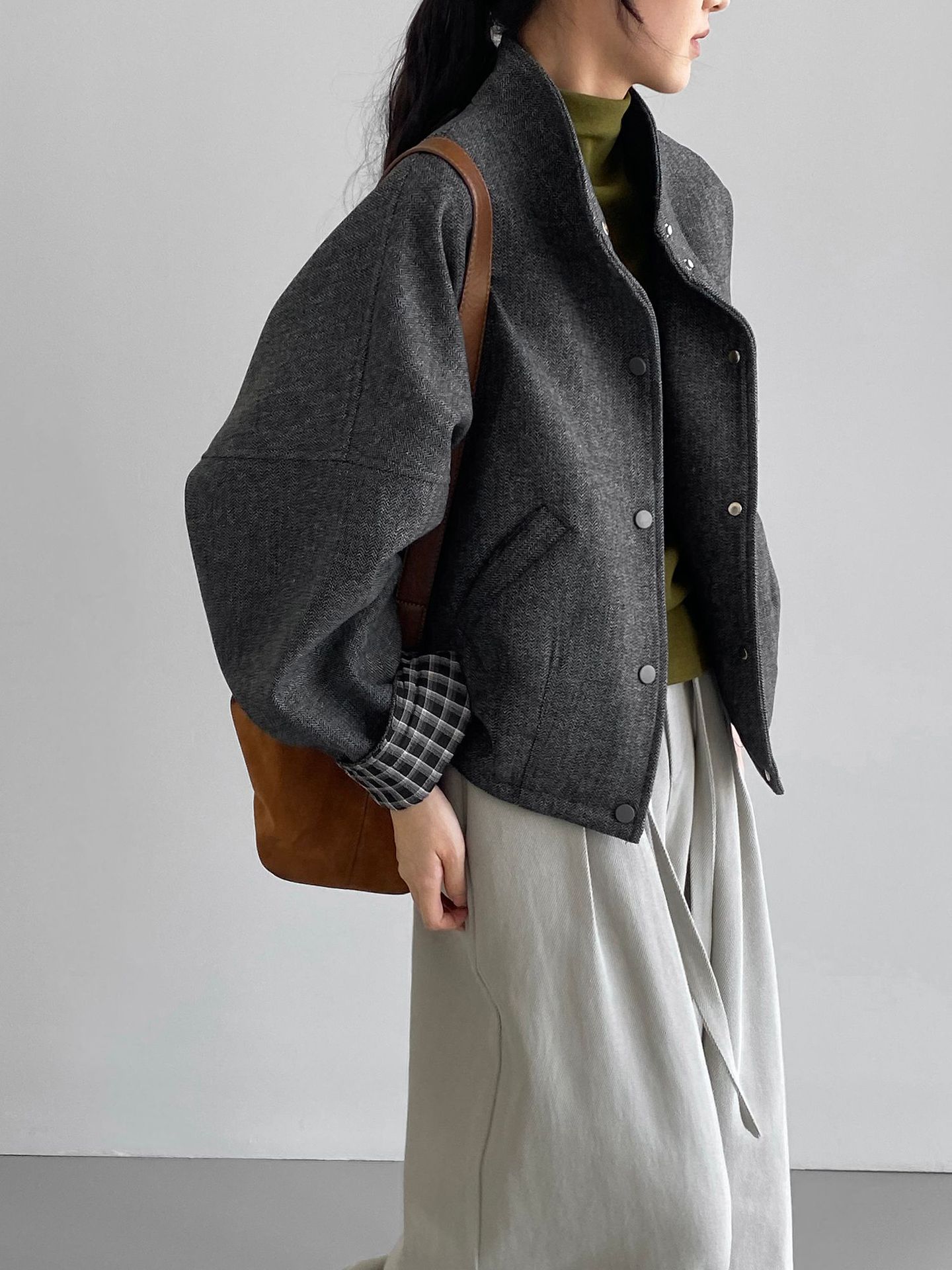 한풍 빈티지 40 울 차이나 아우터 여성 그레이 체크 짜임 와이드 트위드 탑