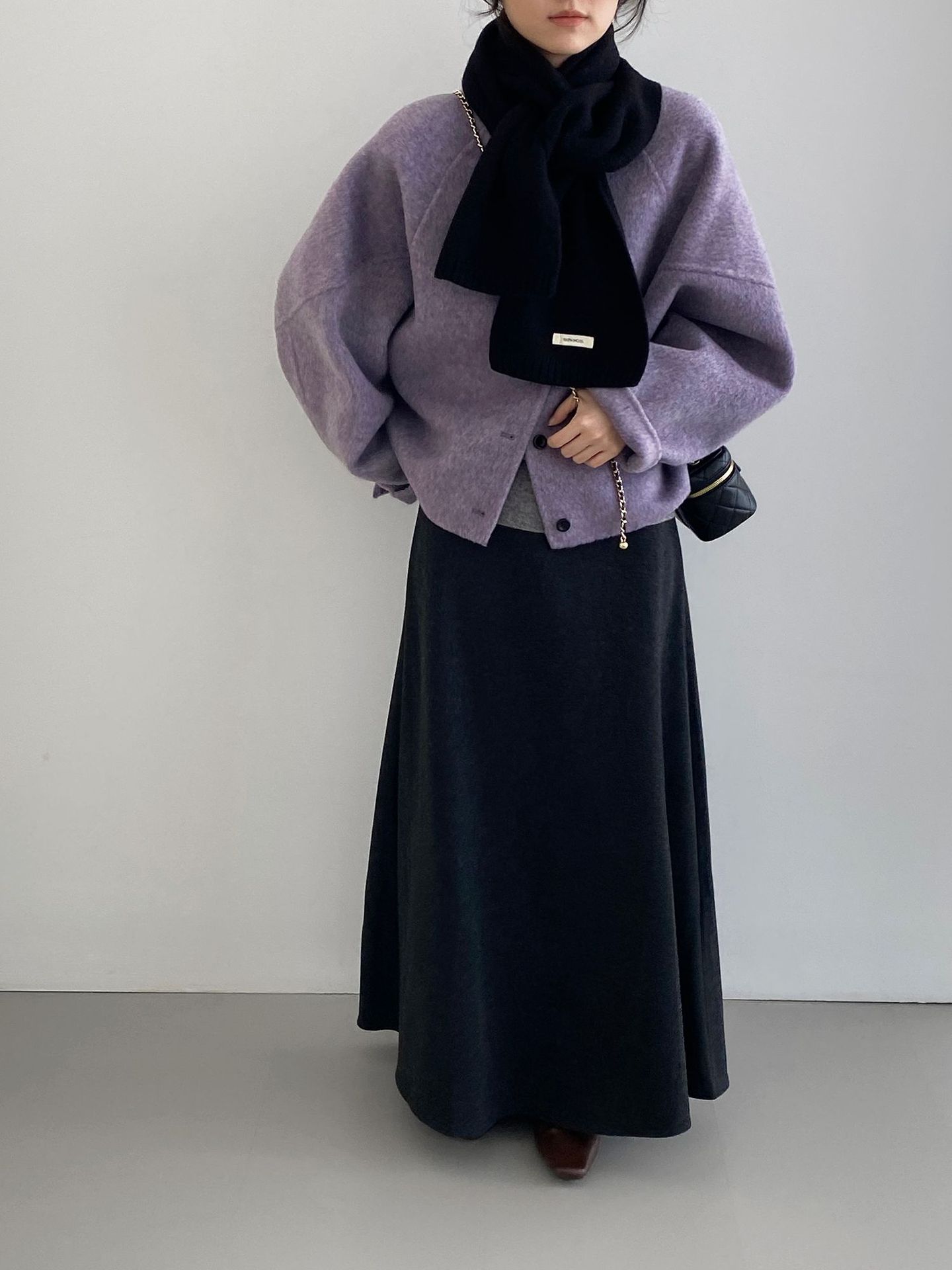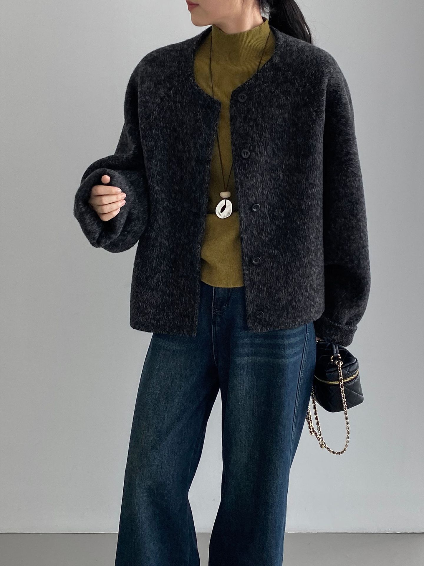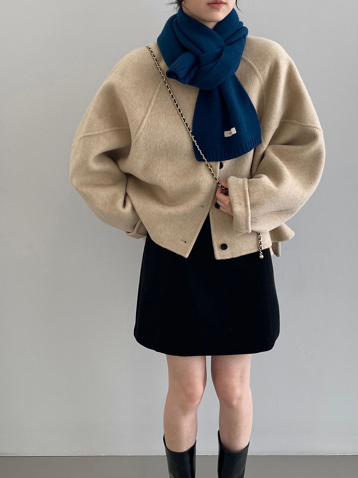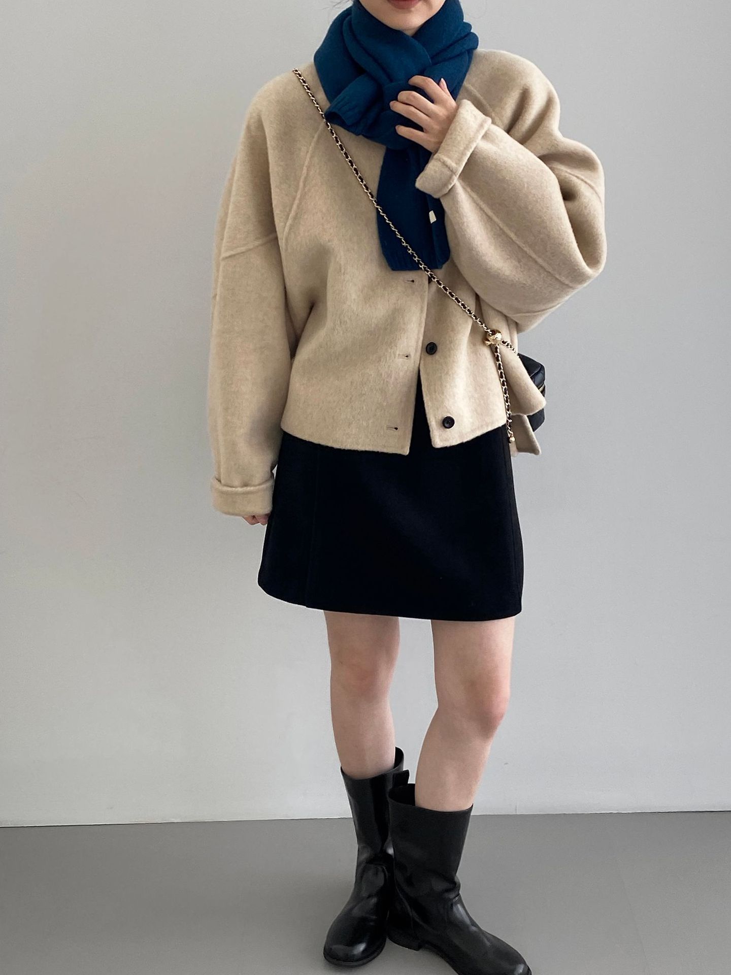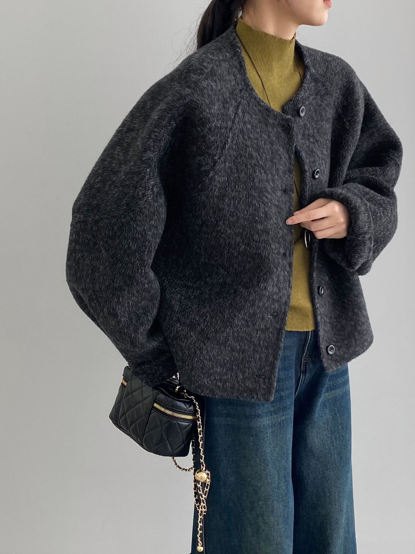 보라색 코트 라운드넥 울 알파카 양면 트위드 숏 루즈핏 코트여