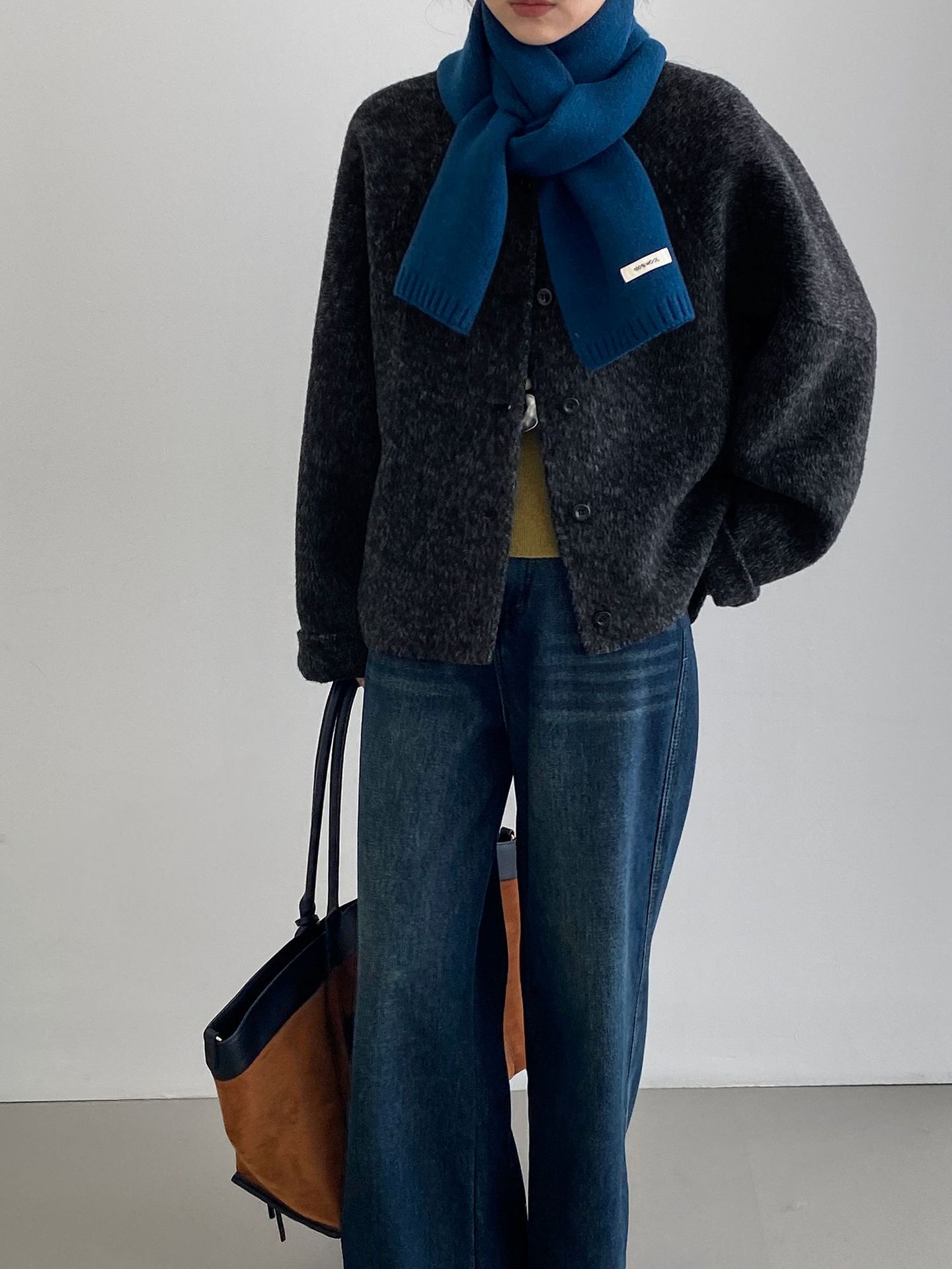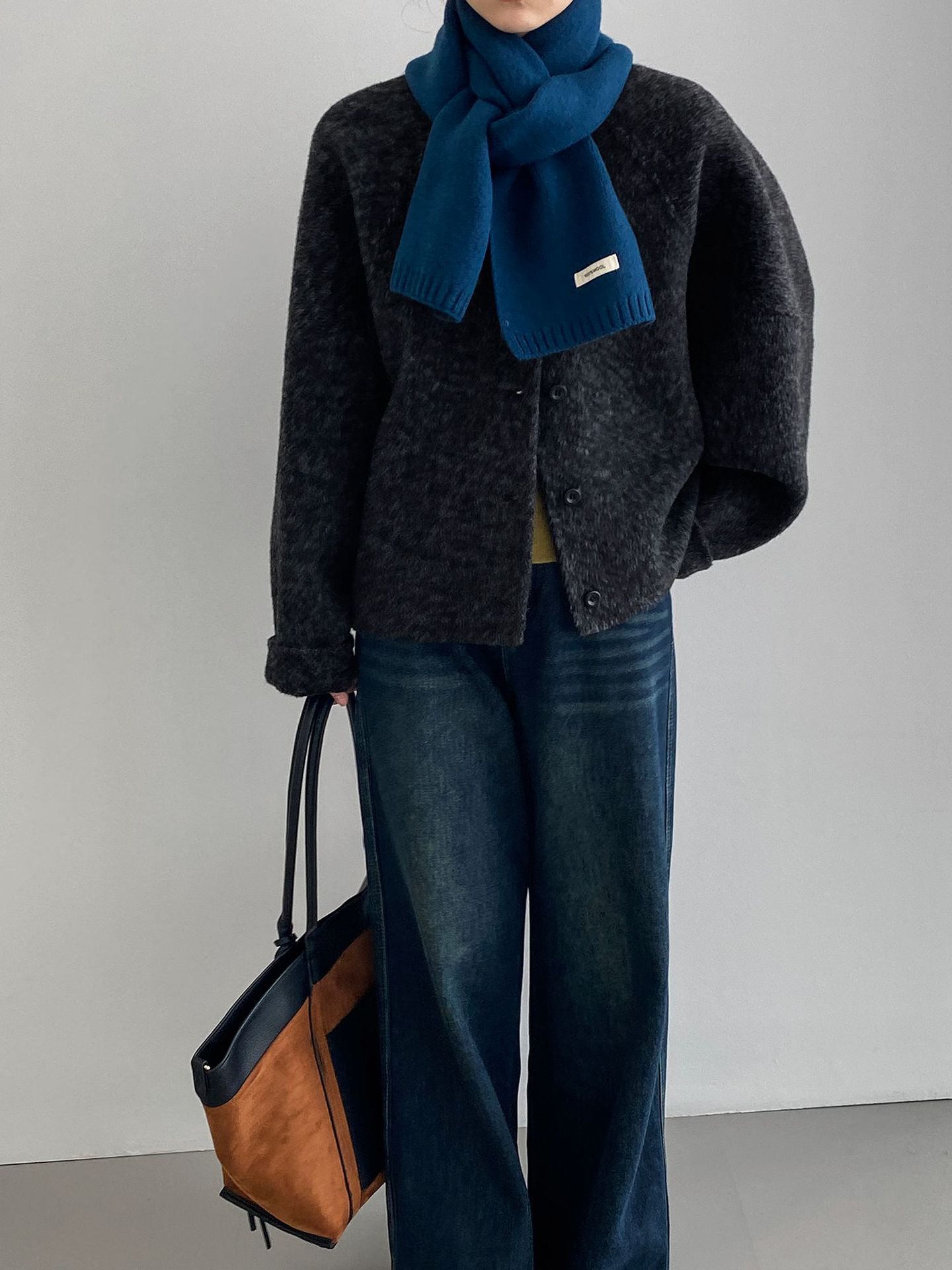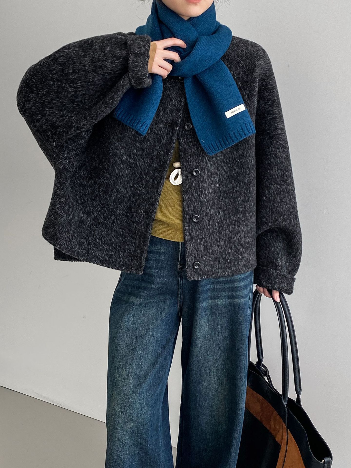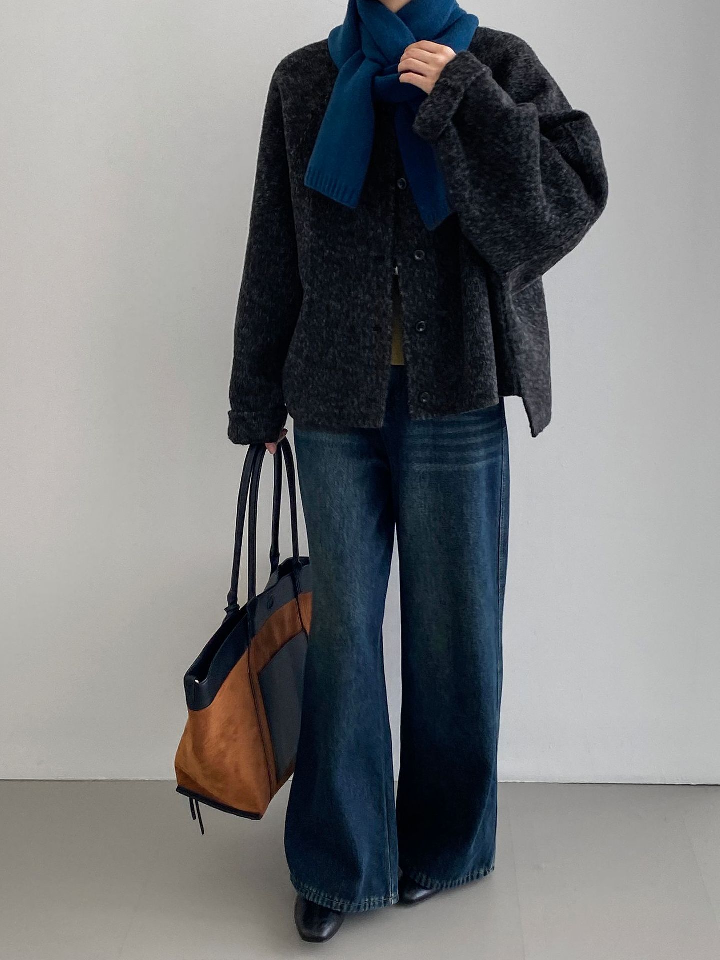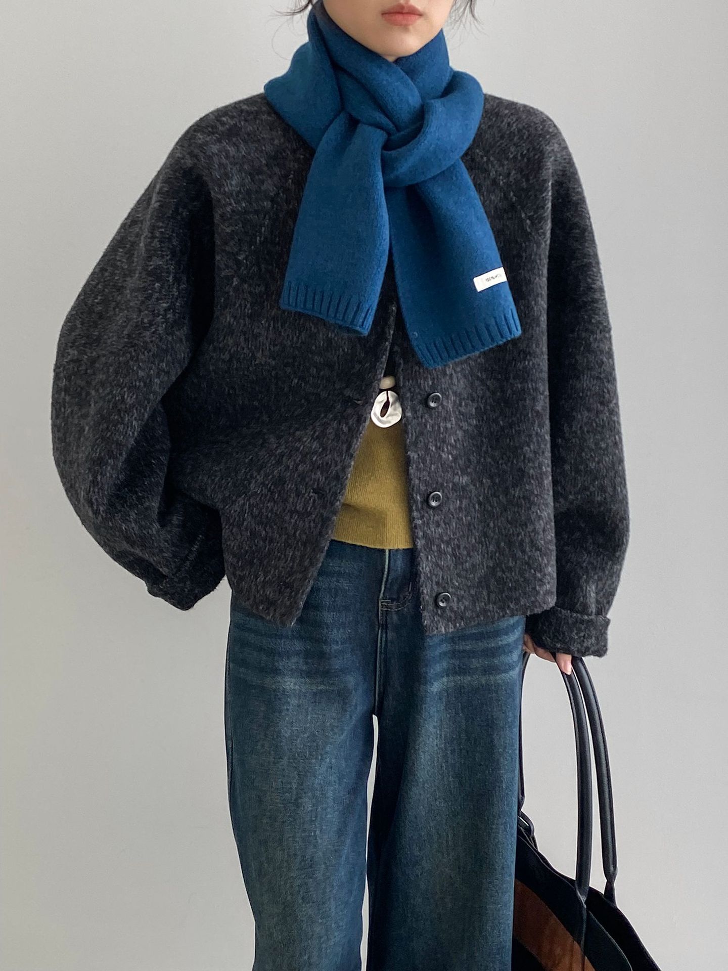보라색 코트 라운드넥 울 알파카 양면 트위드 숏 루즈핏 코트여