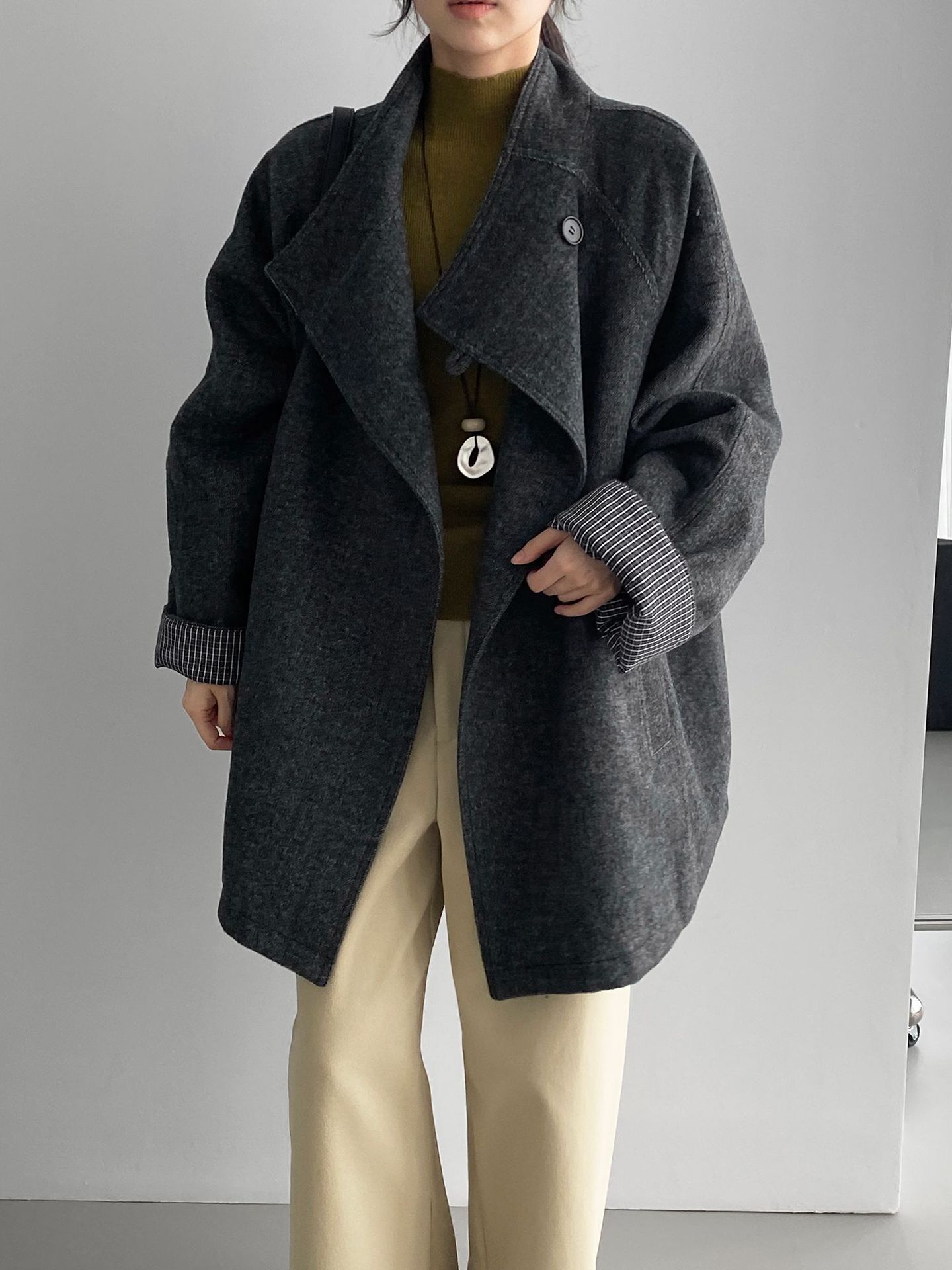 겨울 고급감 90 화이트 오리털 속관 차이나 쿼드 체크 트렌치코트 패딩점퍼녀