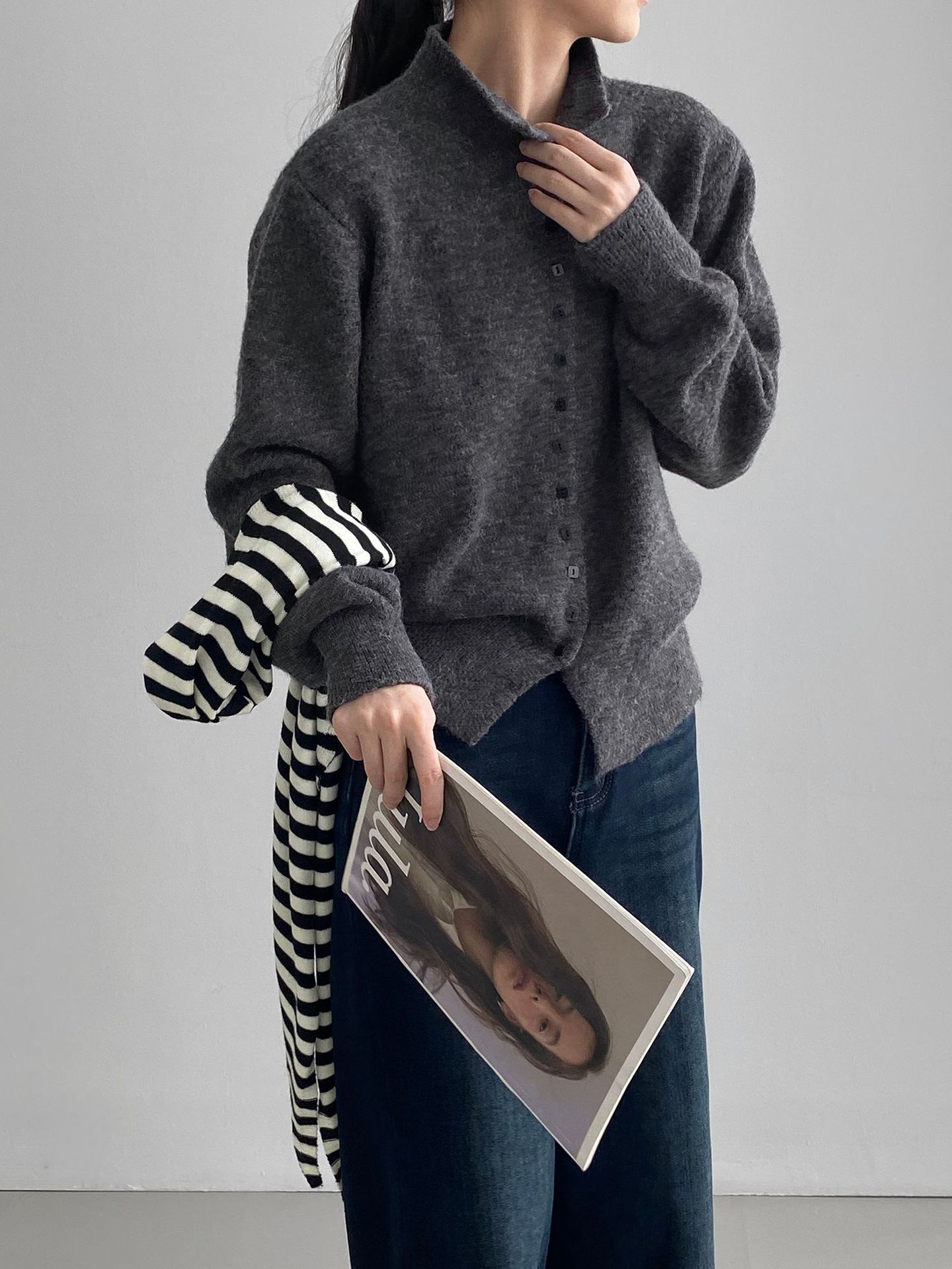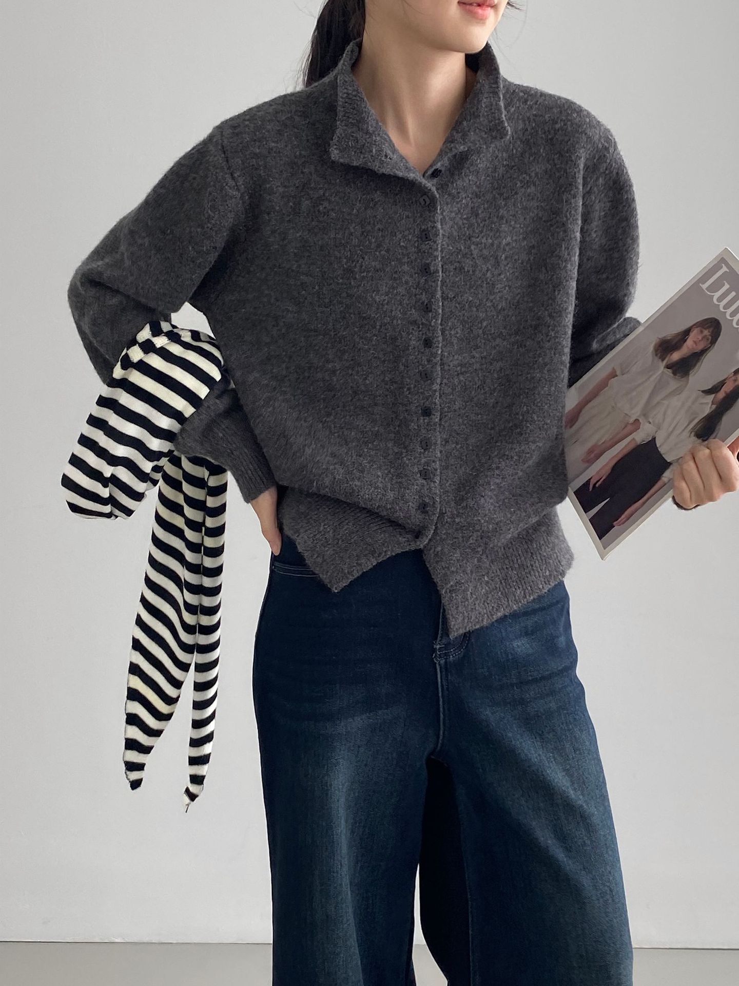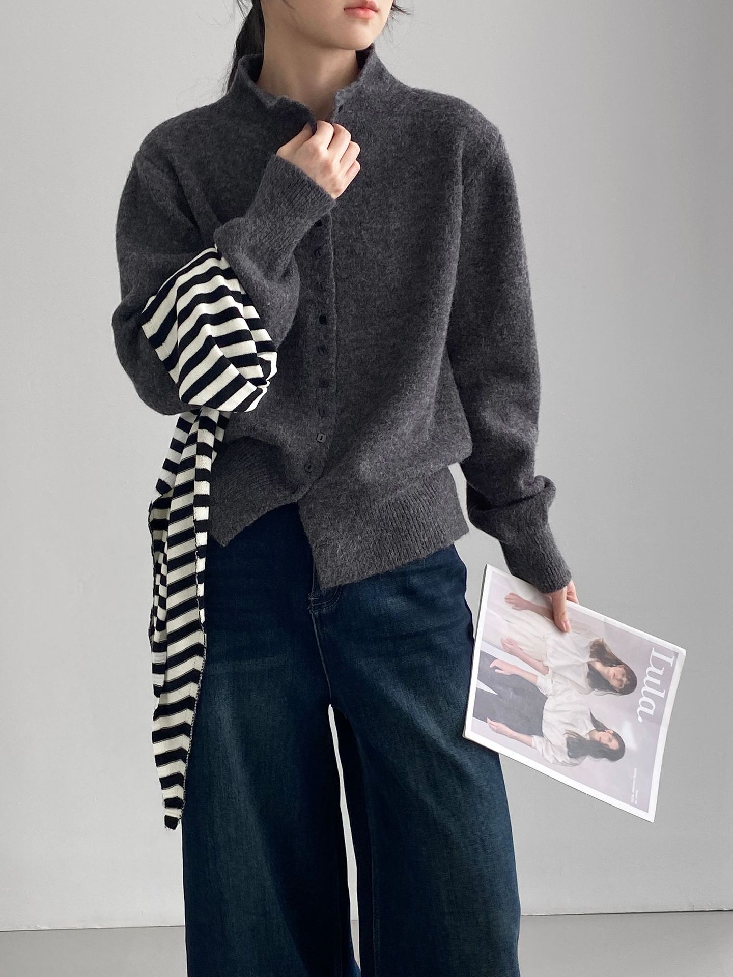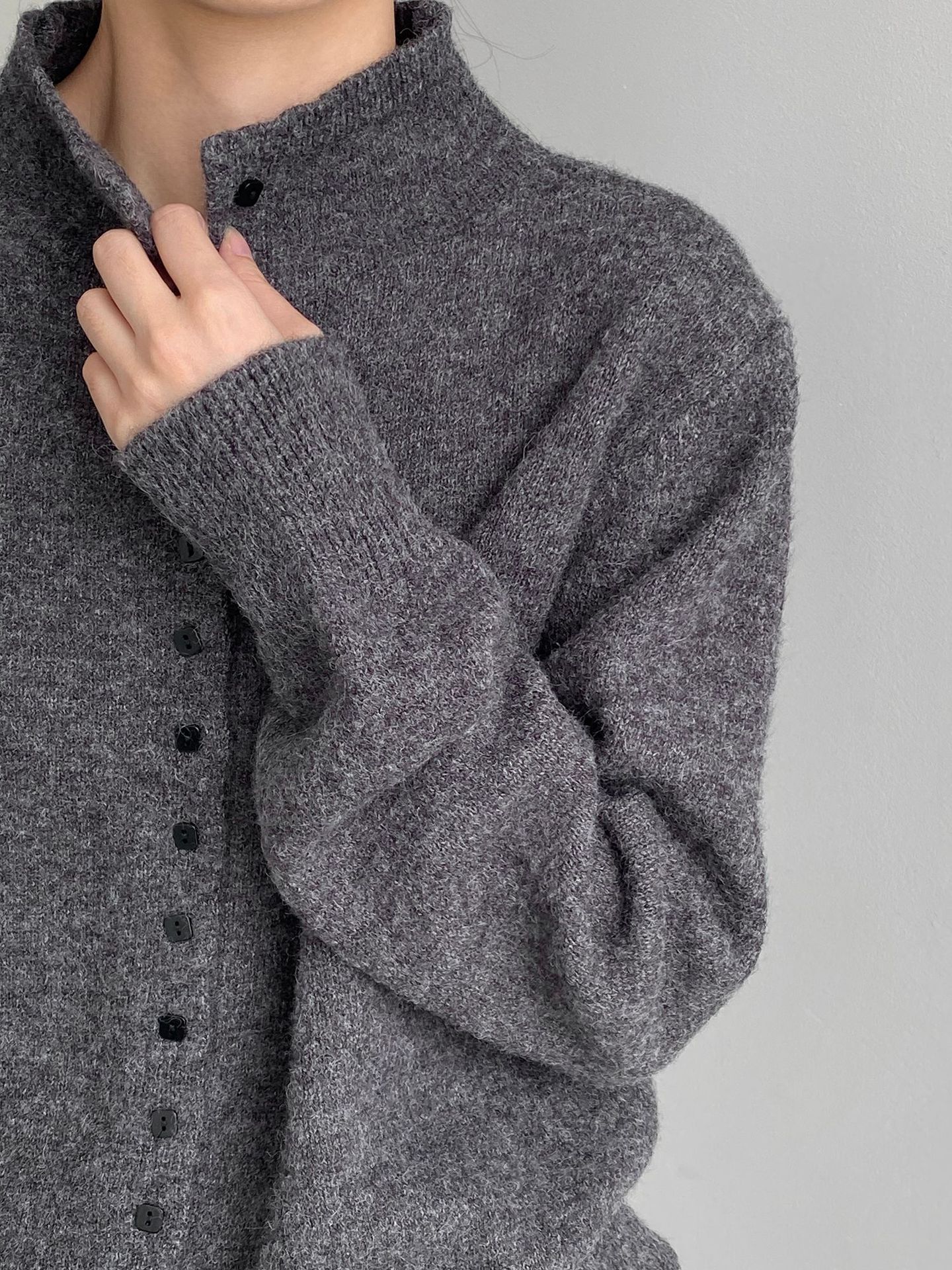 한풍 빈티지 그레이 반목 니트 모노톤의 쫀득쫀득한 단추 카디건입니다