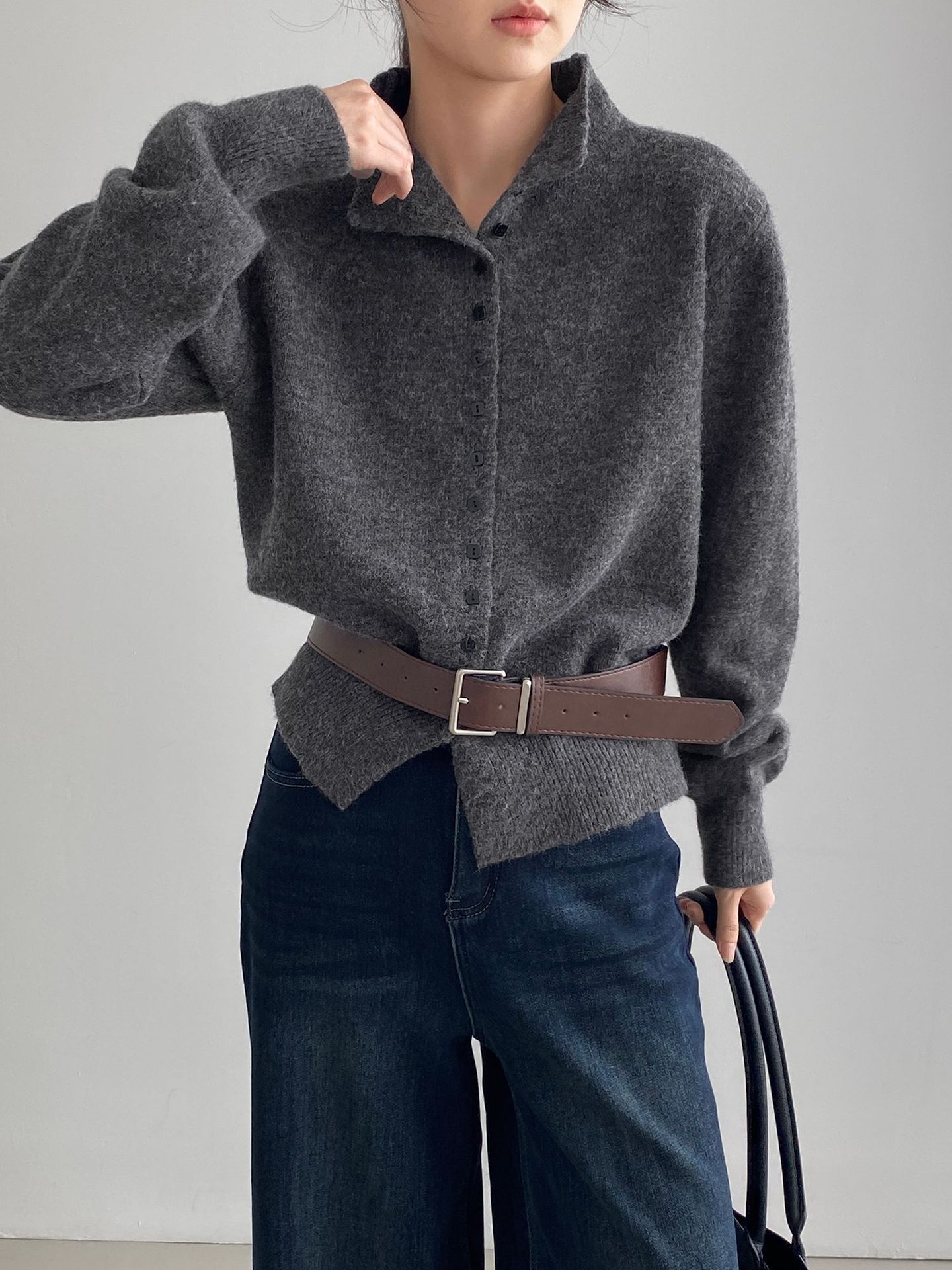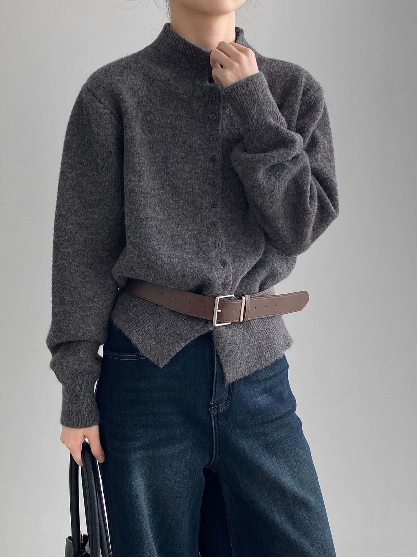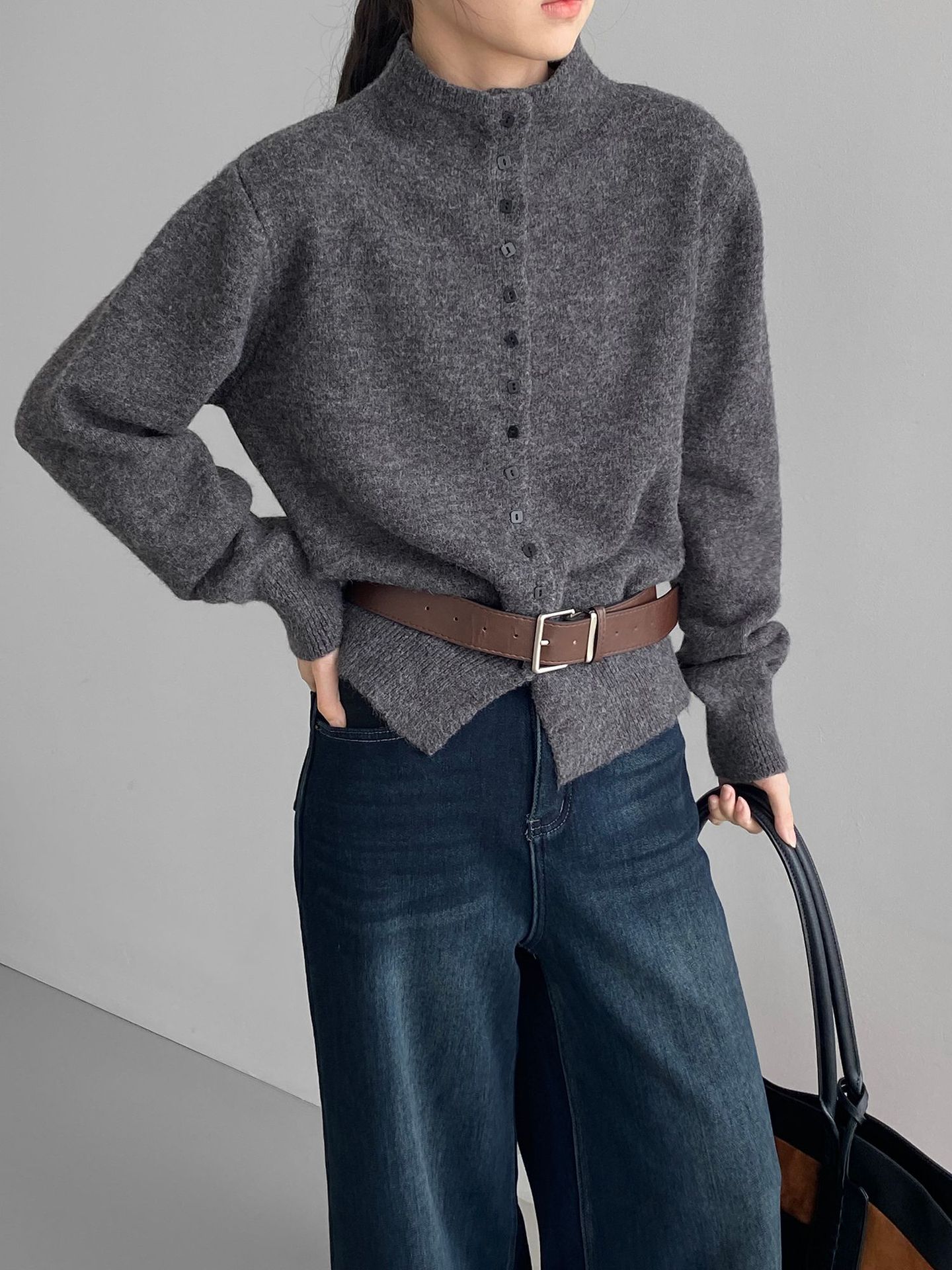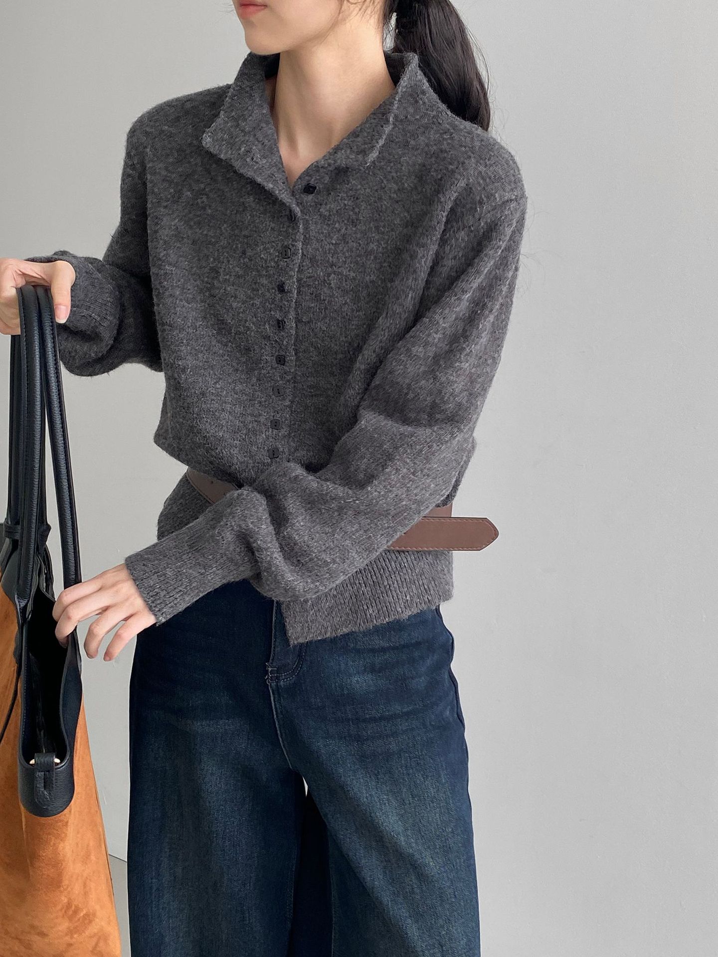 한풍 빈티지 그레이 반목 니트 모노톤의 쫀득쫀득한 단추 카디건입니다