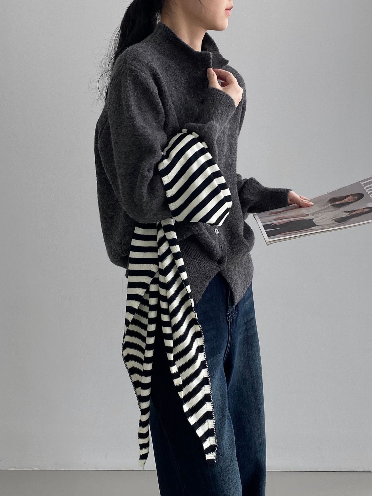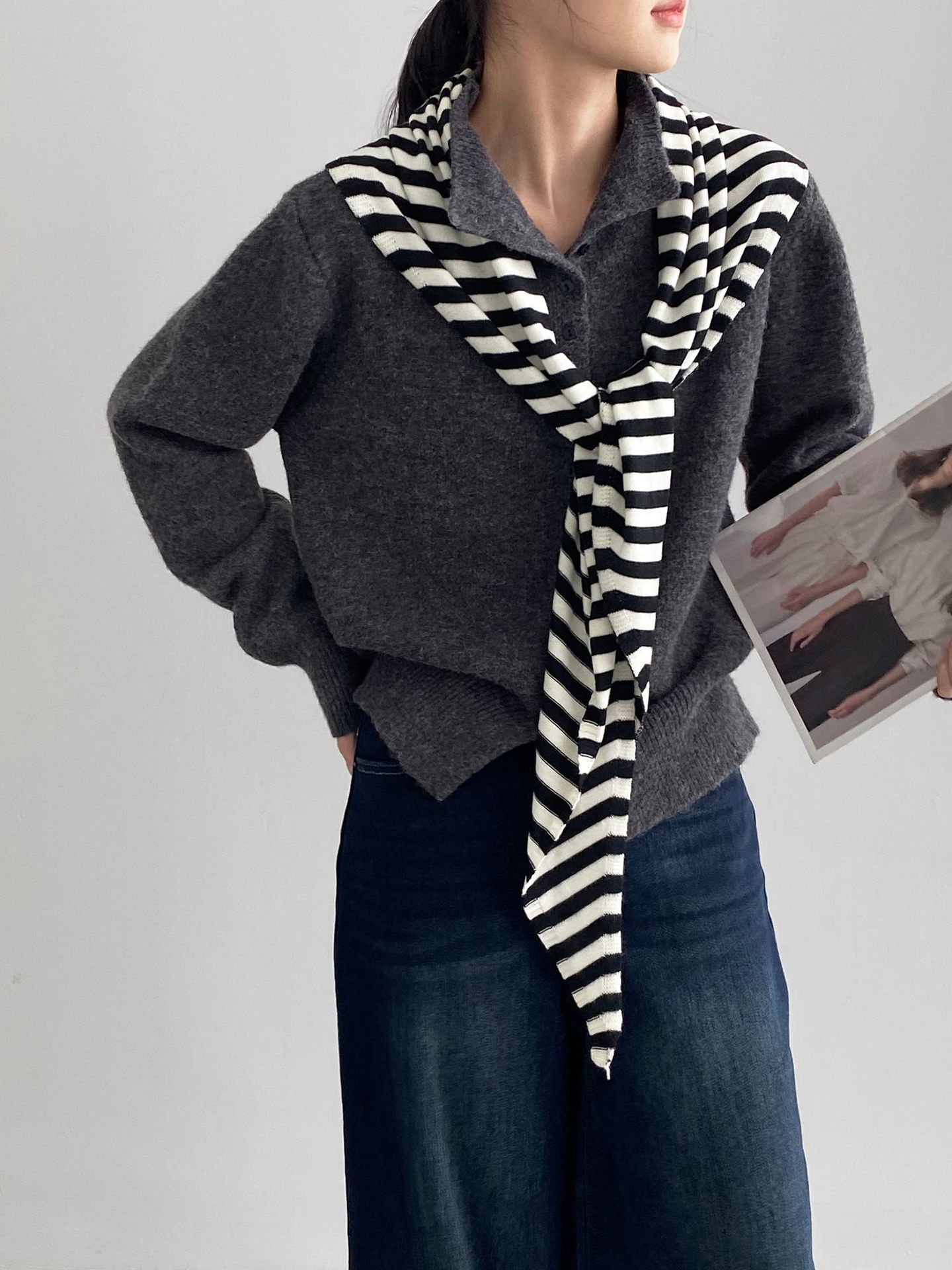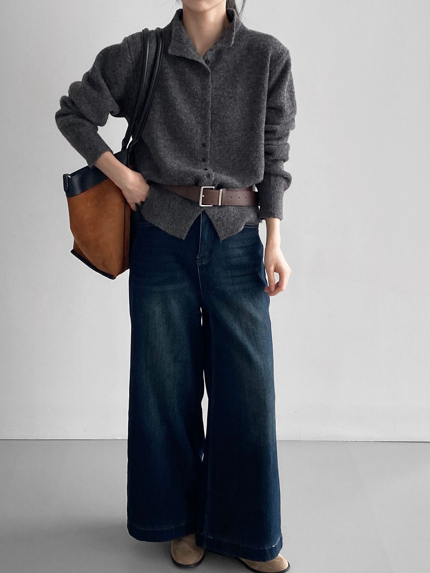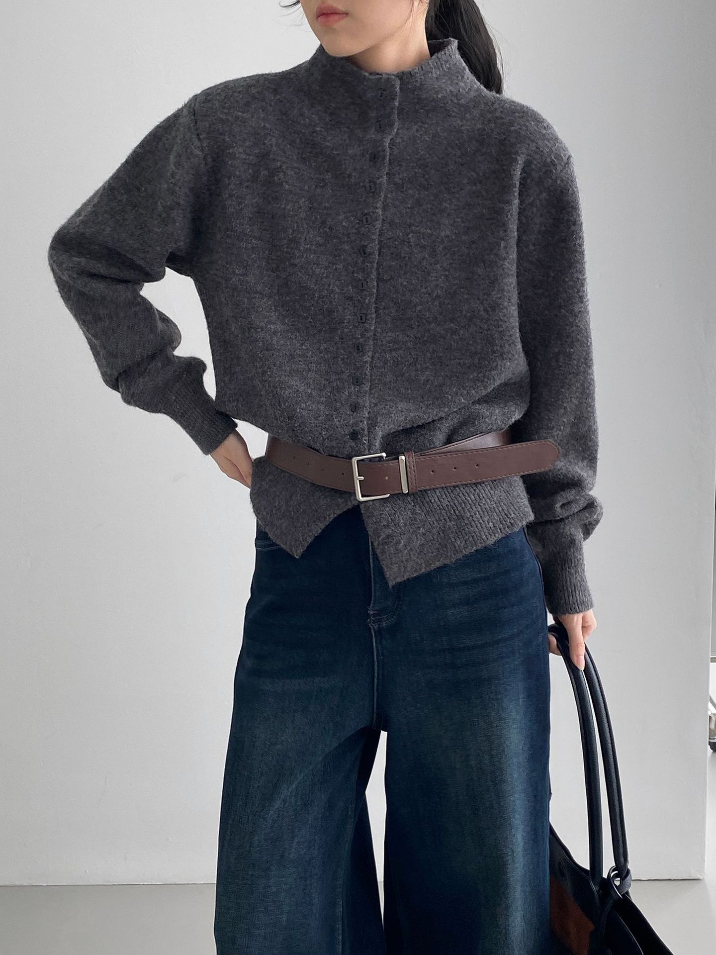 한풍 빈티지 그레이 반목 니트 모노톤의 쫀득쫀득한 단추 카디건입니다