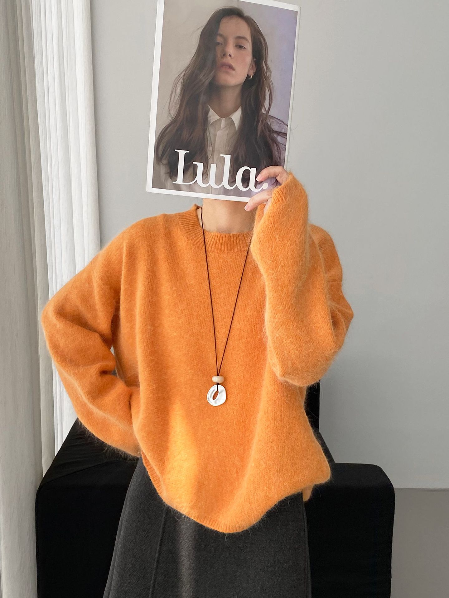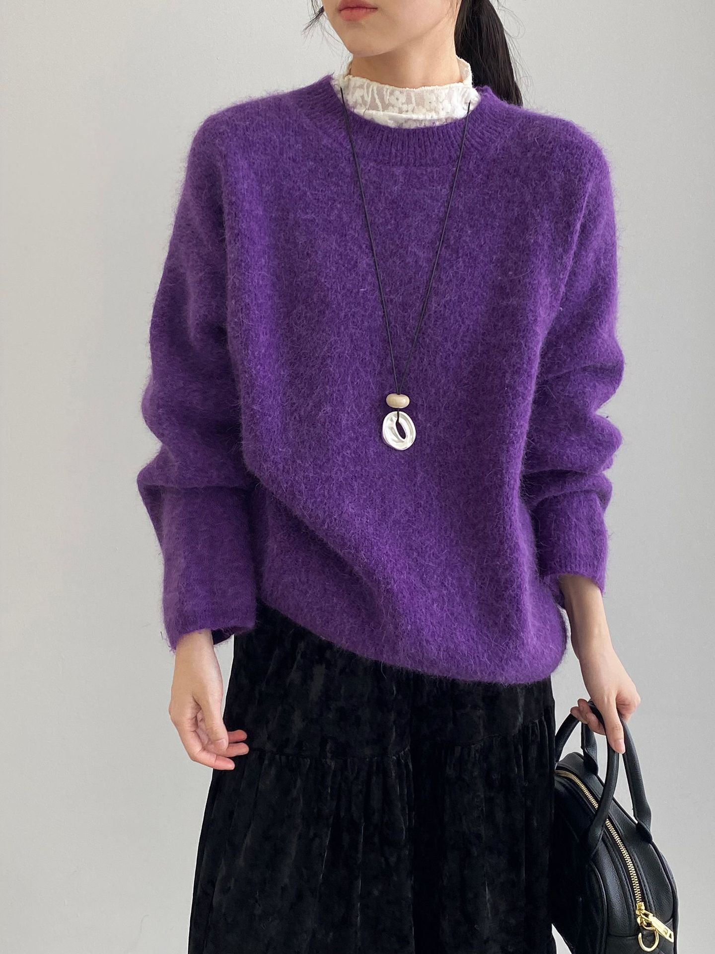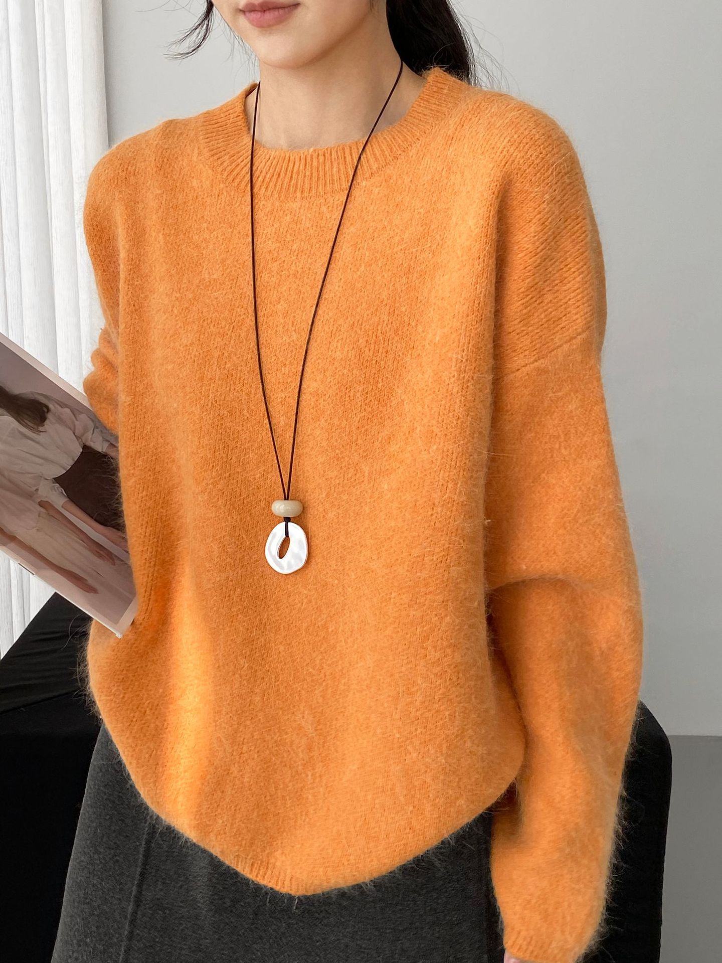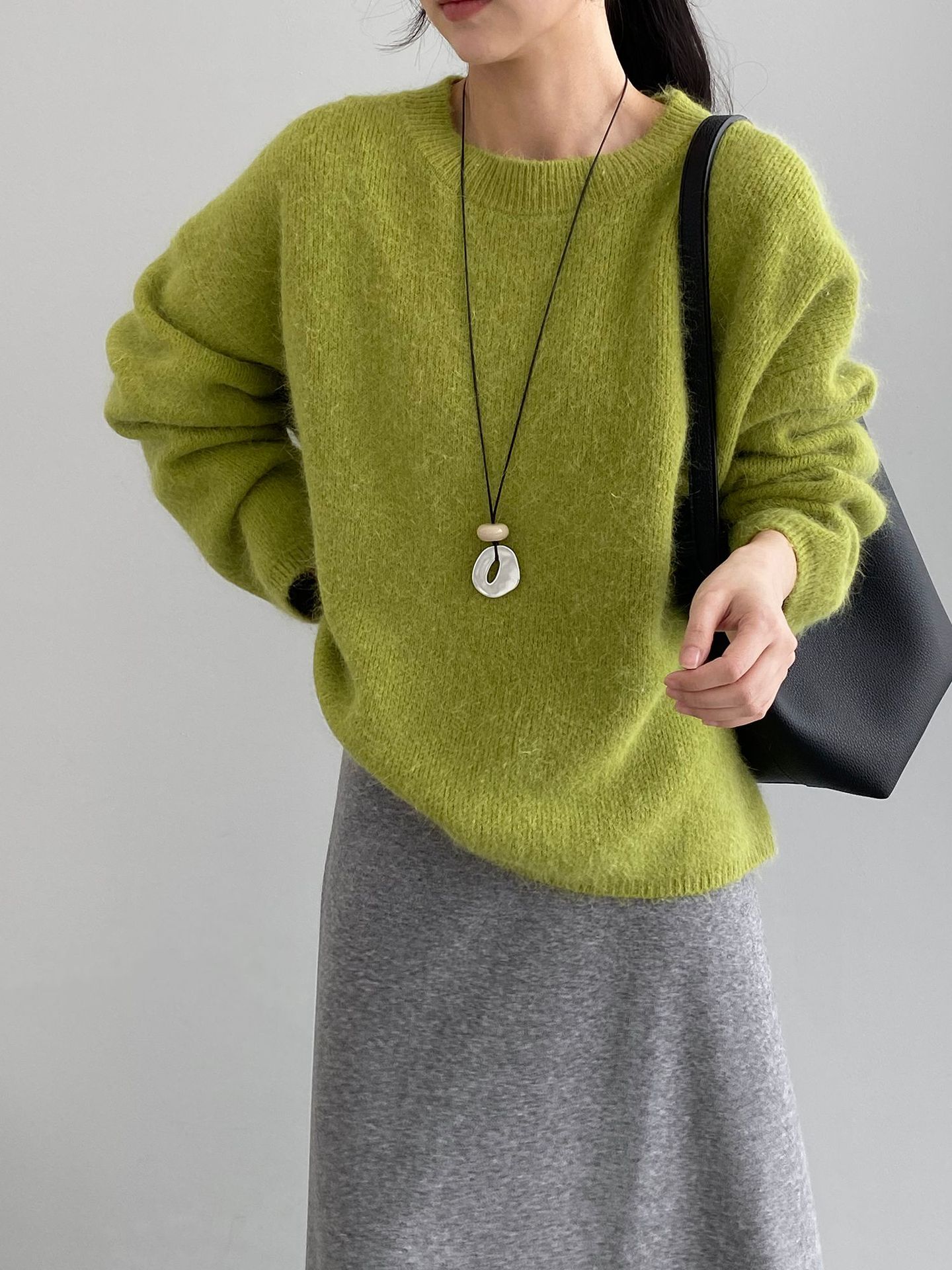 라운드 칼라에 나른한 쫄깃한 토끼털 스웨터 심플하고 루즈한 느낌의 여성 코리안 니트입니다