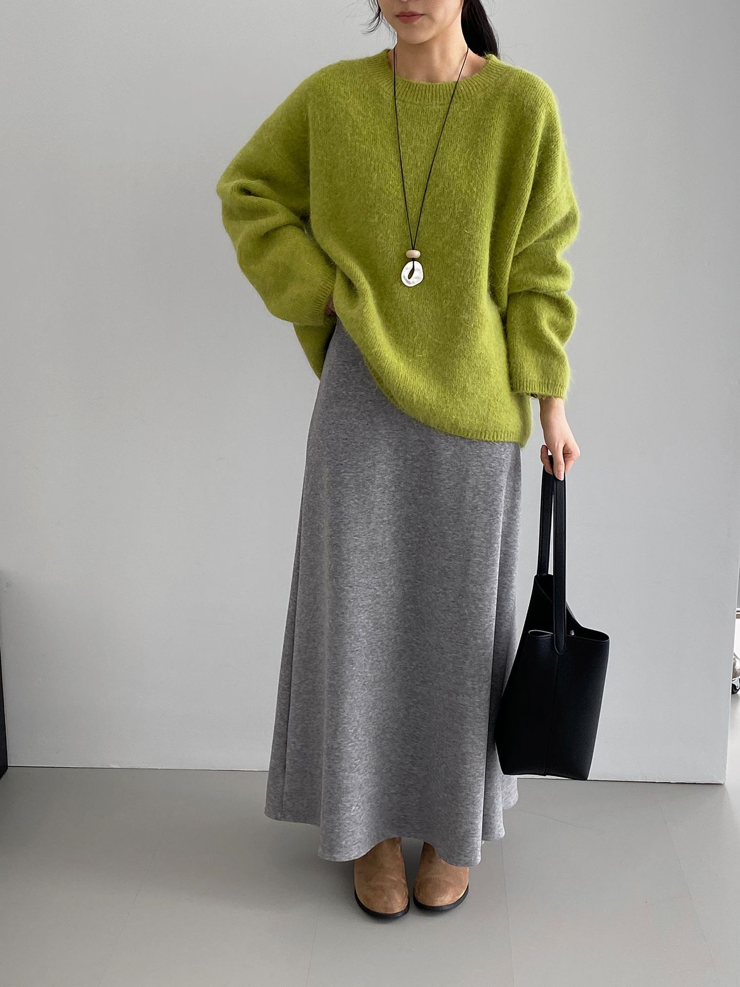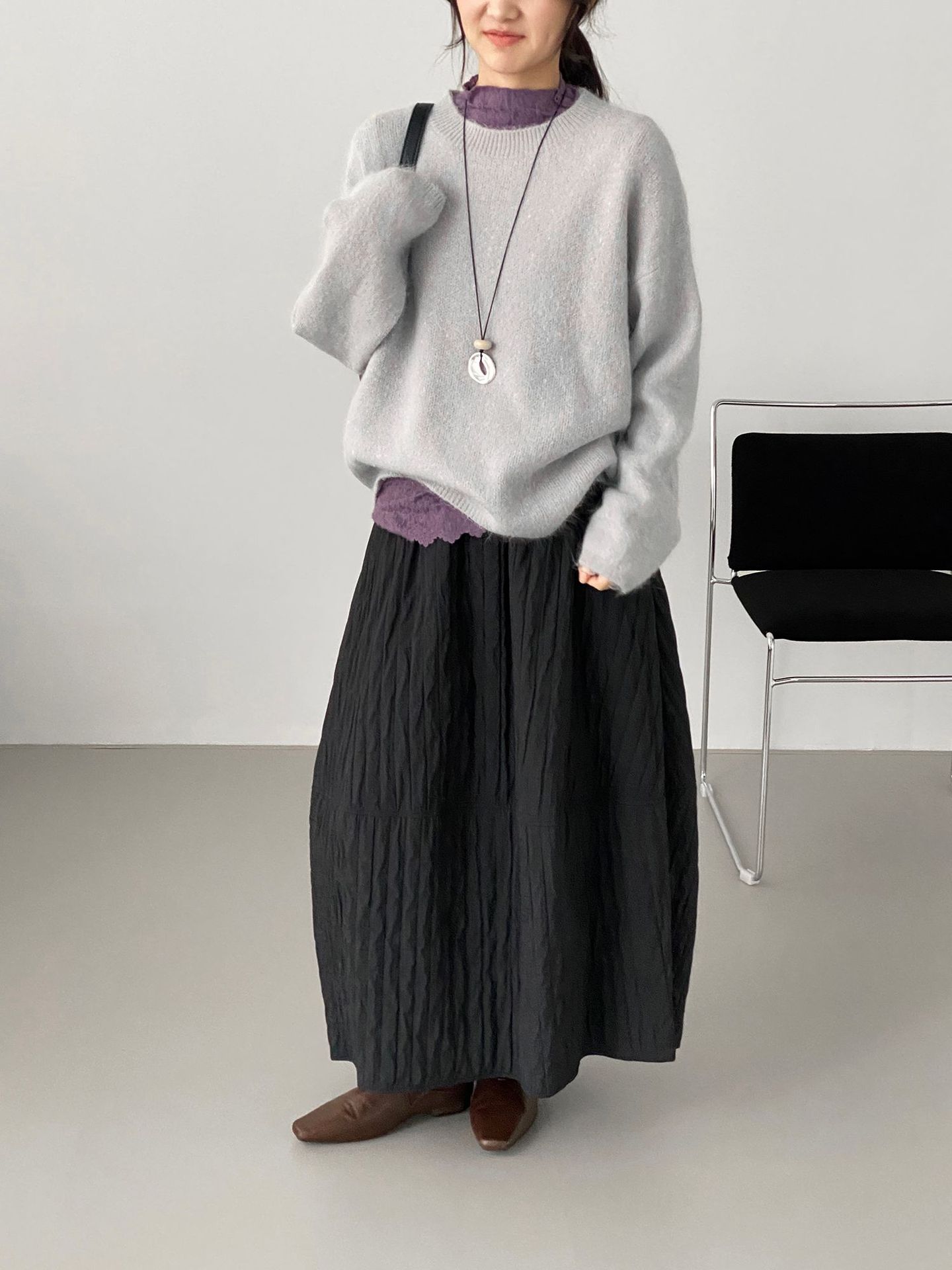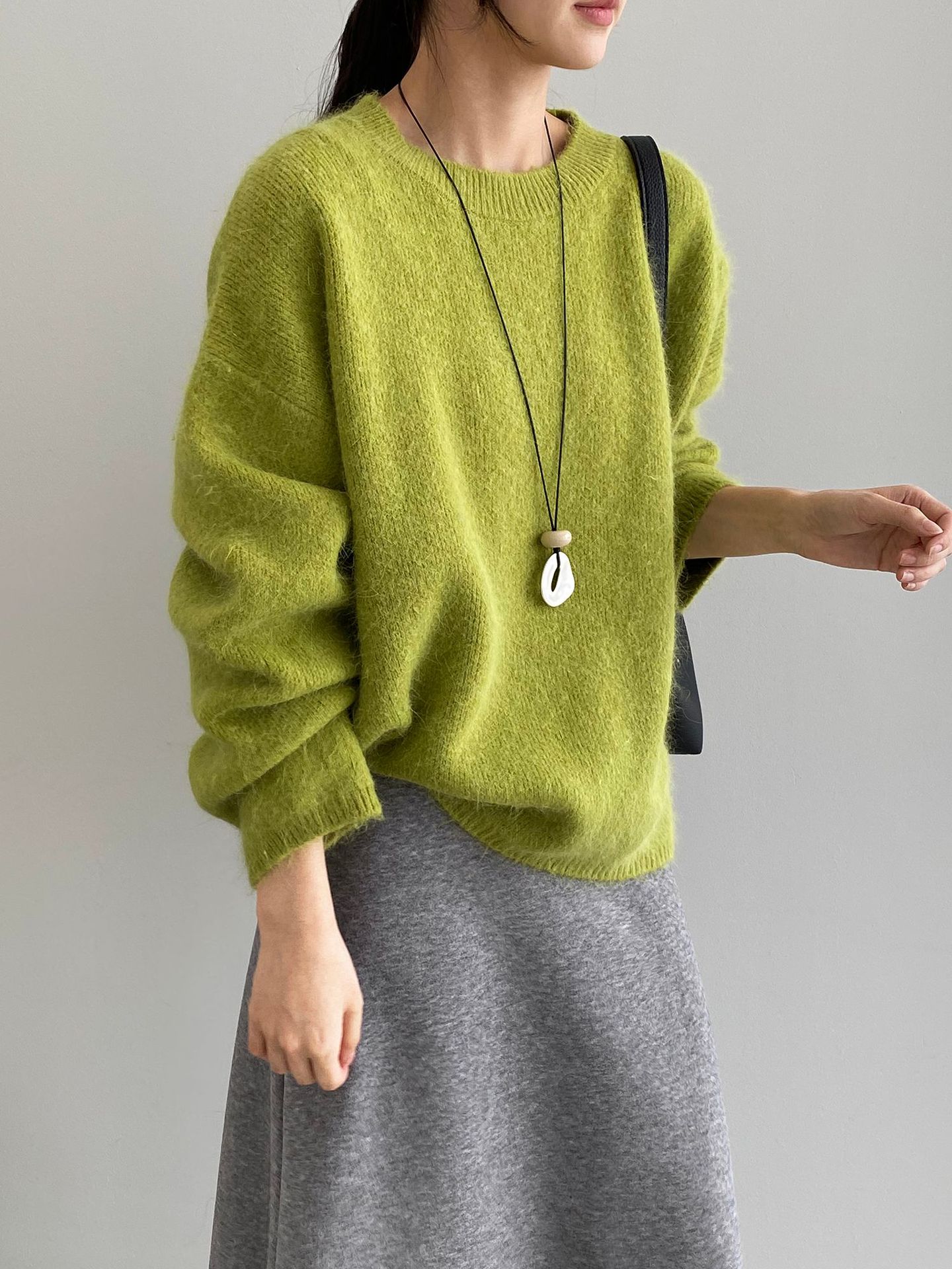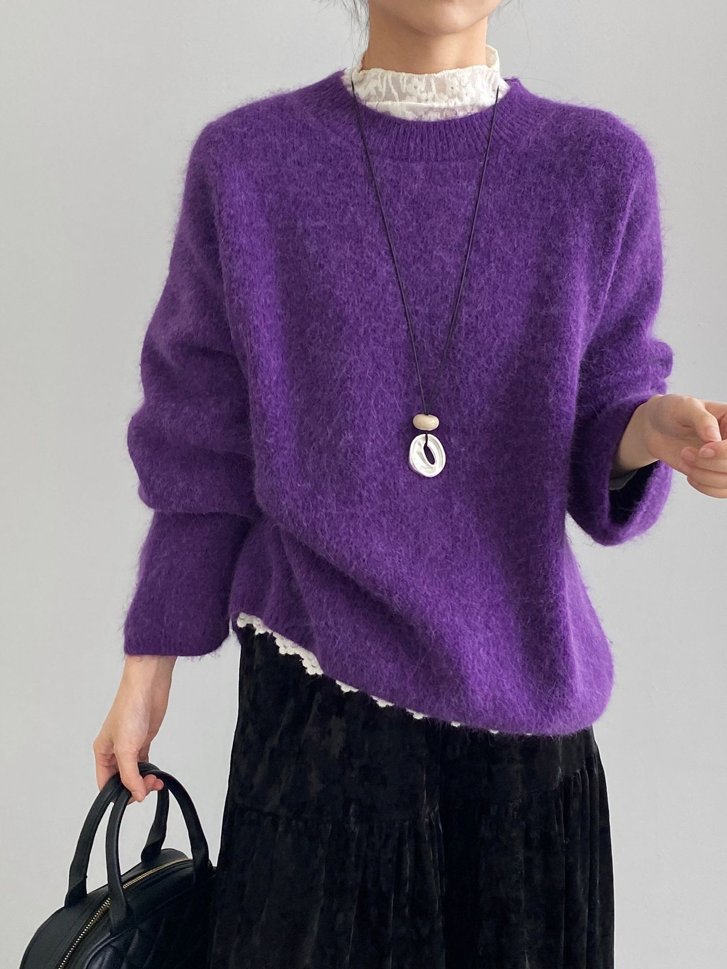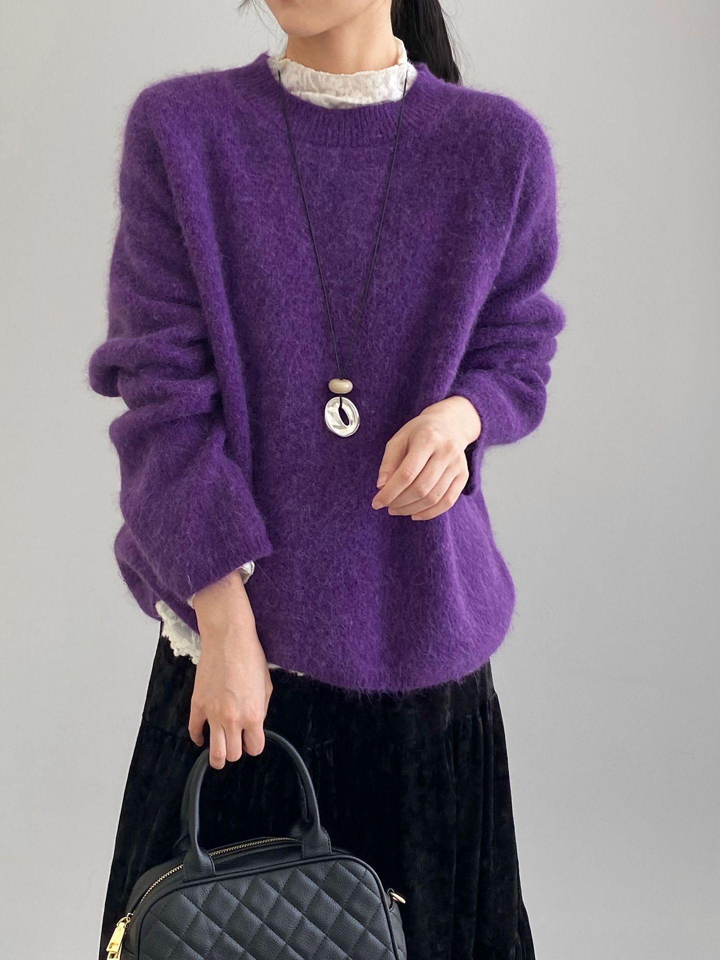 라운드 칼라에 나른한 쫄깃한 토끼털 스웨터 심플하고 루즈한 느낌의 여성 코리안 니트입니다