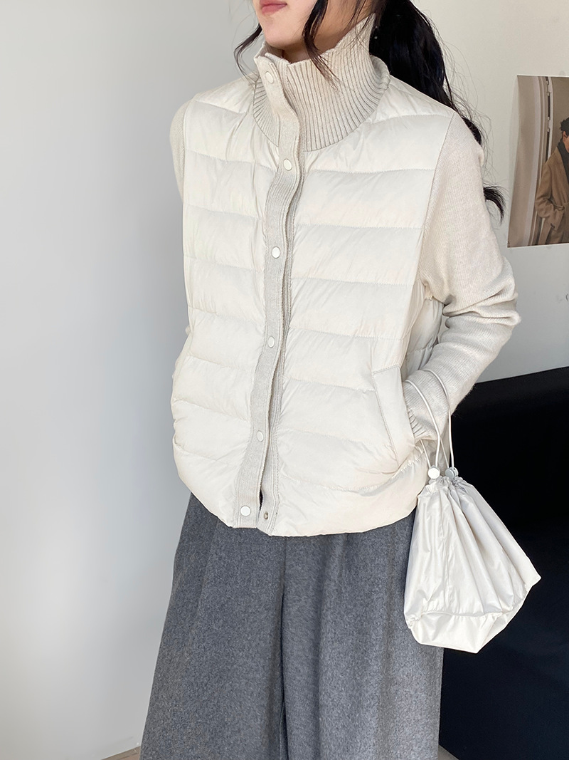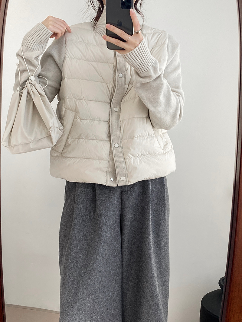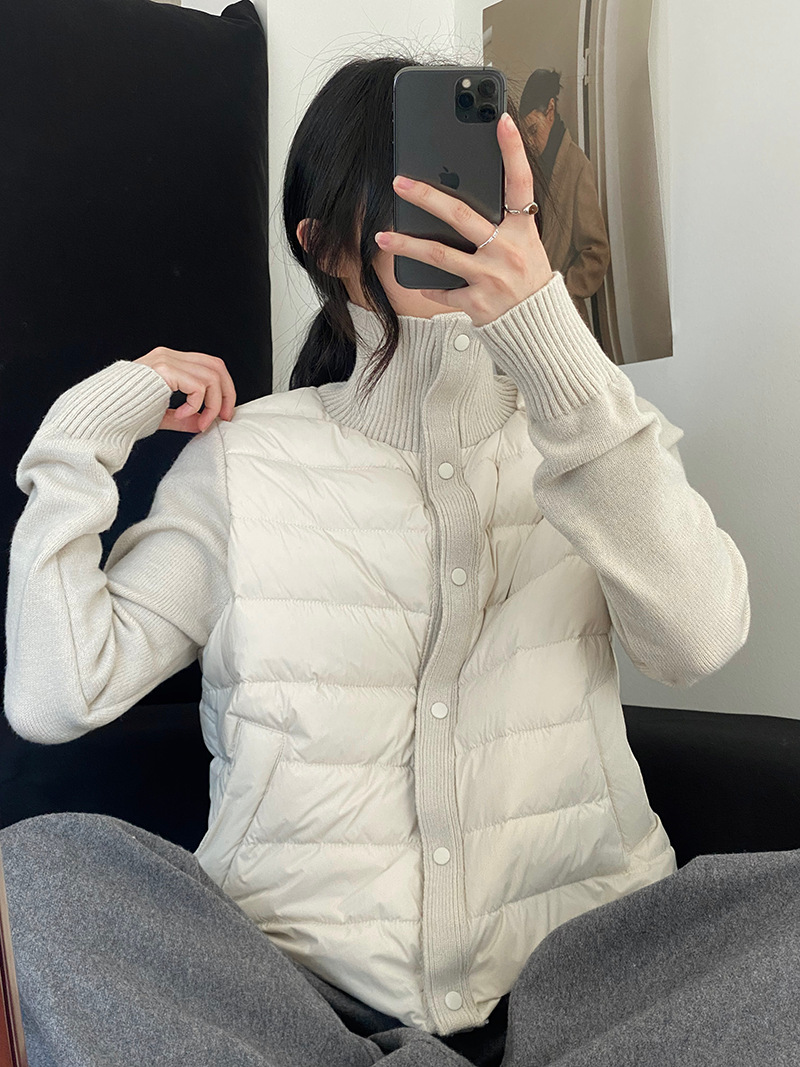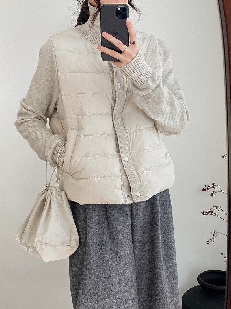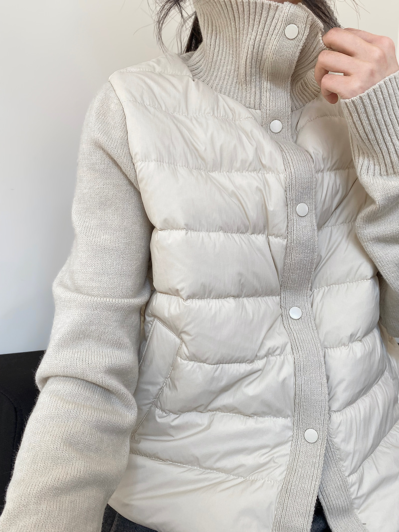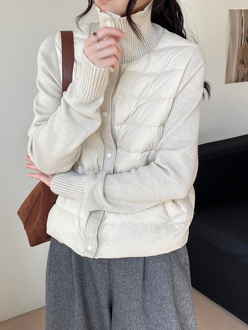 난로 칼라 패딩 여성 니트 패딩 두 벌의 90 화이트 오리털 점퍼 탑