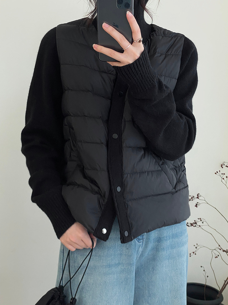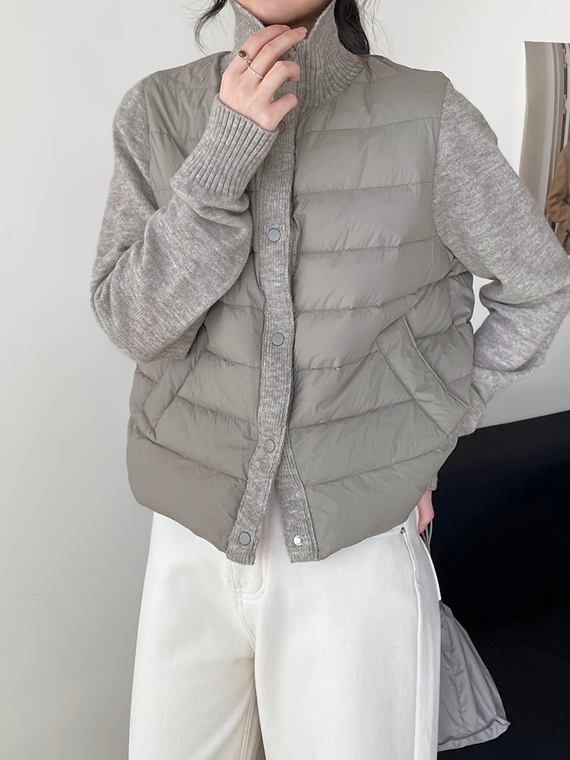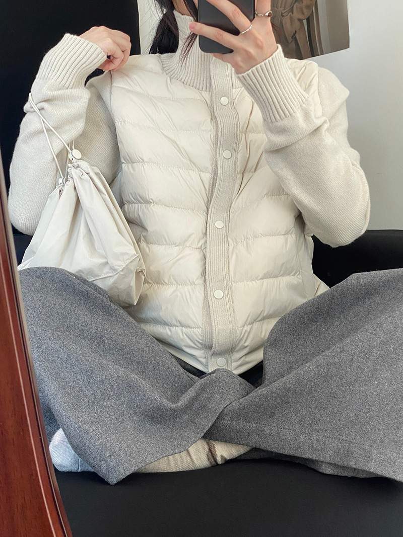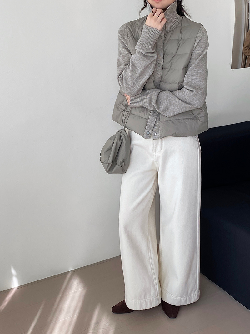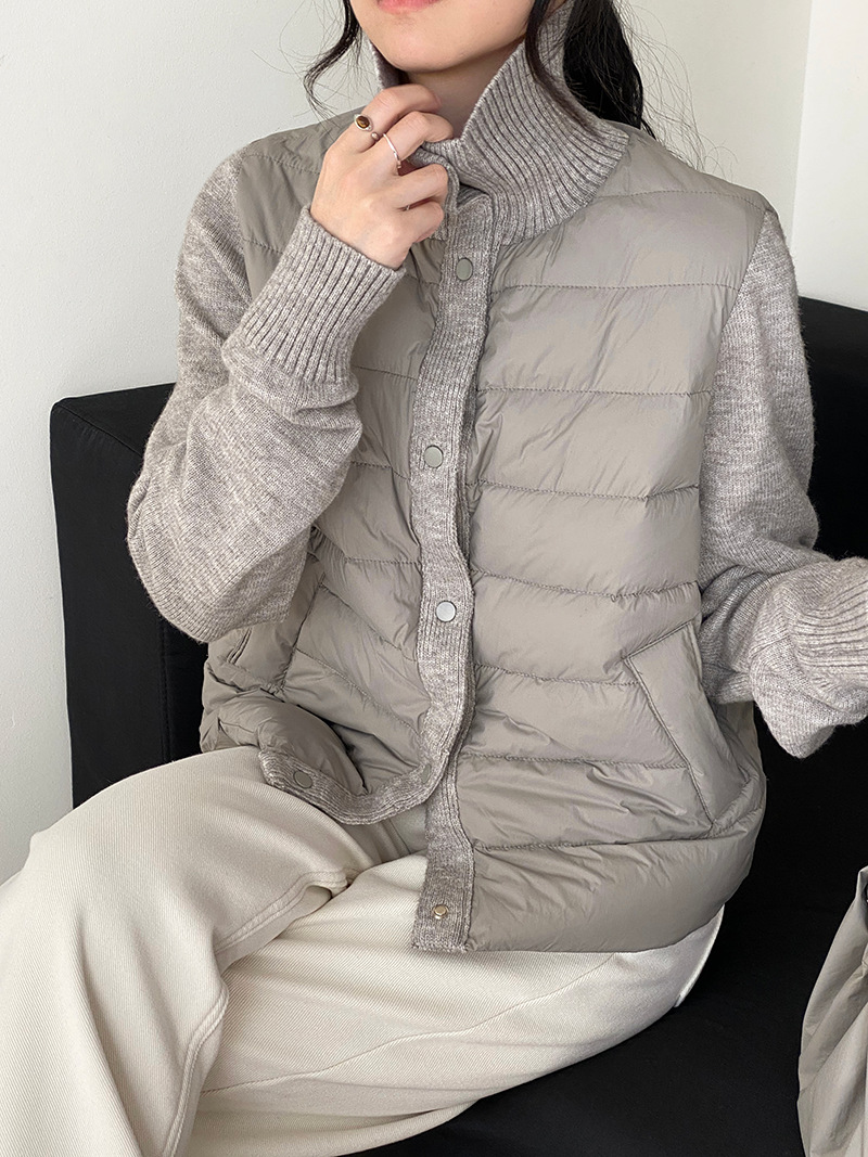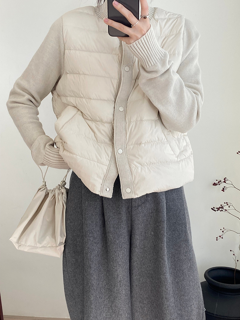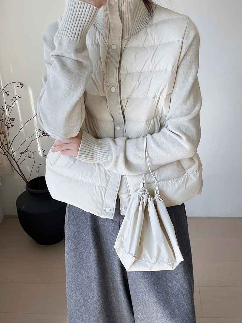 난로 칼라 패딩 여성 니트 패딩 두 벌의 90 화이트 오리털 점퍼 탑
