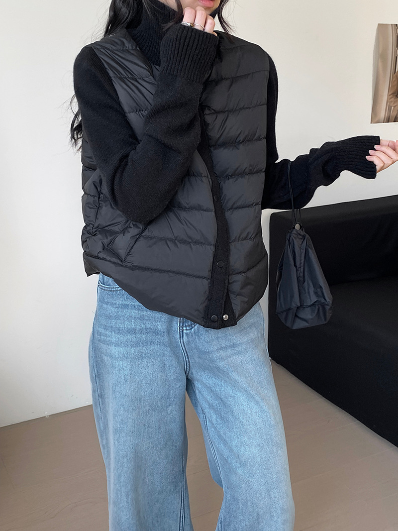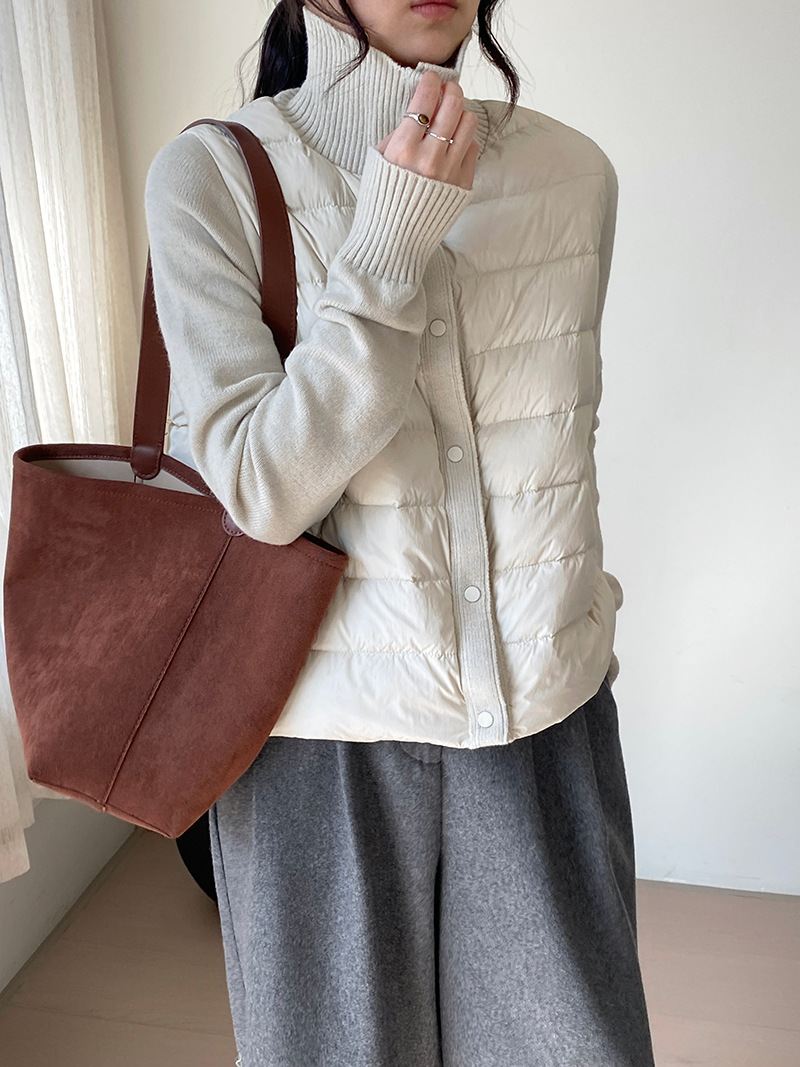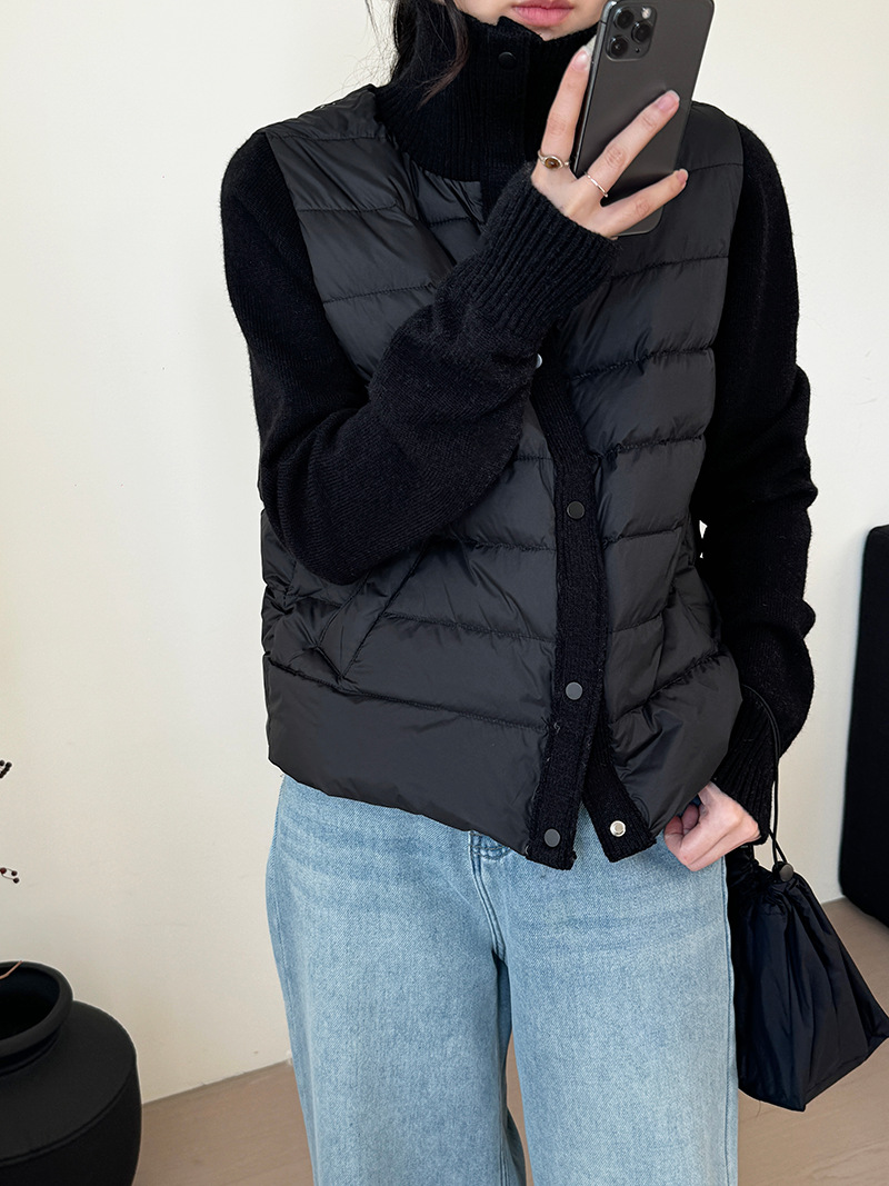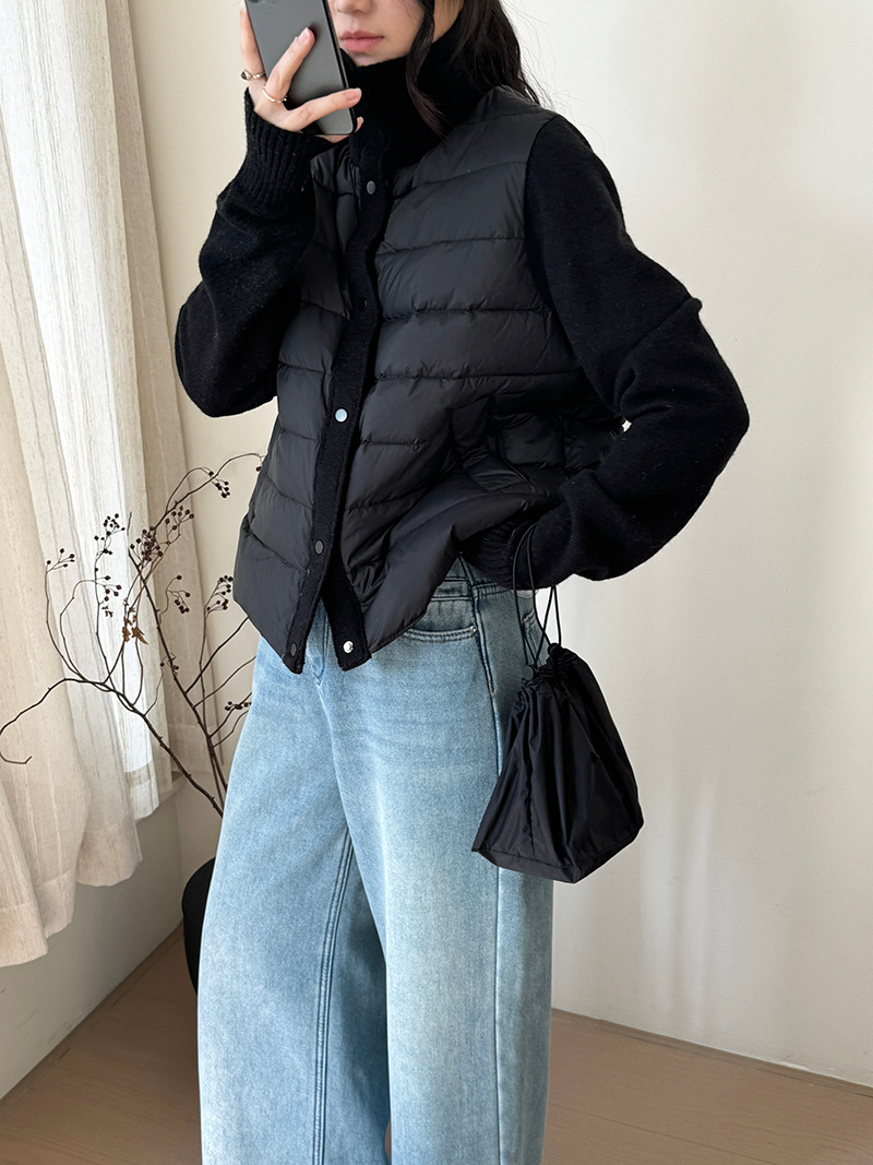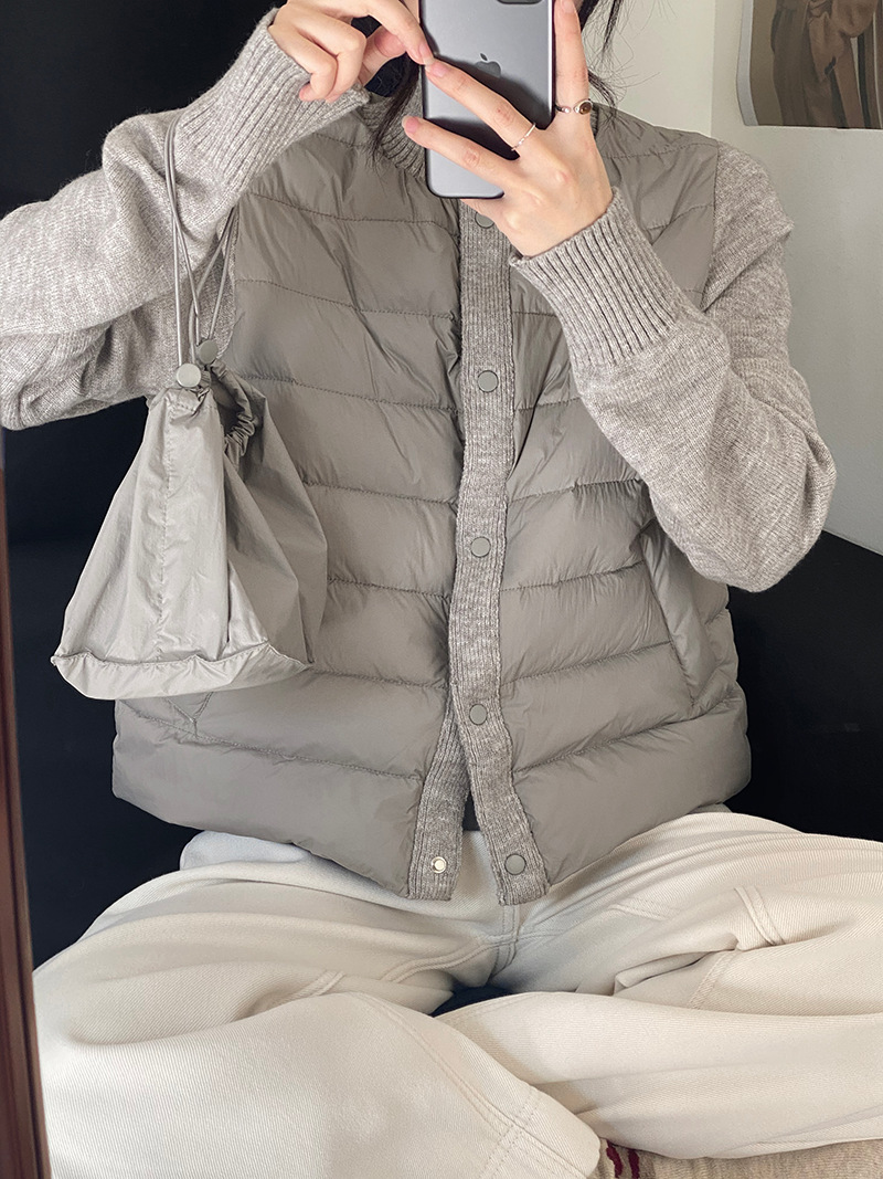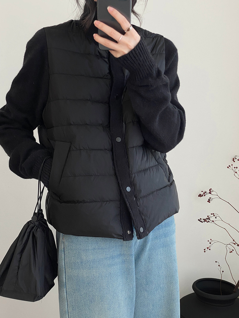 난로 칼라 패딩 여성 니트 패딩 두 벌의 90 화이트 오리털 점퍼 탑