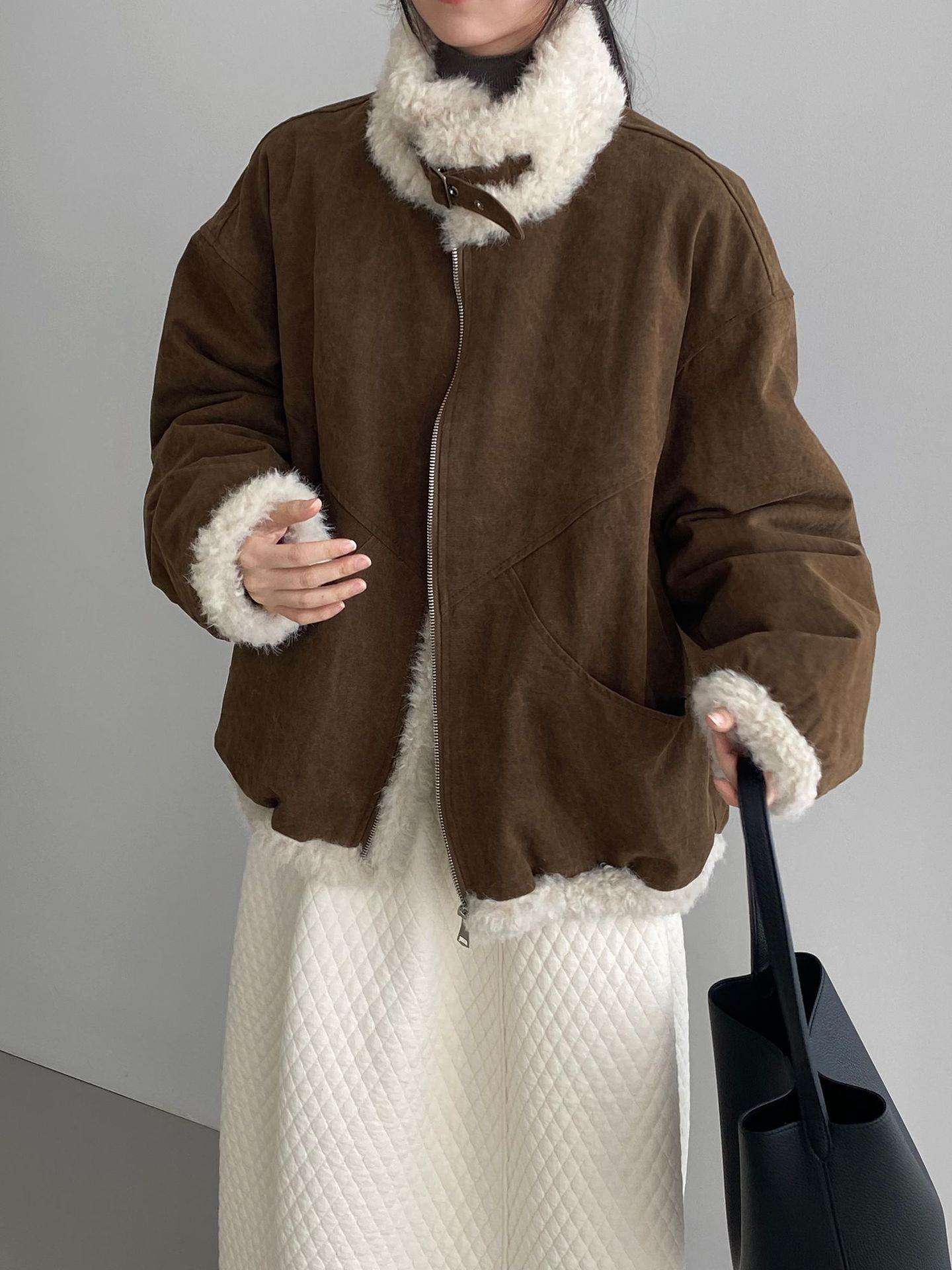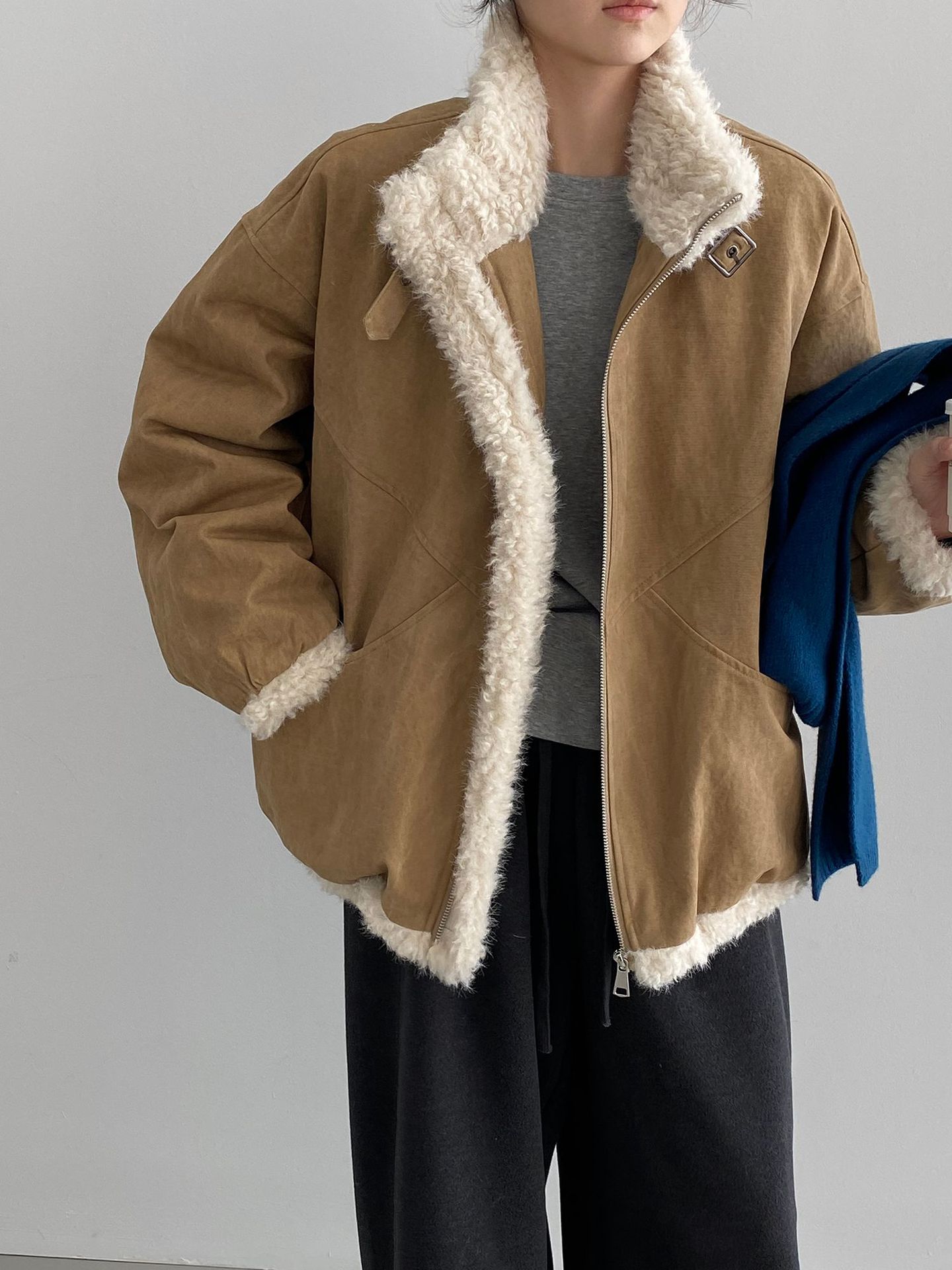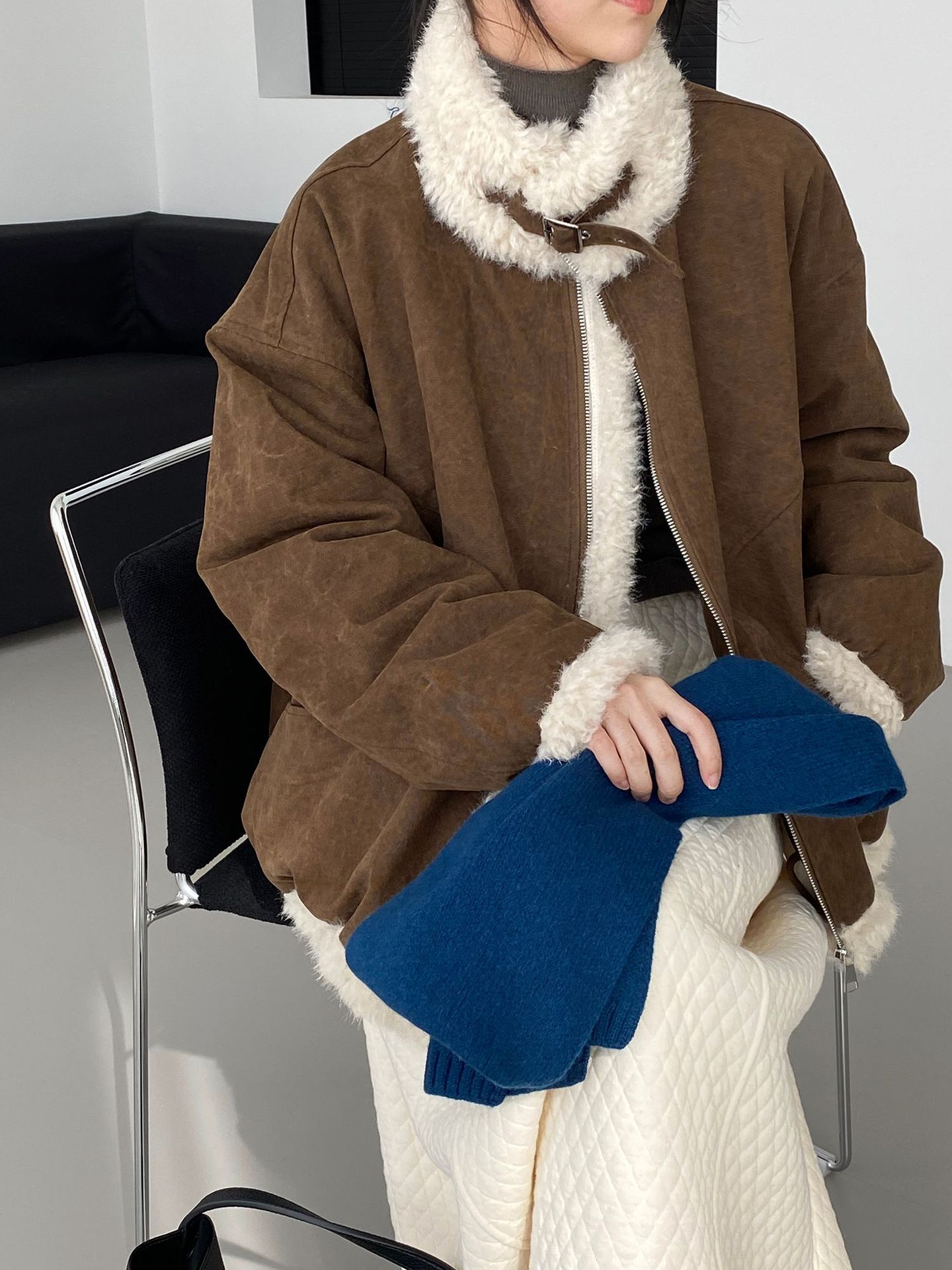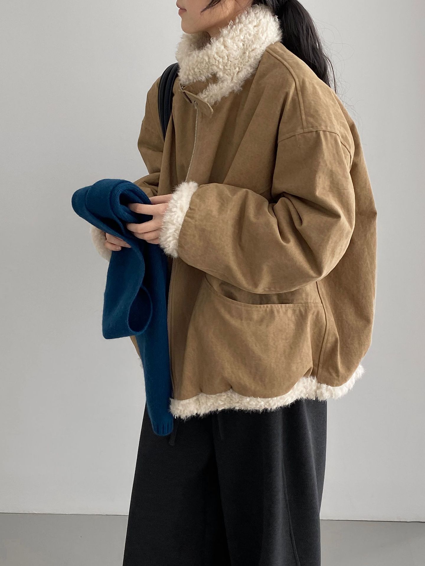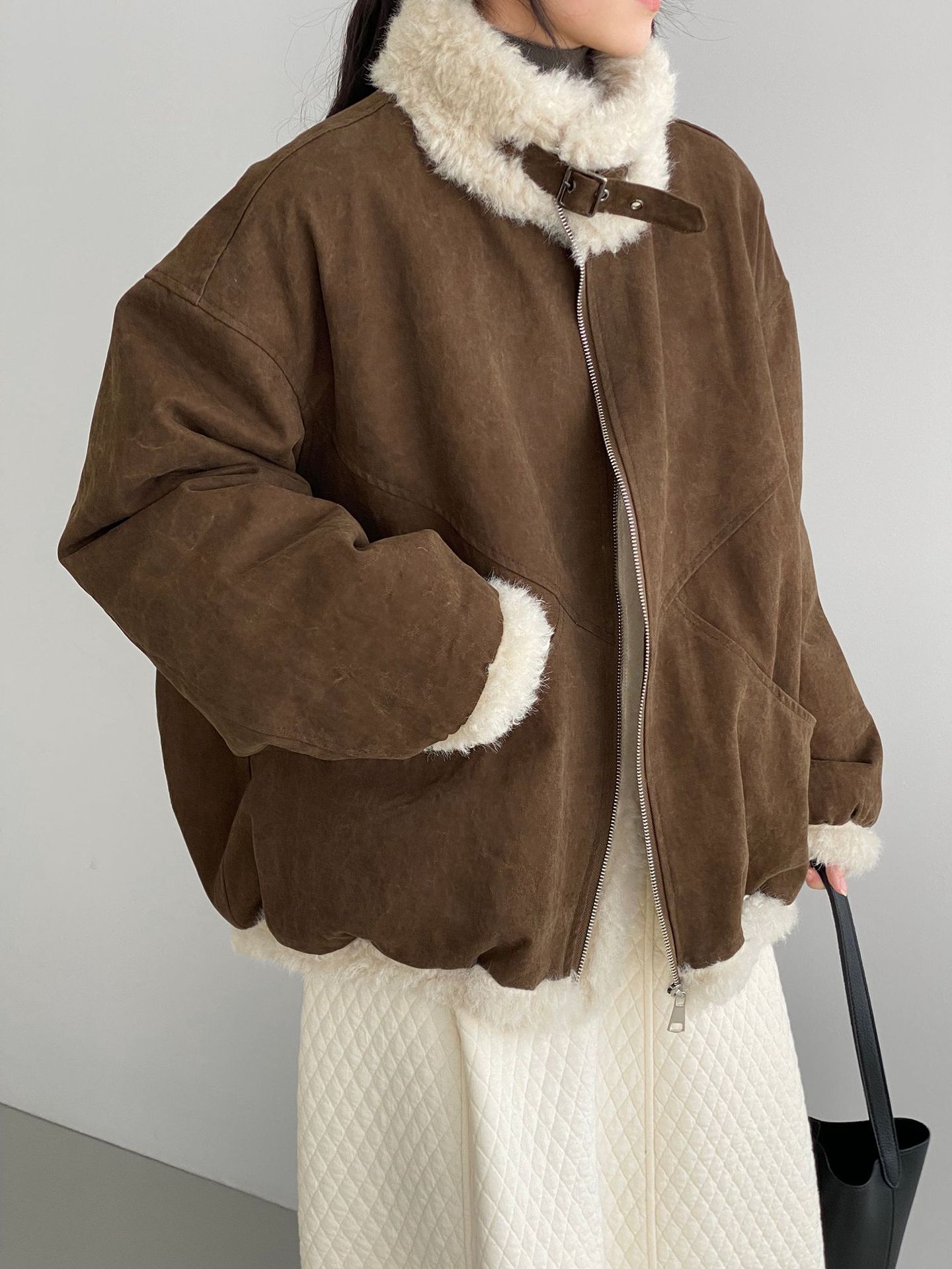 빈티지한 바인드 칼라 양털 패딩 패딩 두툼한 여성용 아우터