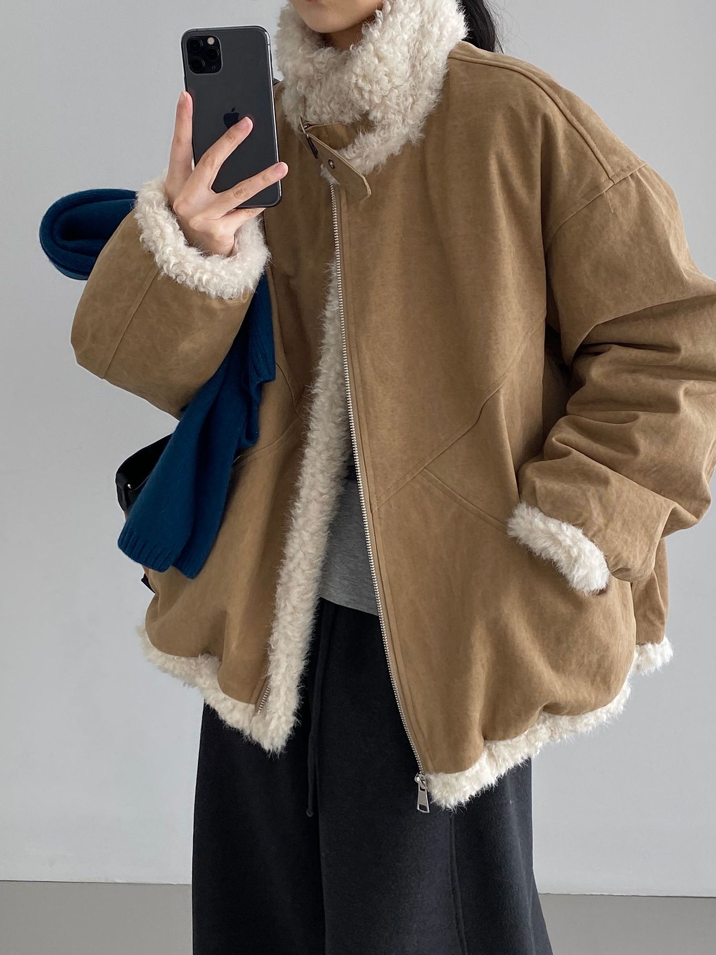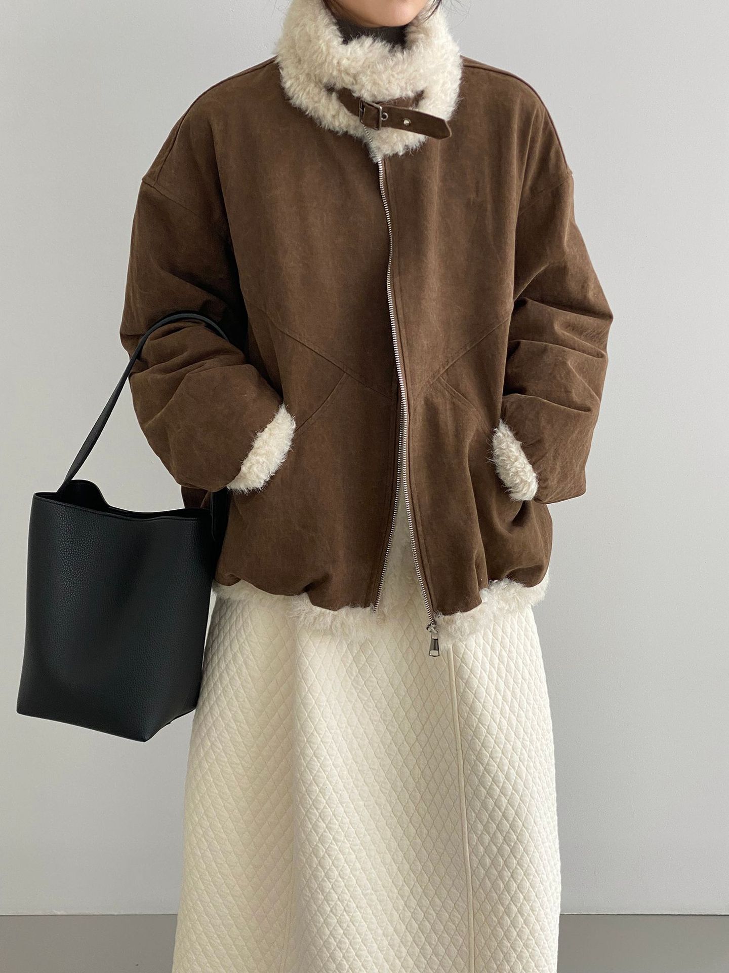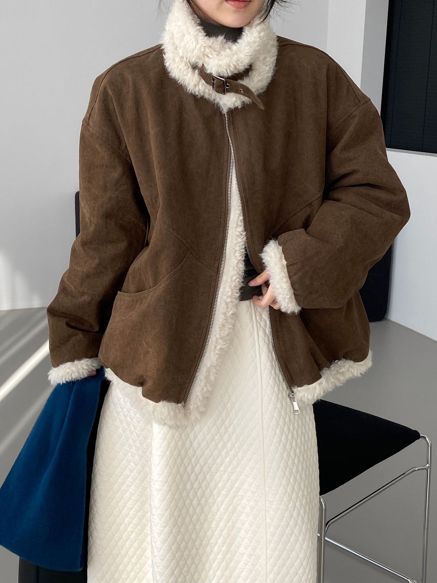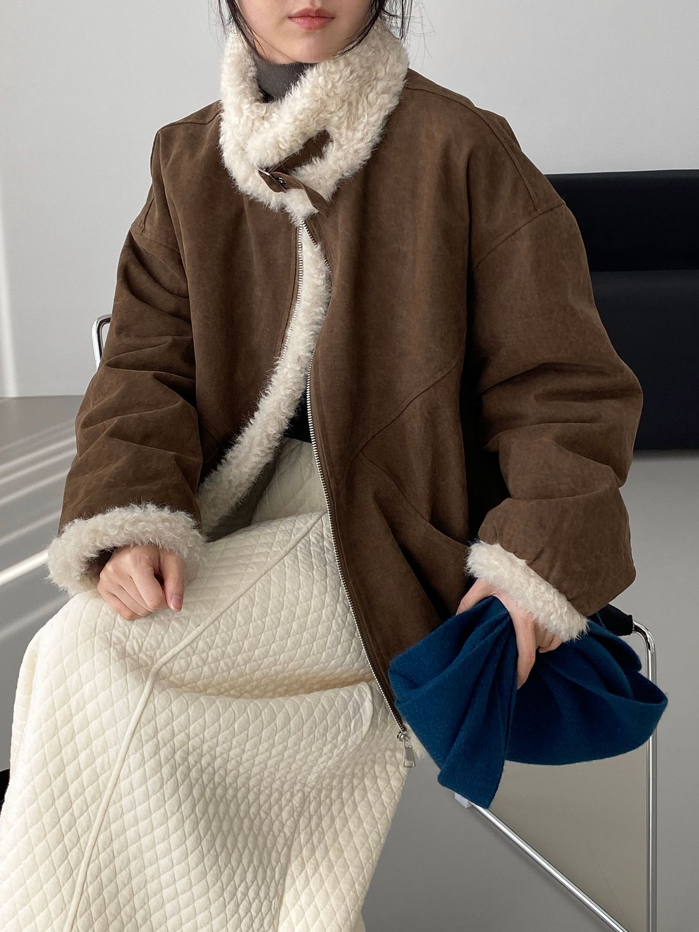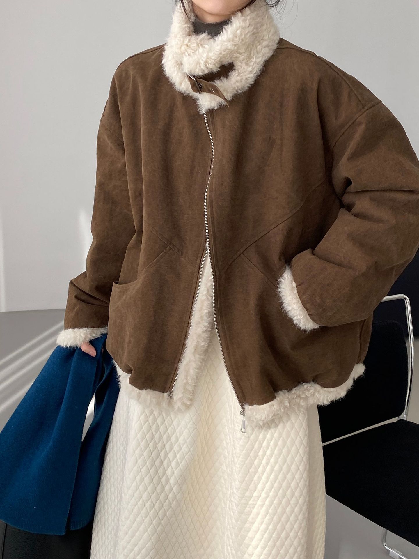 빈티지한 바인드 칼라 양털 패딩 패딩 두툼한 여성용 아우터