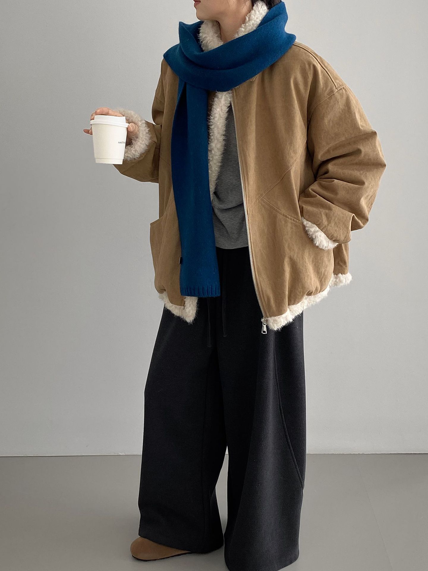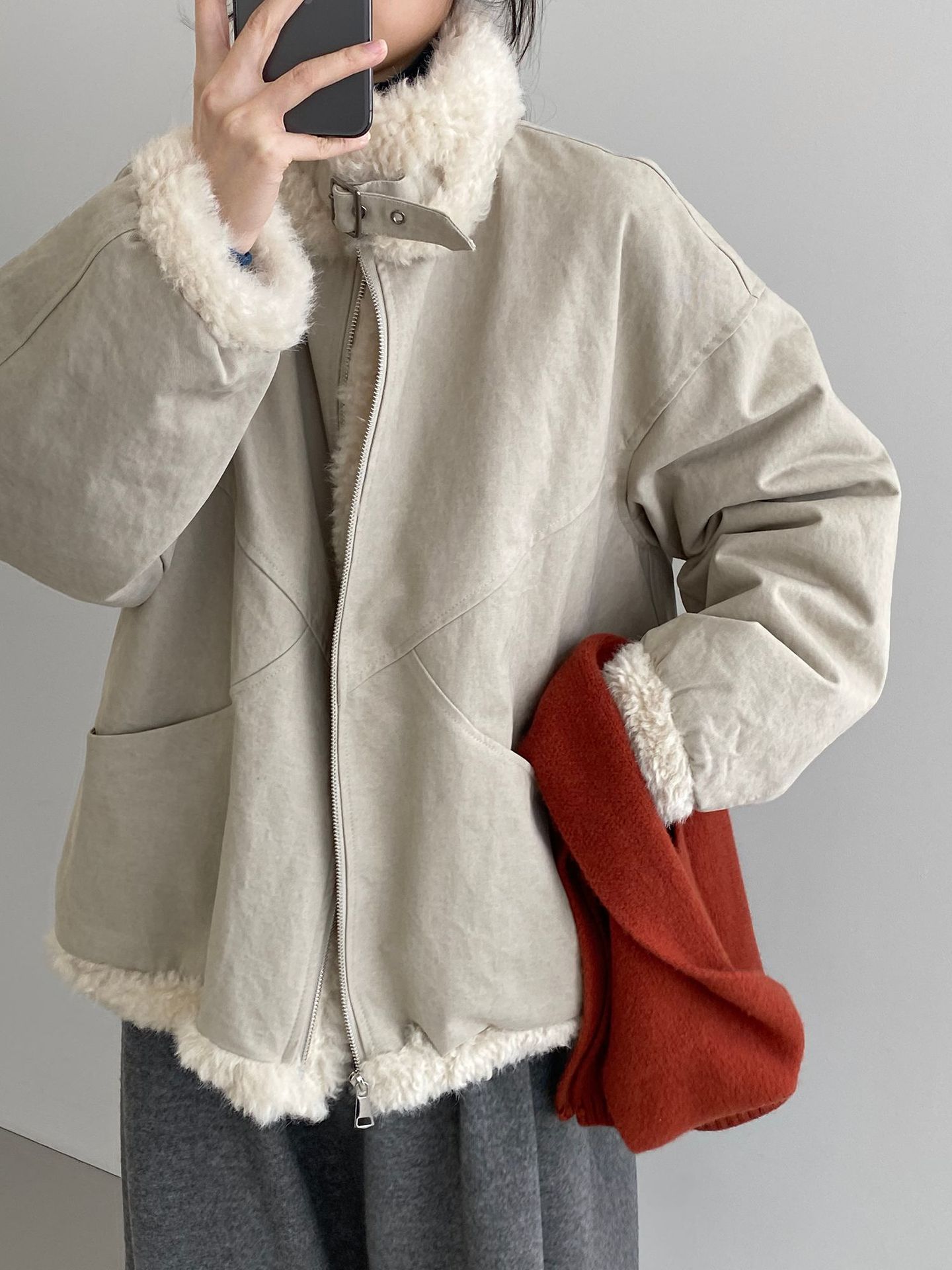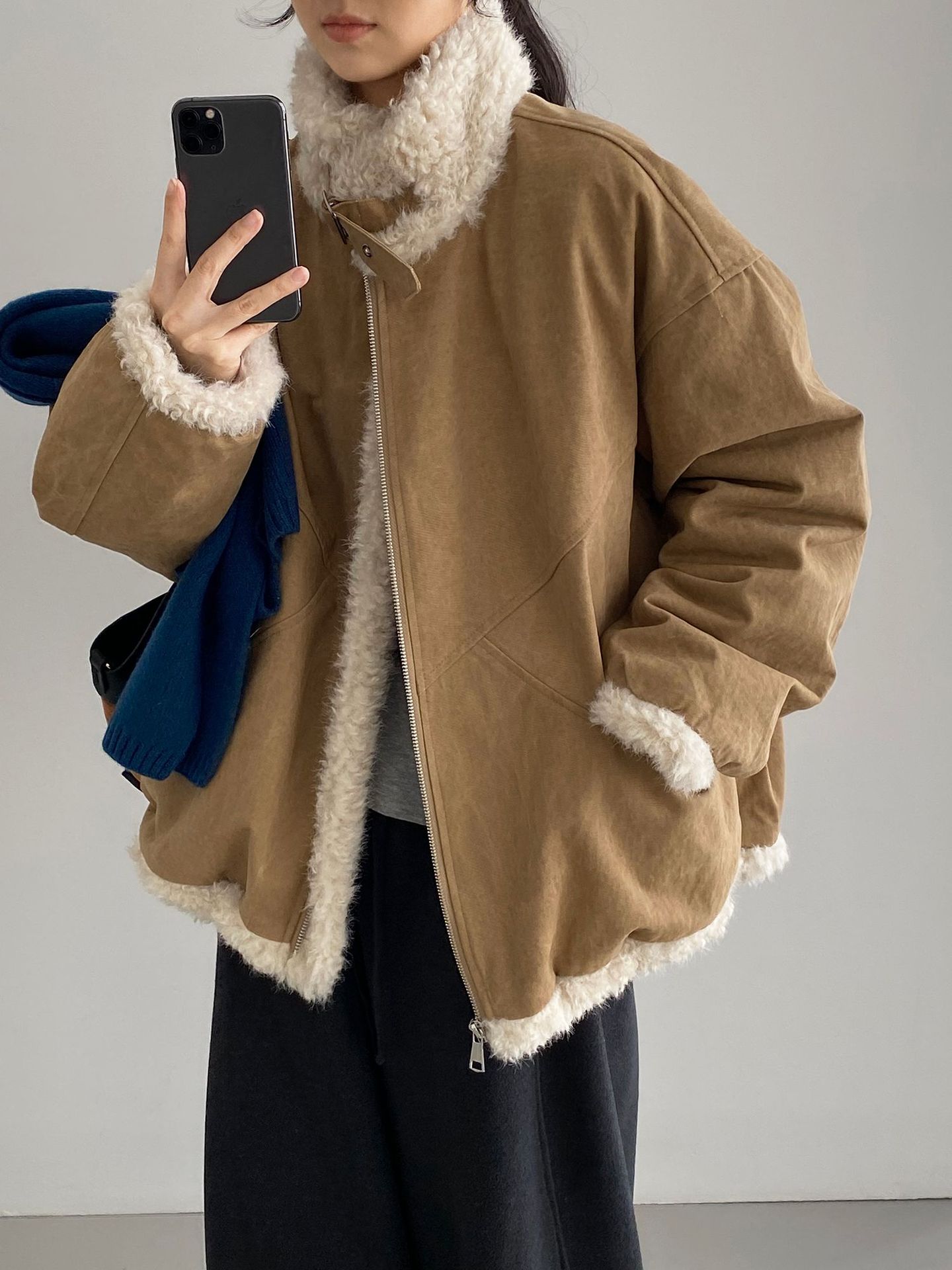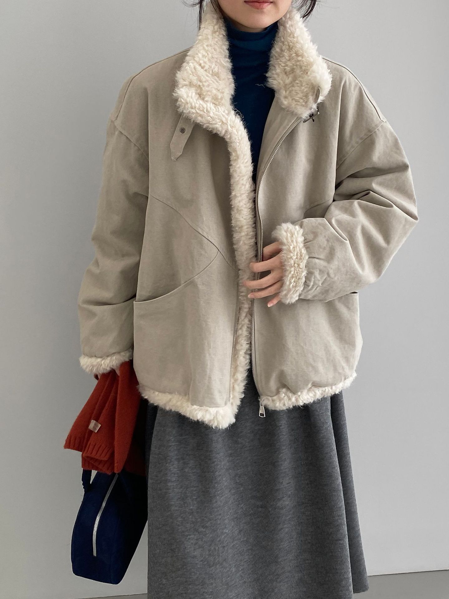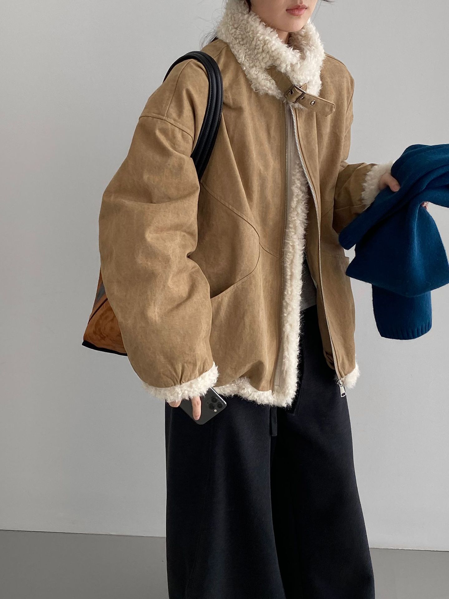 빈티지한 바인드 칼라 양털 패딩 패딩 두툼한 여성용 아우터