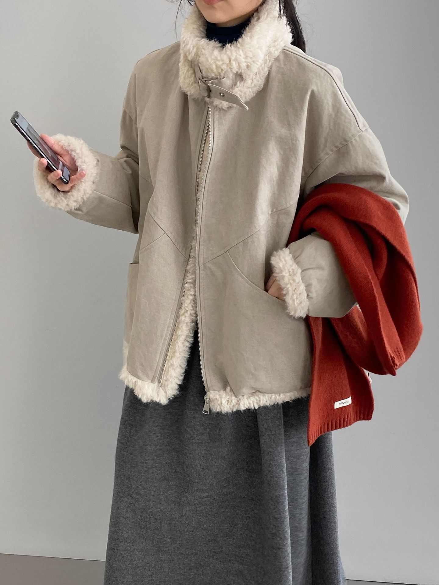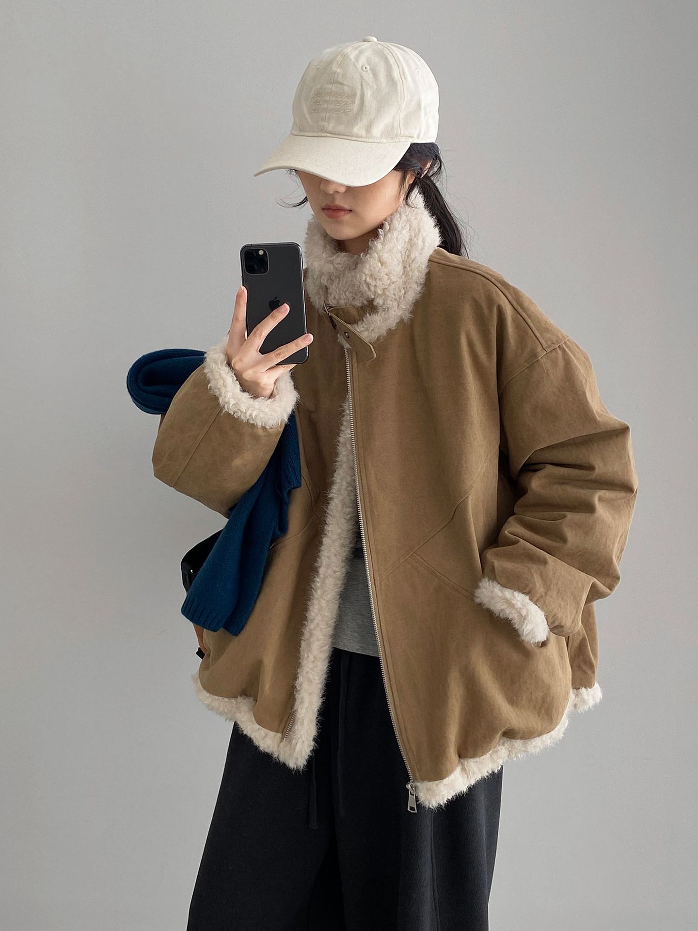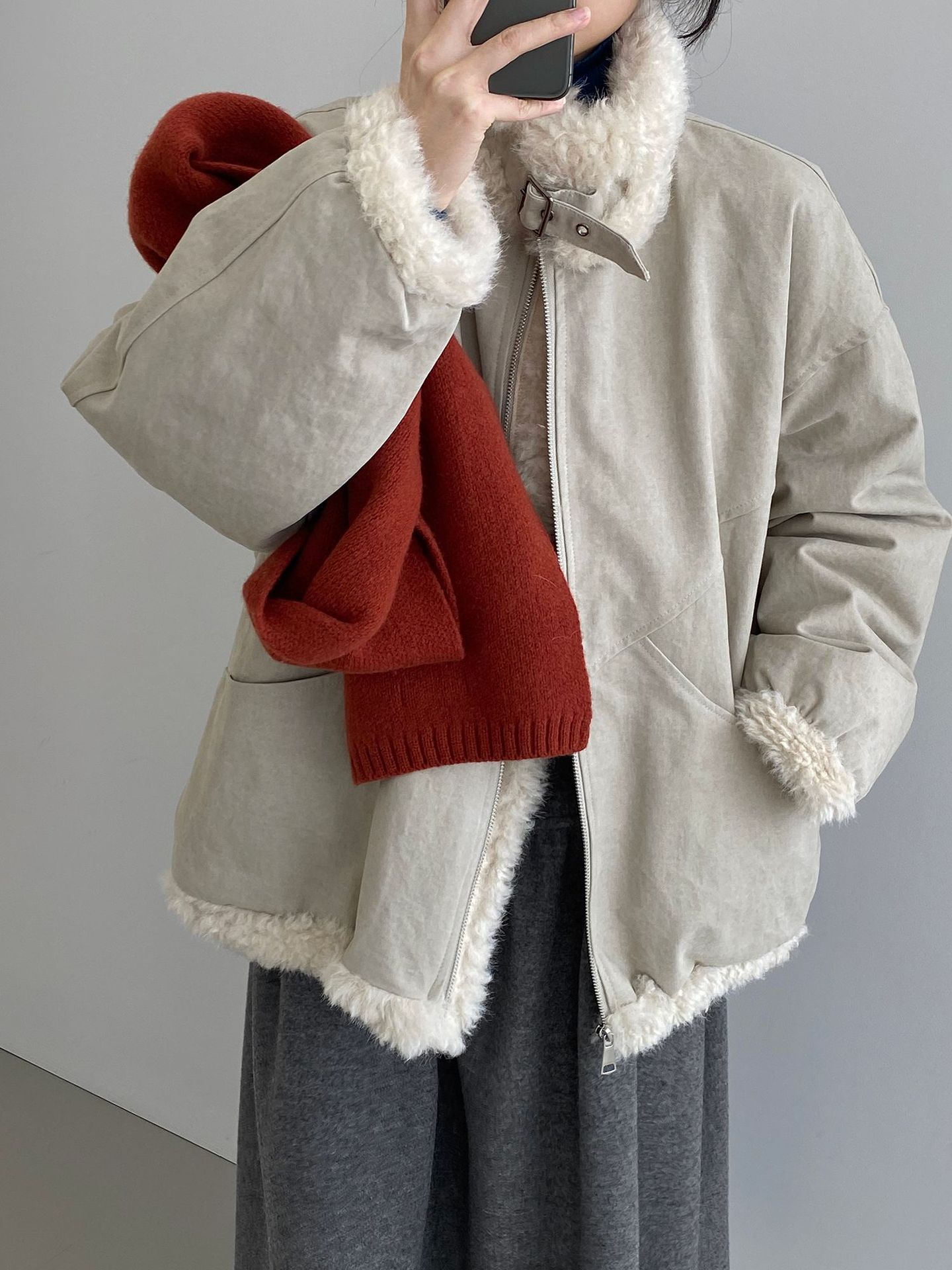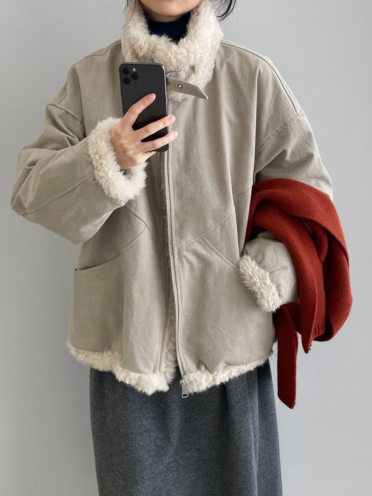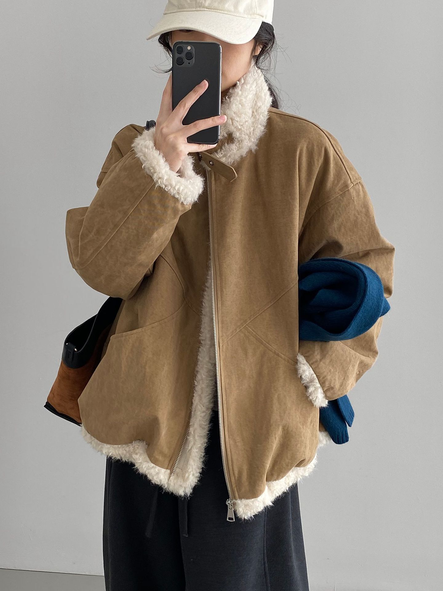 빈티지한 바인드 칼라 양털 패딩 패딩 두툼한 여성용 아우터