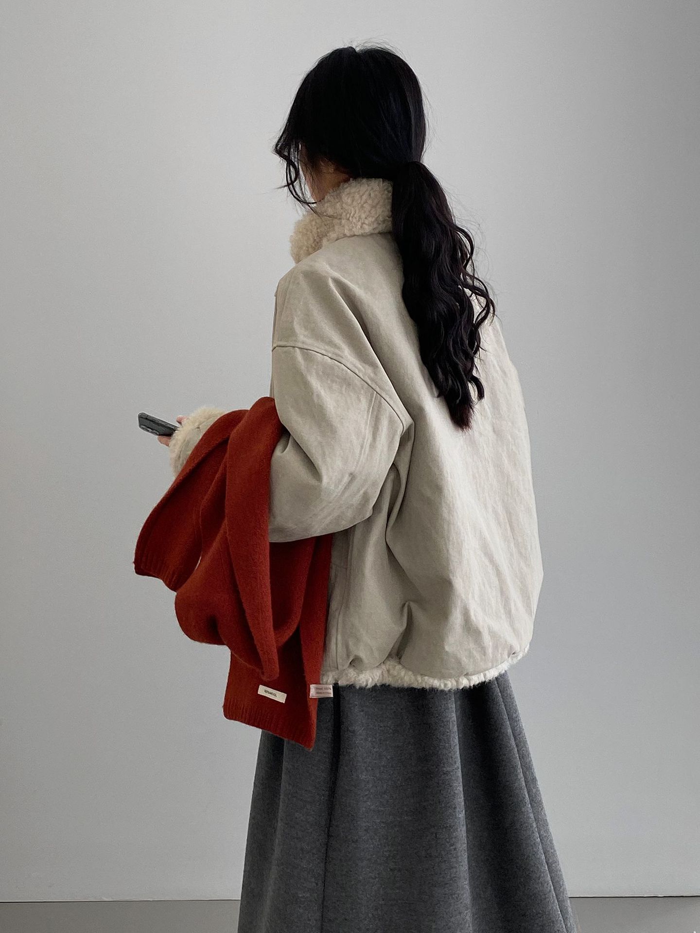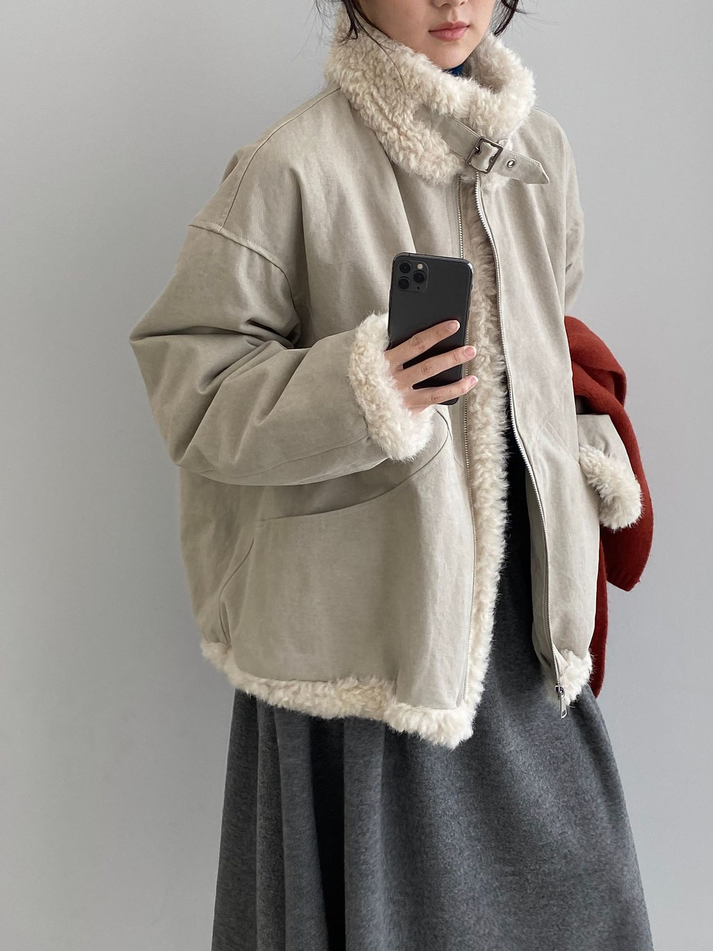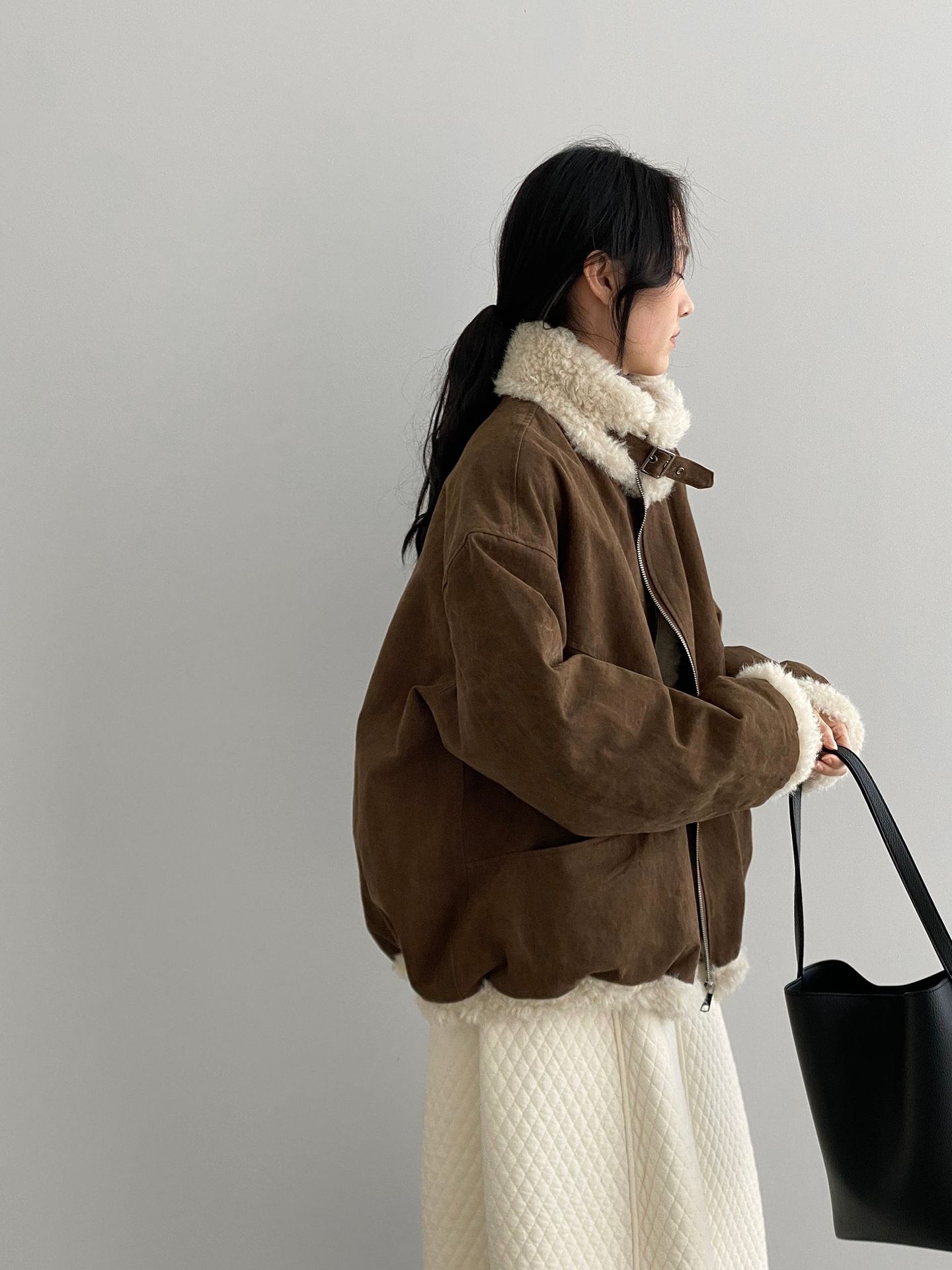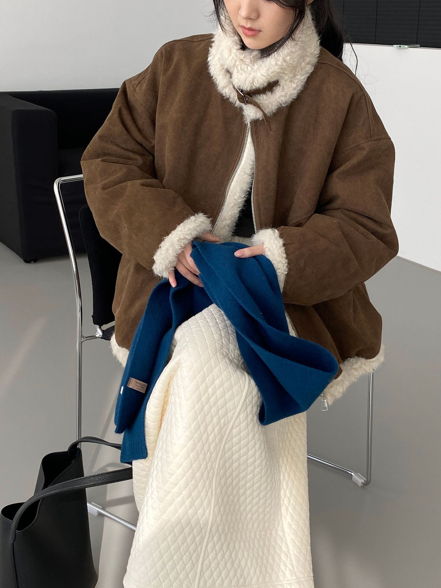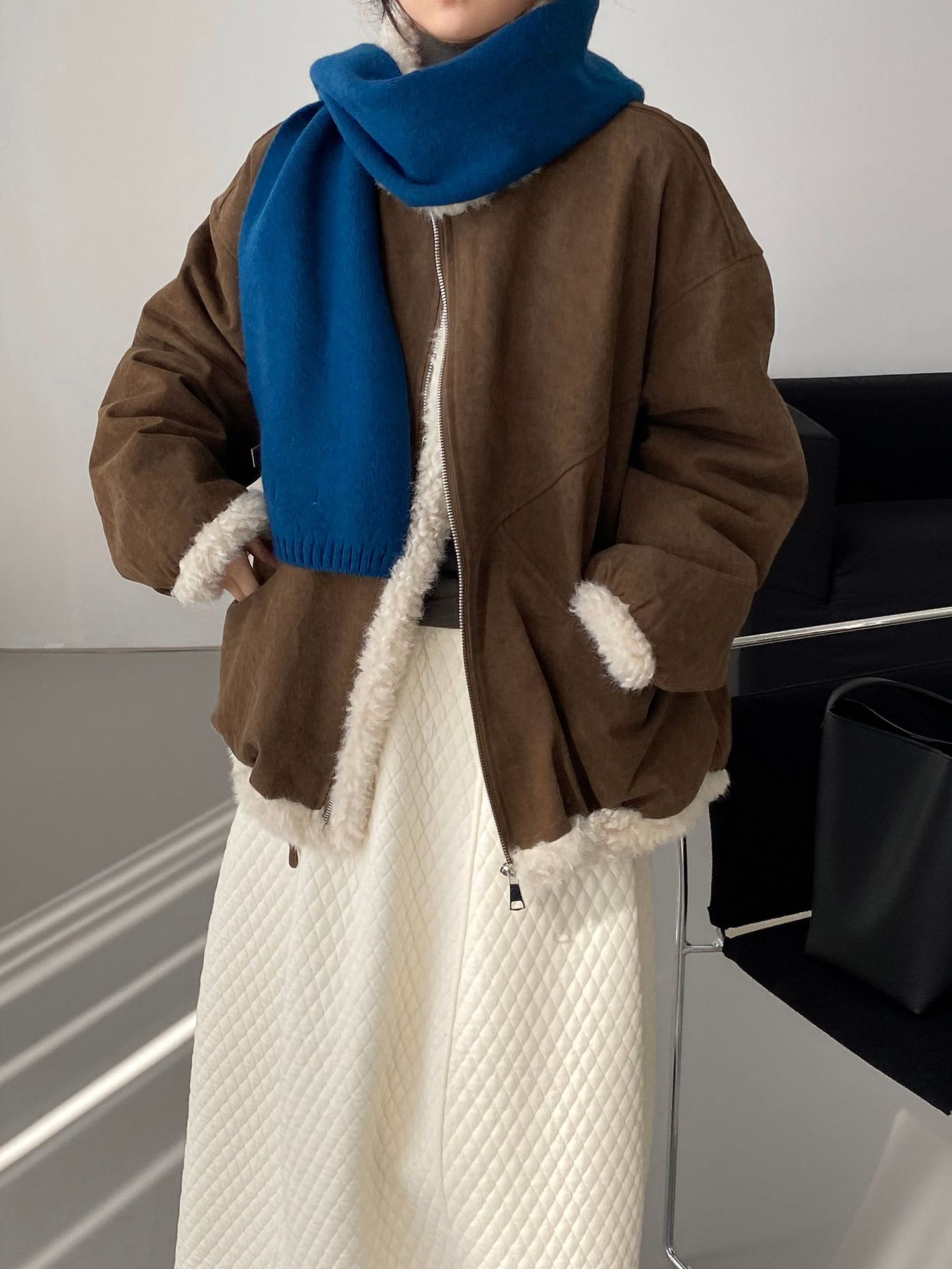 빈티지한 바인드 칼라 양털 패딩 패딩 두툼한 여성용 아우터