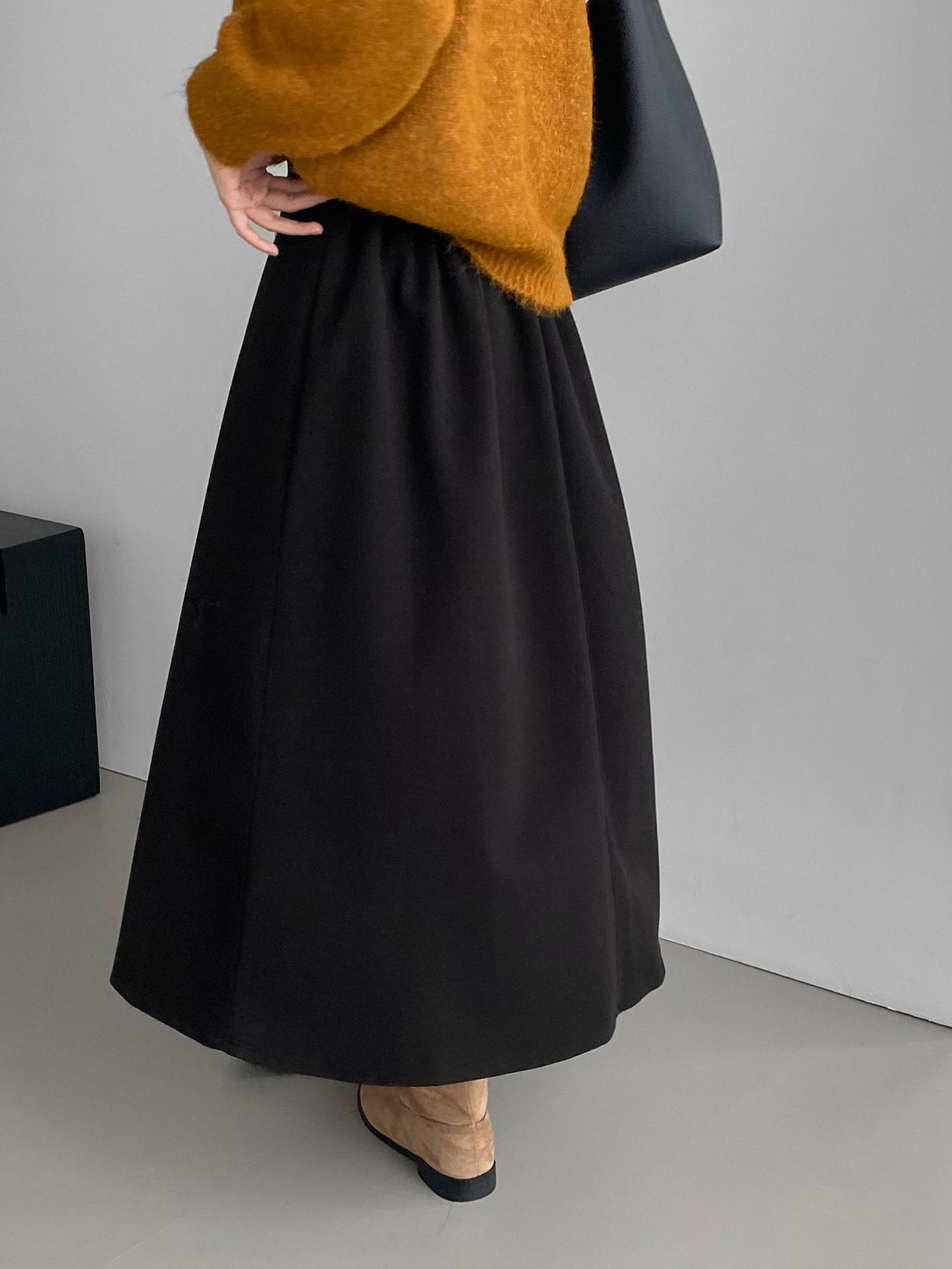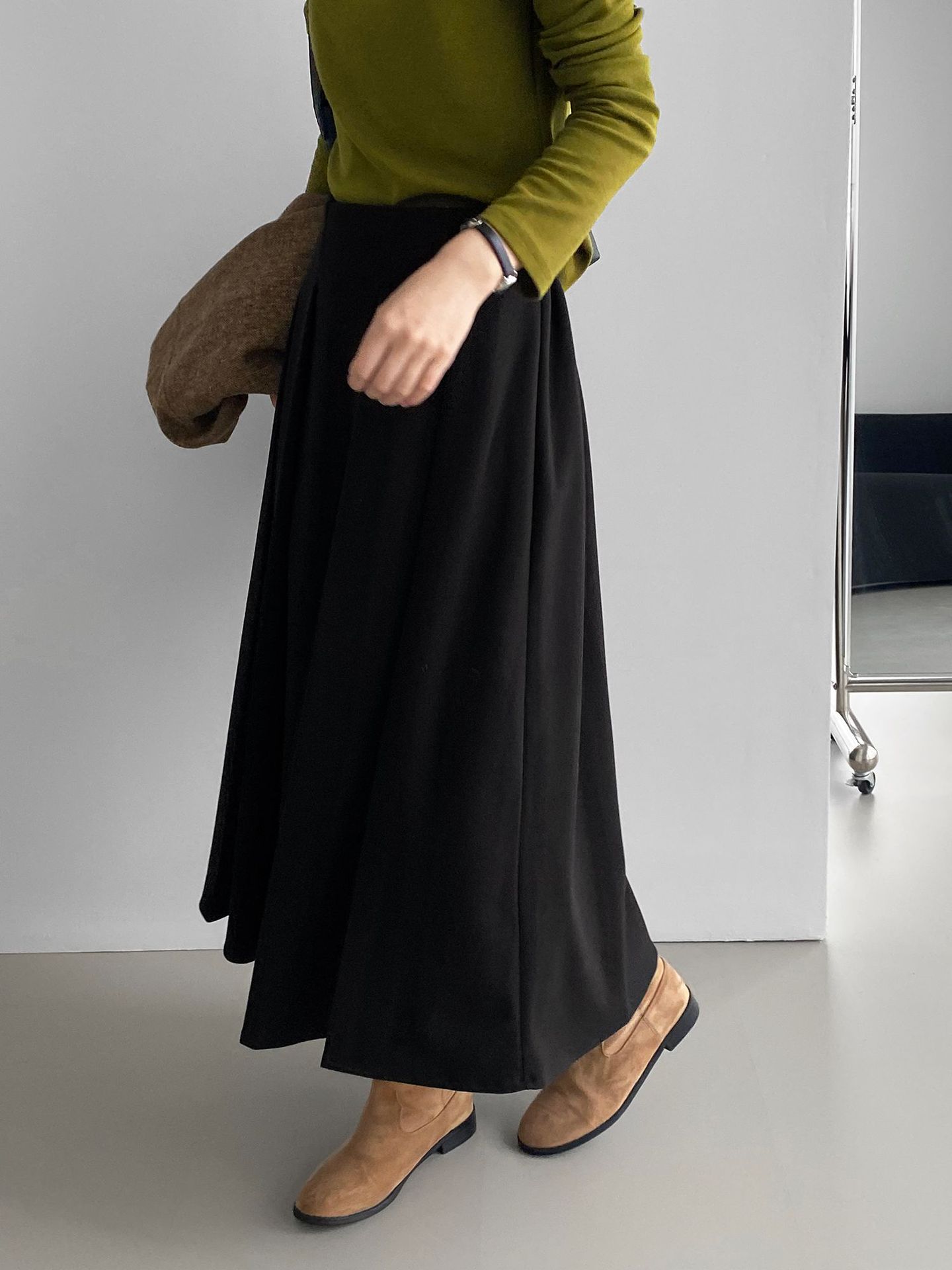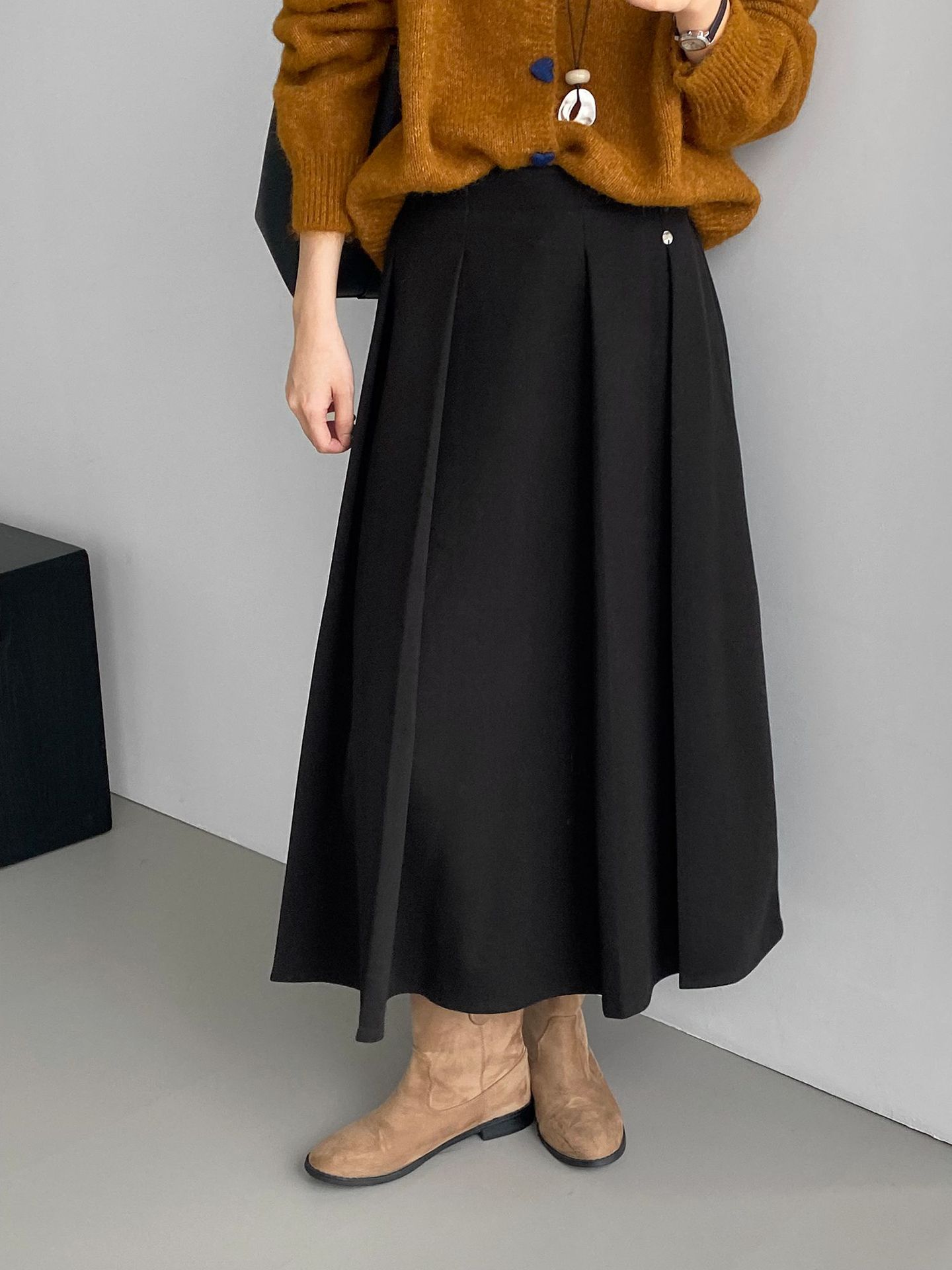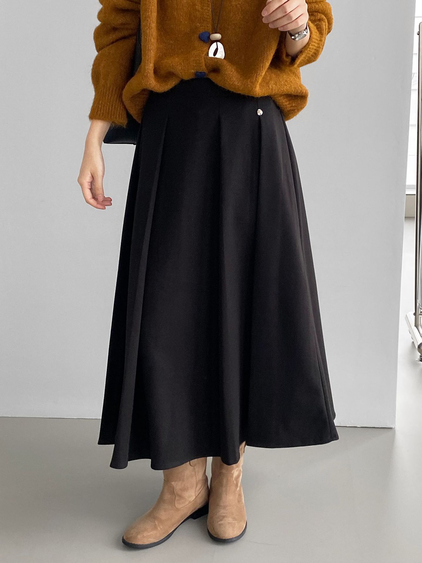 가을과 겨울 스커트에 매치하기 좋다. 한국 모직 플리트 스커트, 여성 하이웨이스트 날씬해 보이는 우산 밴딩 스커트
