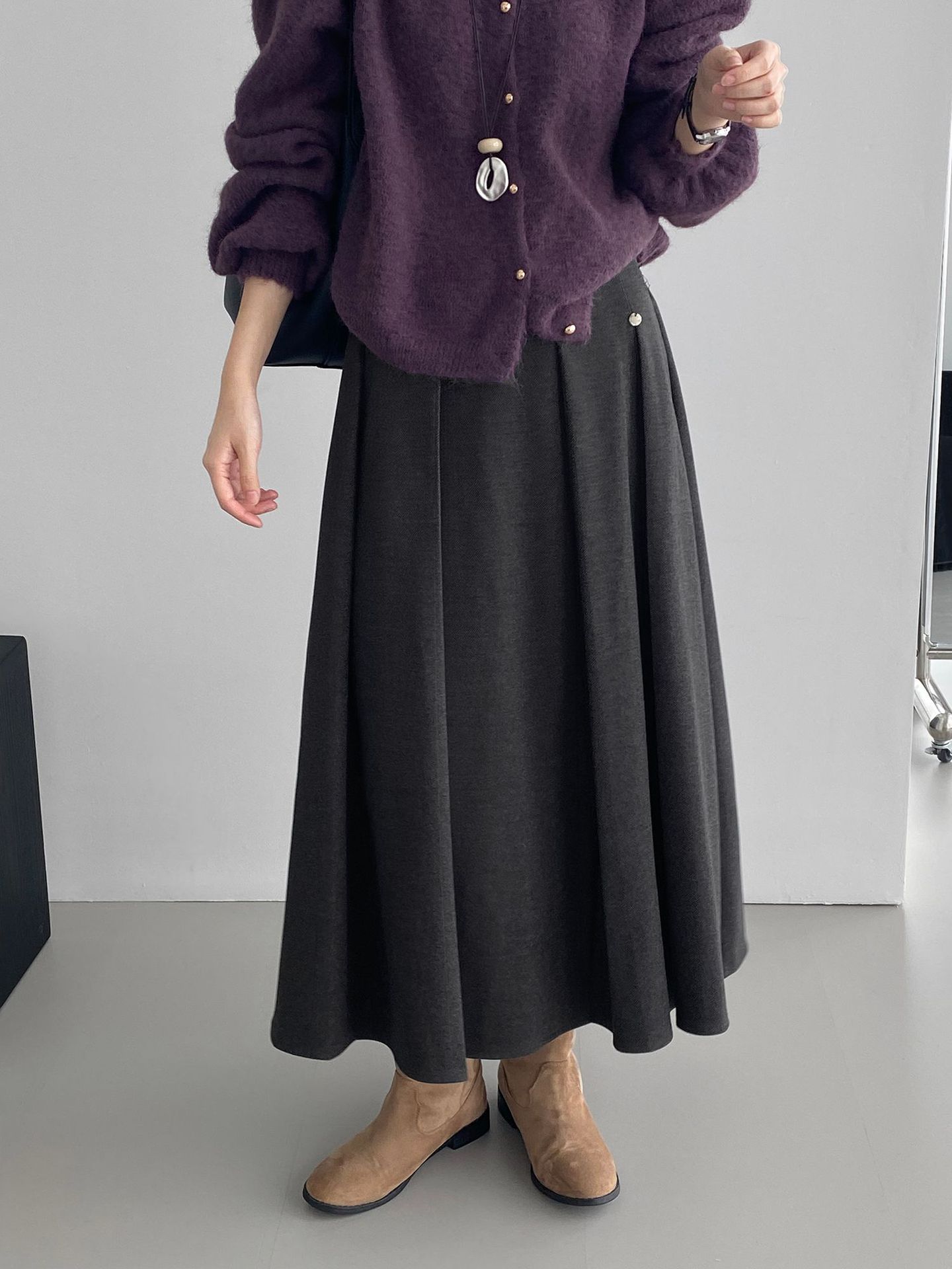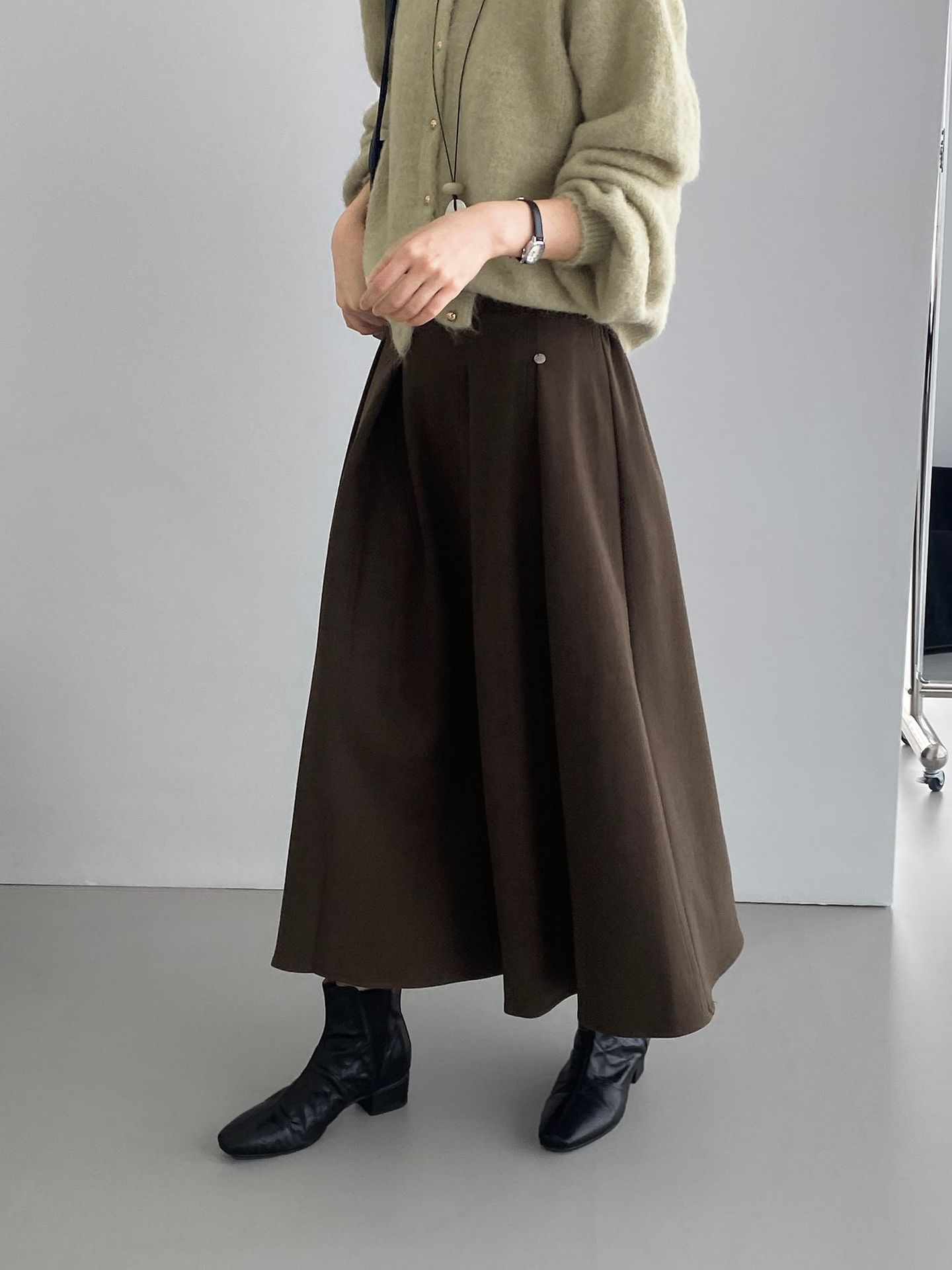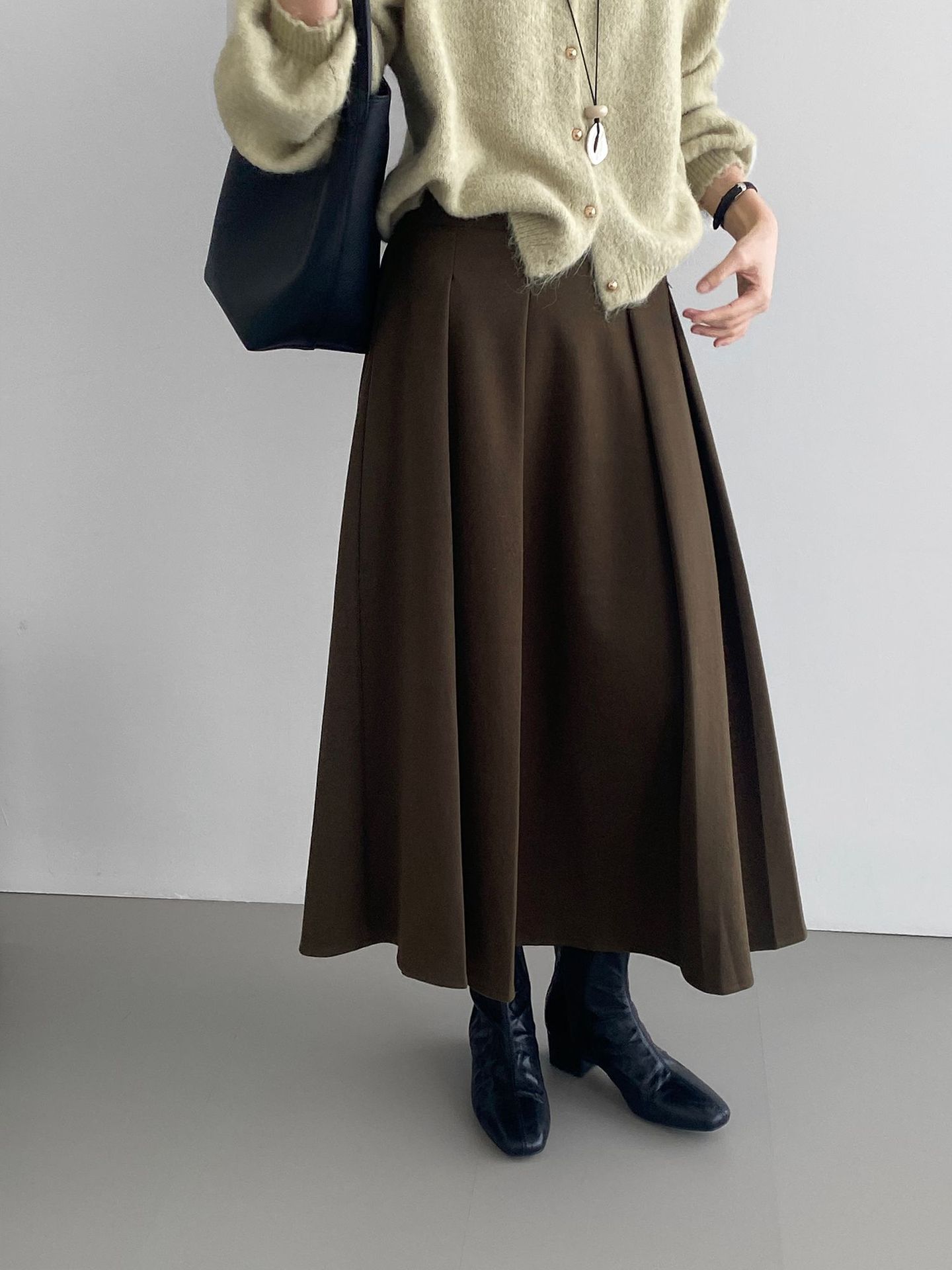 가을과 겨울 스커트에 매치하기 좋다. 한국 모직 플리트 스커트, 여성 하이웨이스트 날씬해 보이는 우산 밴딩 스커트