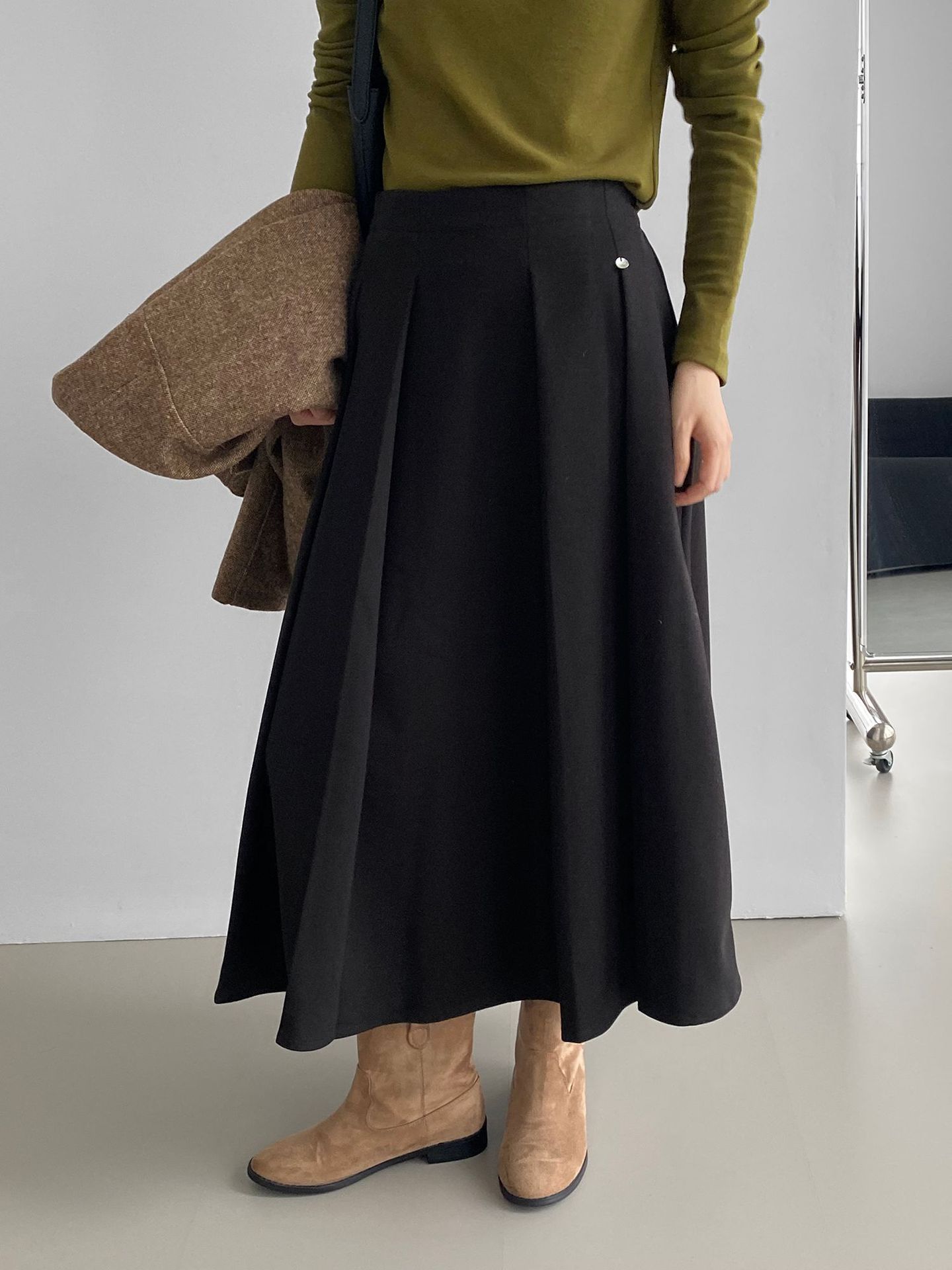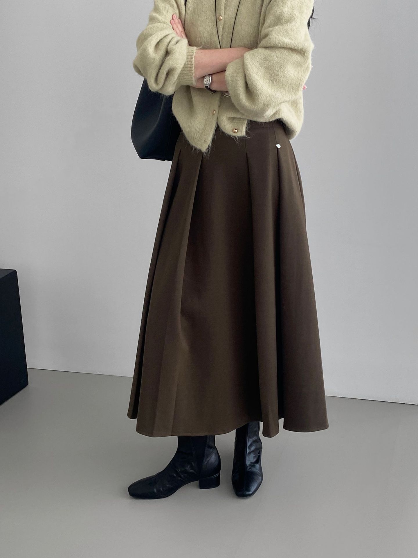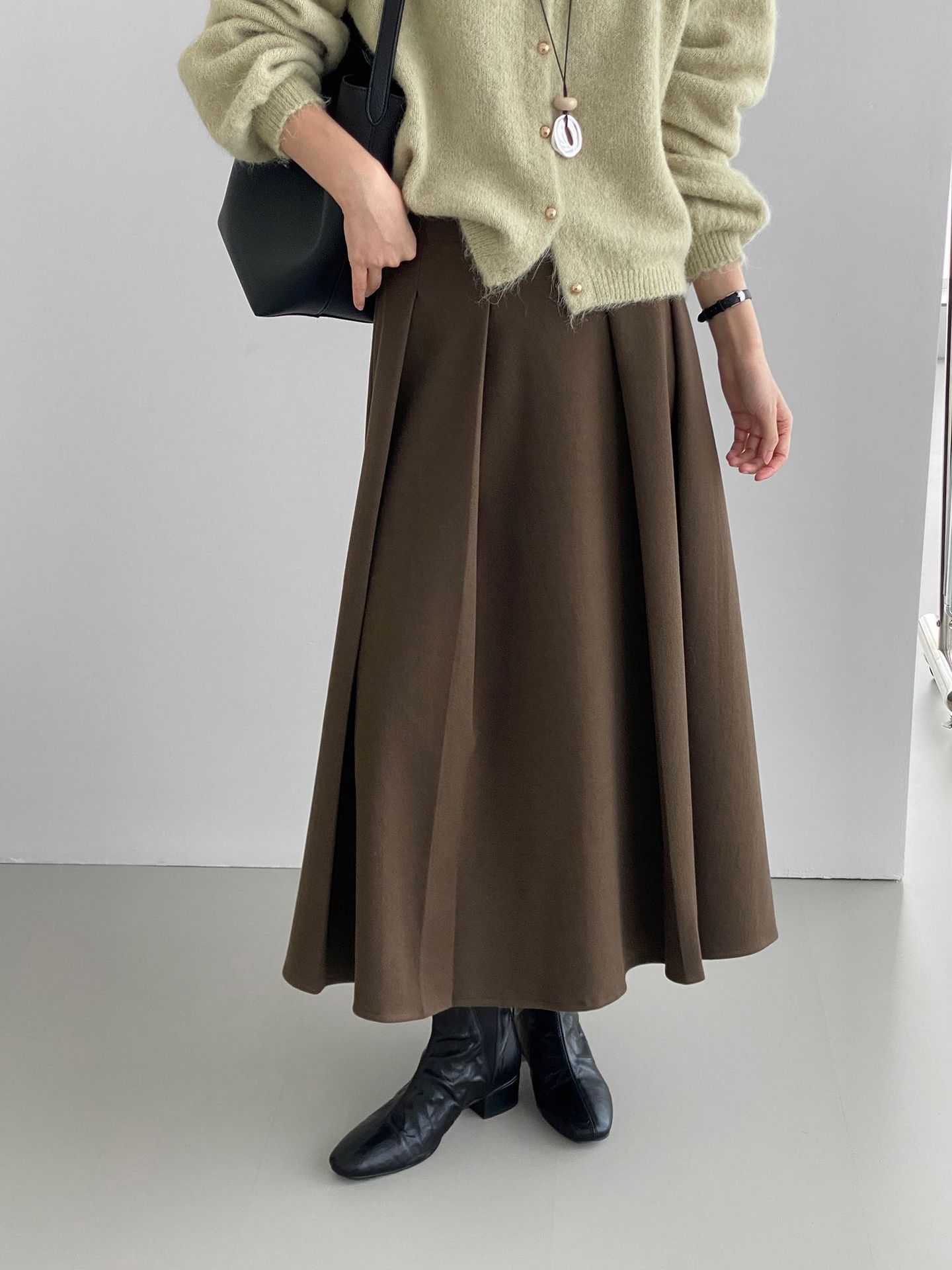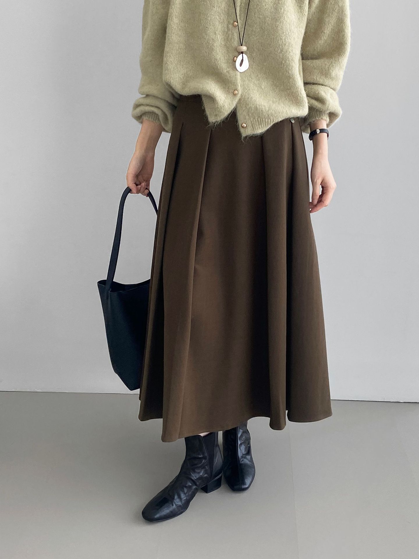 가을과 겨울 스커트에 매치하기 좋다. 한국 모직 플리트 스커트, 여성 하이웨이스트 날씬해 보이는 우산 밴딩 스커트
