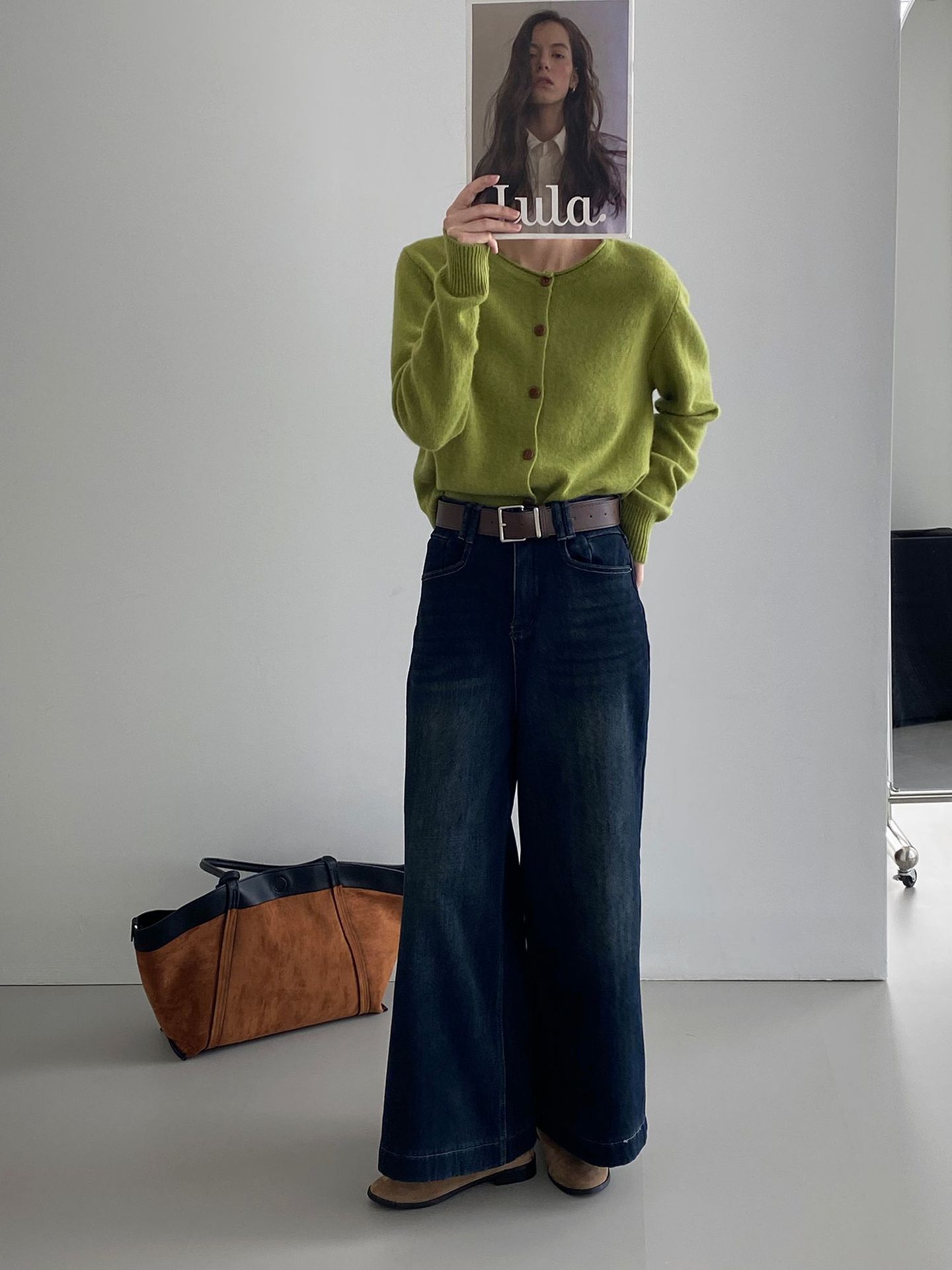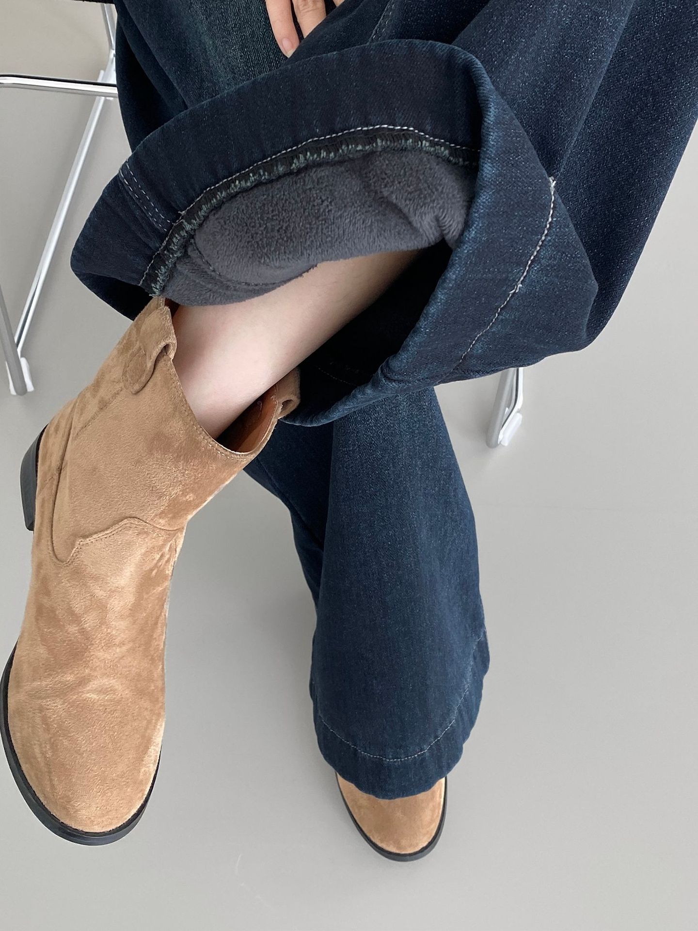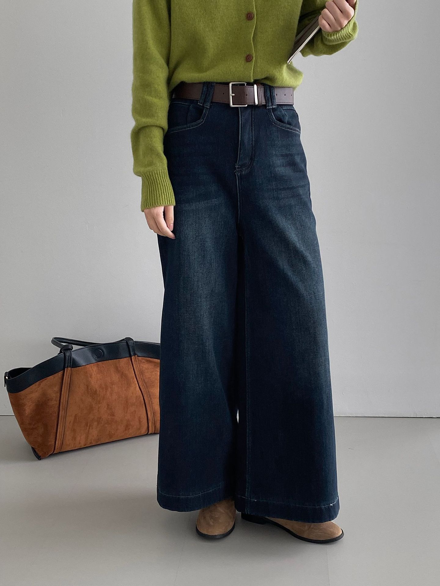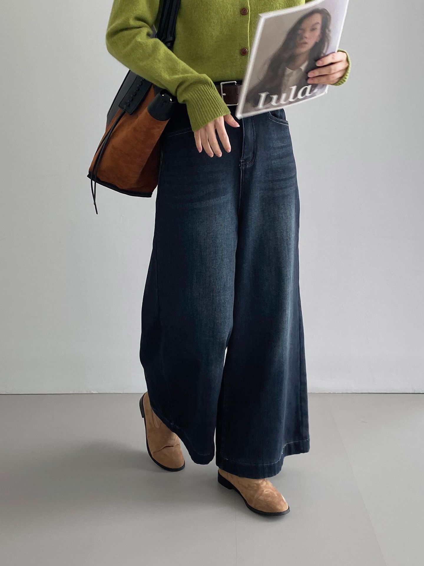 베이직 하이웨이스트 기모 도톰한 통 데님 여성 빈티지 캐주얼 롱 팬츠