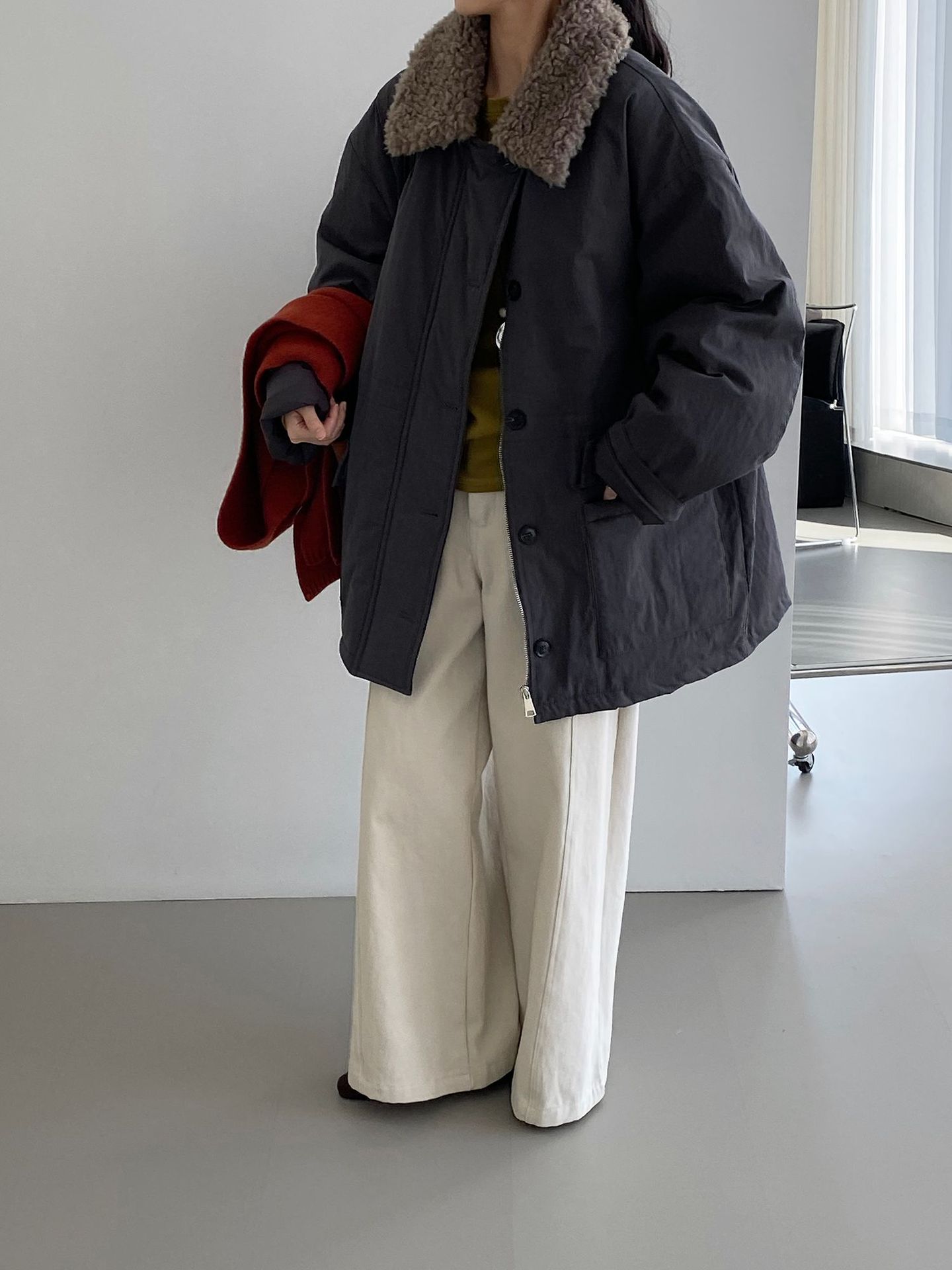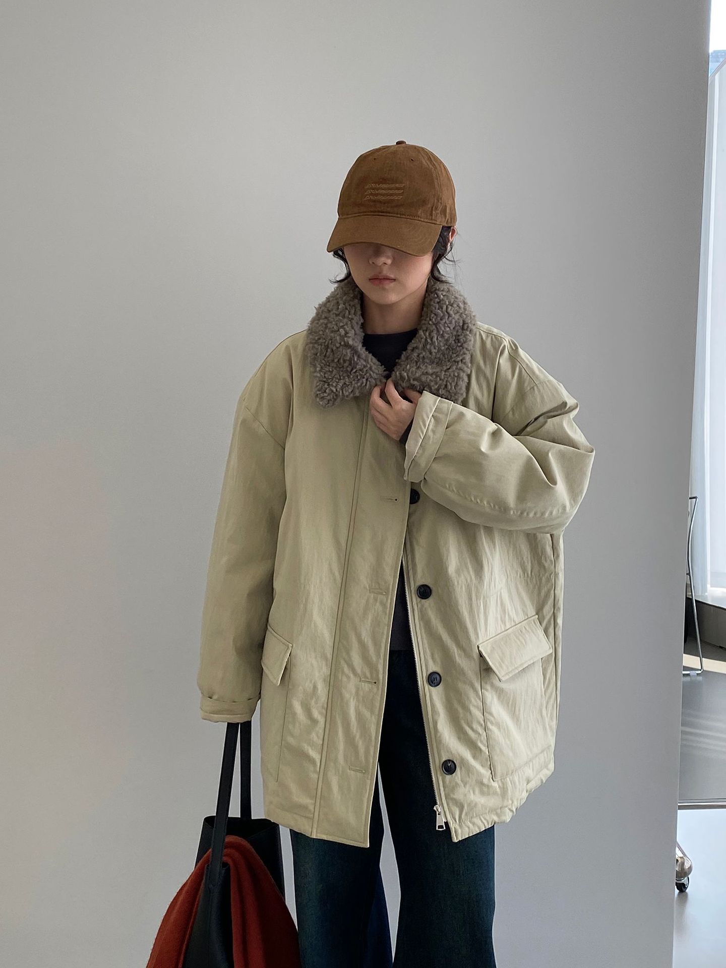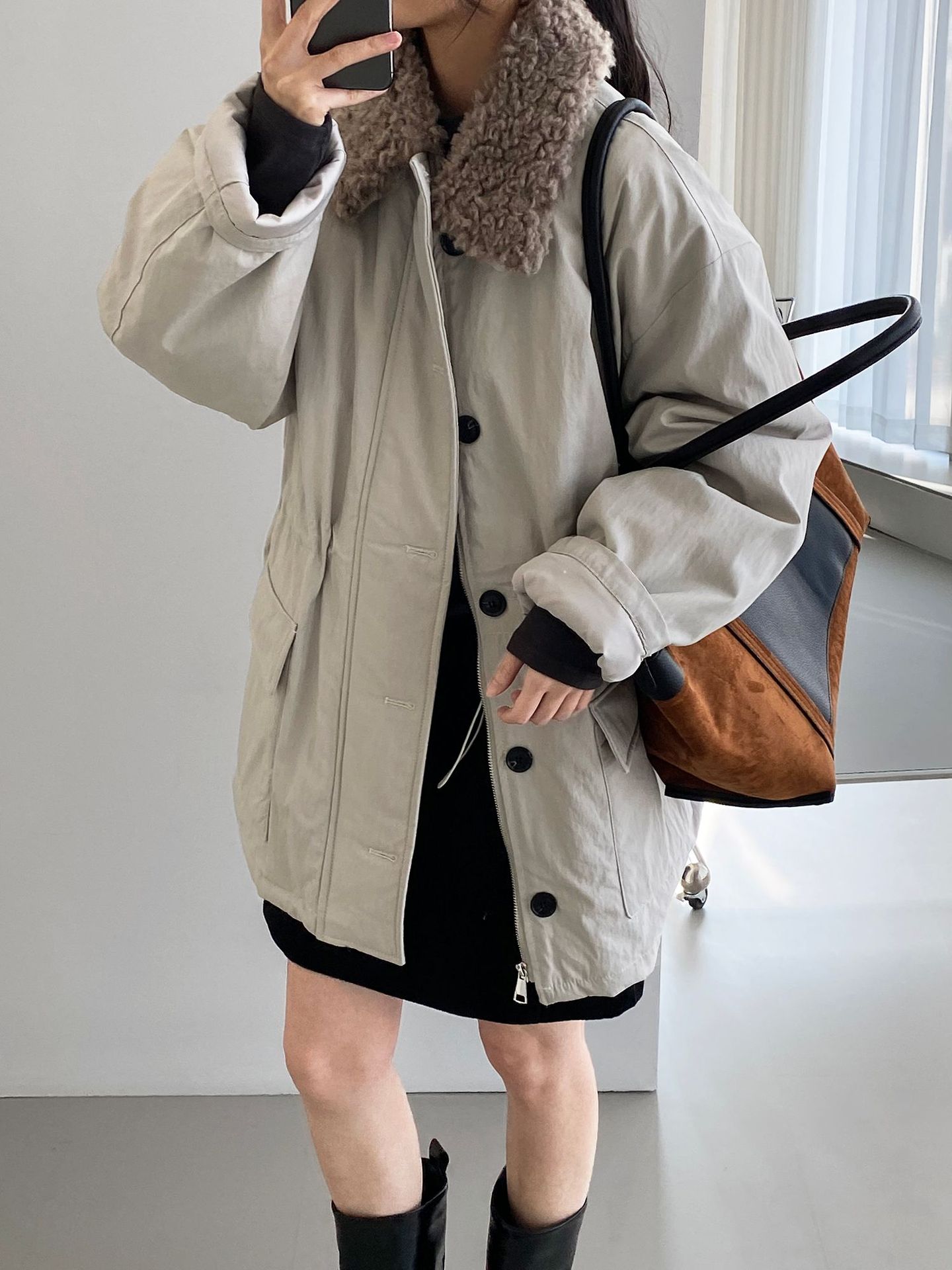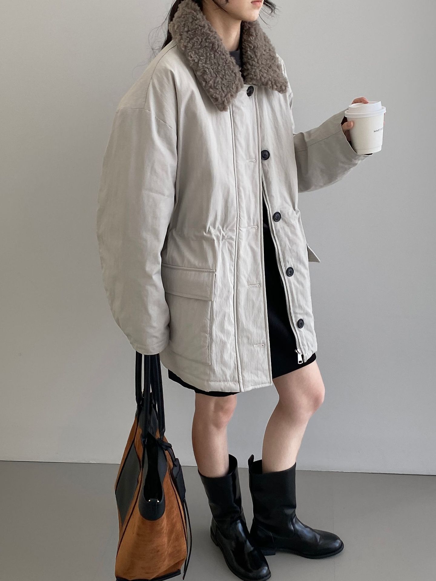 겨울 공복 털칼라 극복 두툼한 흰색 오리털 중롱 보온 패딩