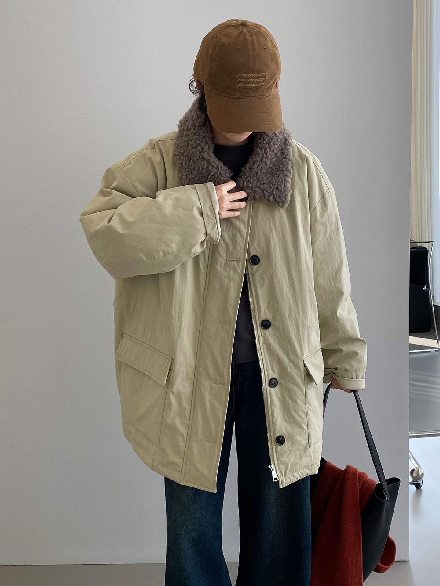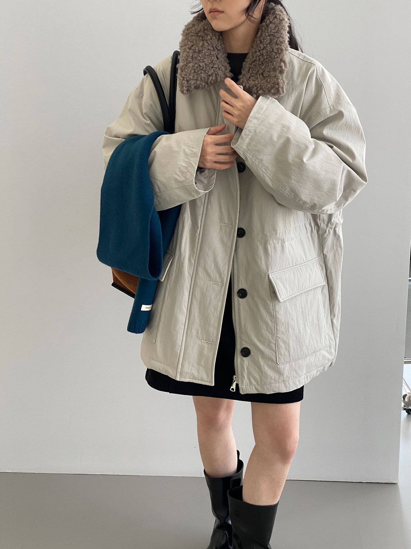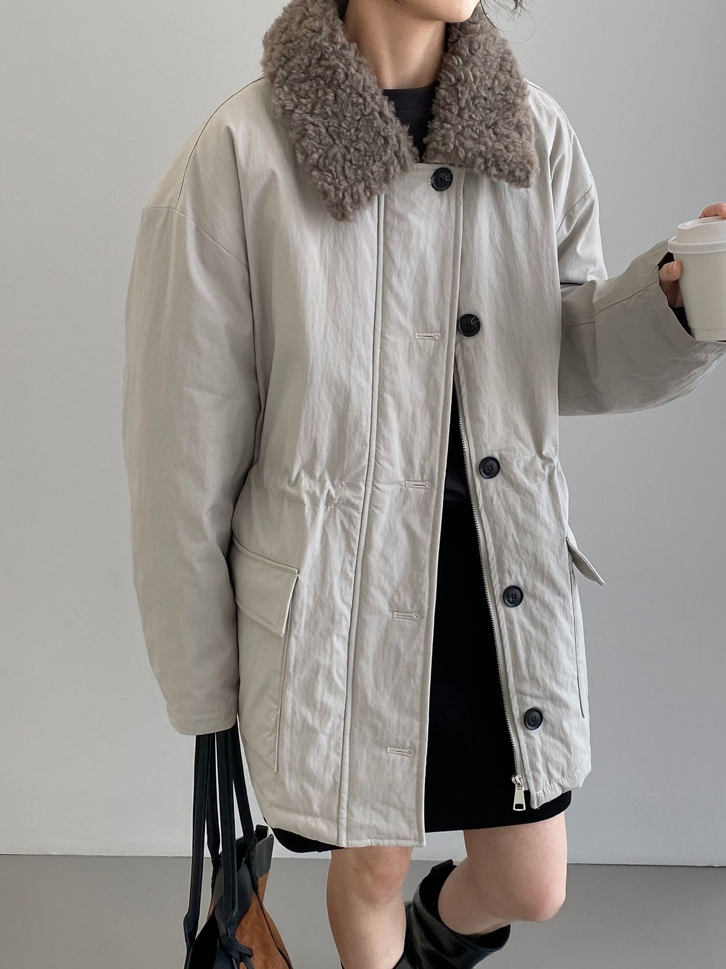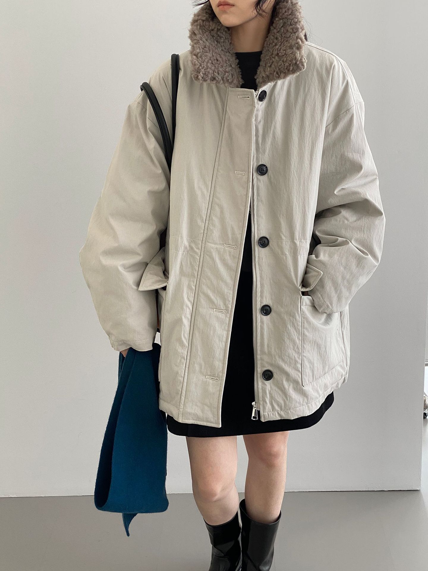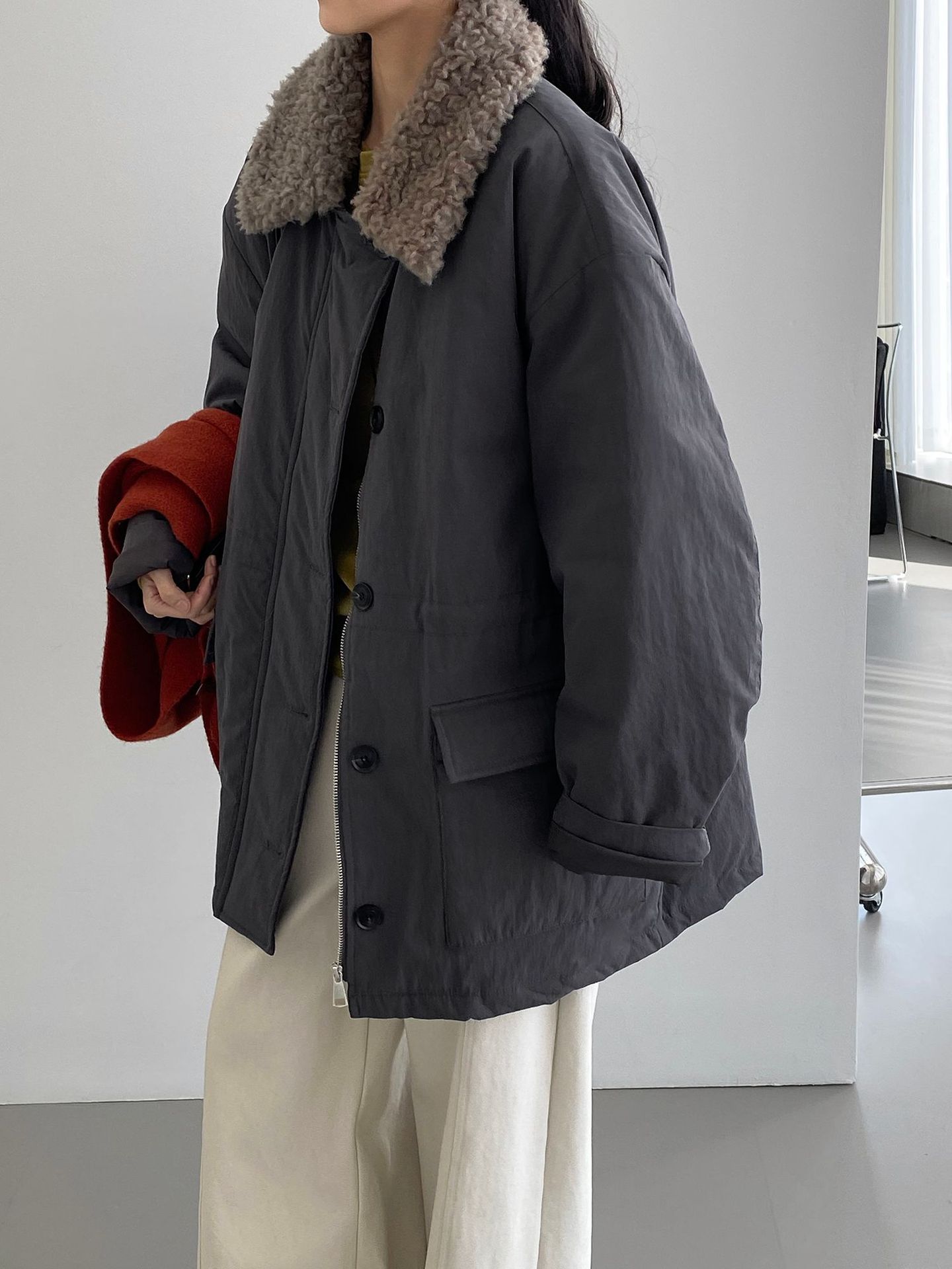 겨울 공복 털칼라 극복 두툼한 흰색 오리털 중롱 보온 패딩