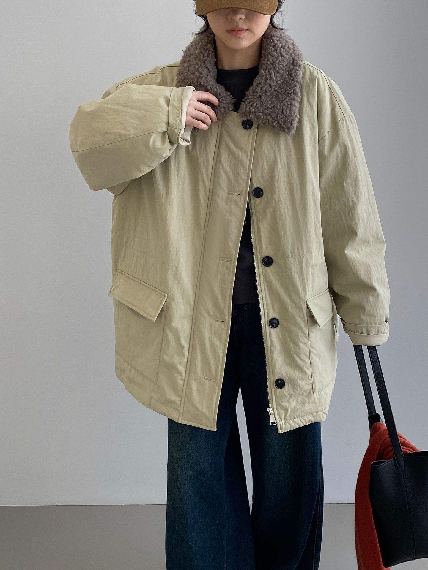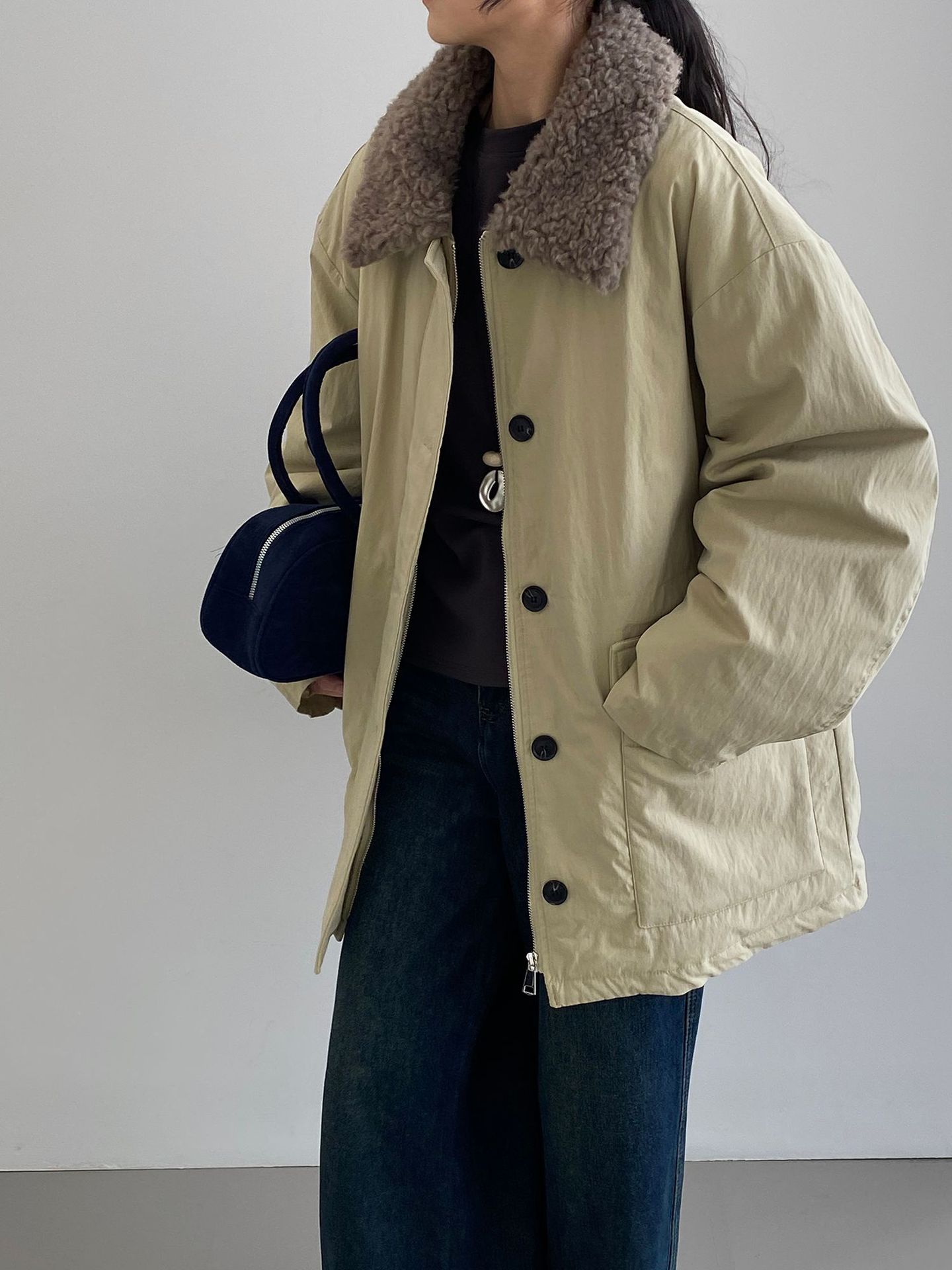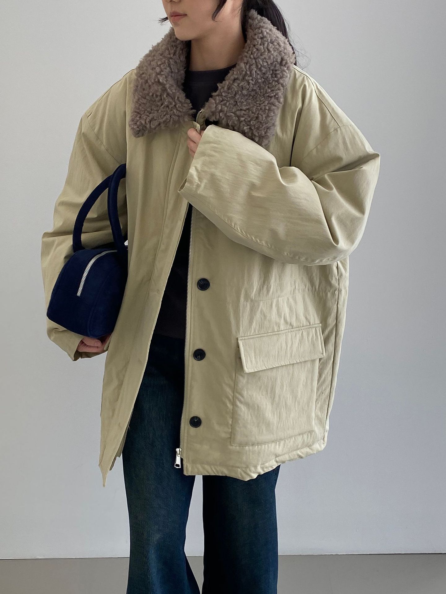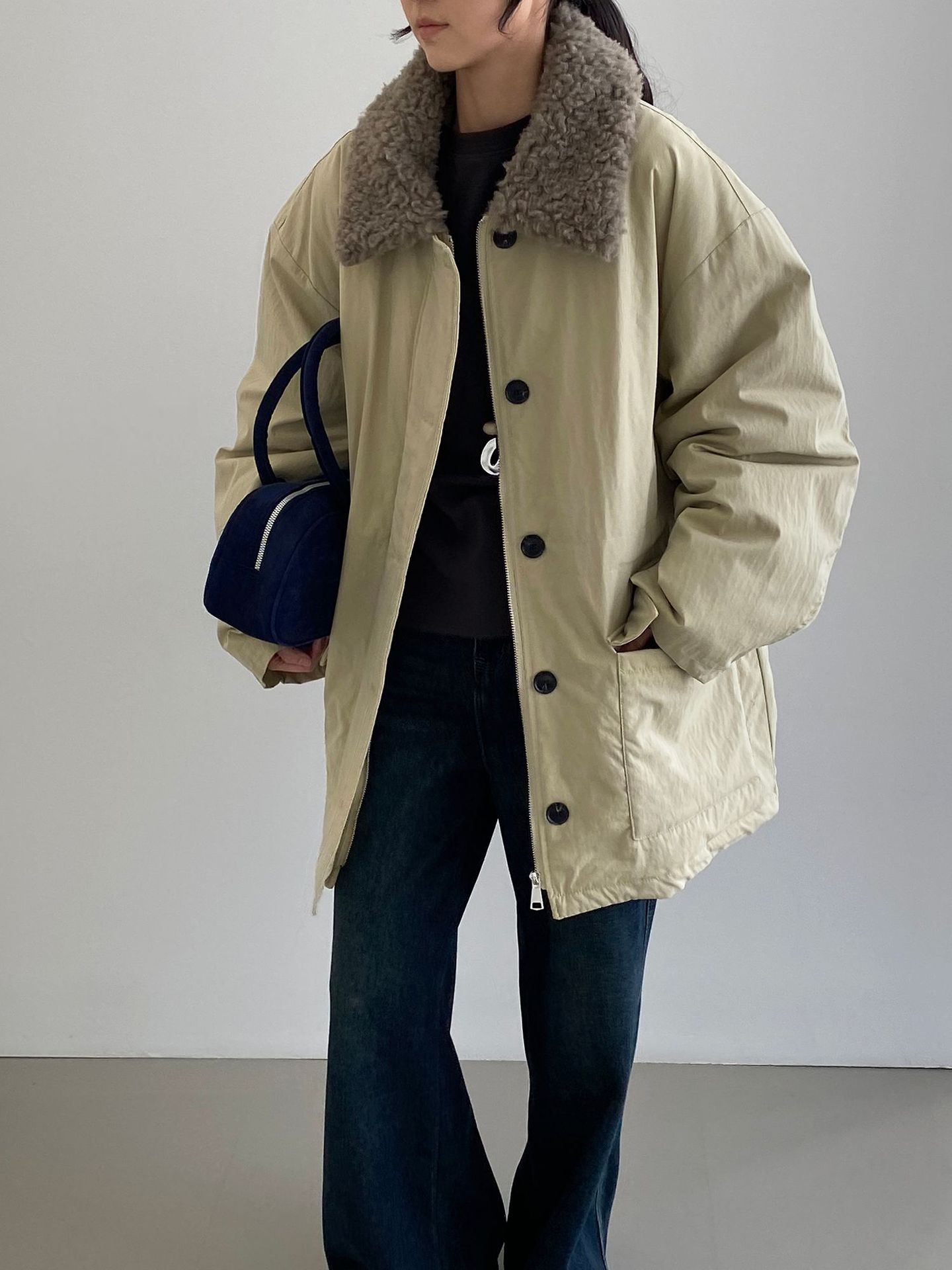 겨울 공복 털칼라 극복 두툼한 흰색 오리털 중롱 보온 패딩