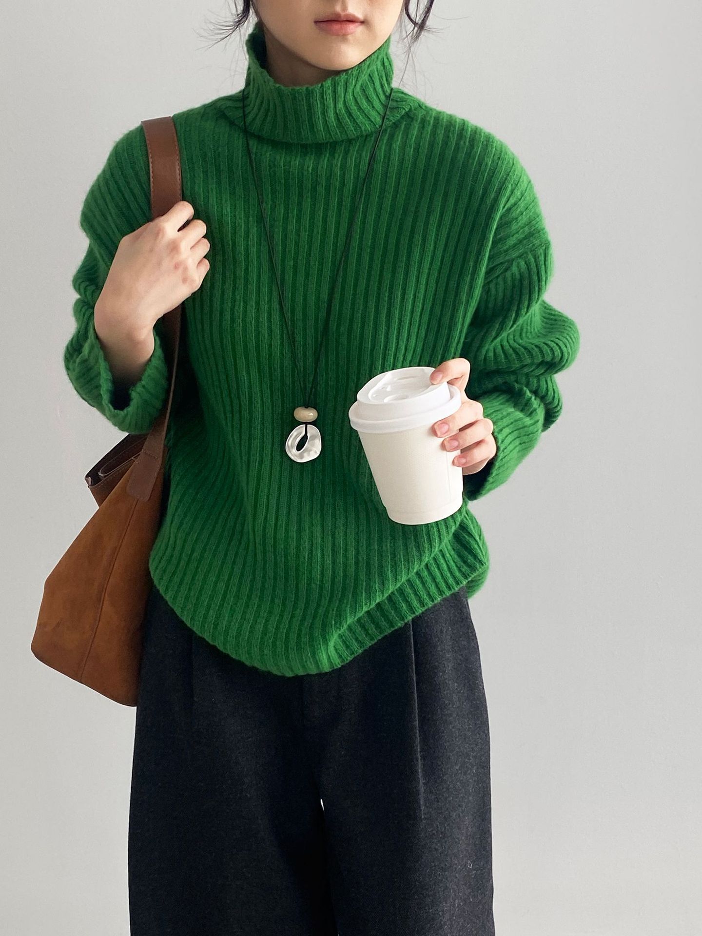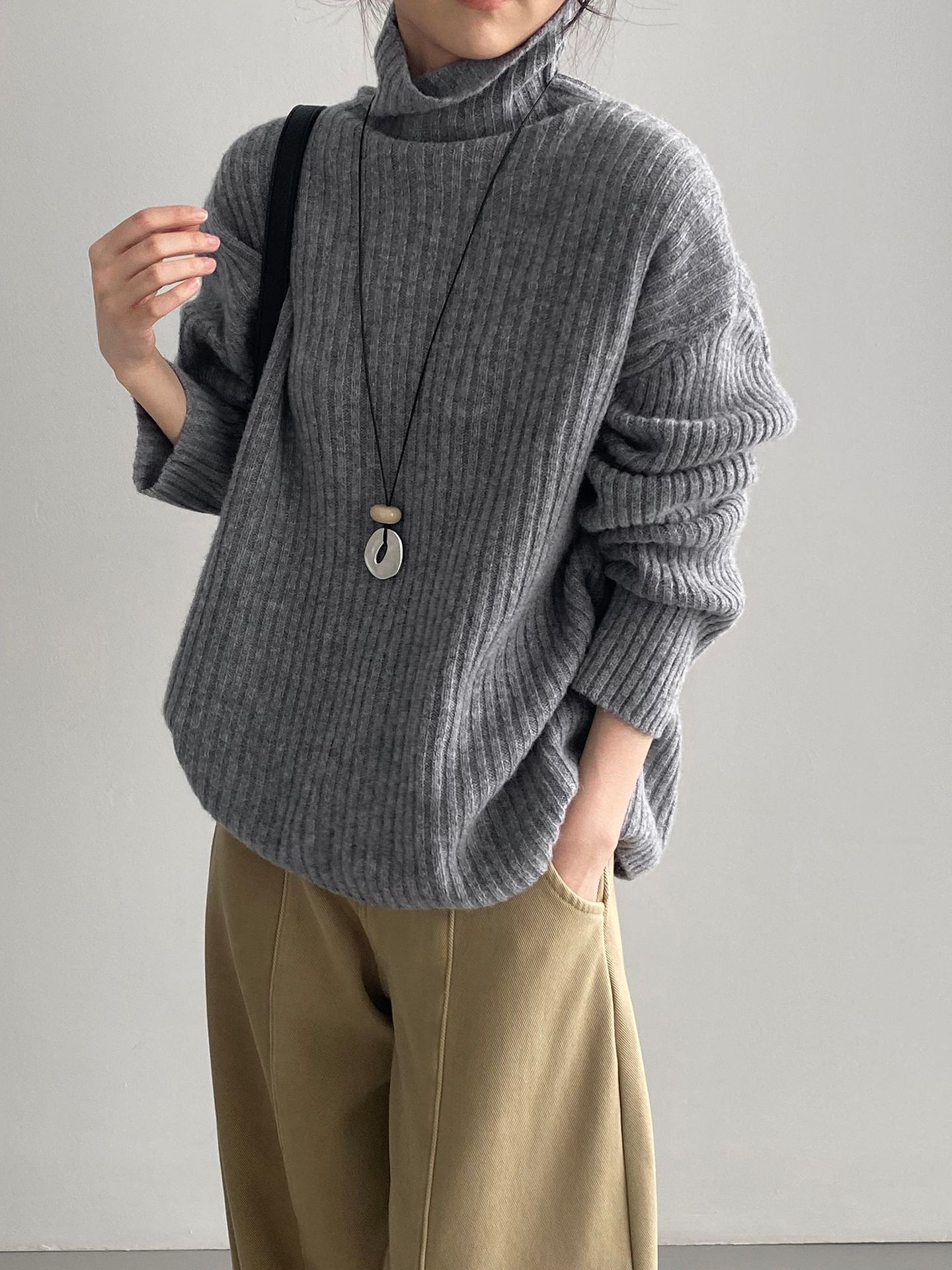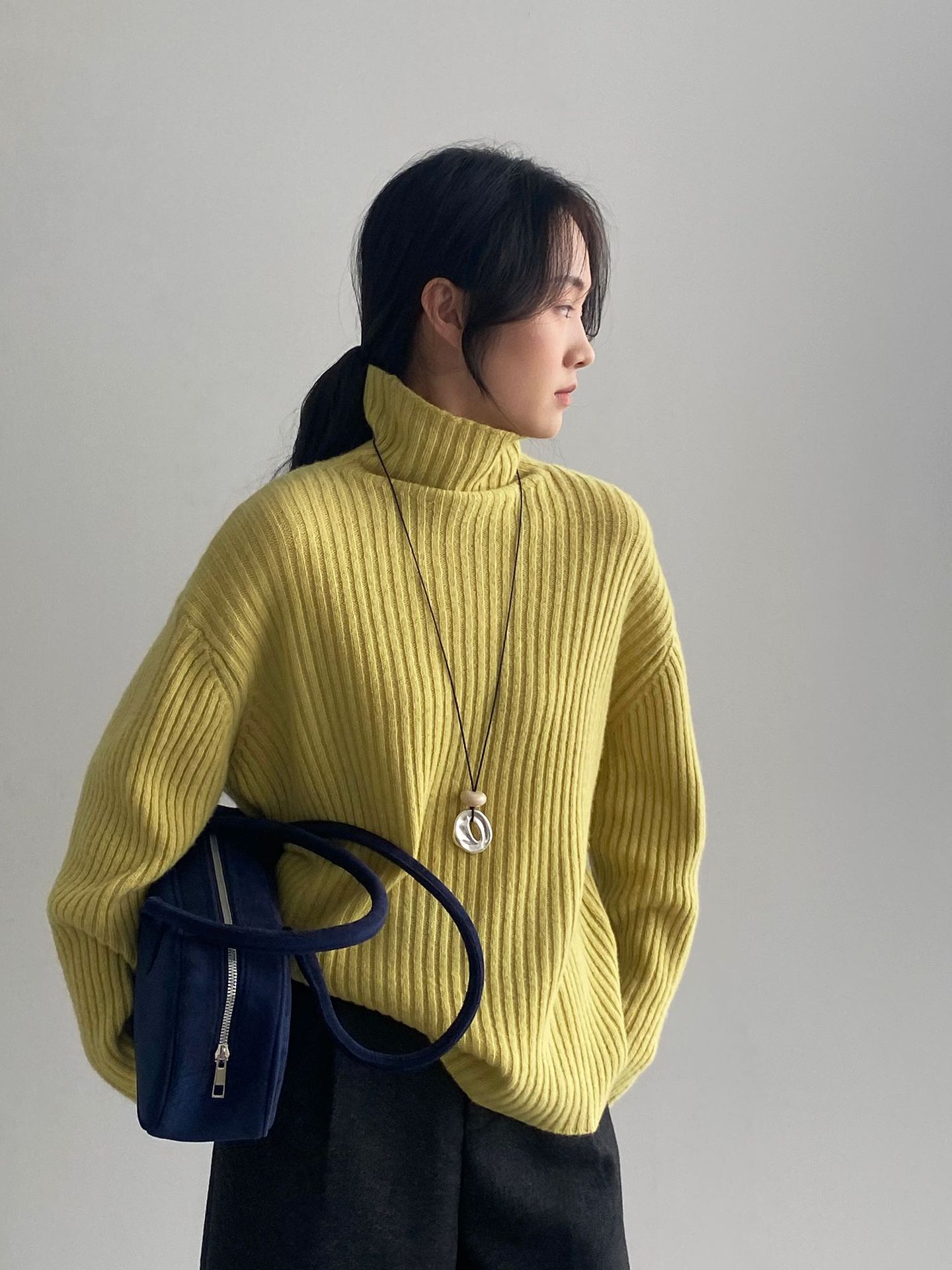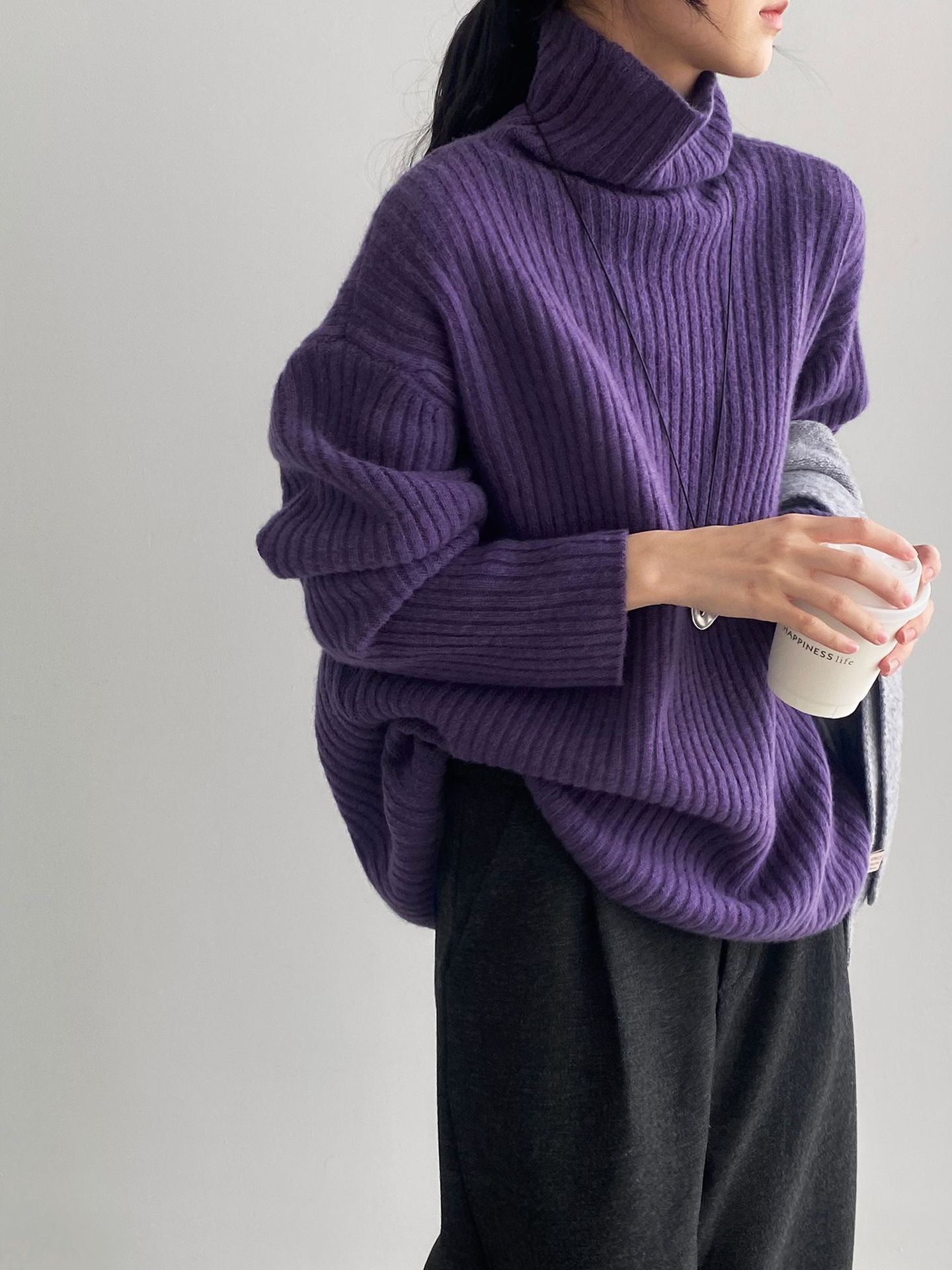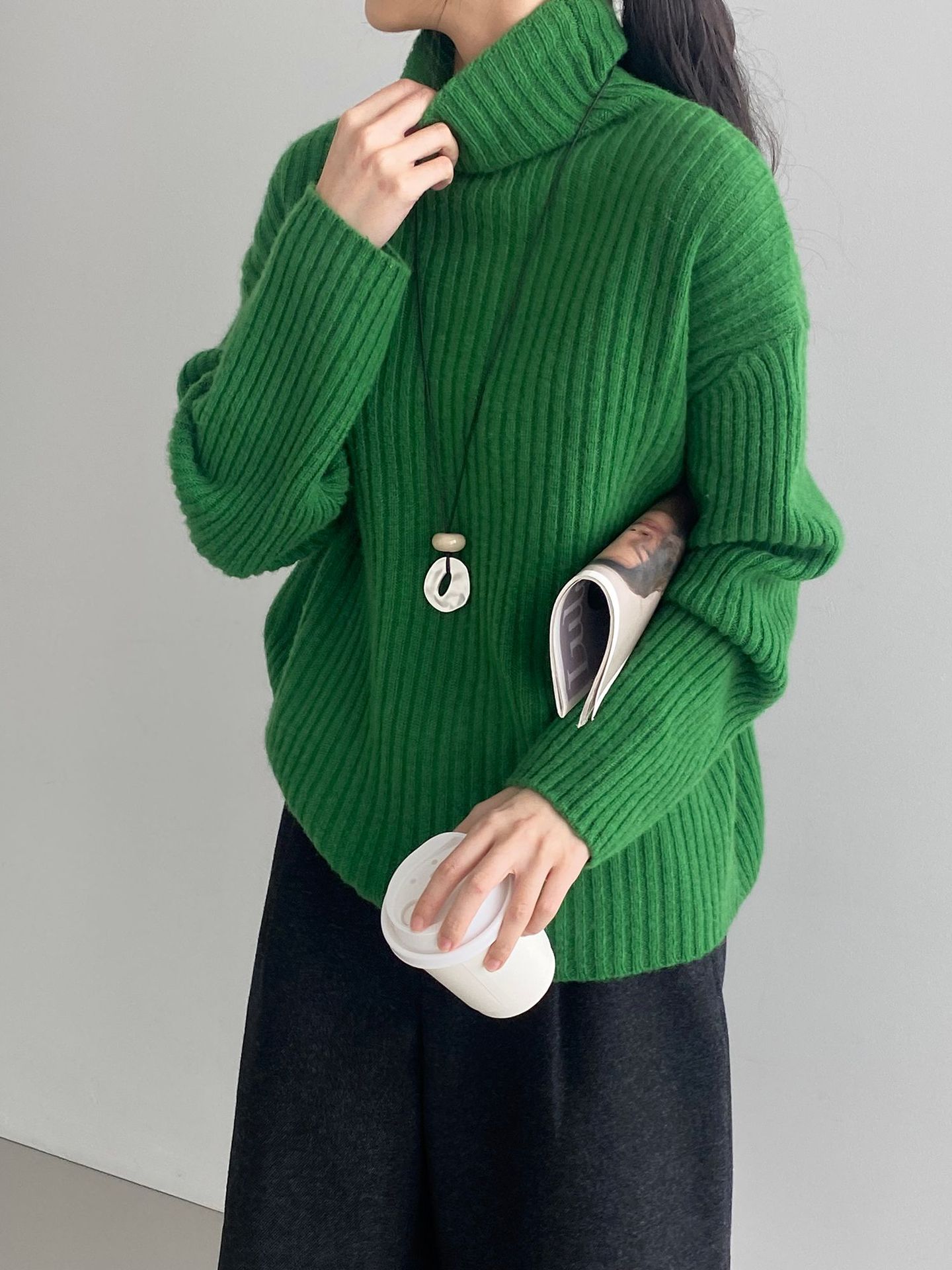 한국계 울 퀄리티 높은 터틀넥 나른한 여성 니트