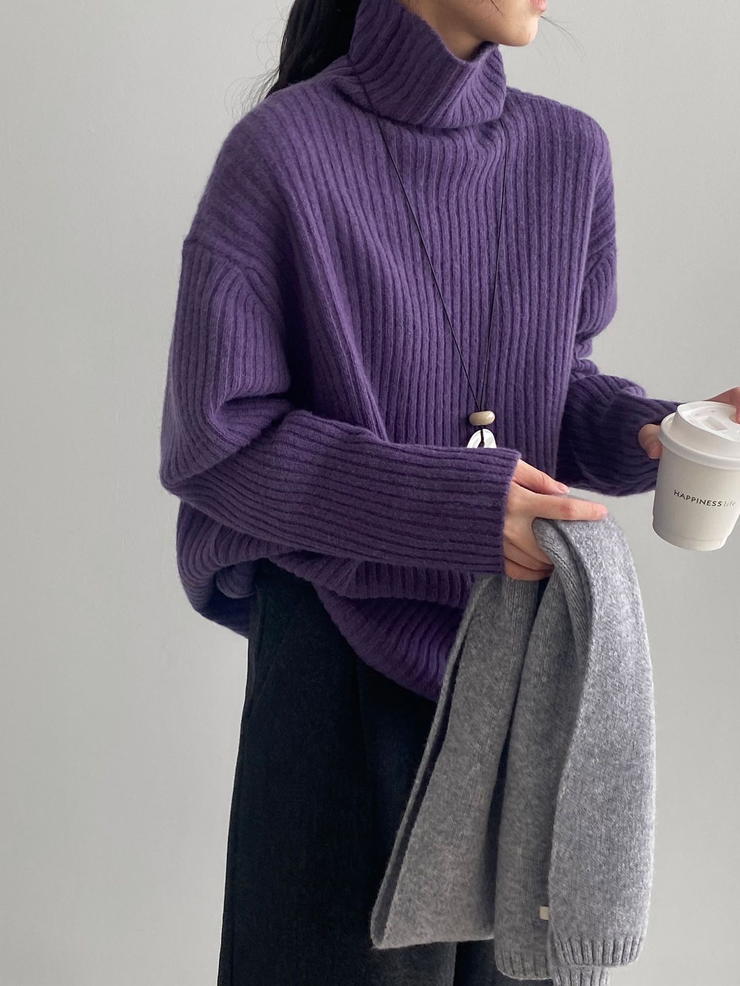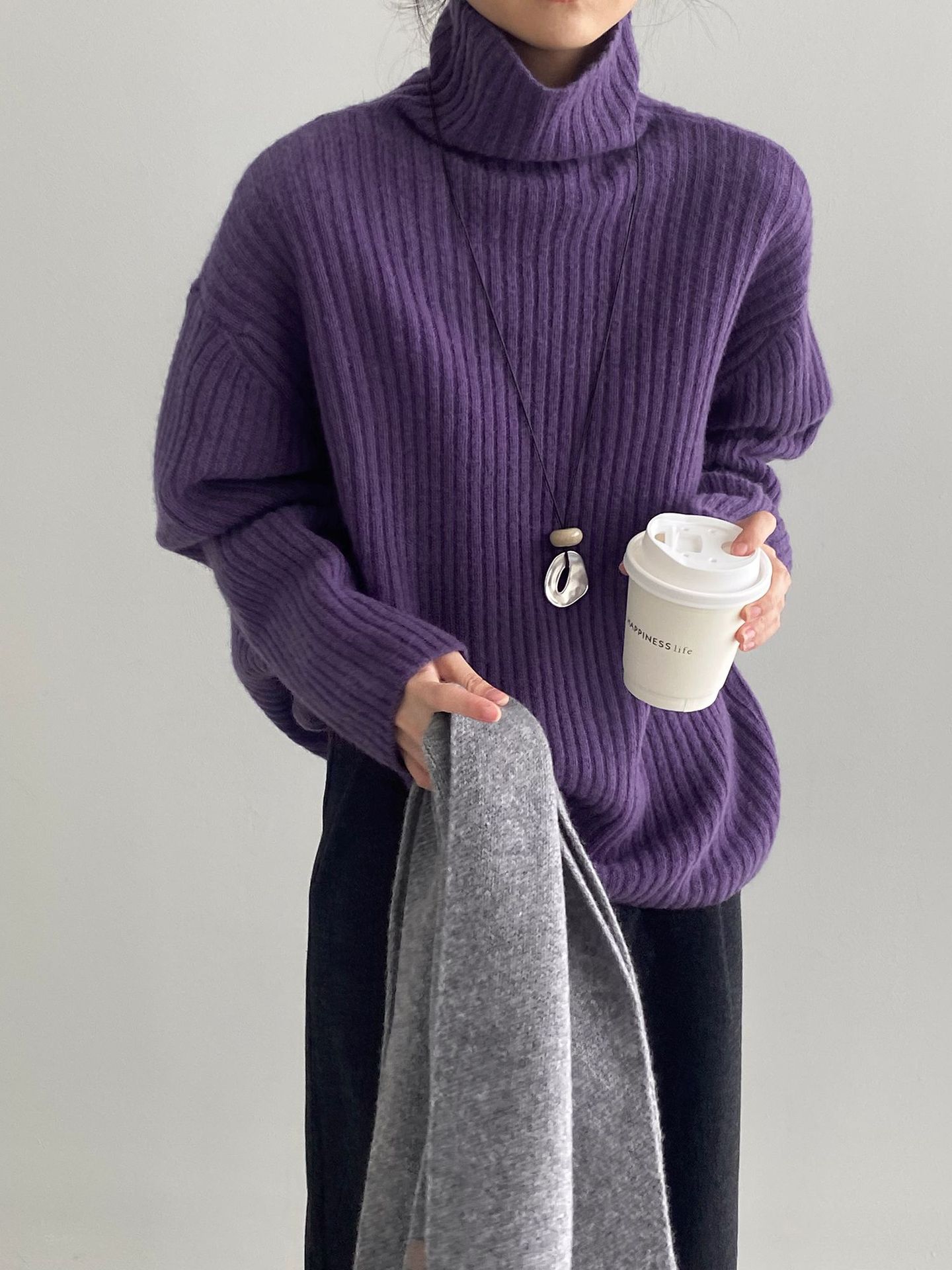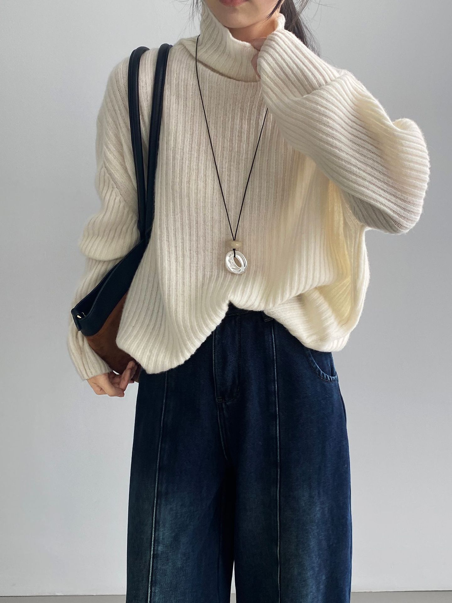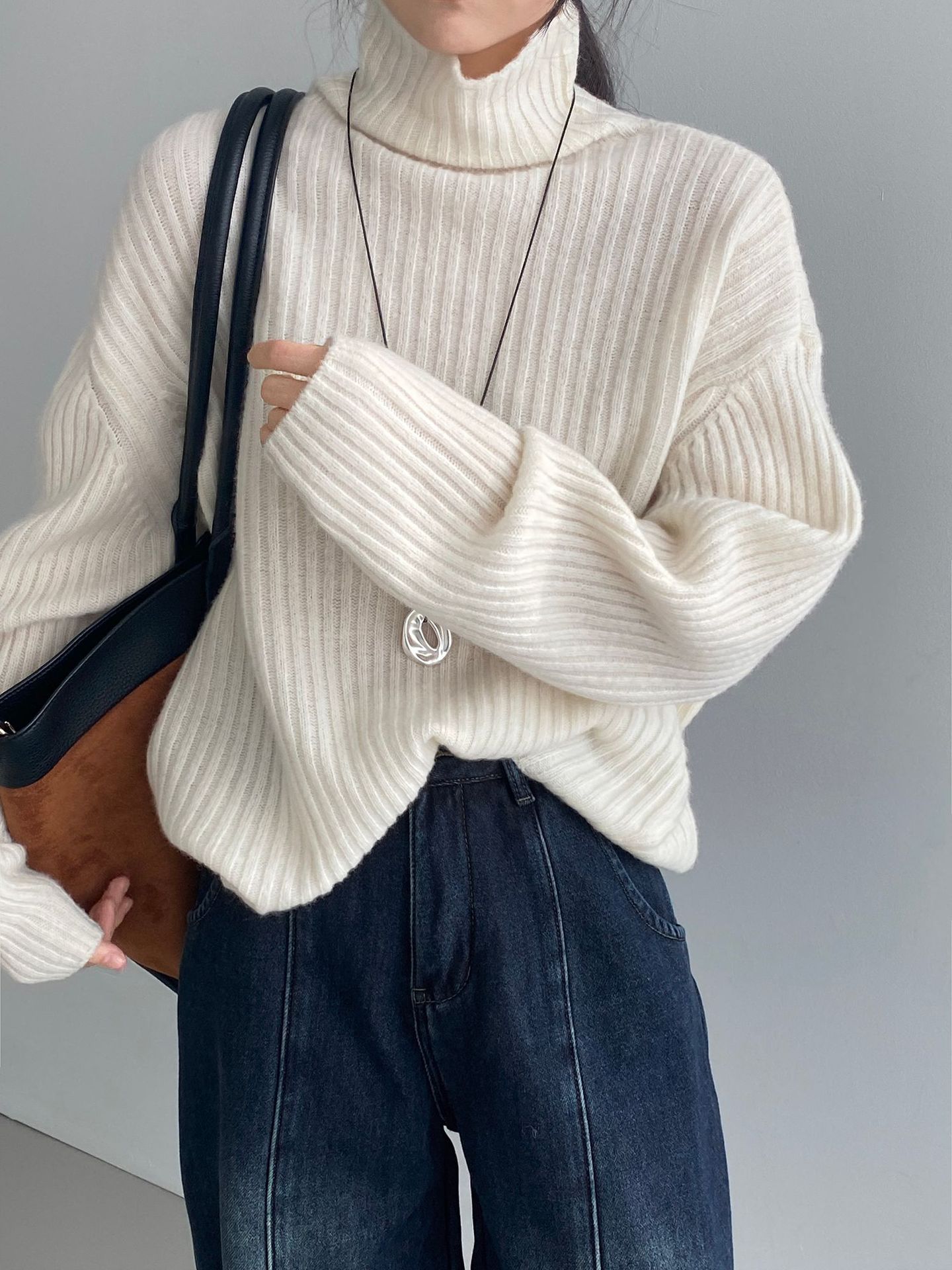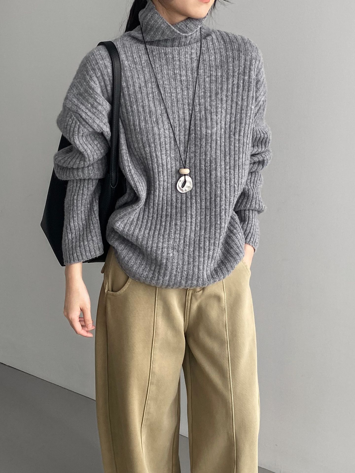 한국계 울 퀄리티 높은 터틀넥 나른한 여성 니트
