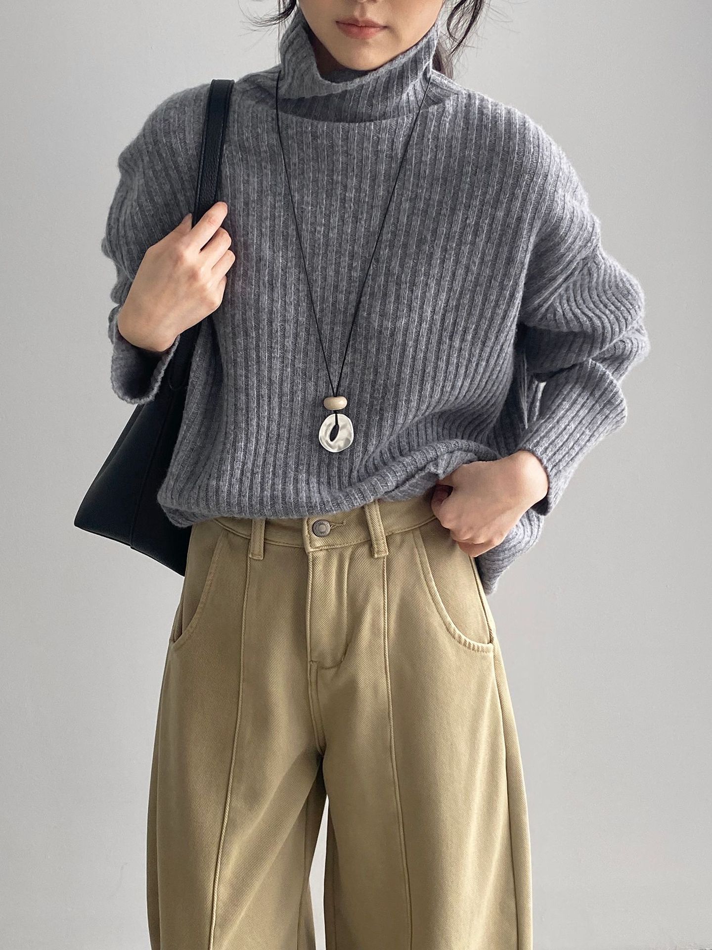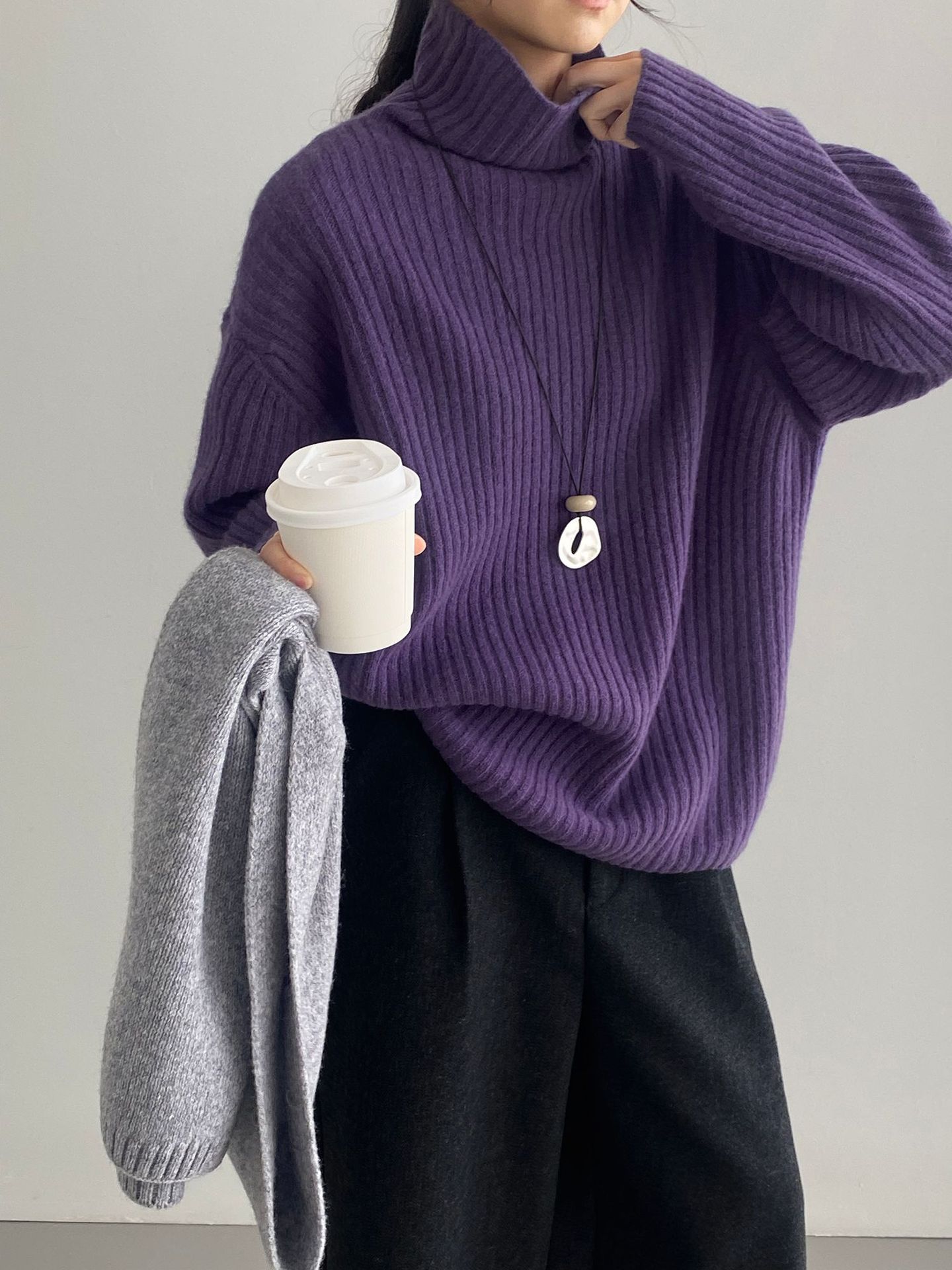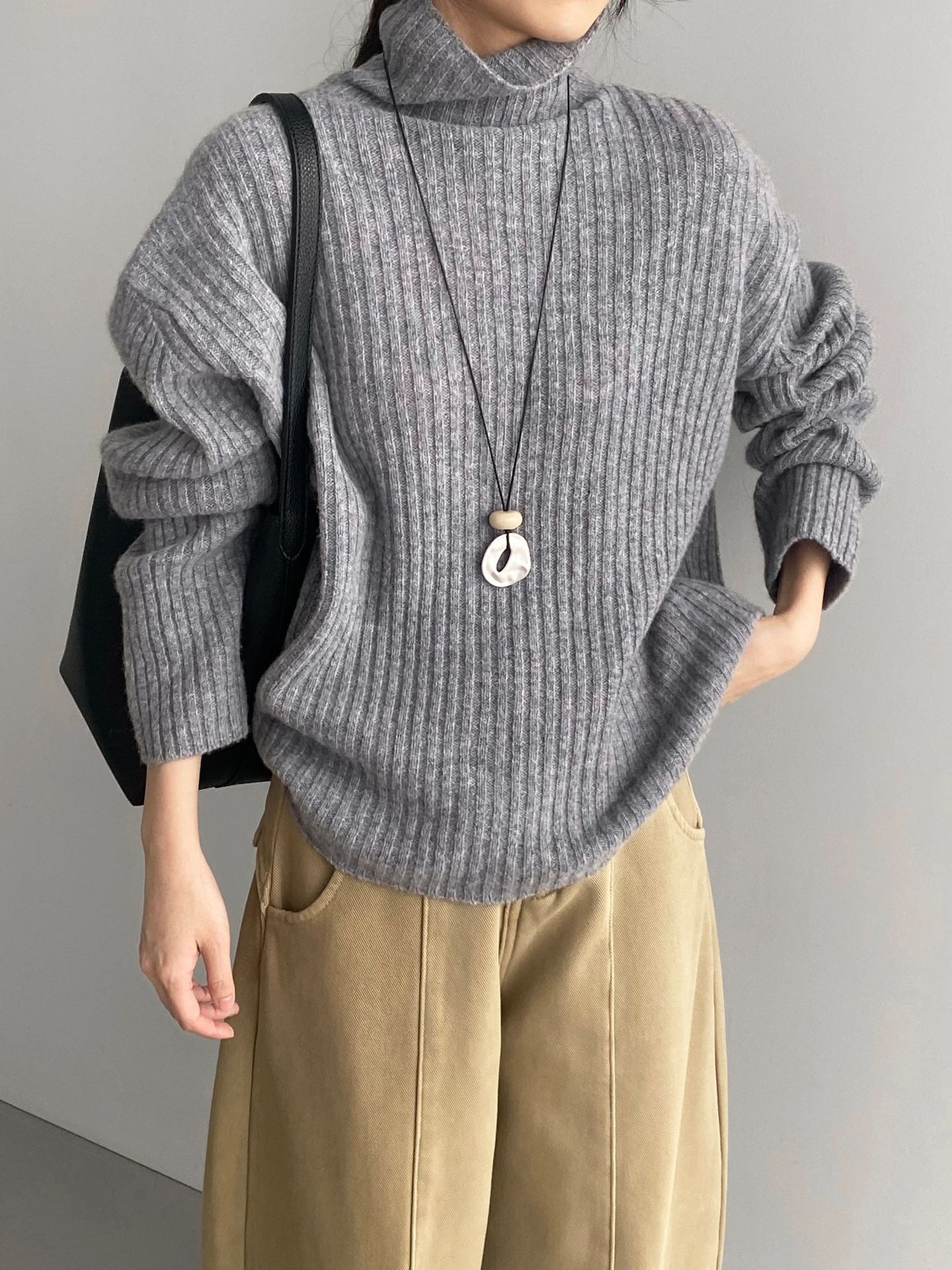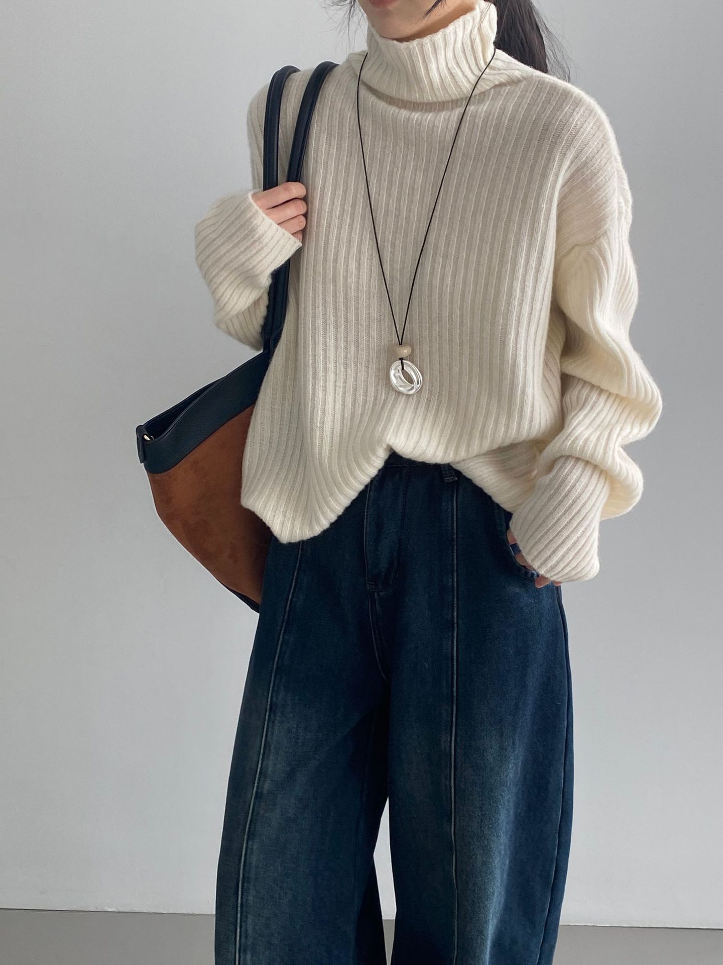 한국계 울 퀄리티 높은 터틀넥 나른한 여성 니트