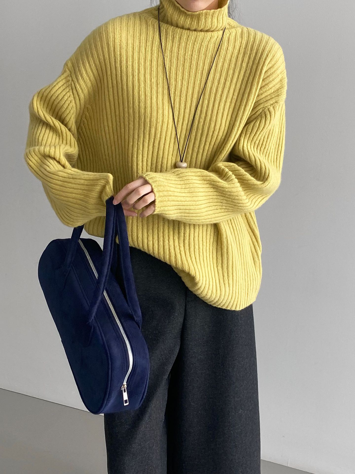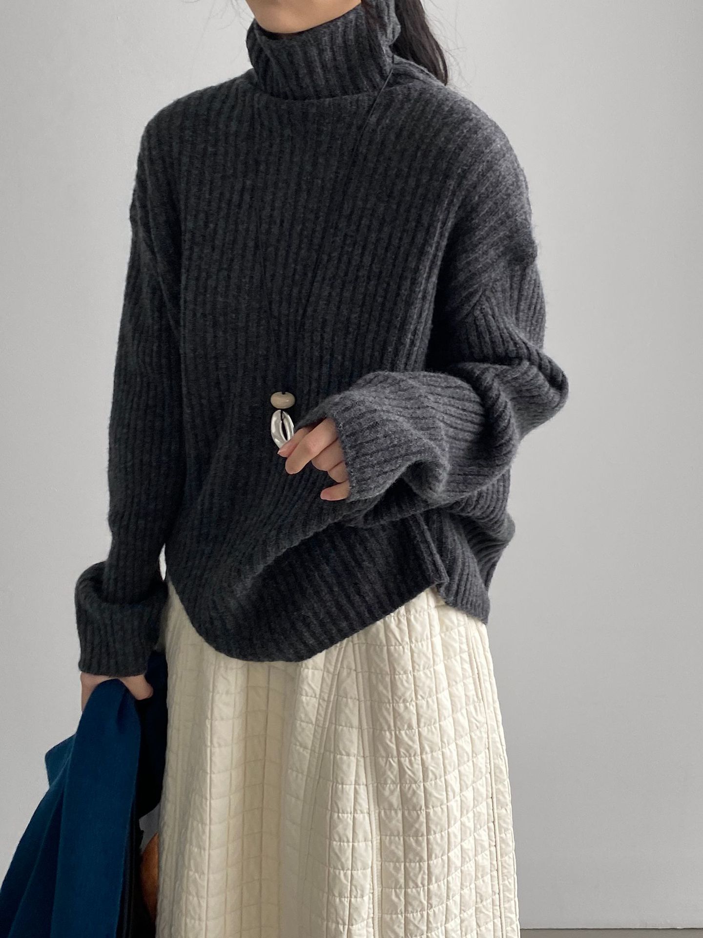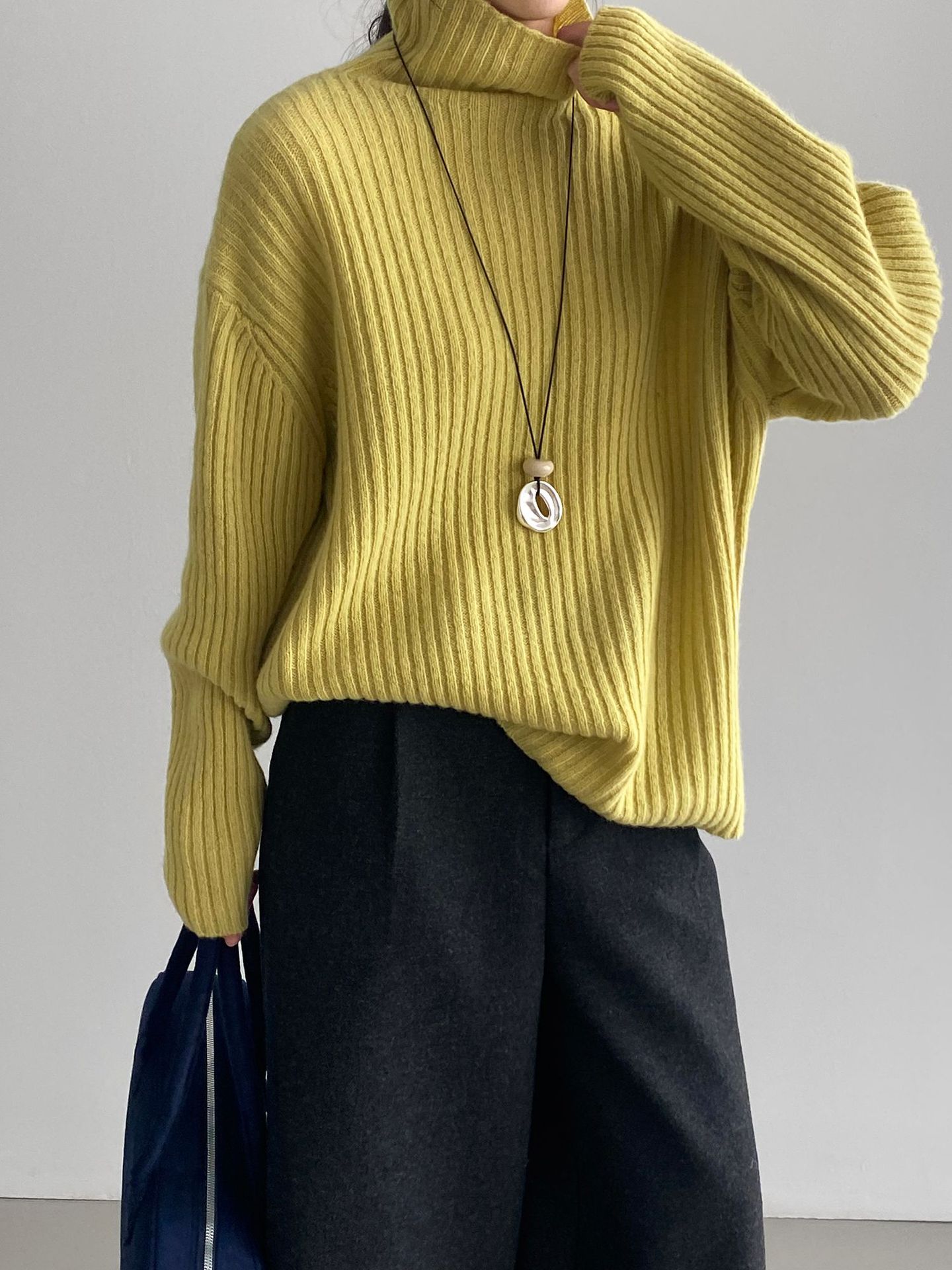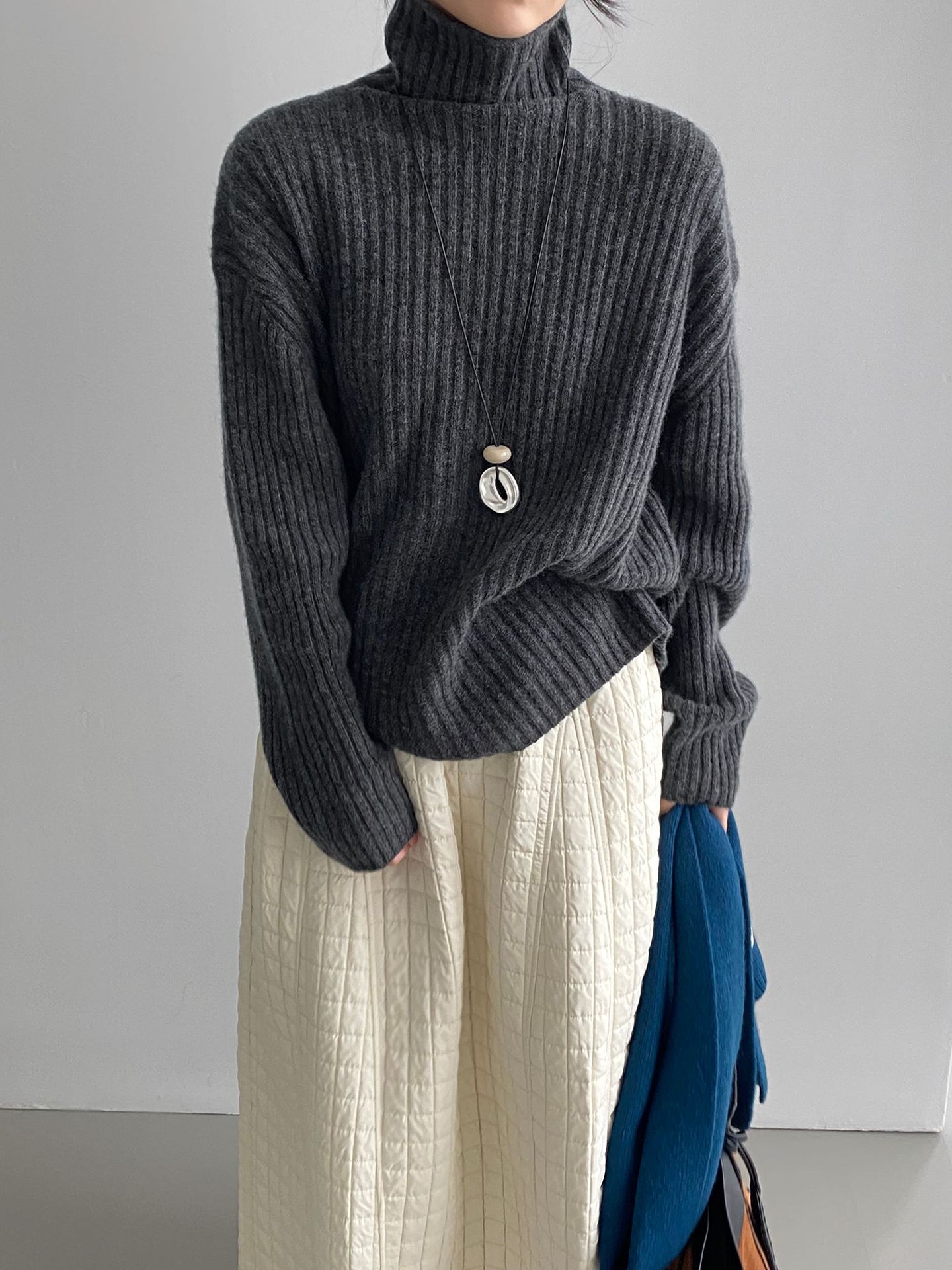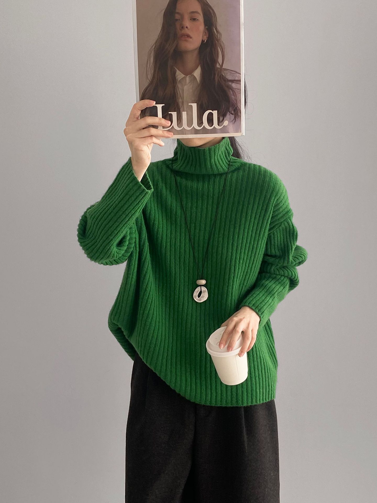한국계 울 퀄리티 높은 터틀넥 나른한 여성 니트