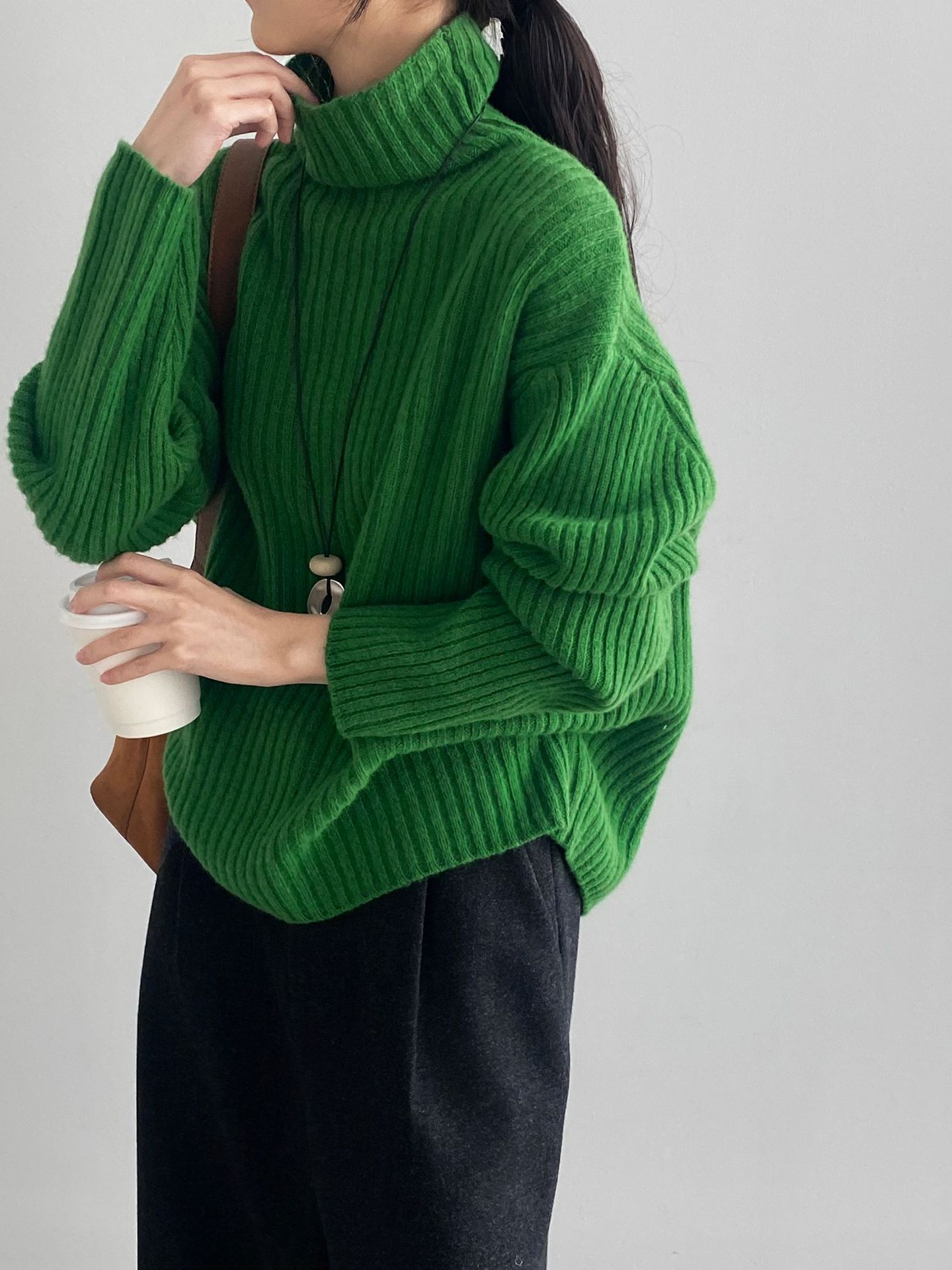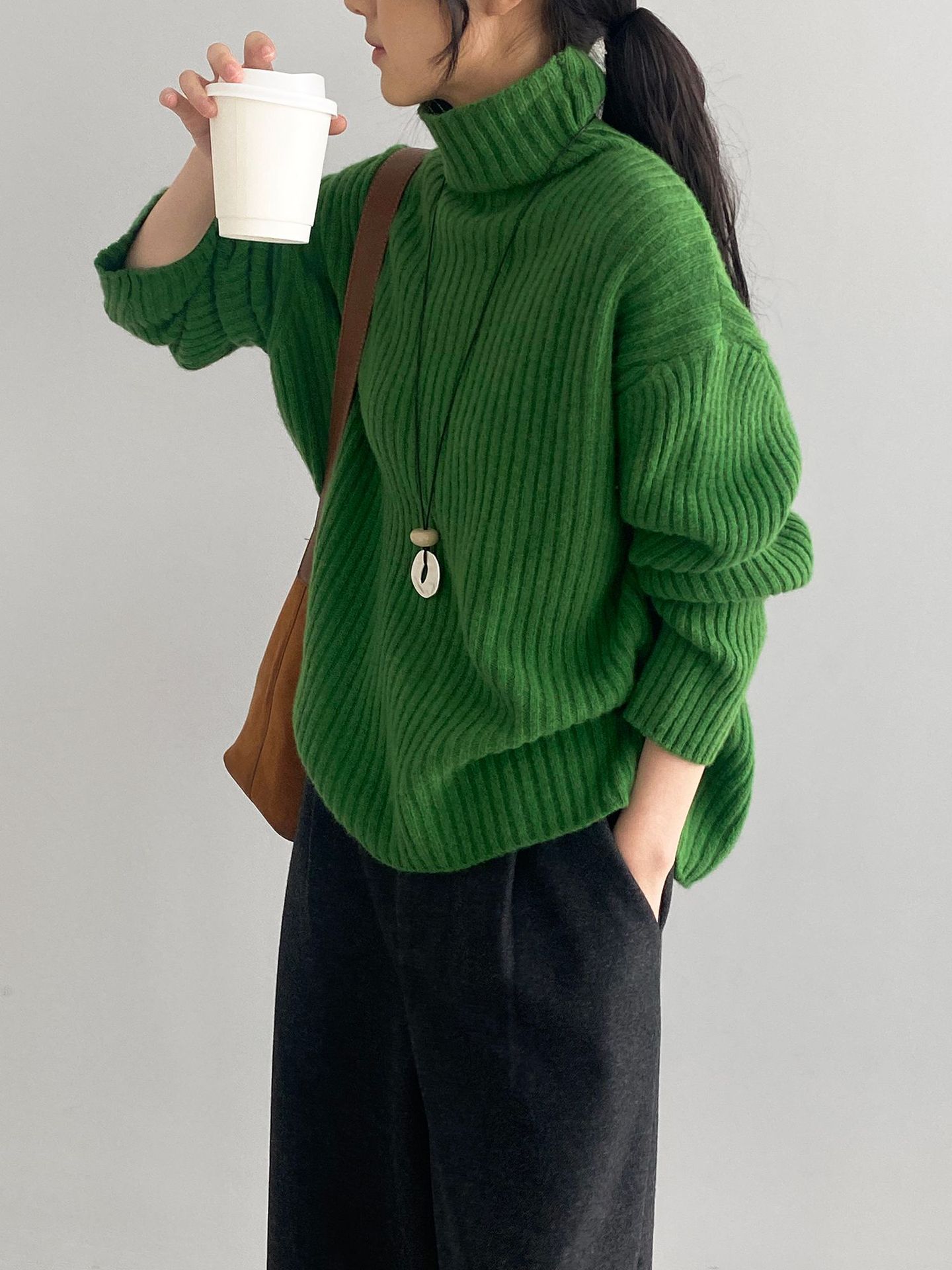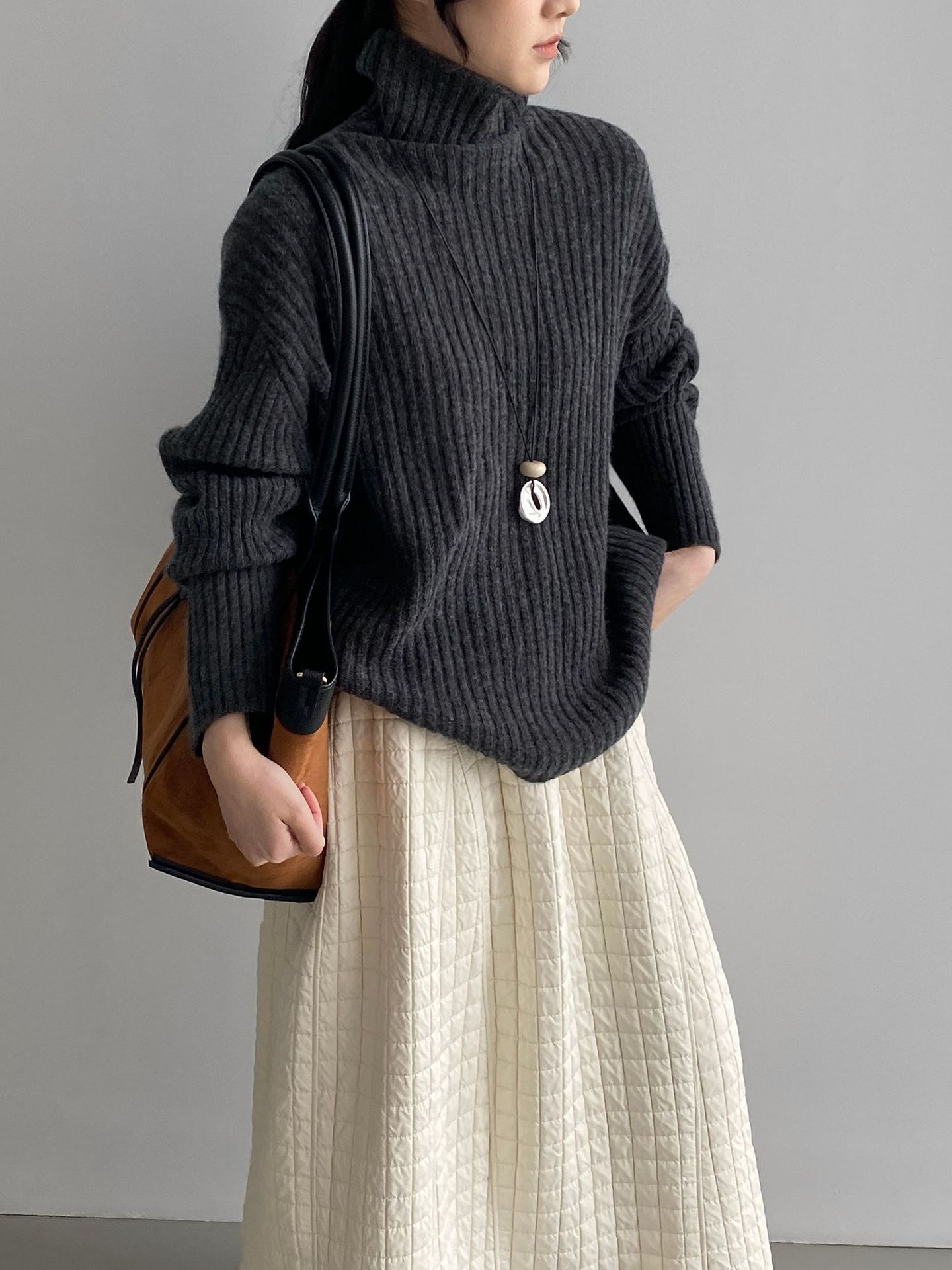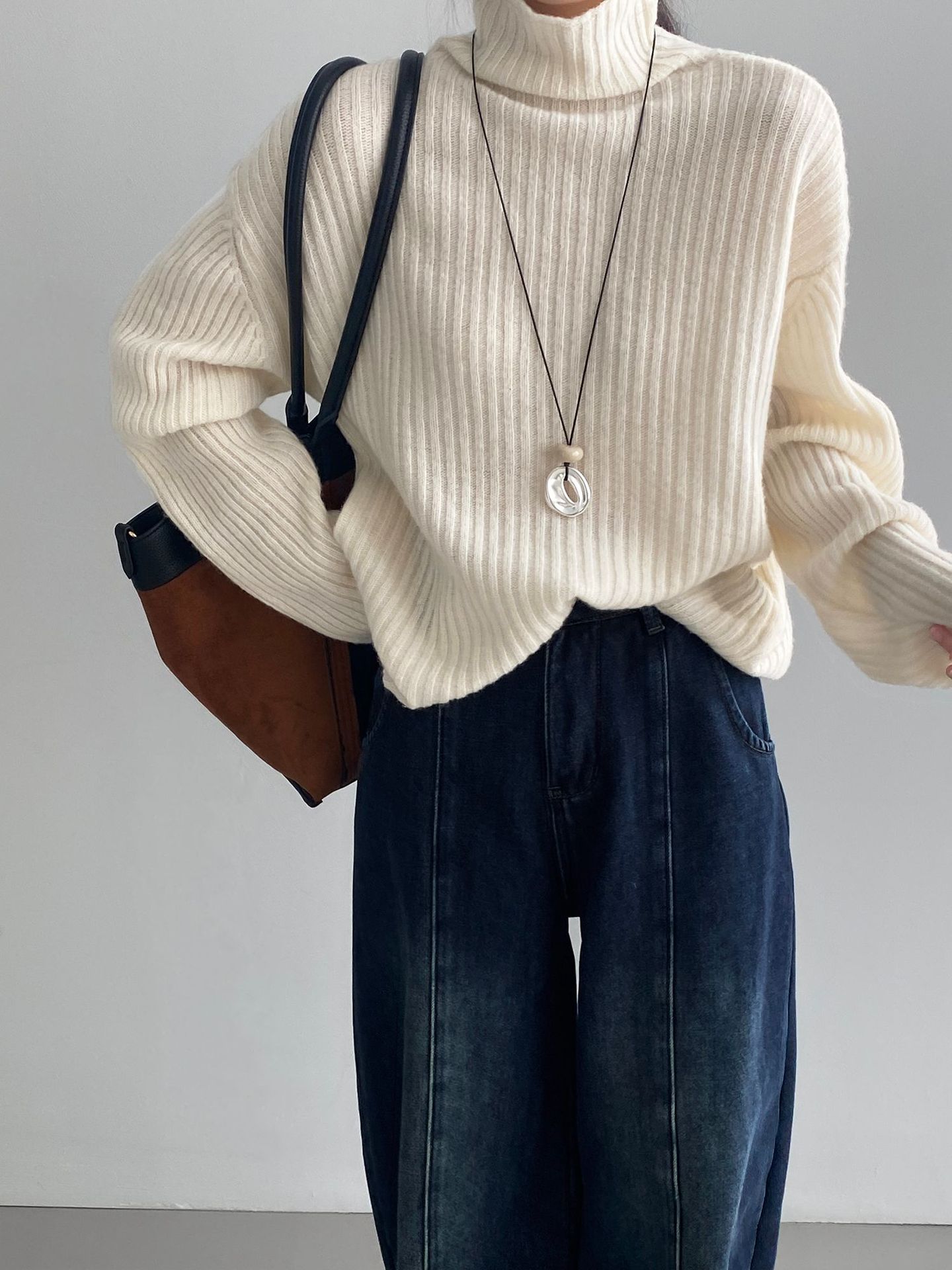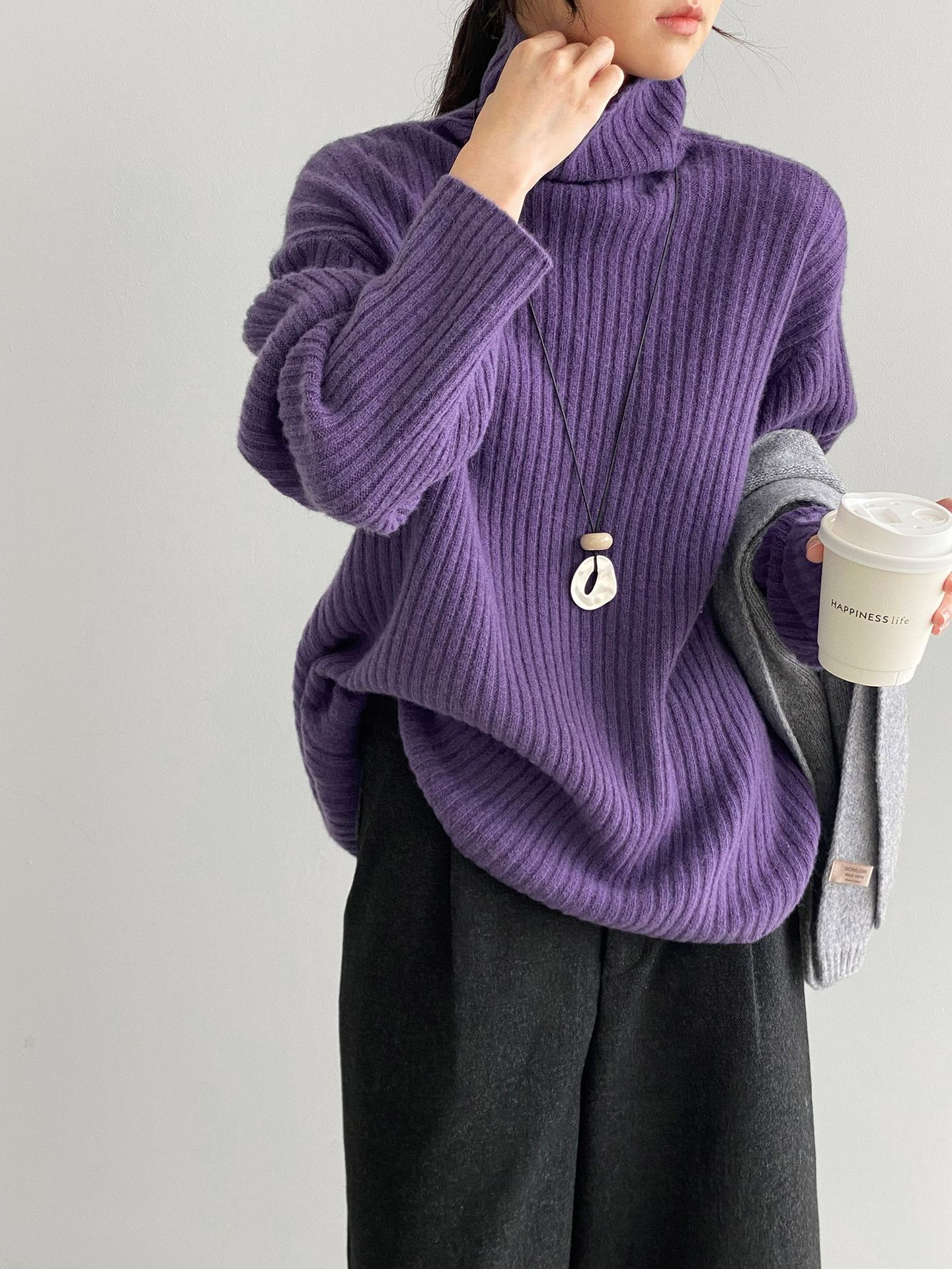 한국계 울 퀄리티 높은 터틀넥 나른한 여성 니트