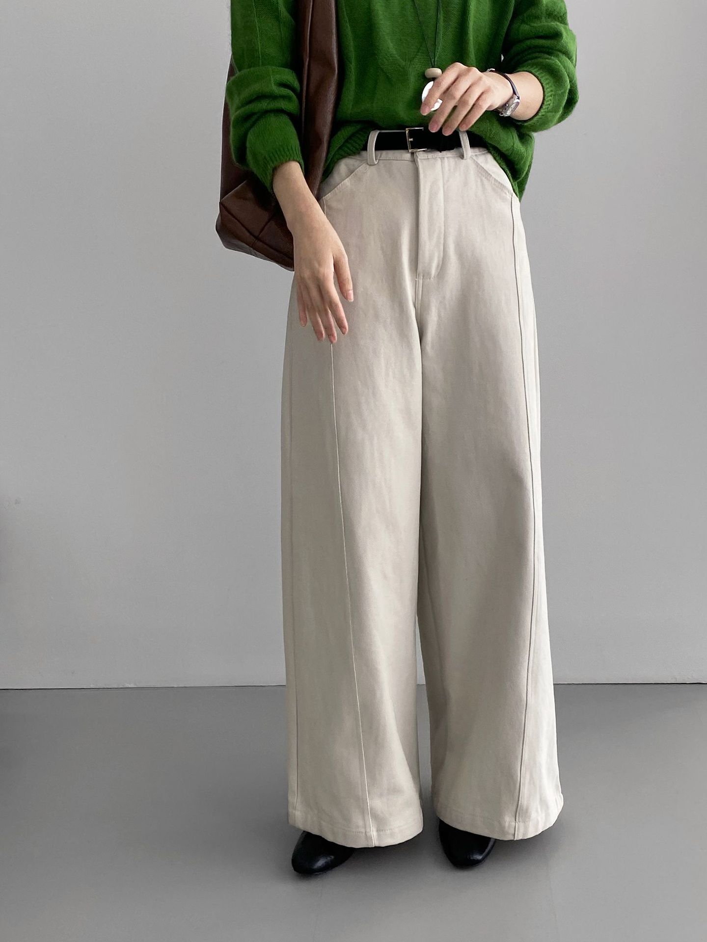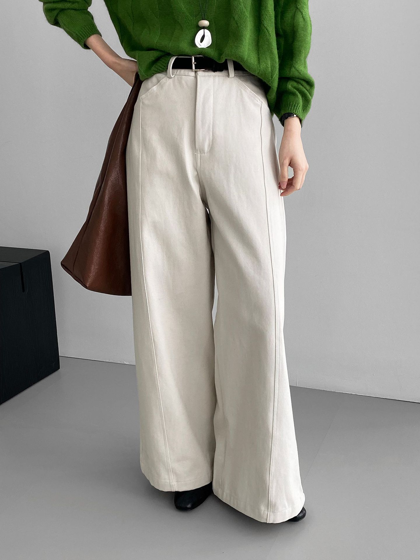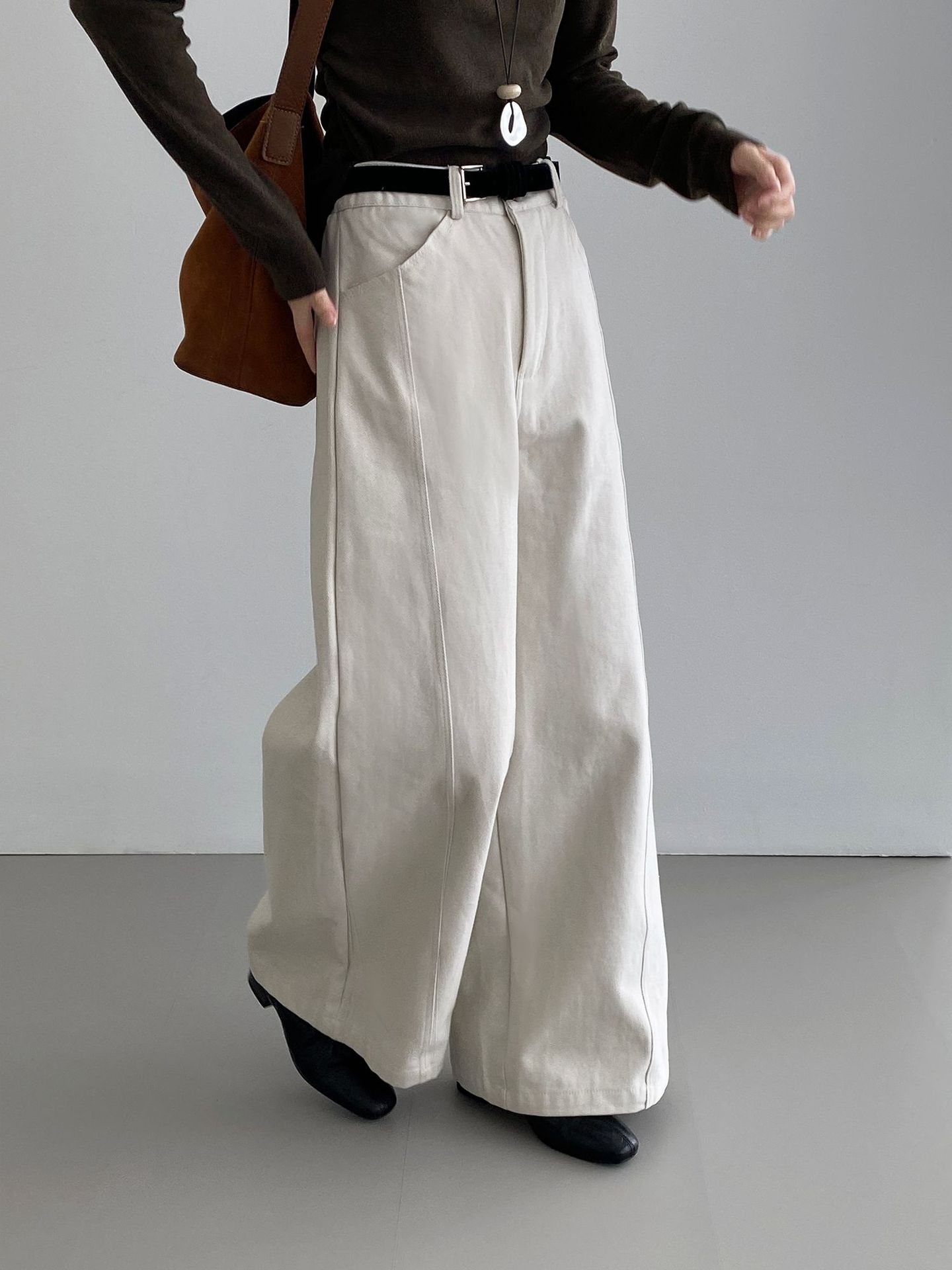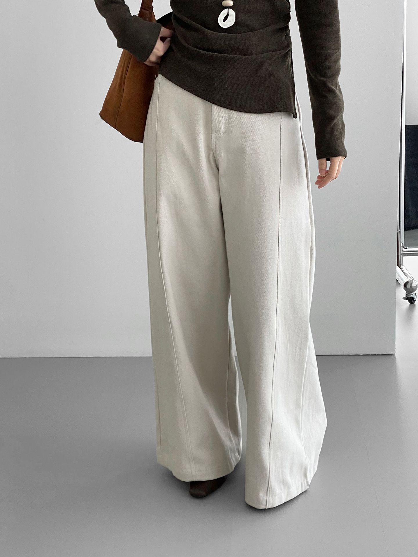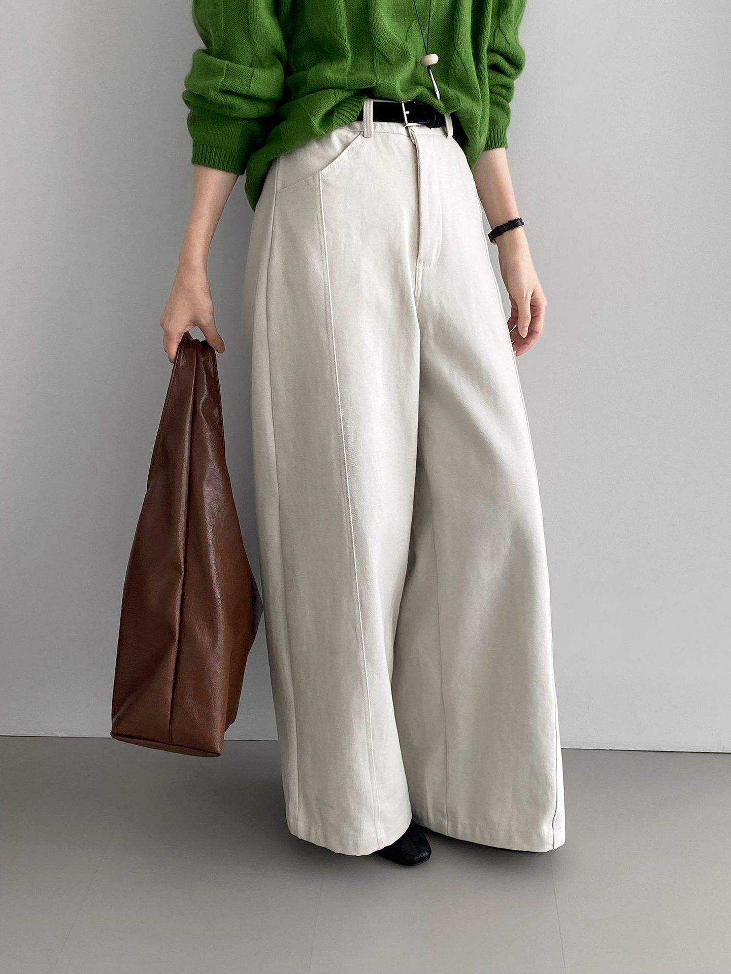 코리아 통근 분위기면 100자 a 자 와이드 팬츠 여성 얇은 기모 하이웨이스트 날씬해 보이므로 롱 팬츠와 잘 어울려요