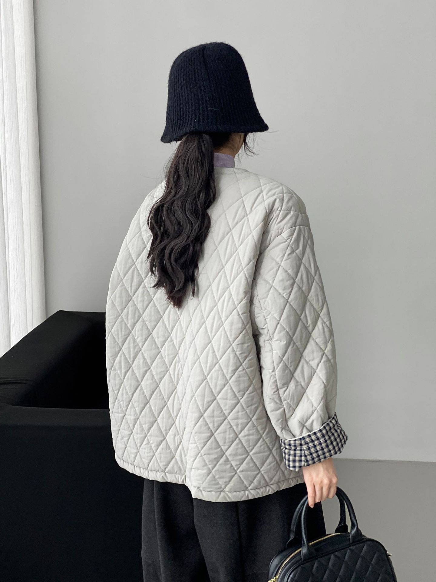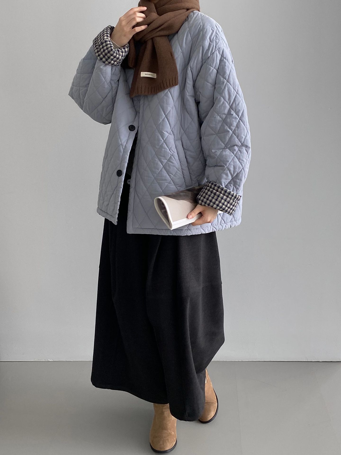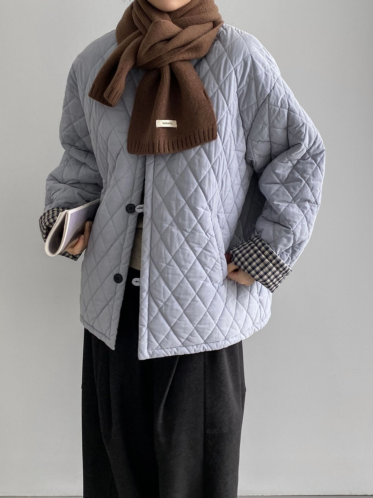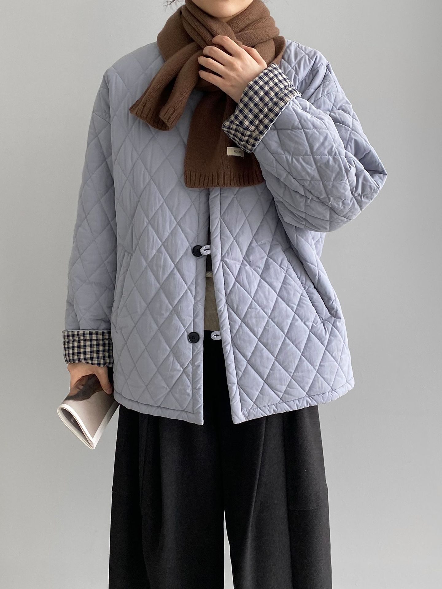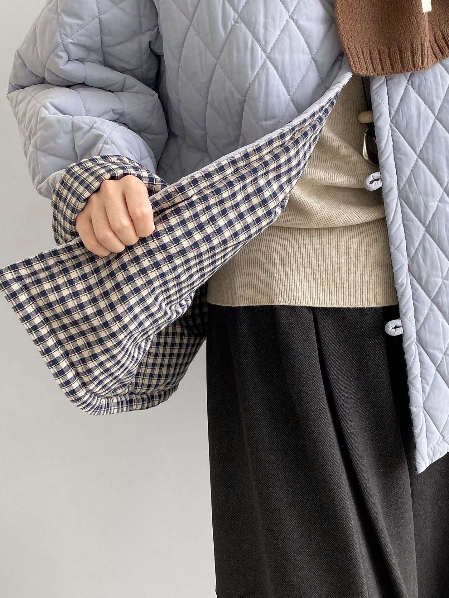 빈티지 심플 그라비티 패딩 데님 레이디스 체크 패딩 코트입니다