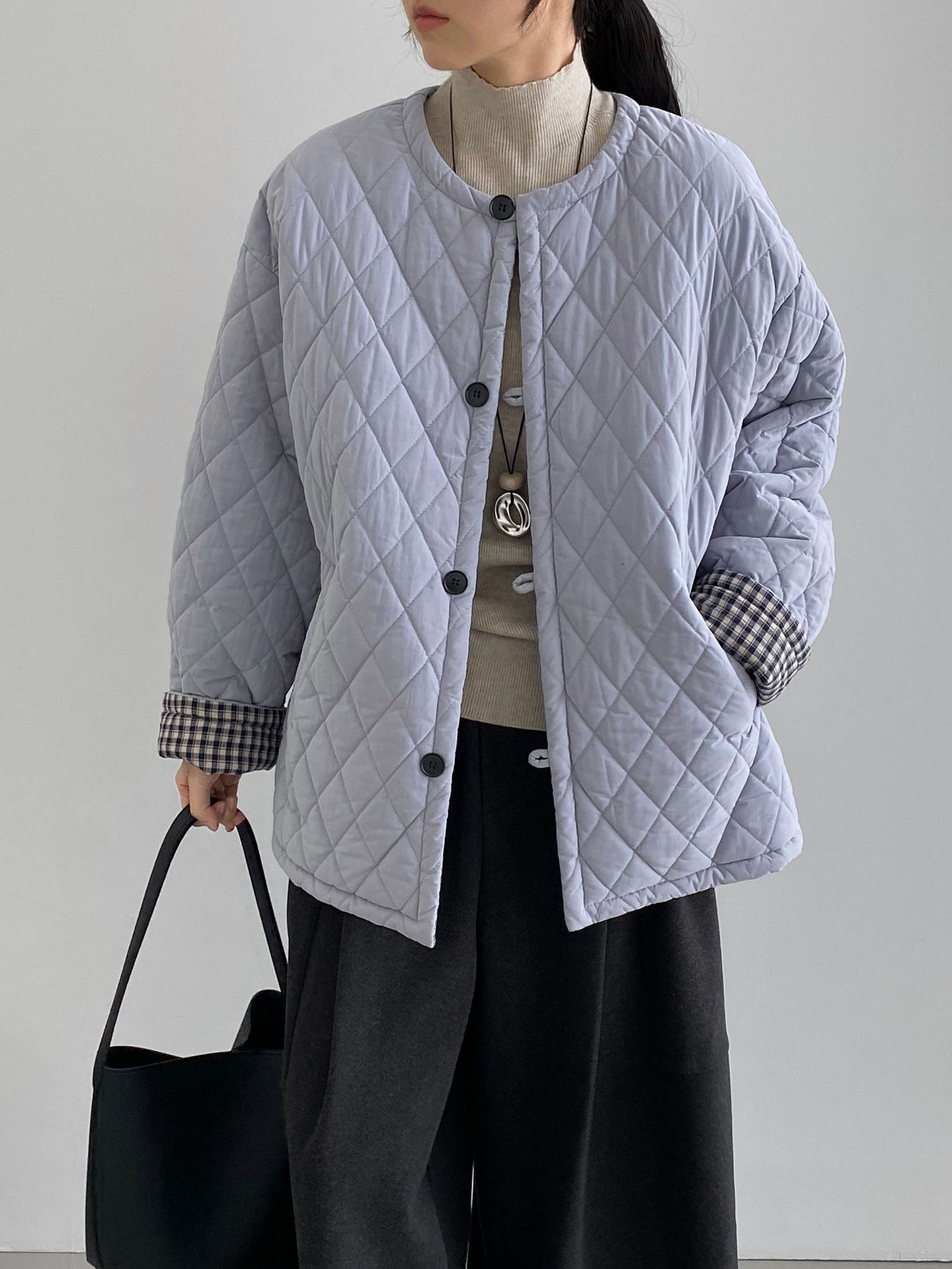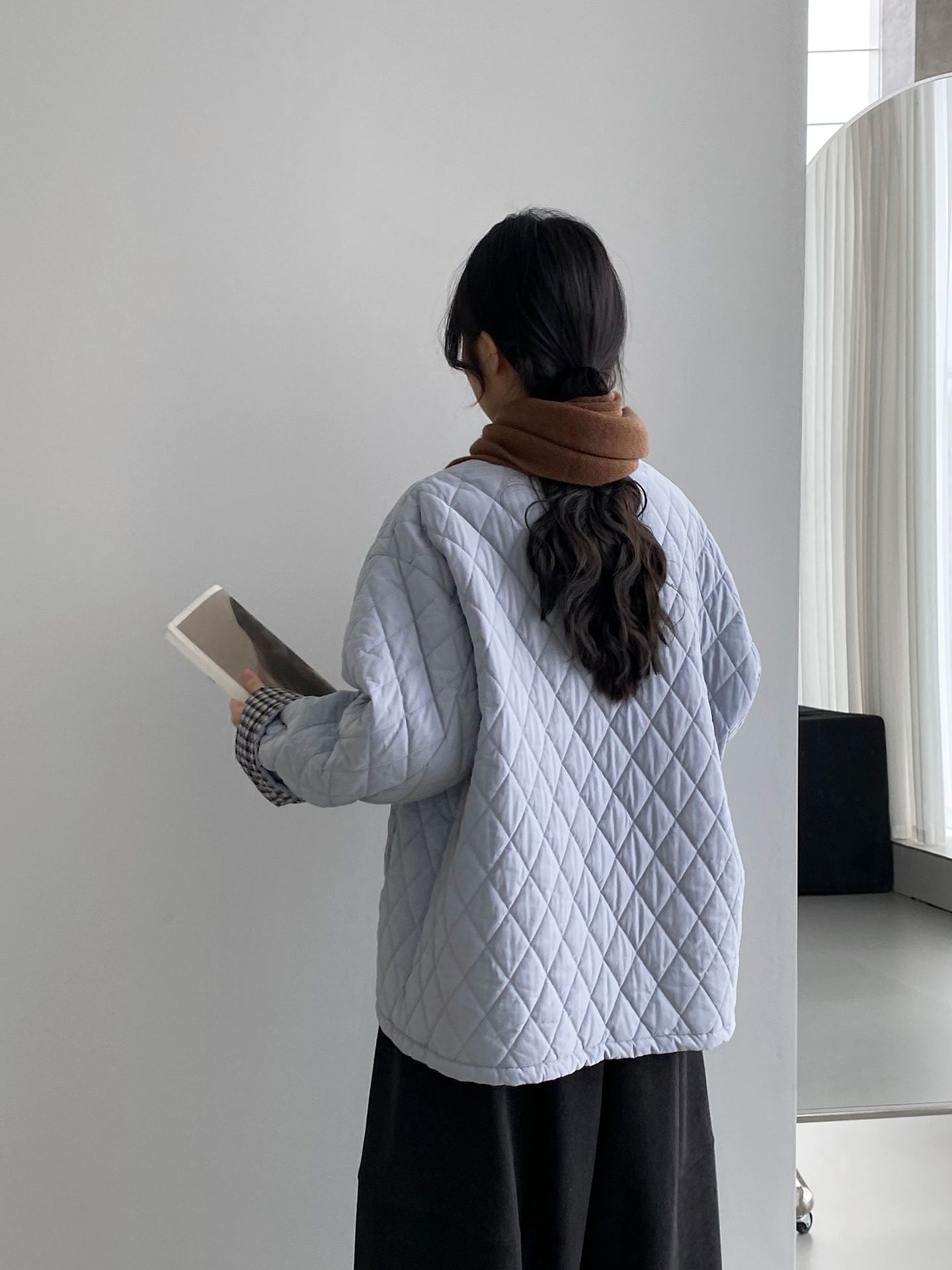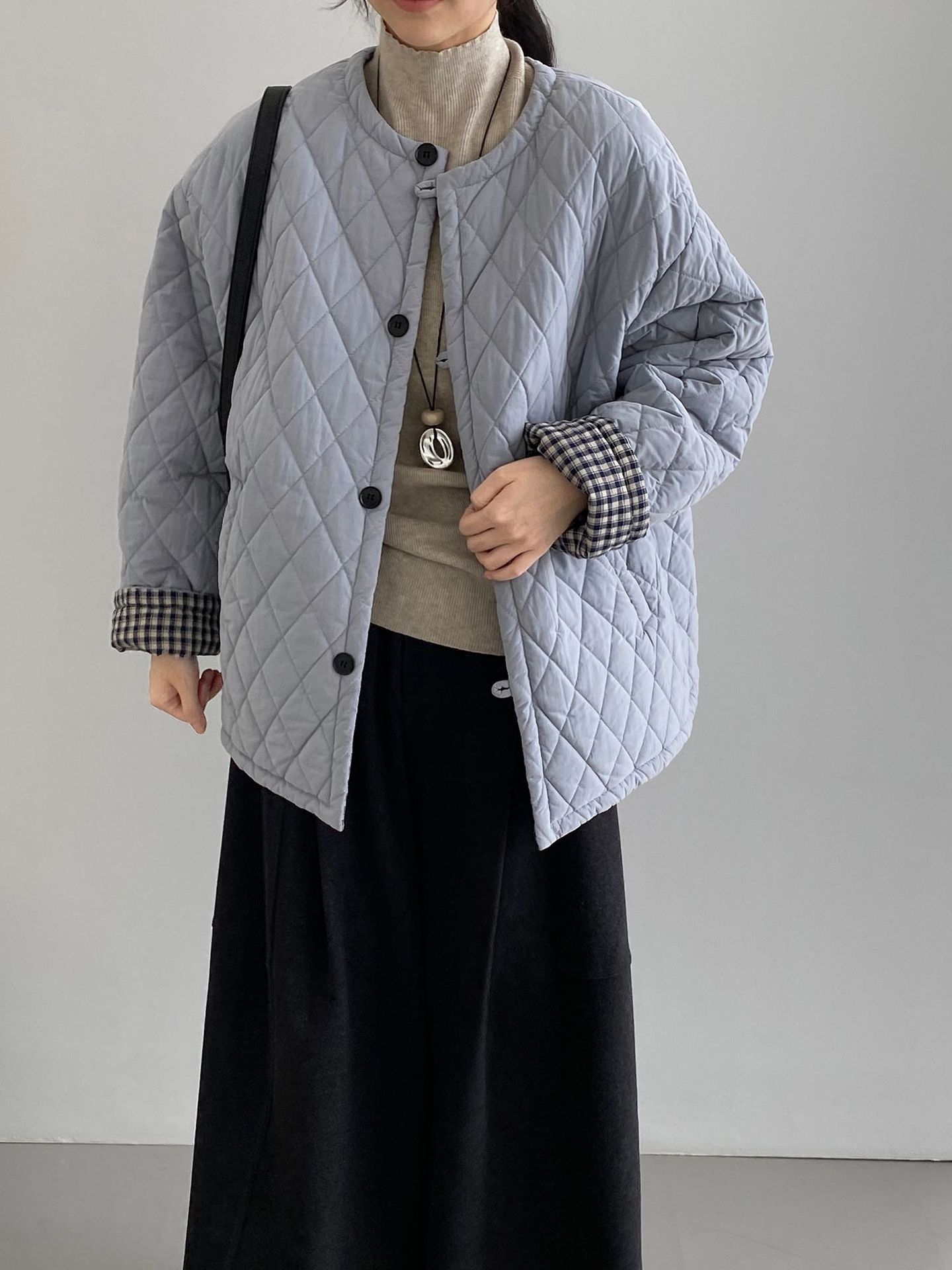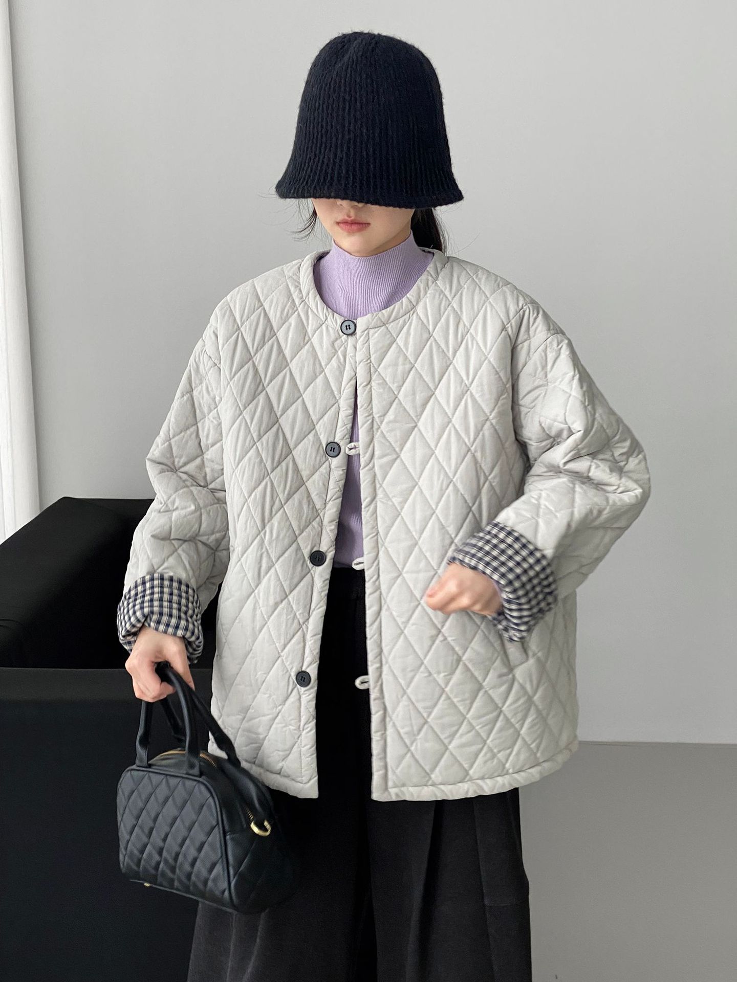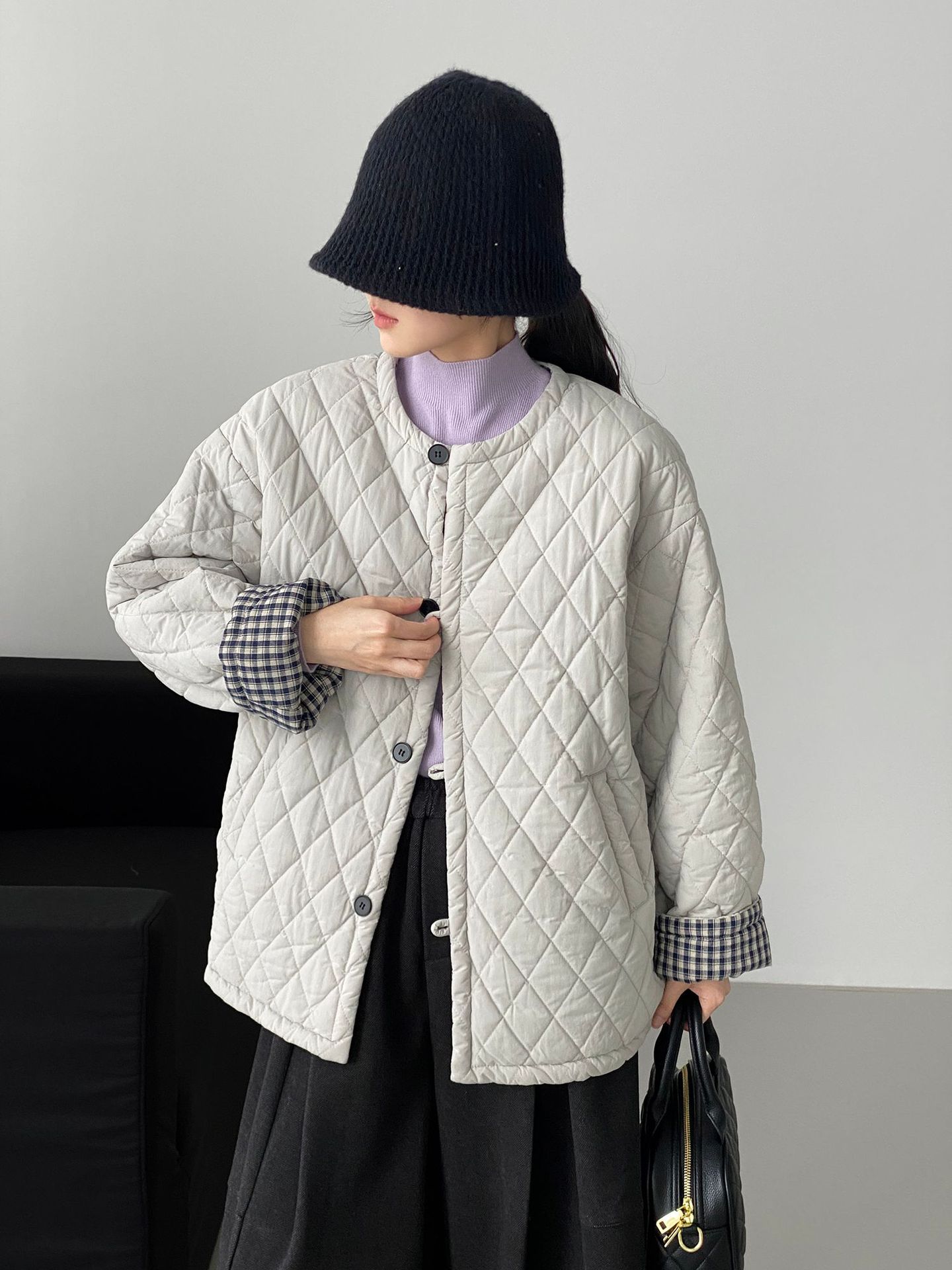 빈티지 심플 그라비티 패딩 데님 레이디스 체크 패딩 코트입니다