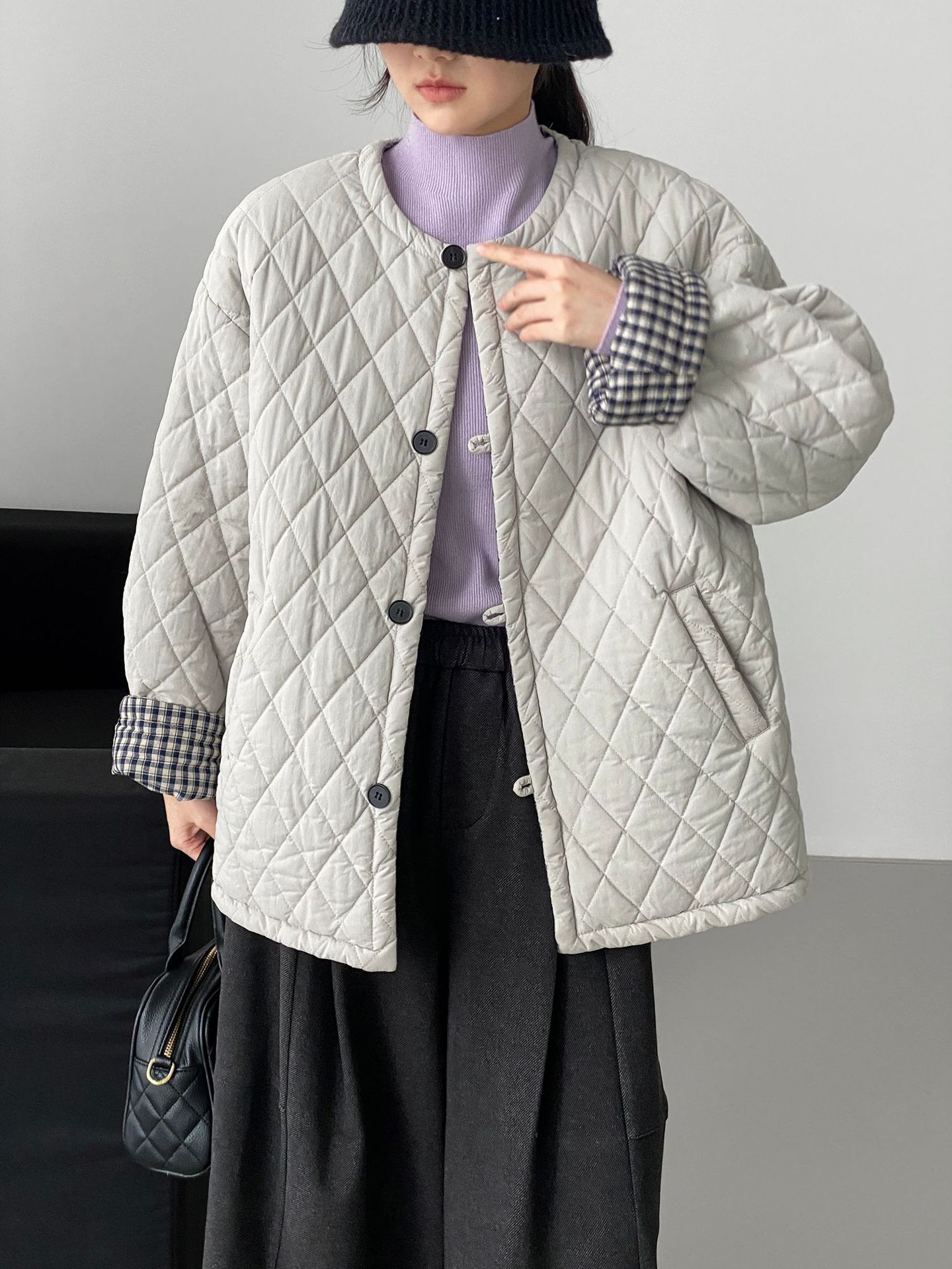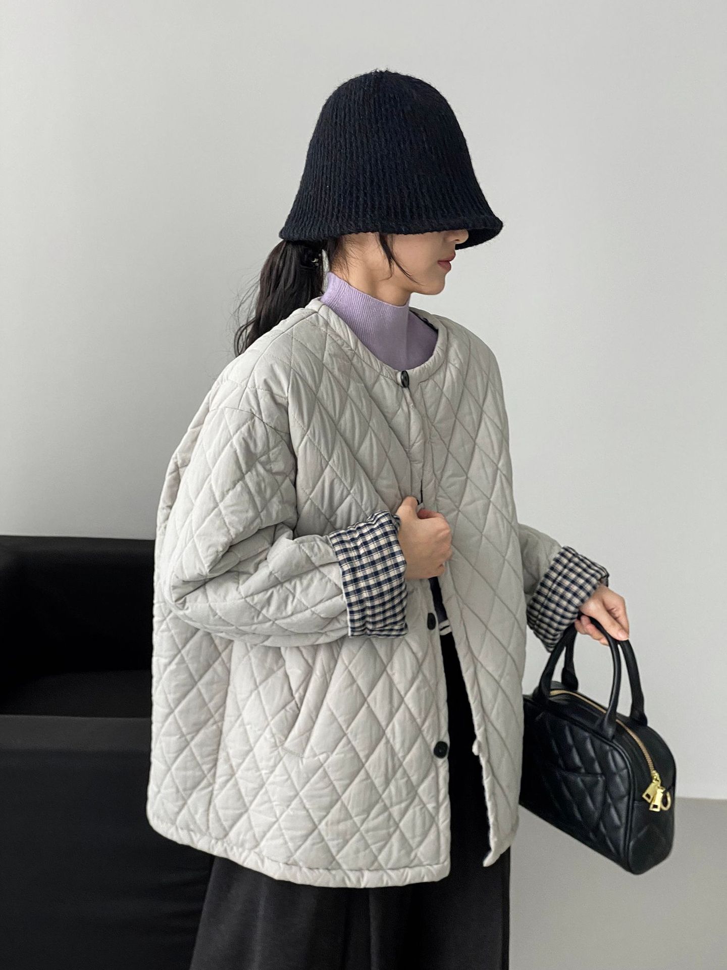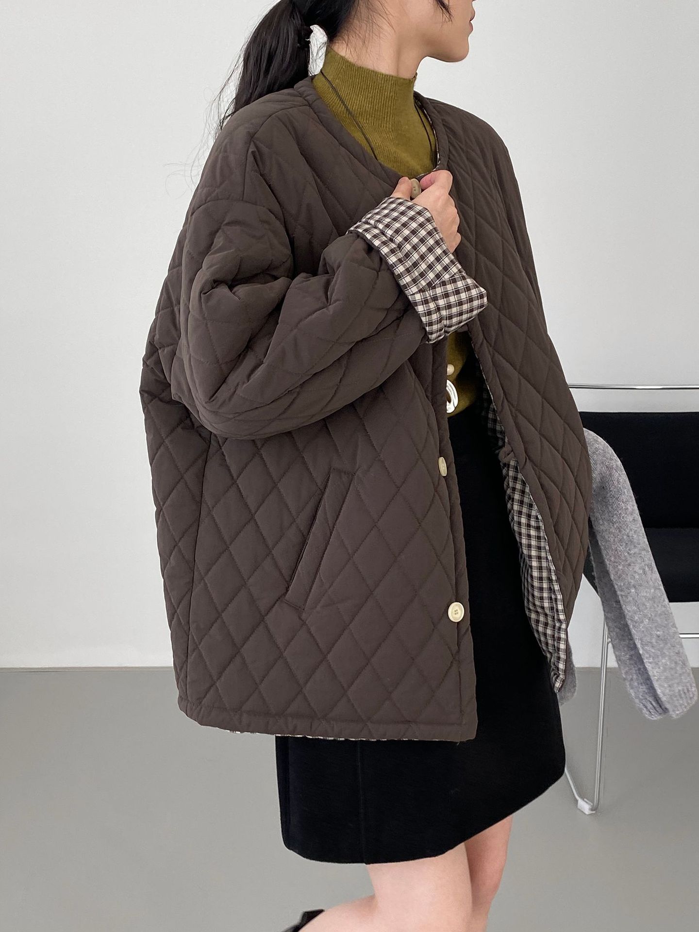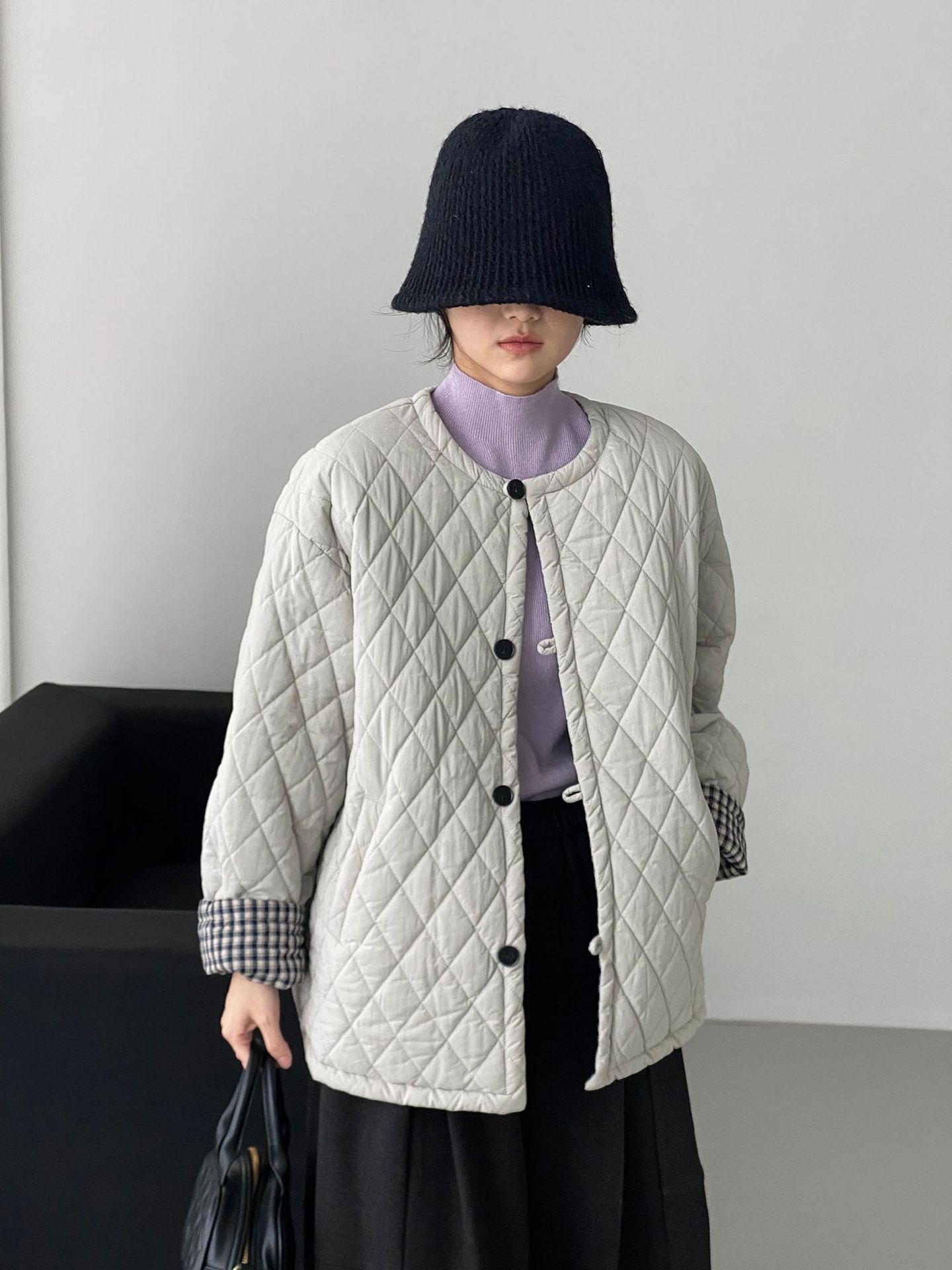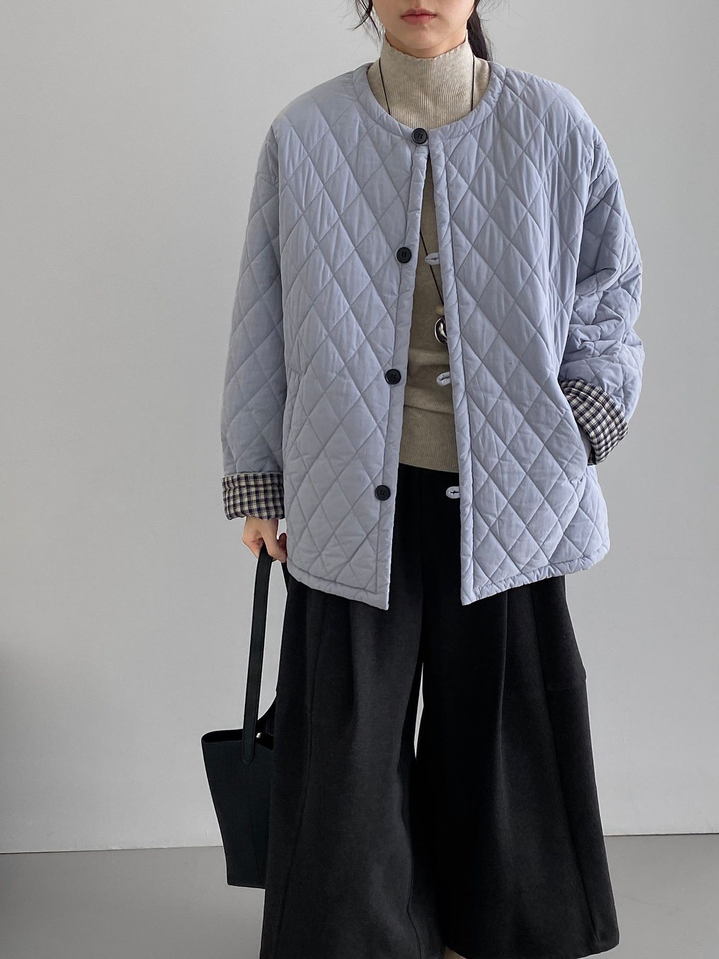 빈티지 심플 그라비티 패딩 데님 레이디스 체크 패딩 코트입니다