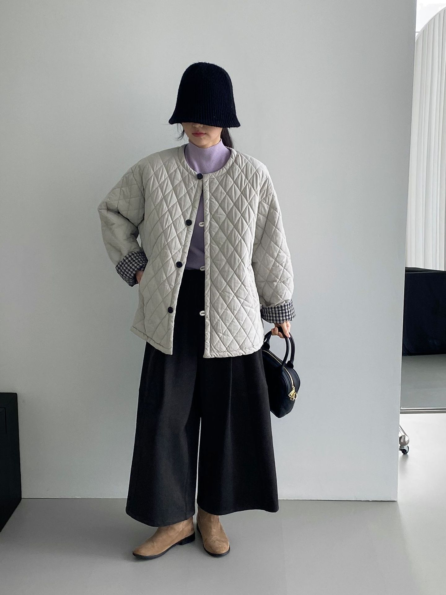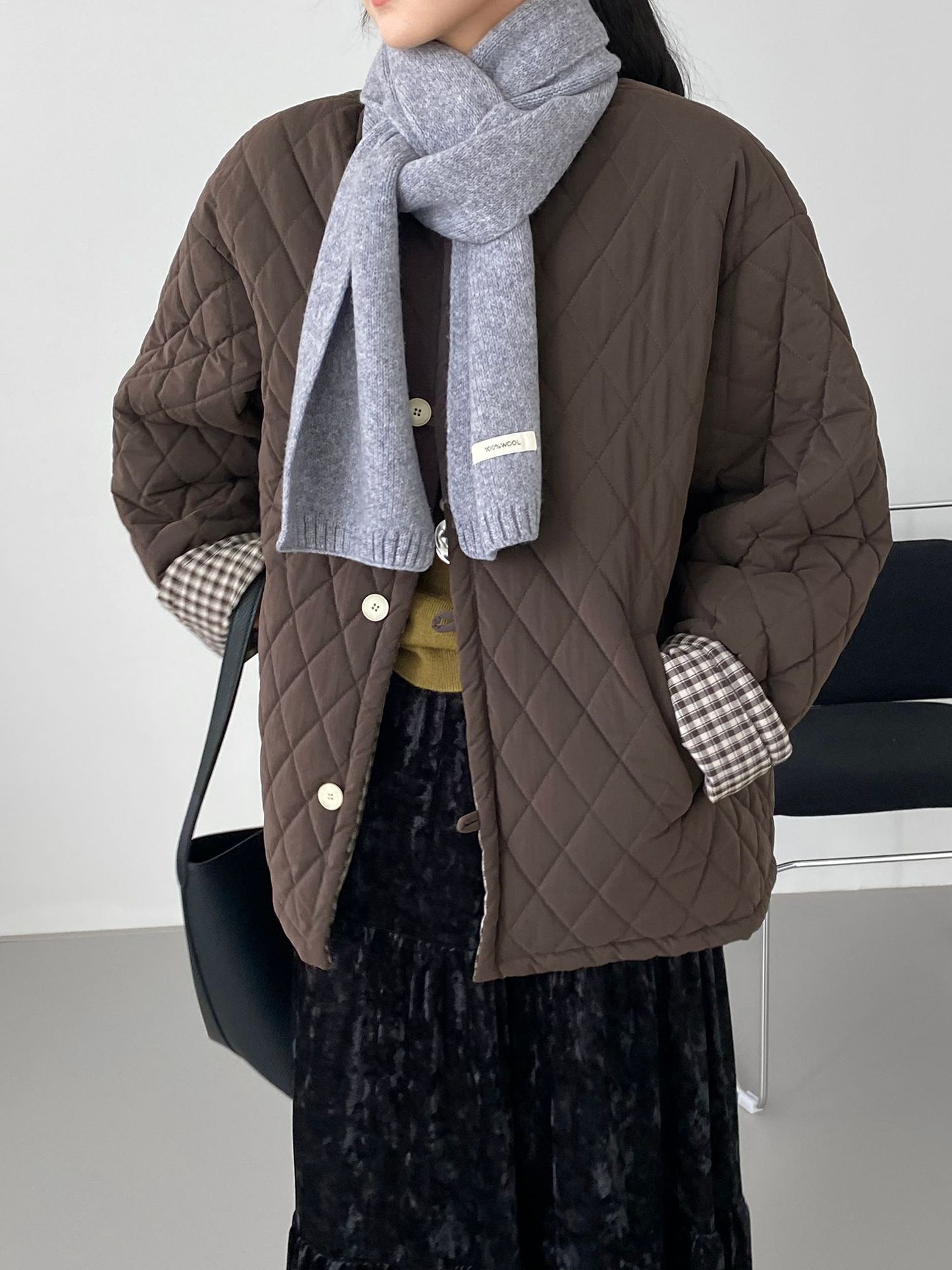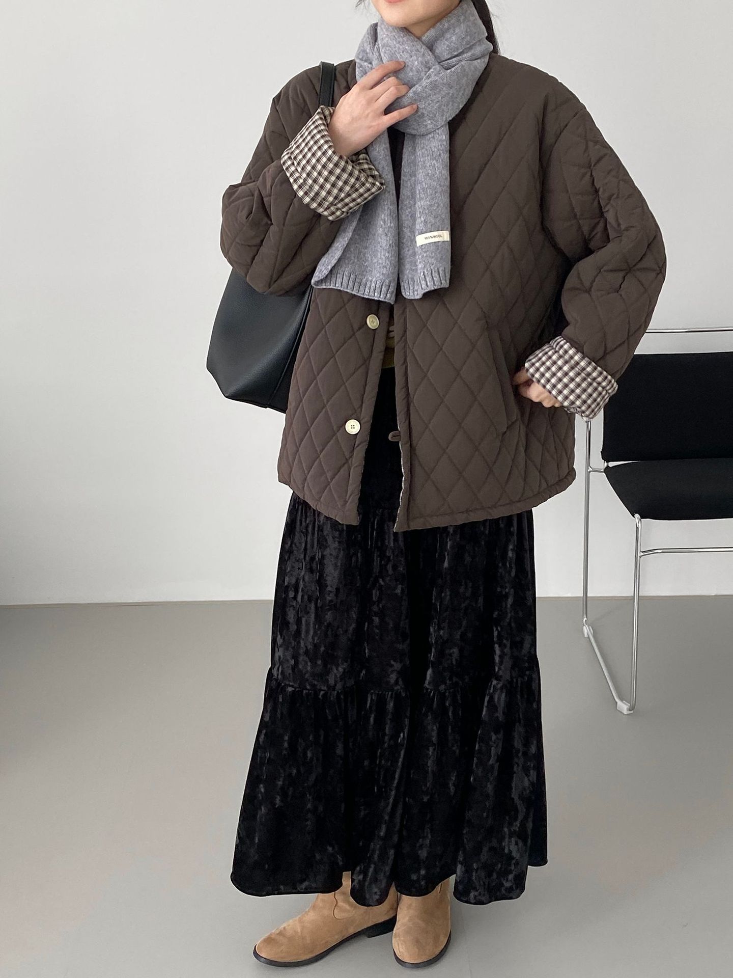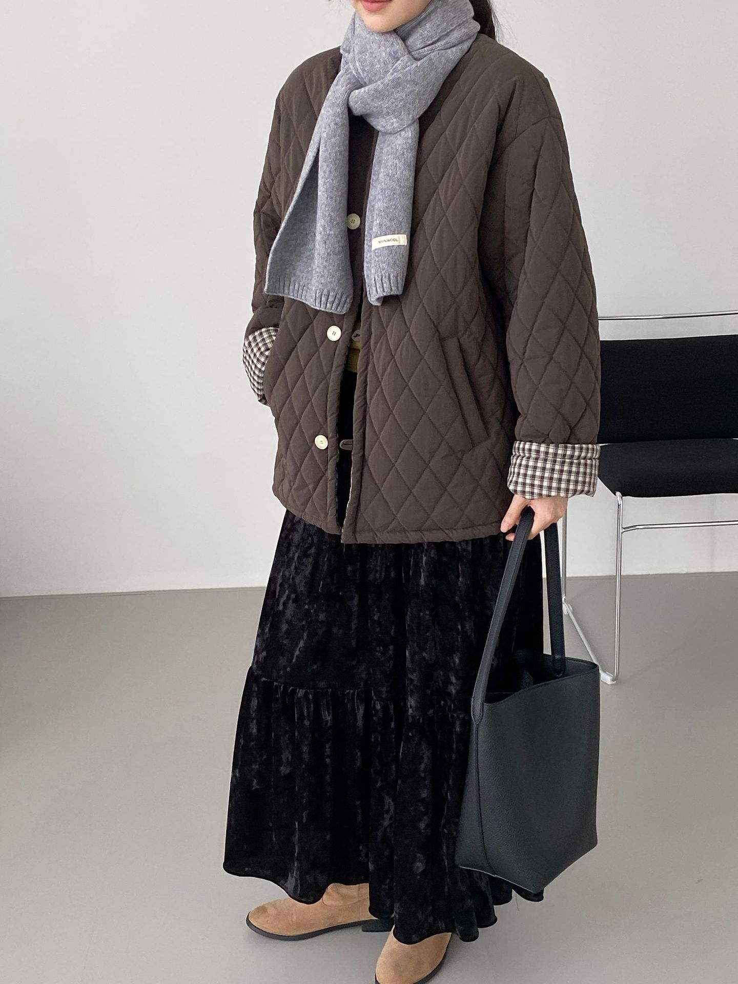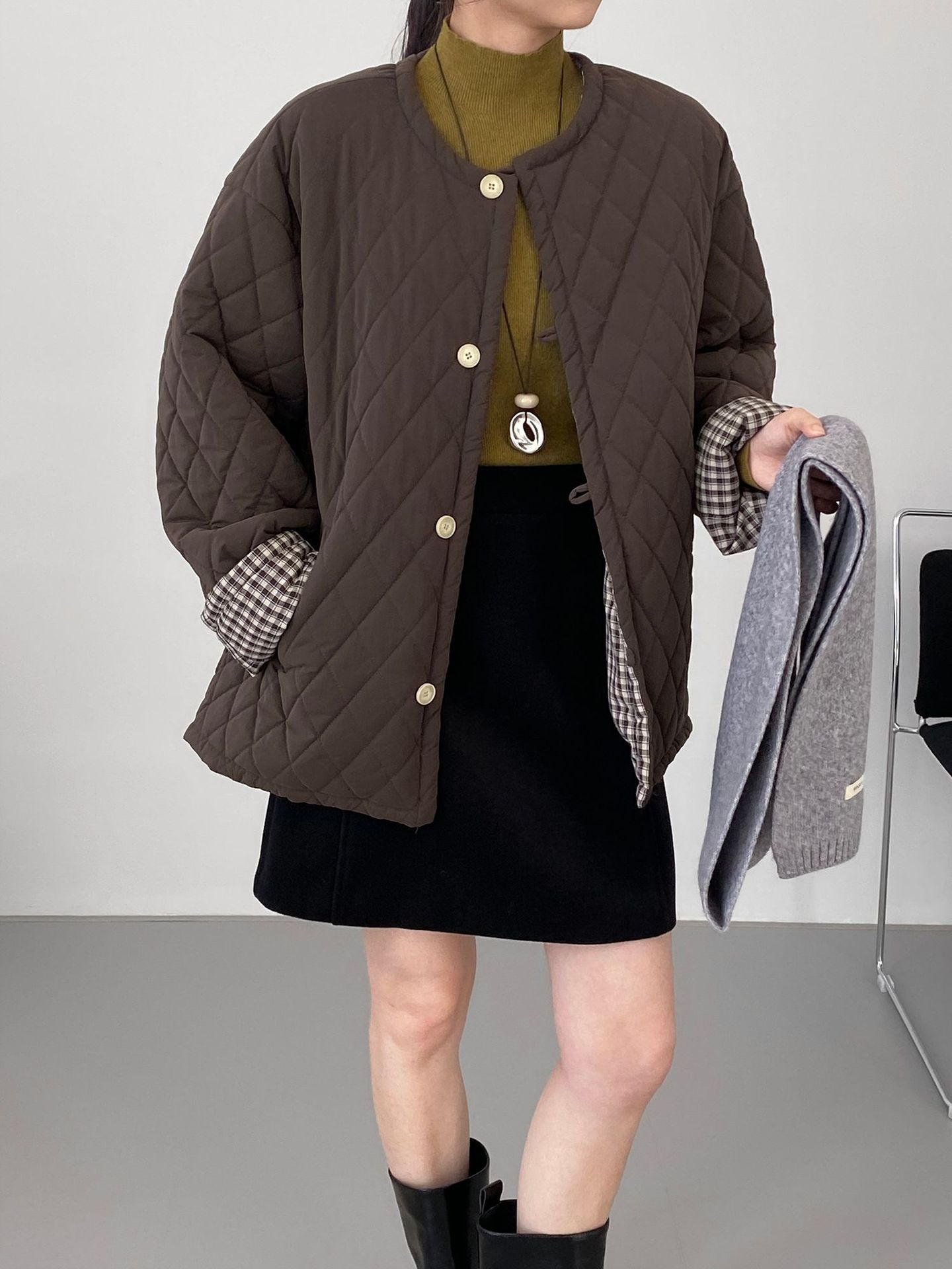 빈티지 심플 그라비티 패딩 데님 레이디스 체크 패딩 코트입니다