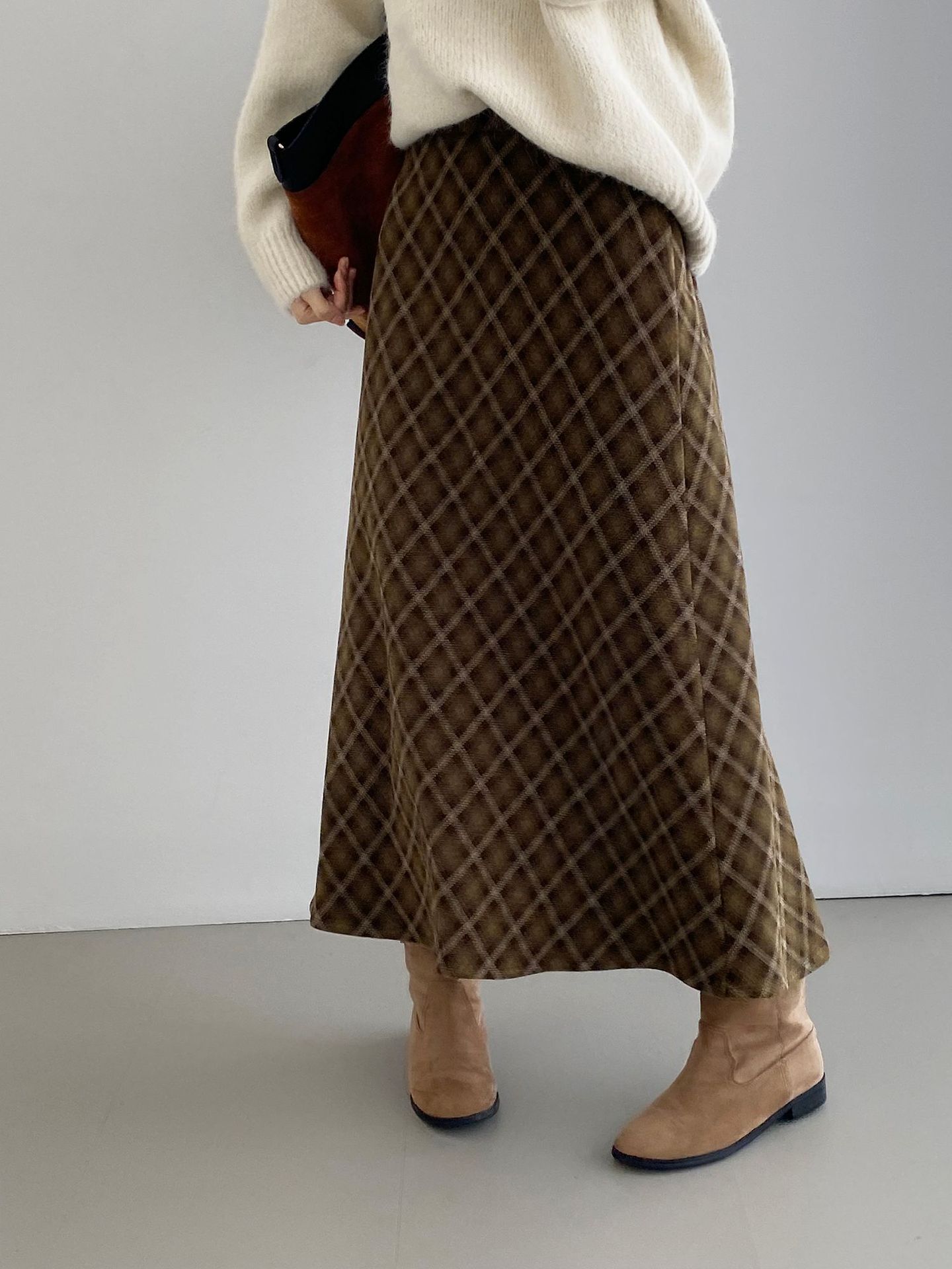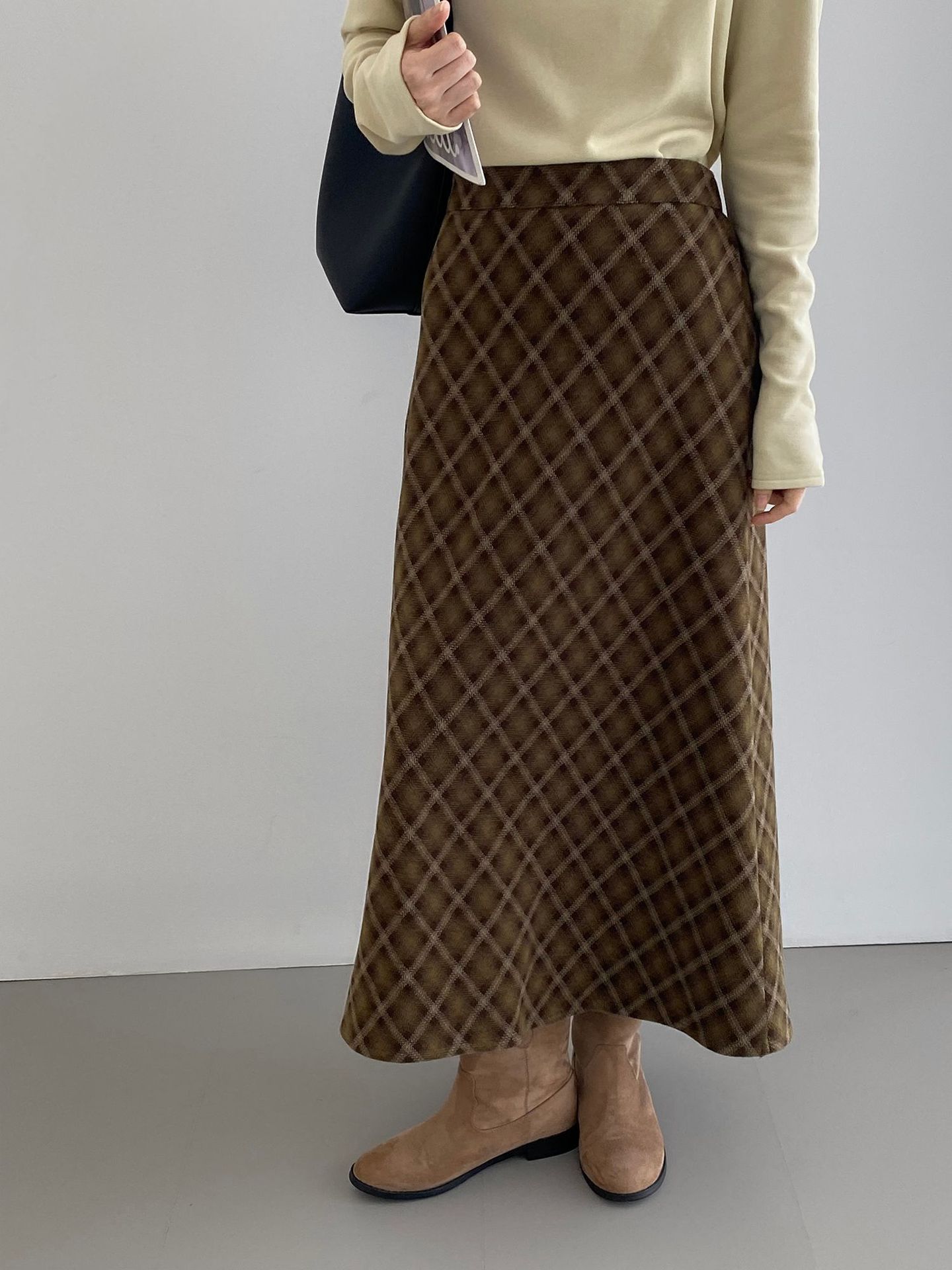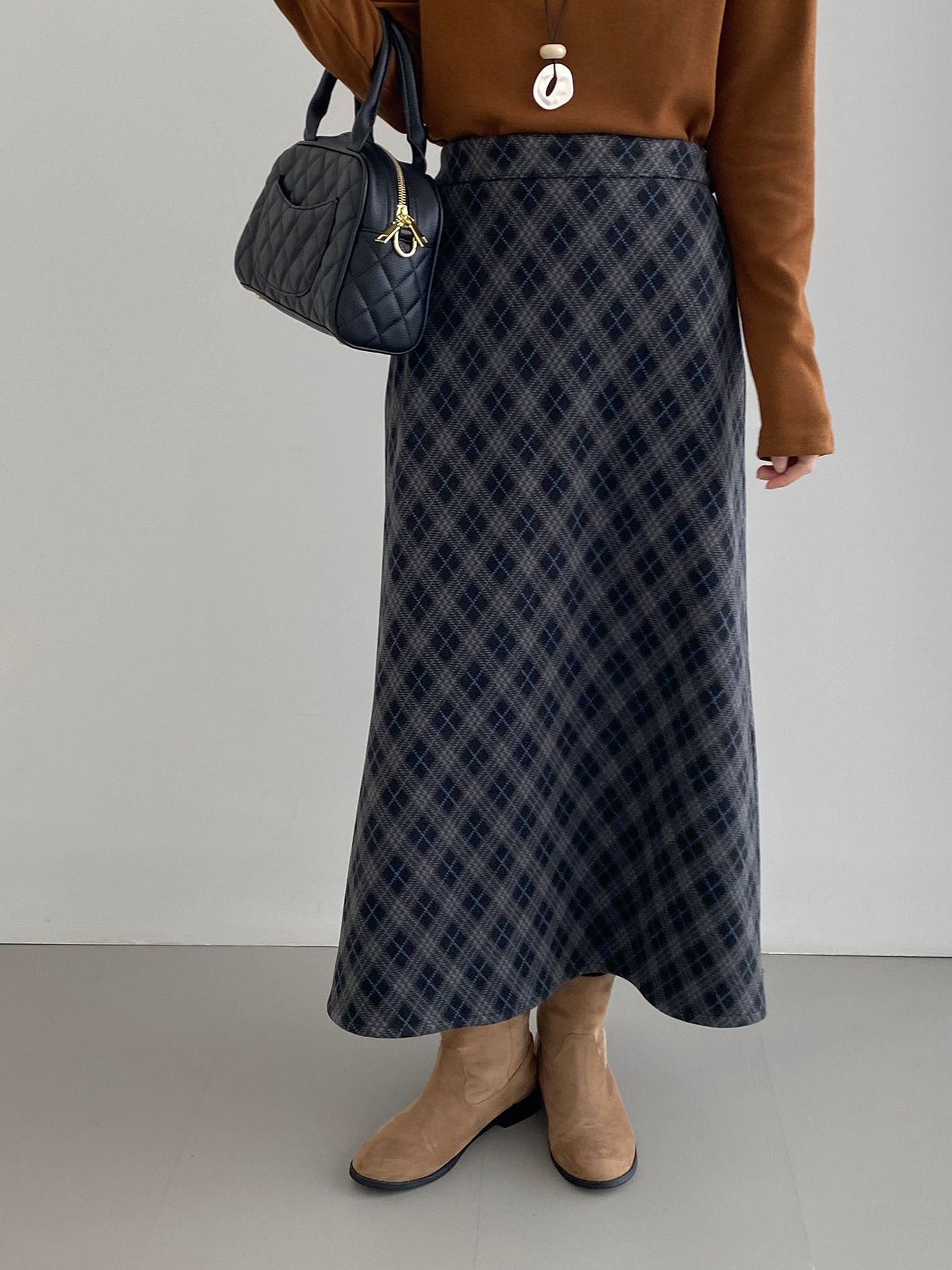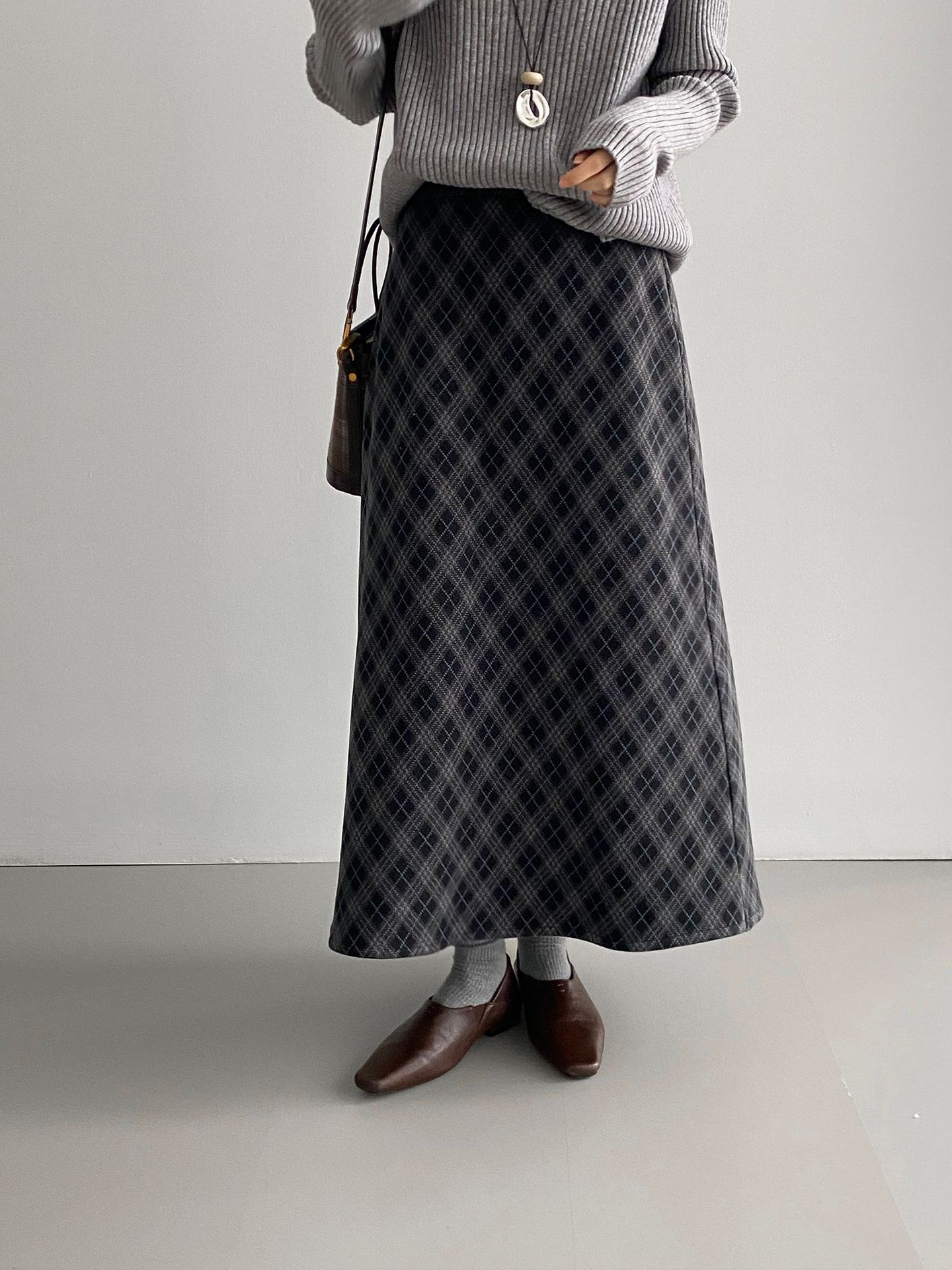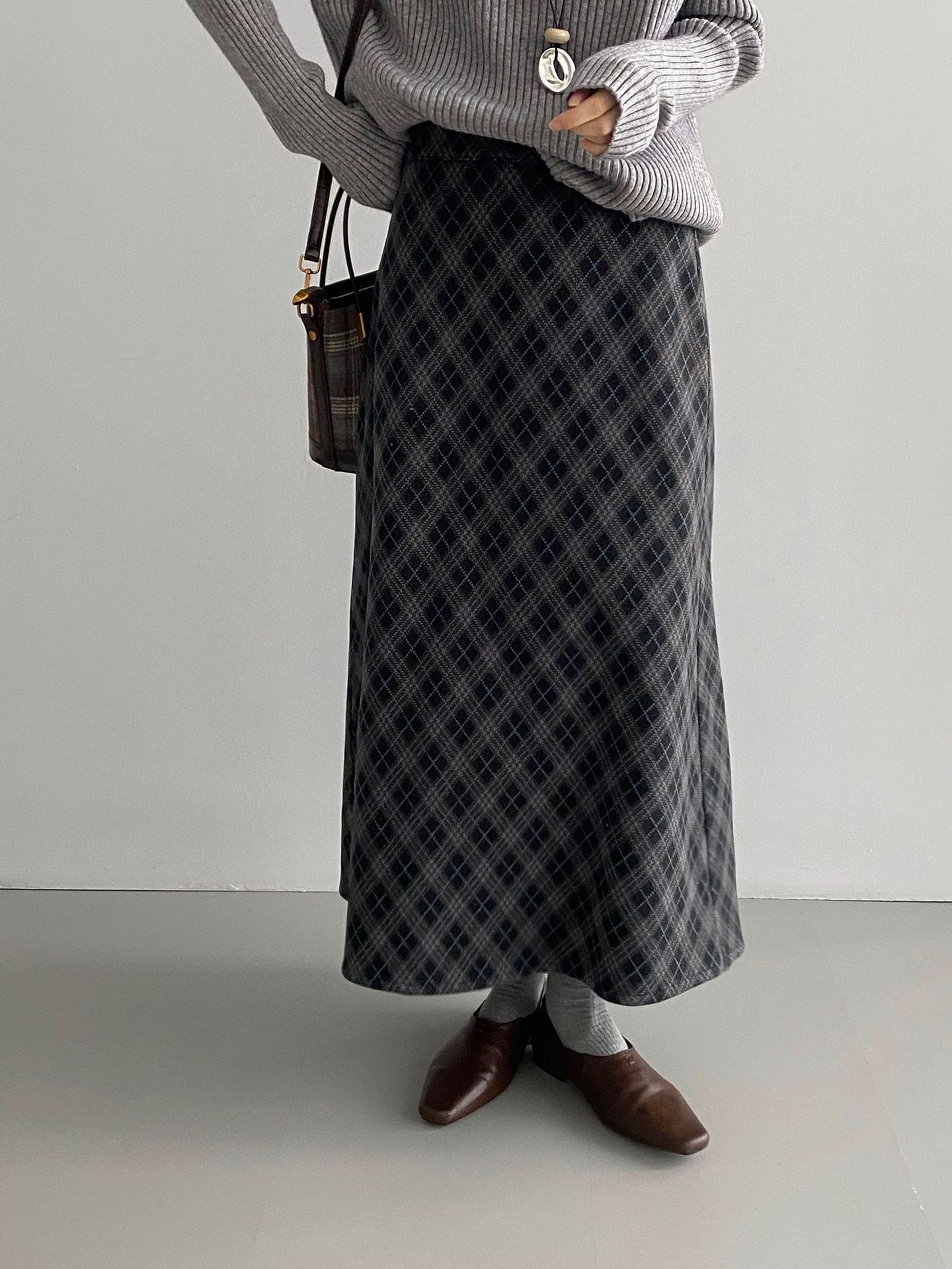 복고 학원 스타일 문예 격자무늬 충돌 스커트 여성 허리 밴딩 기질 날씬해 보이는 a 라인 롱 스커트